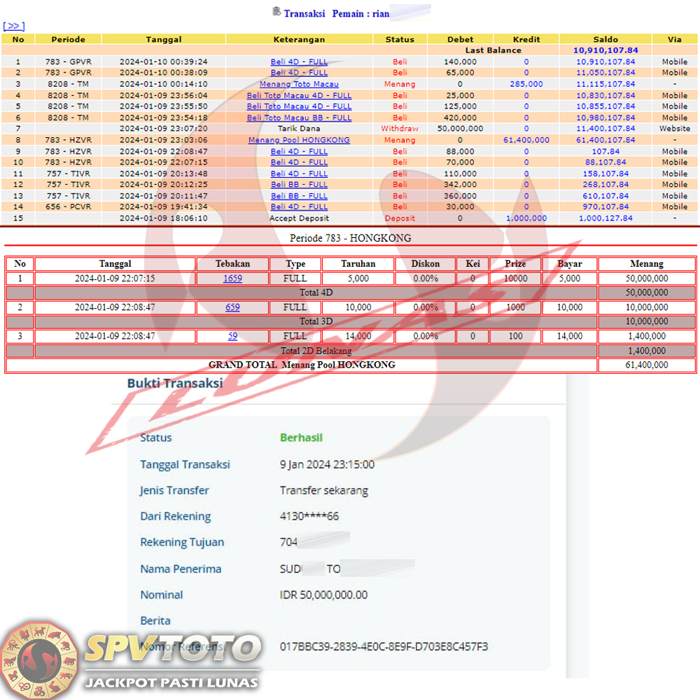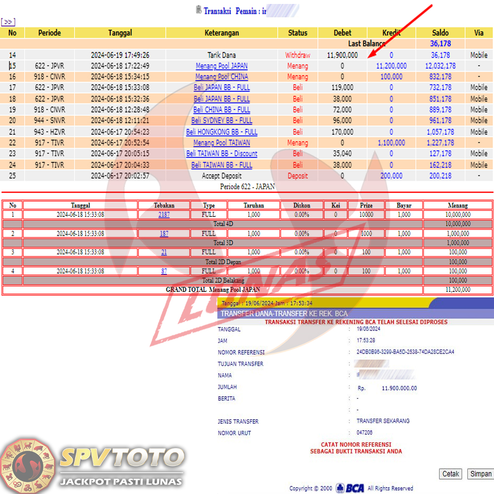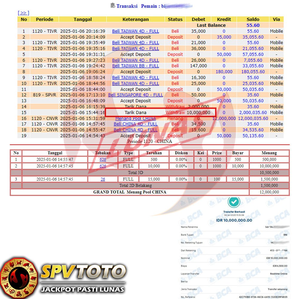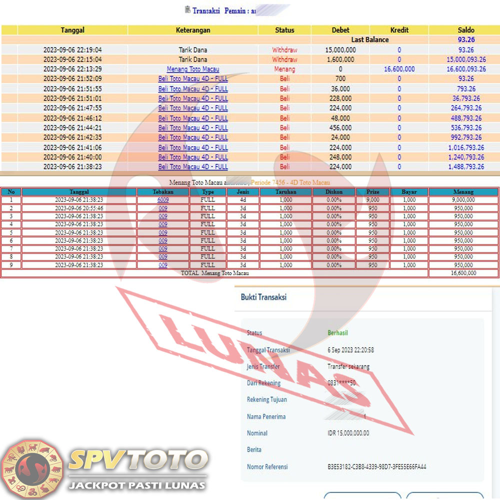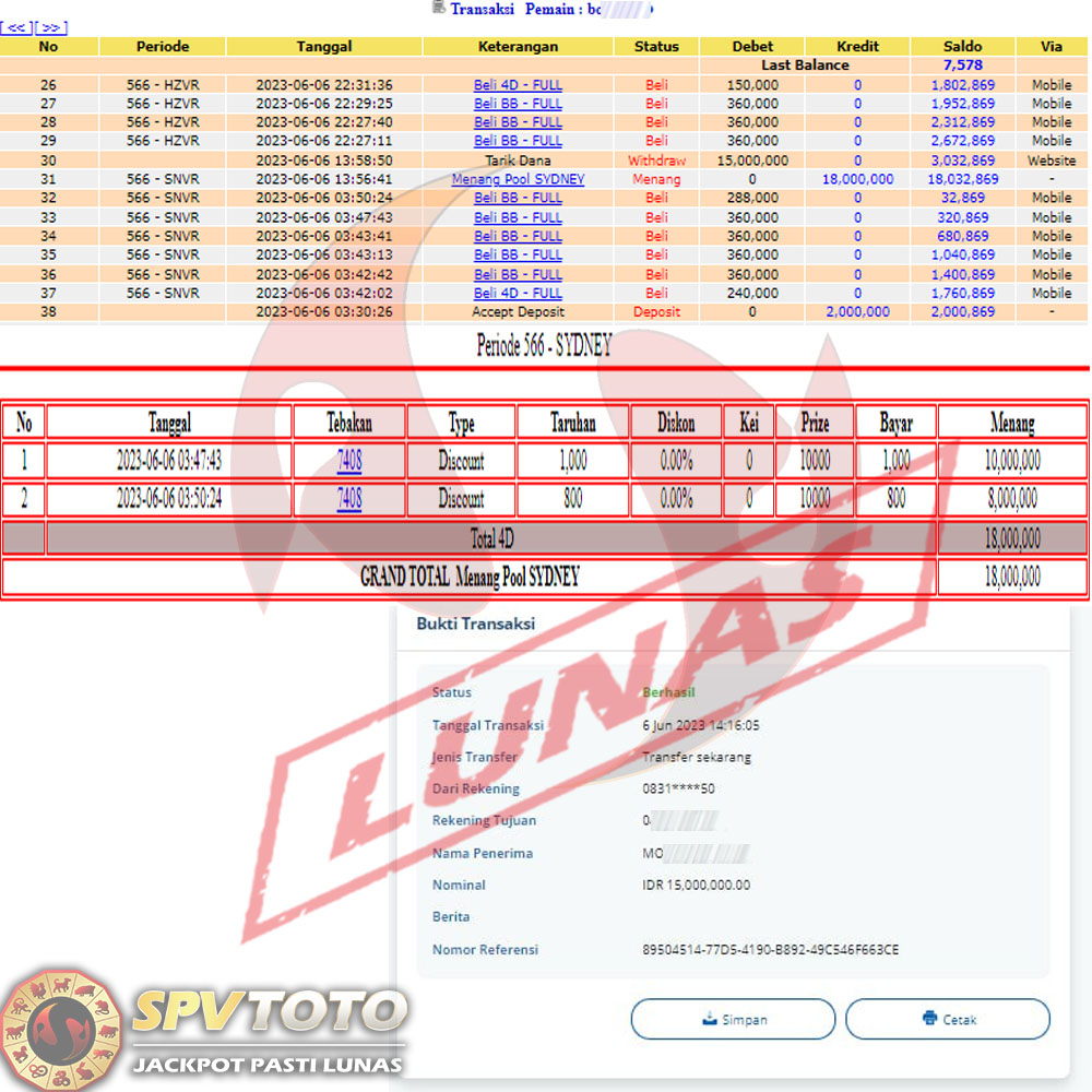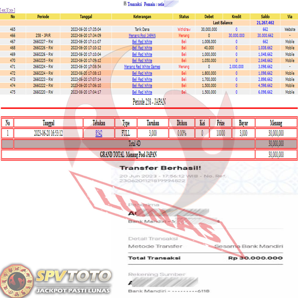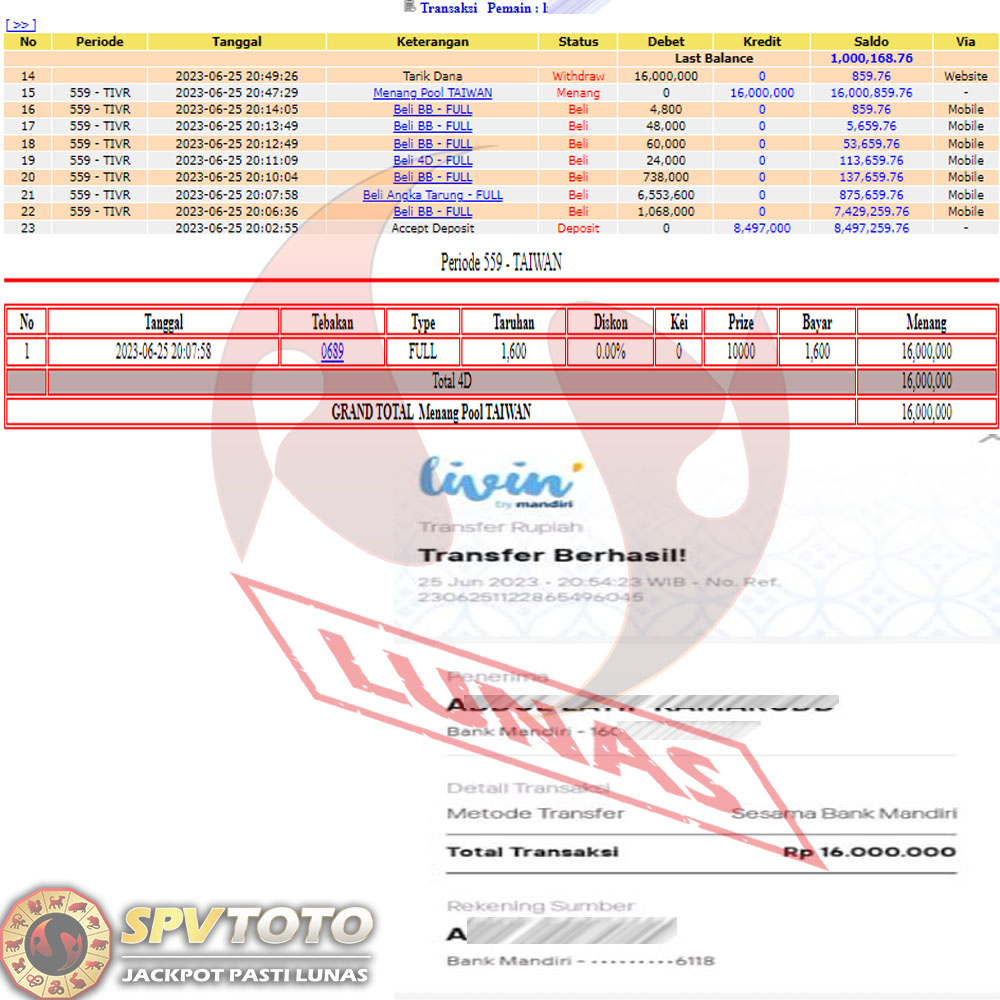 SELAMAT KEPADA MEMBER YANG MENDAPATKAN JACKPOT DI SPVTOTO