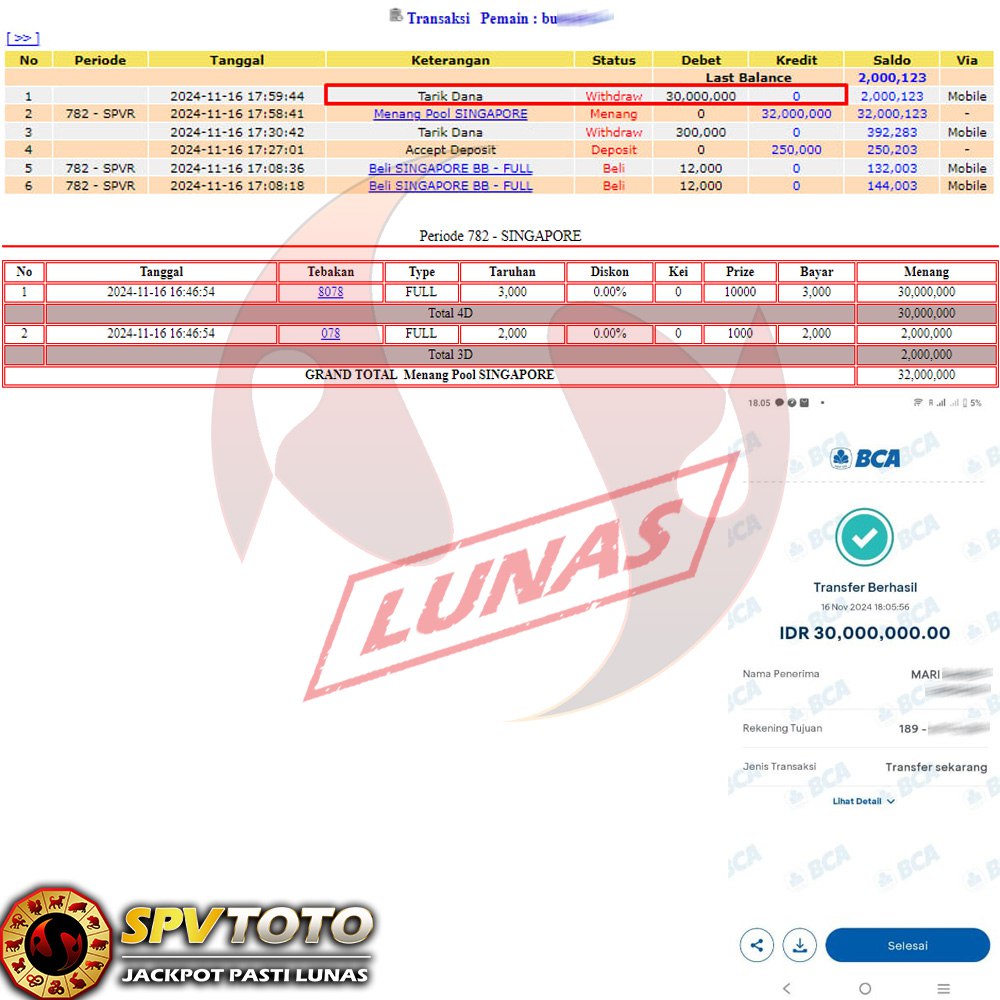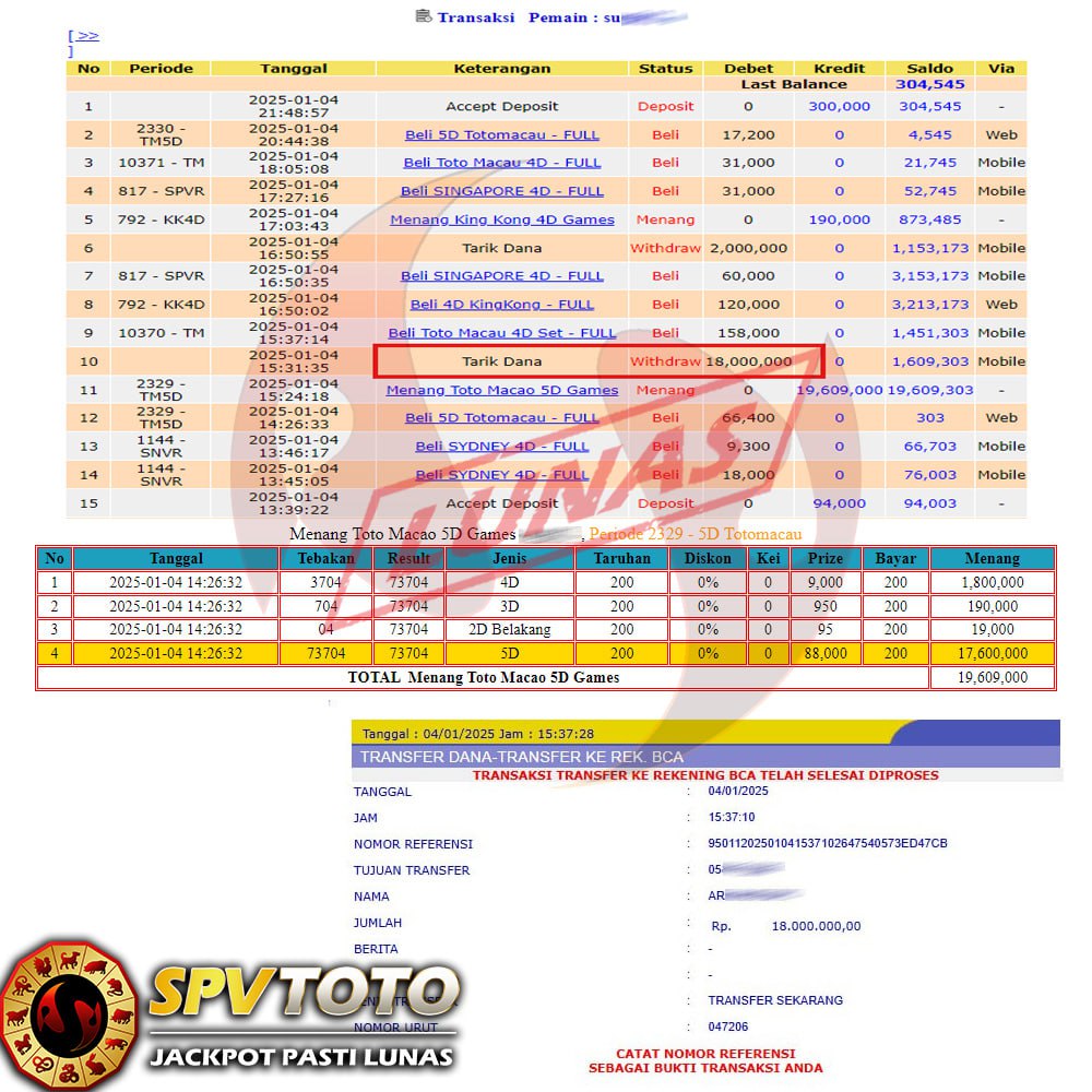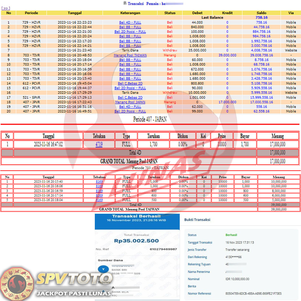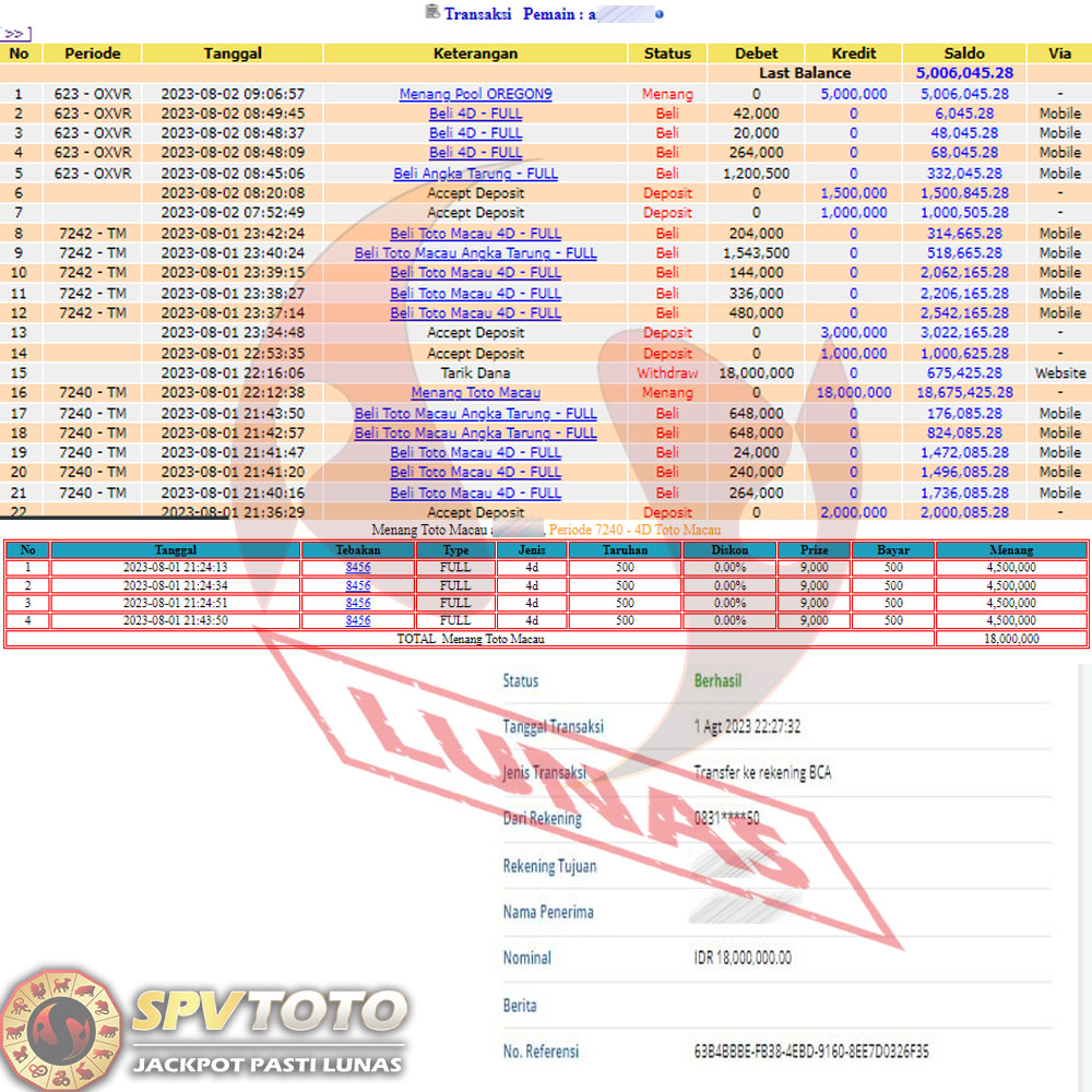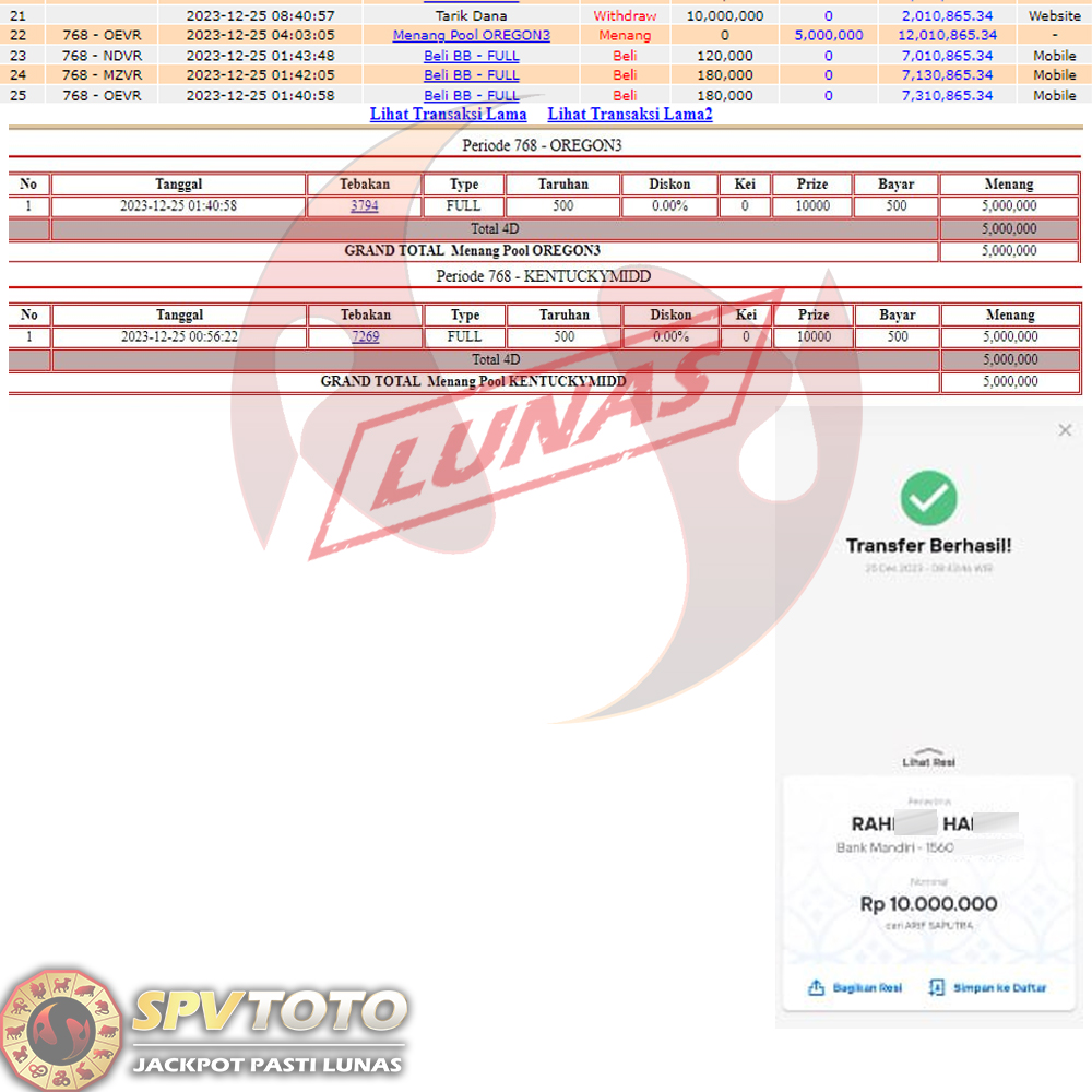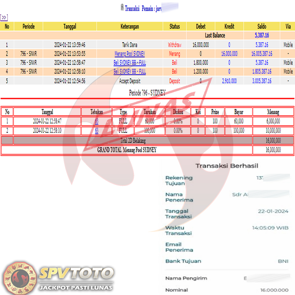 SELAMAT KEPADA MEMBER YANG MENDAPATKAN JACKPOT DI SPVTOTO