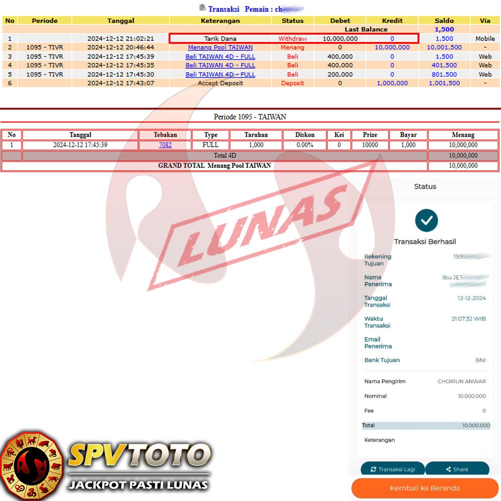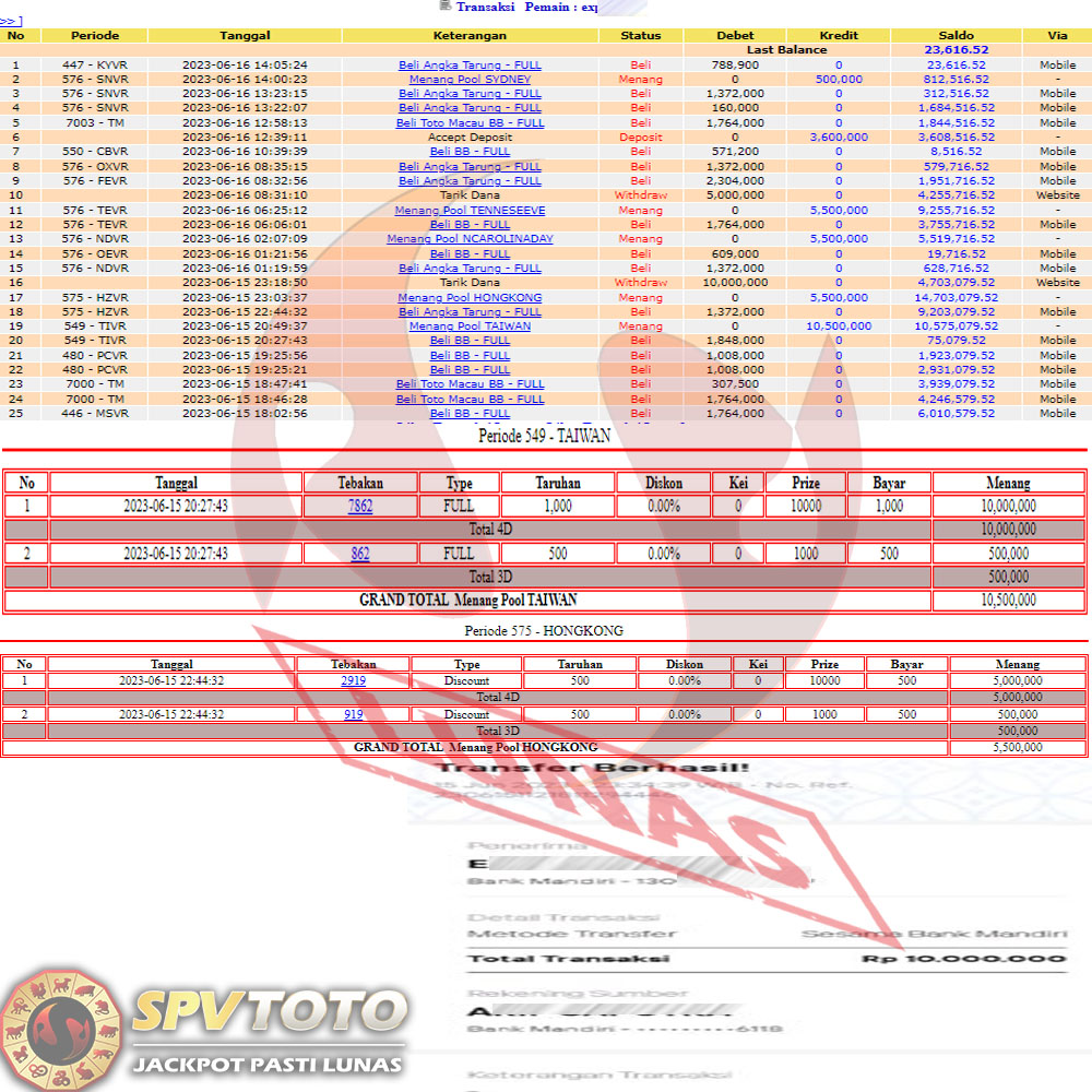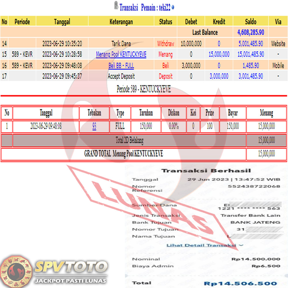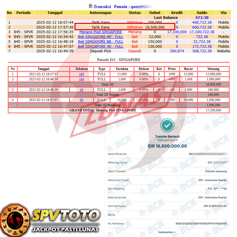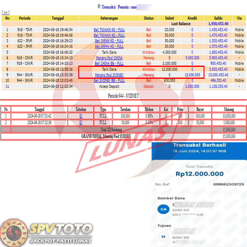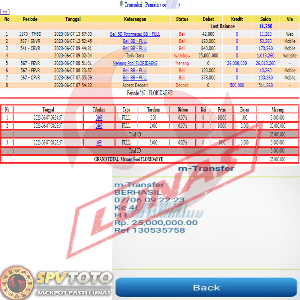 SELAMAT KEPADA MEMBER YANG MENDAPATKAN JACKPOT DI SPVTOTO
