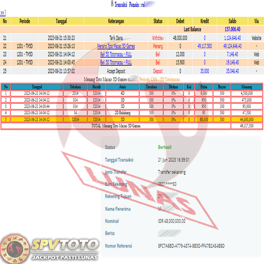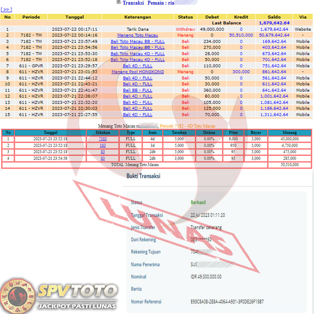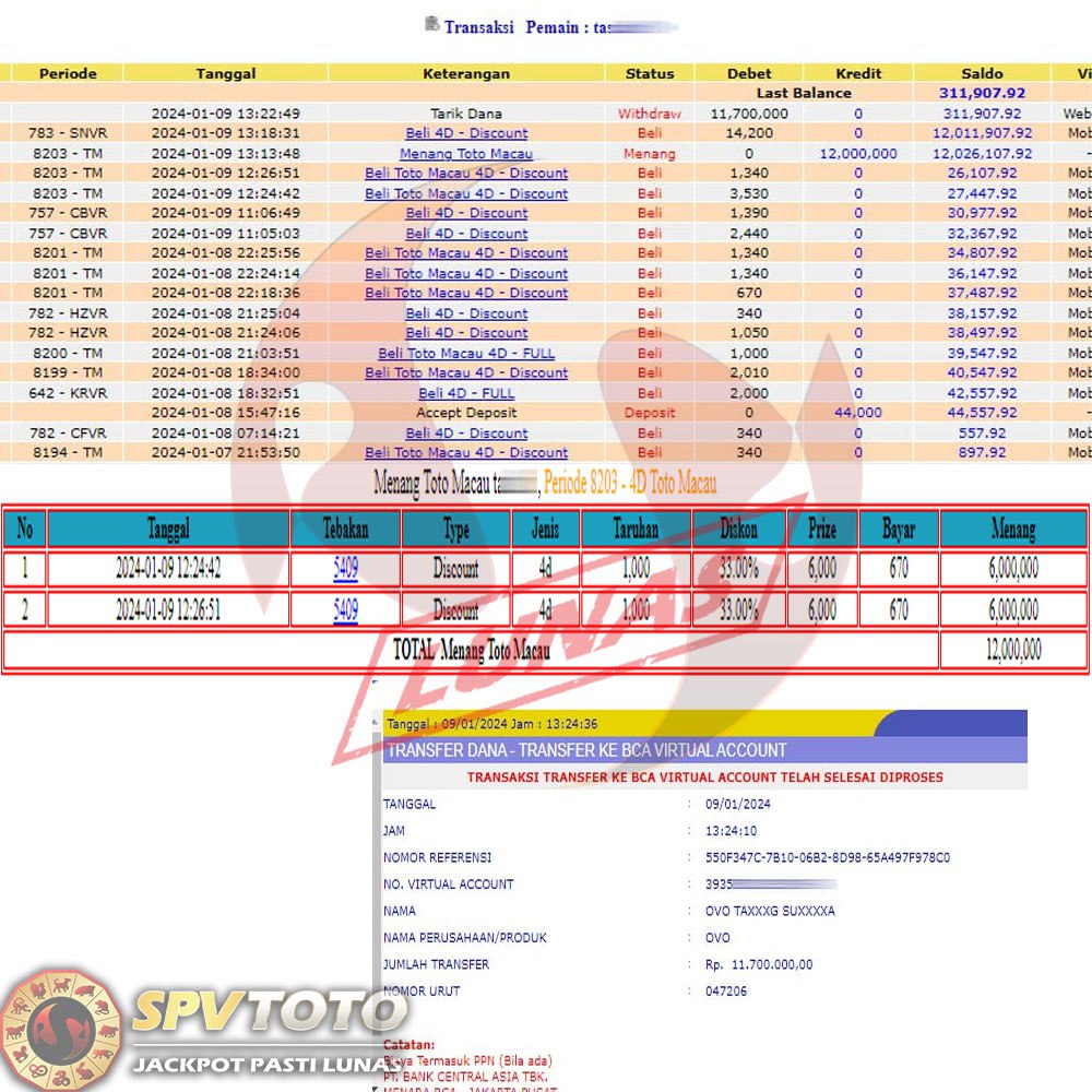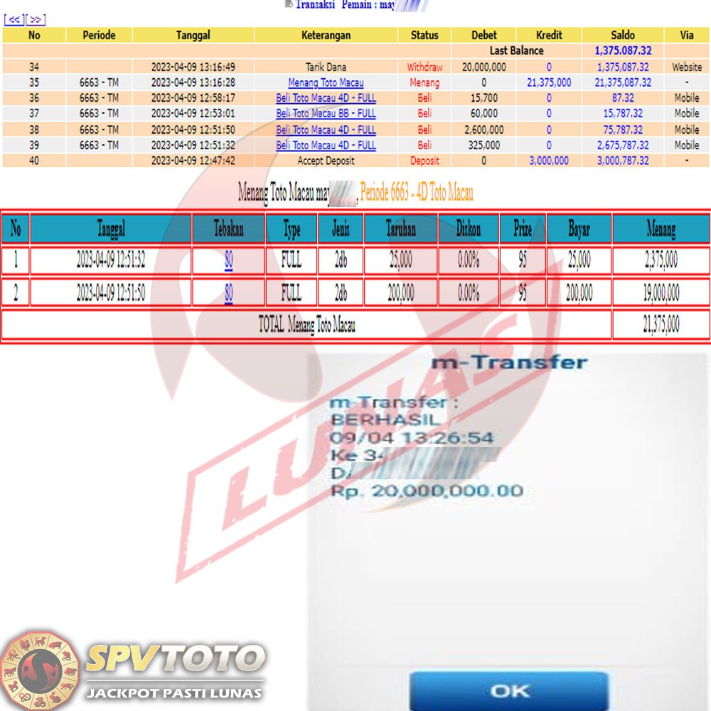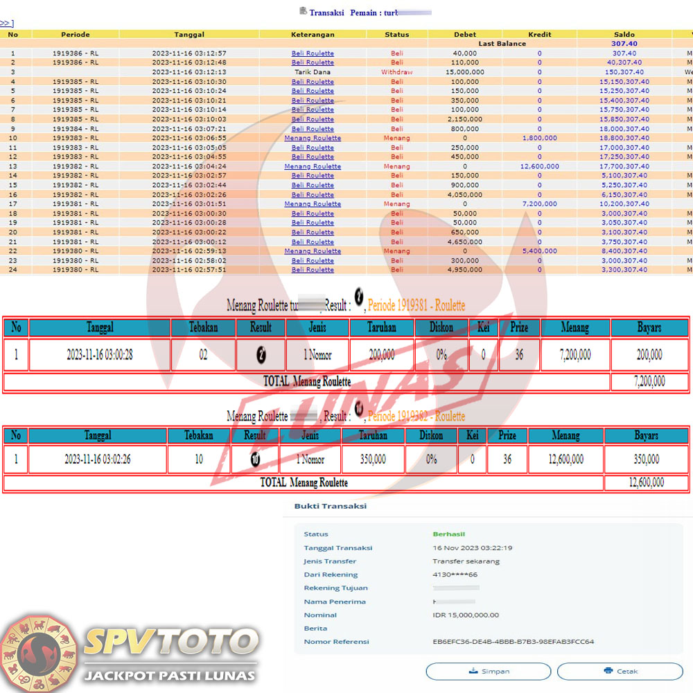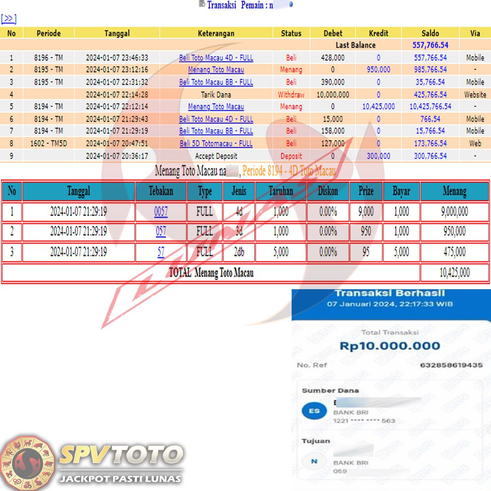 SELAMAT KEPADA MEMBER YANG MENDAPATKAN JACKPOT DI SPVTOTO
