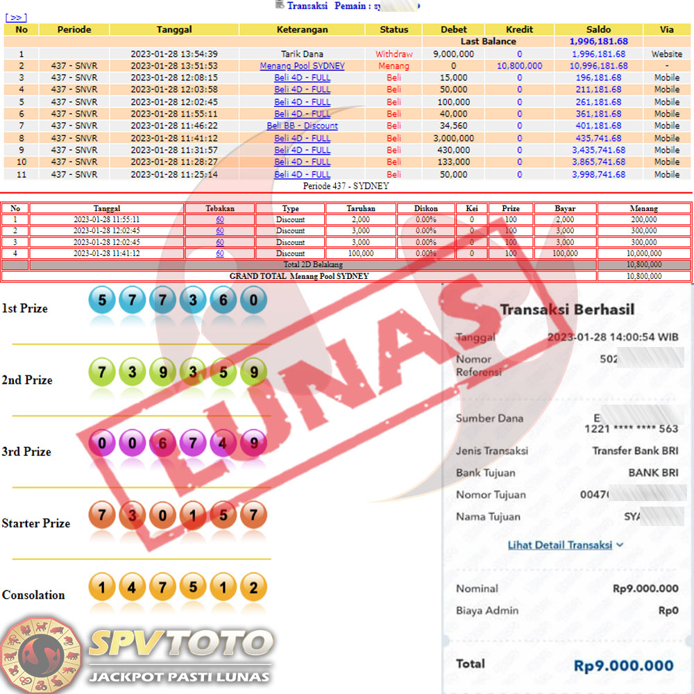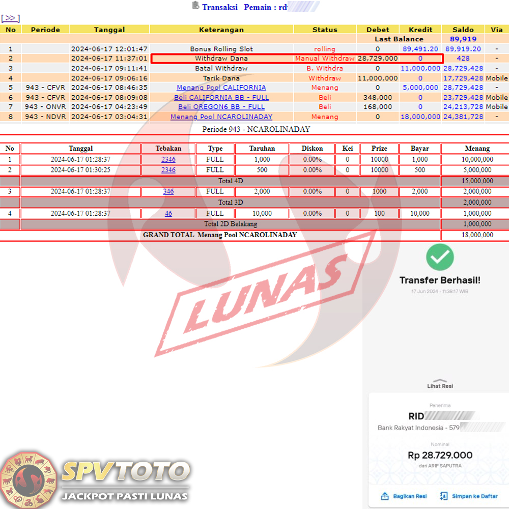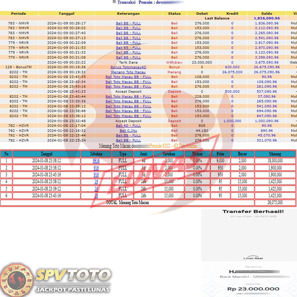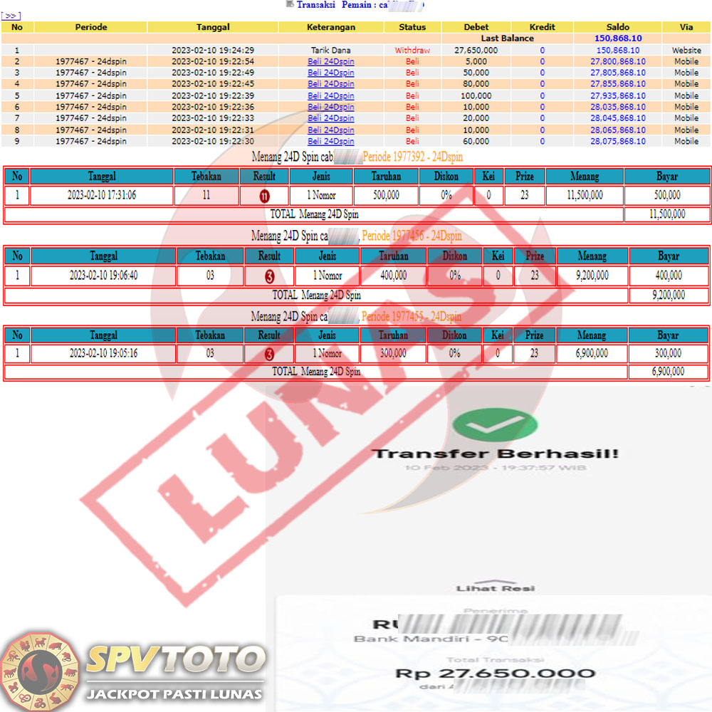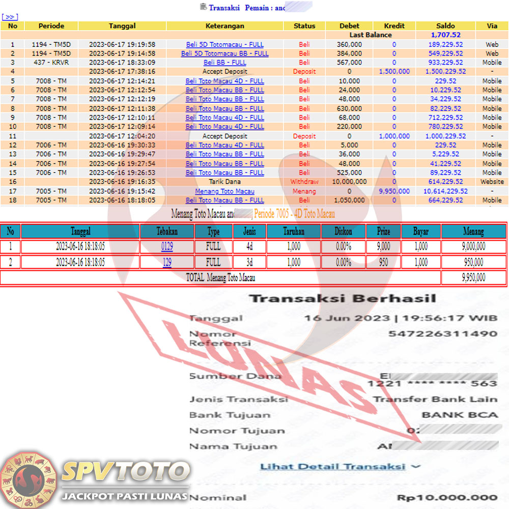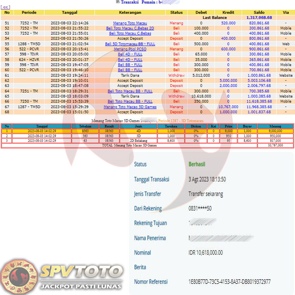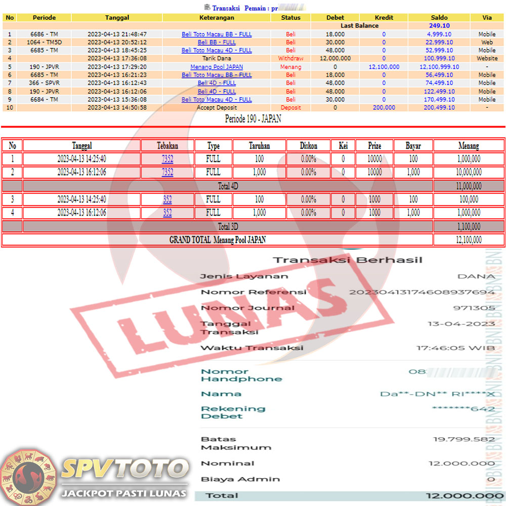 SELAMAT KEPADA MEMBER YANG MENDAPATKAN JACKPOT DI SPVTOTO