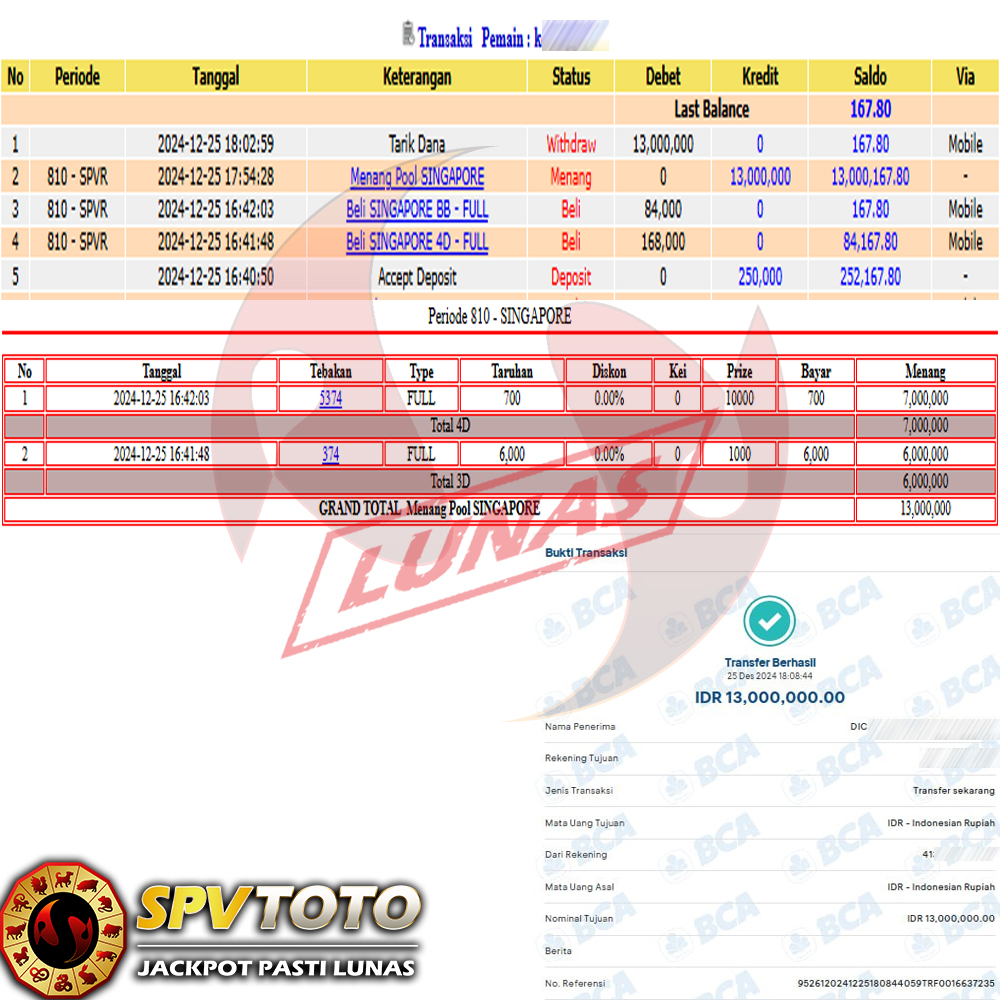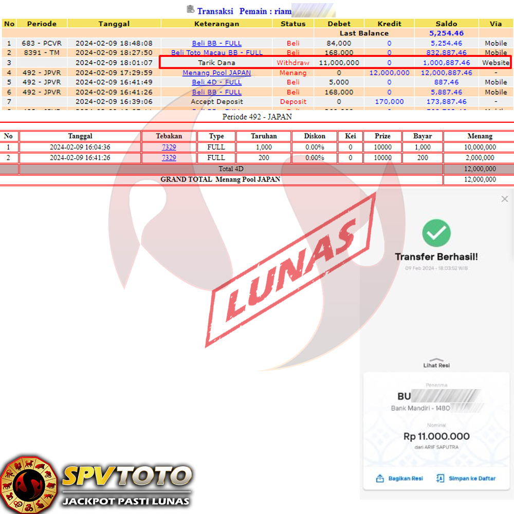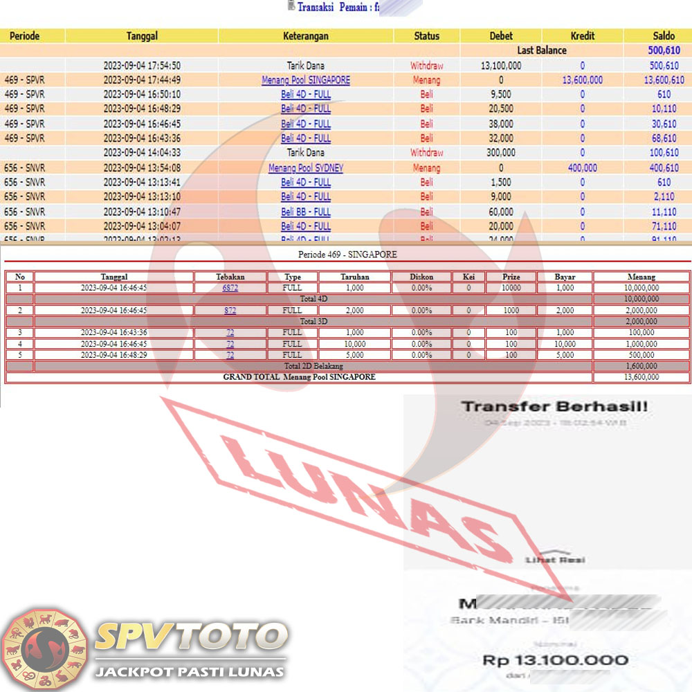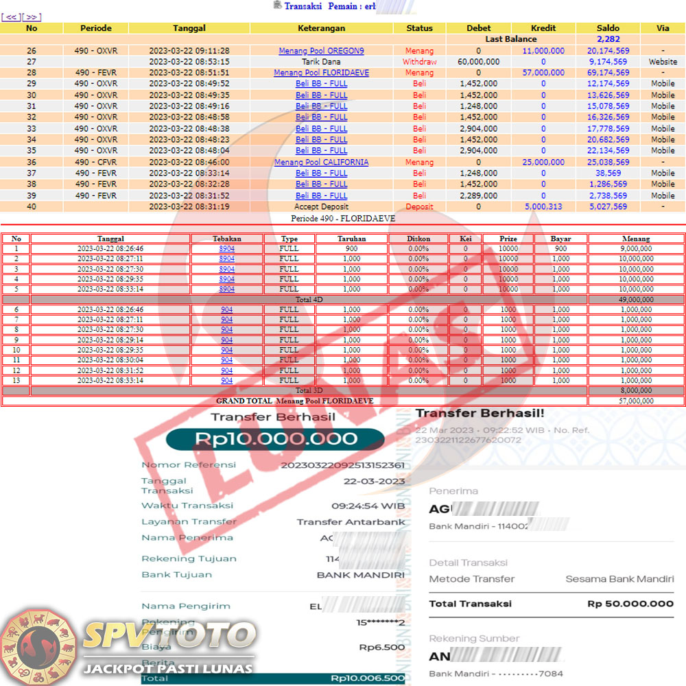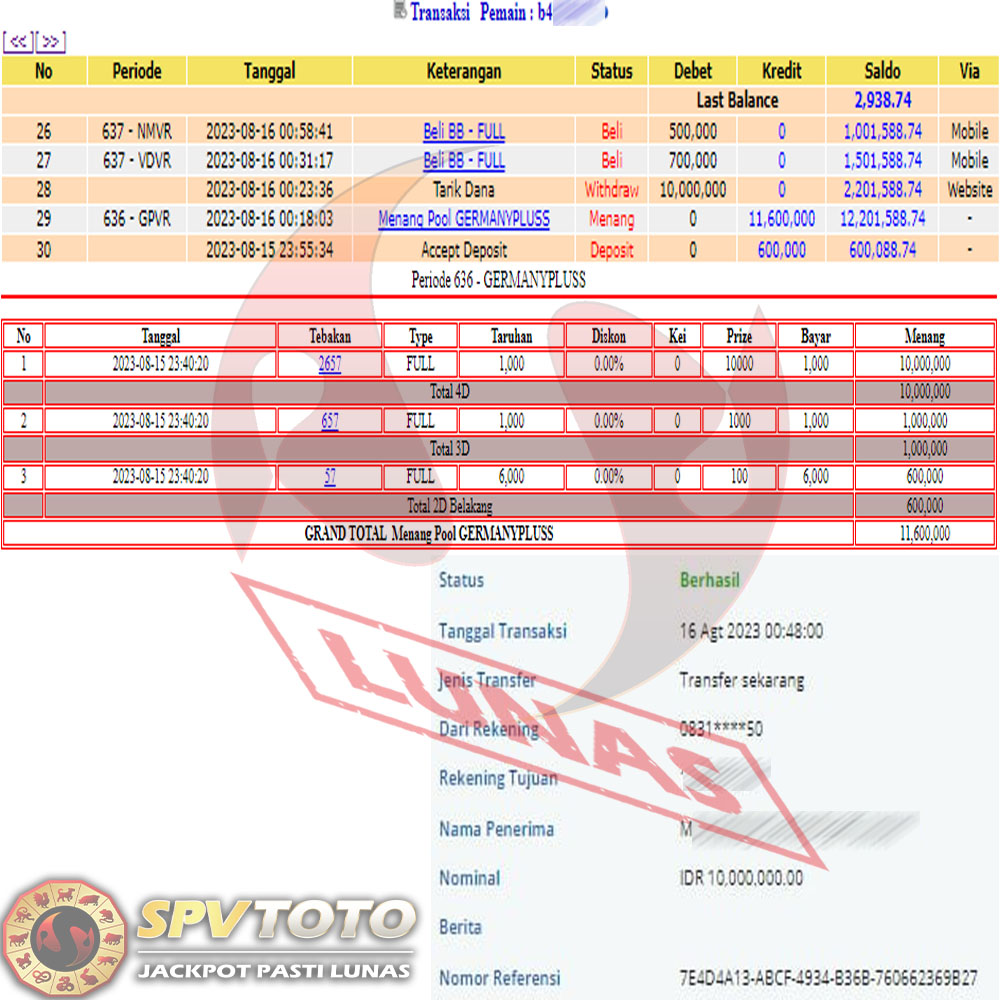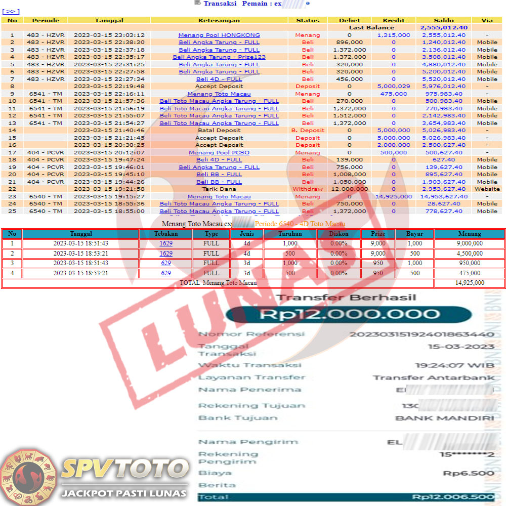 SELAMAT KEPADA MEMBER YANG MENDAPATKAN JACKPOT DI SPVTOTO