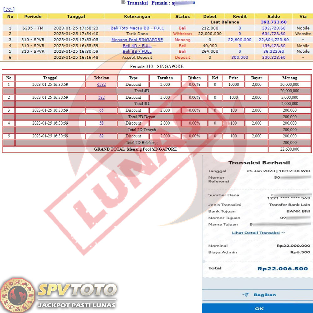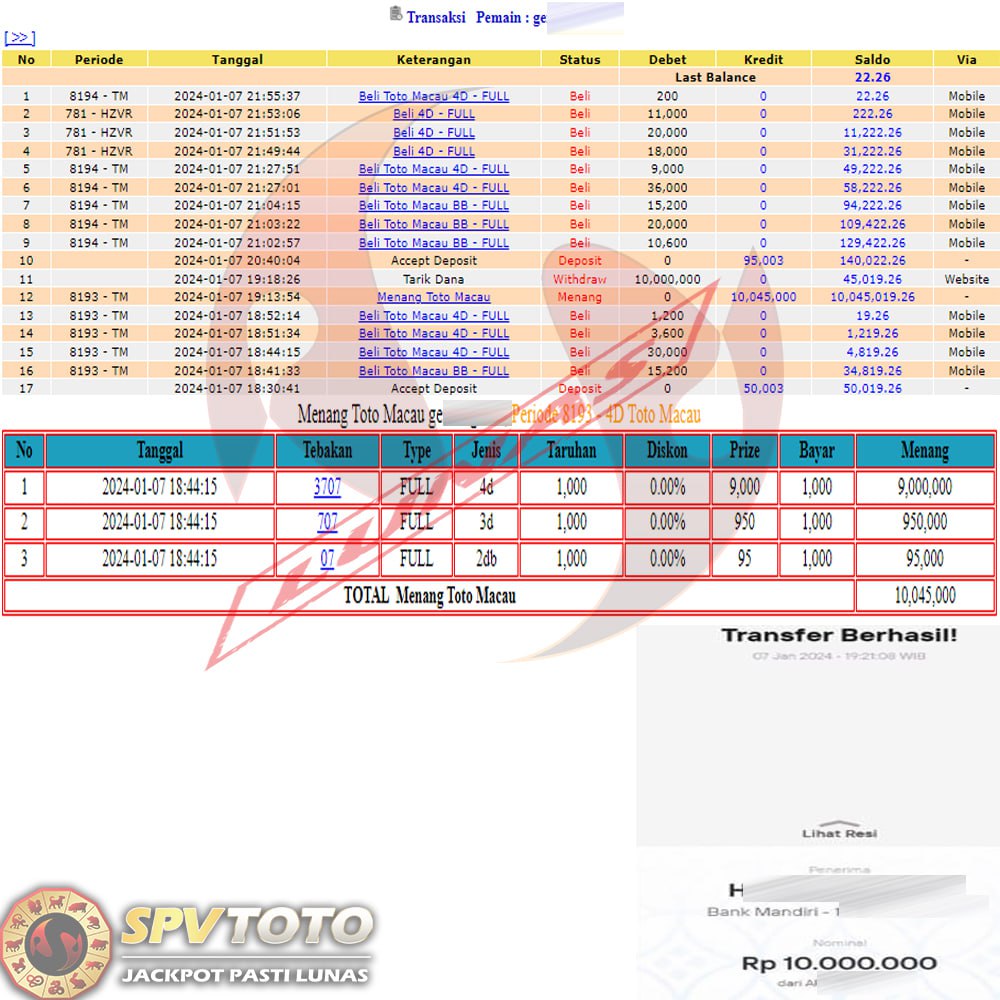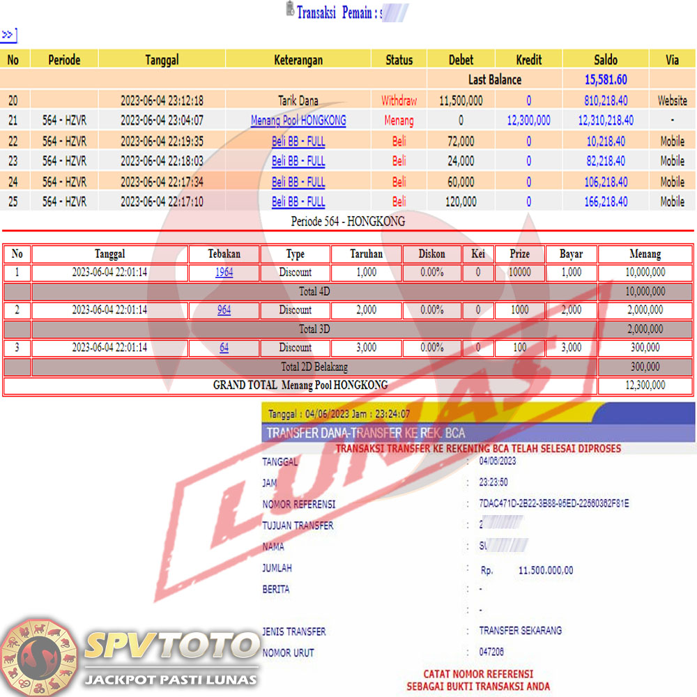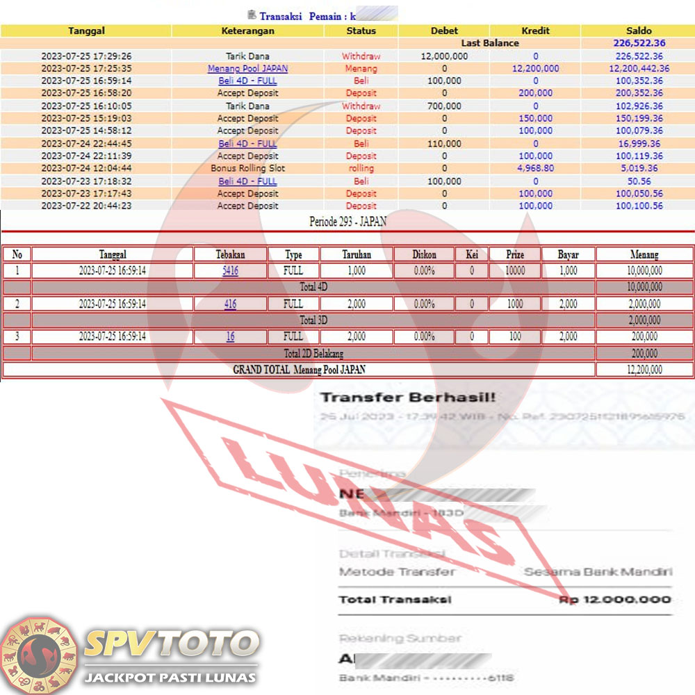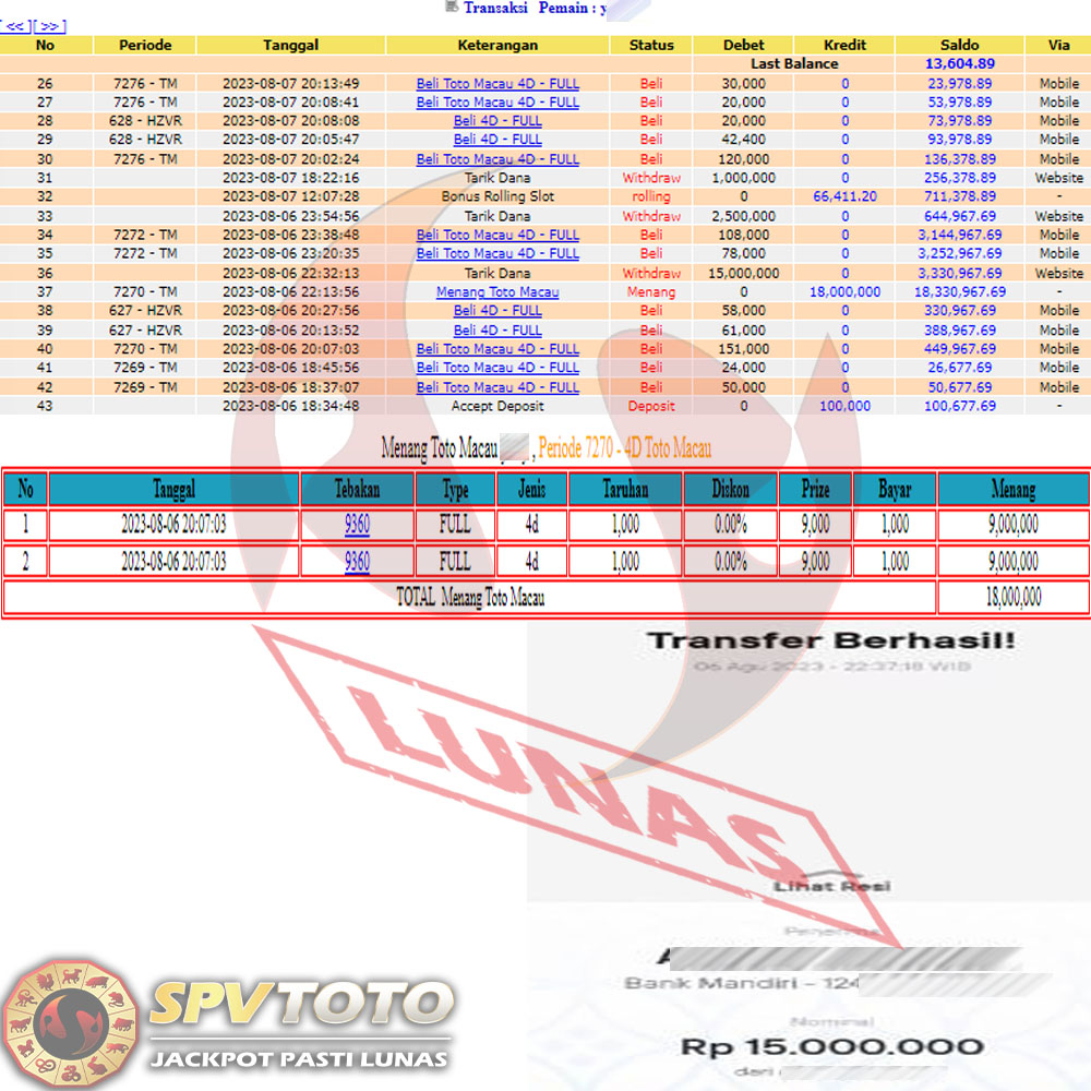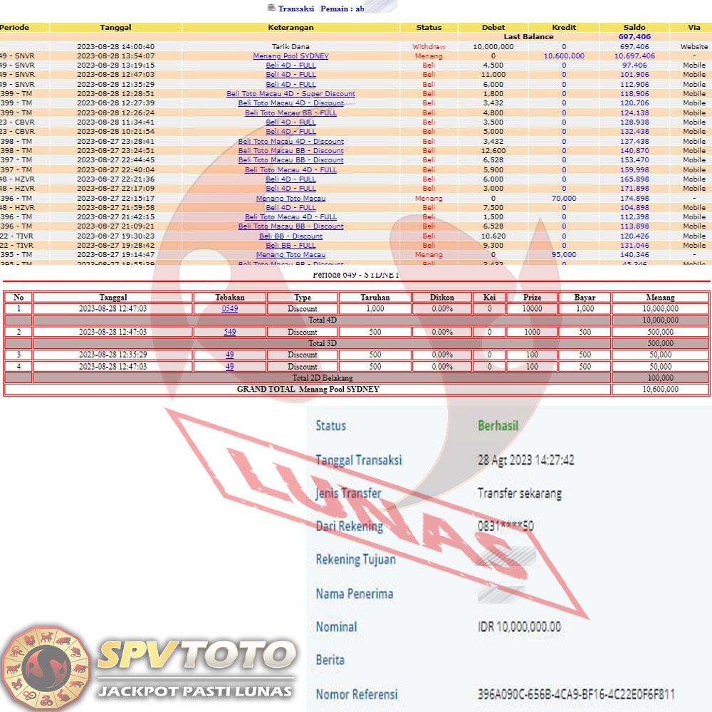 SELAMAT KEPADA MEMBER YANG MENDAPATKAN JACKPOT DI SPVTOTO