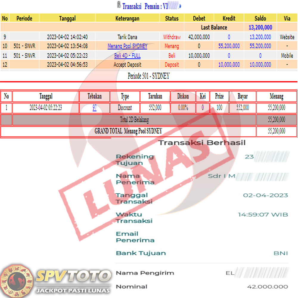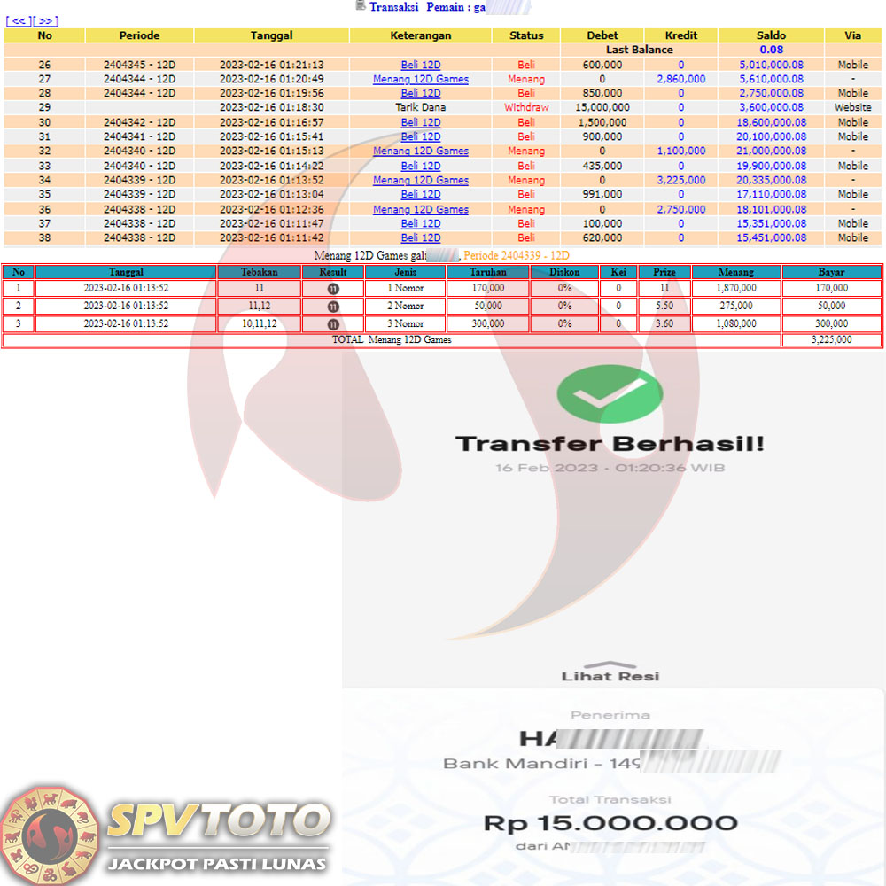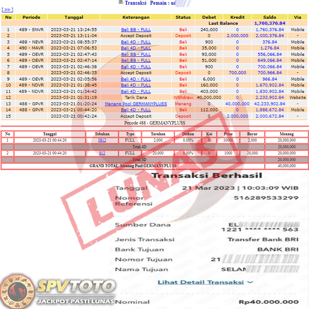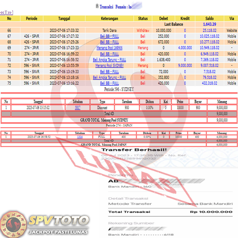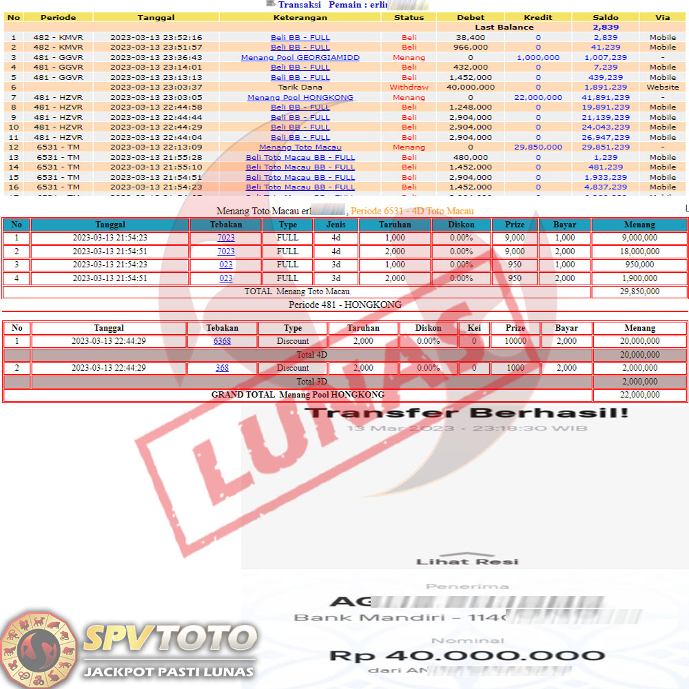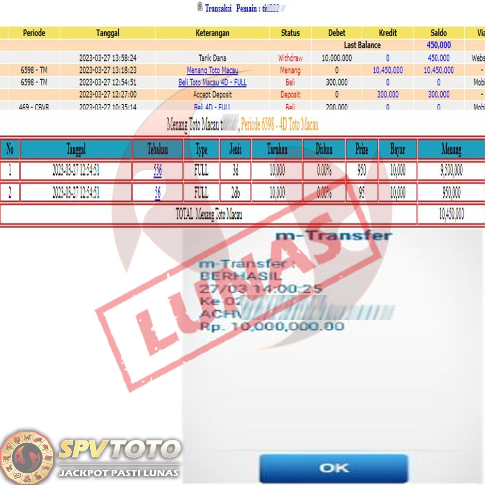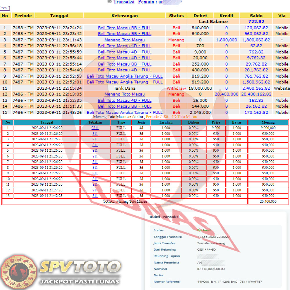 SELAMAT KEPADA MEMBER YANG MENDAPATKAN JACKPOT DI SPVTOTO