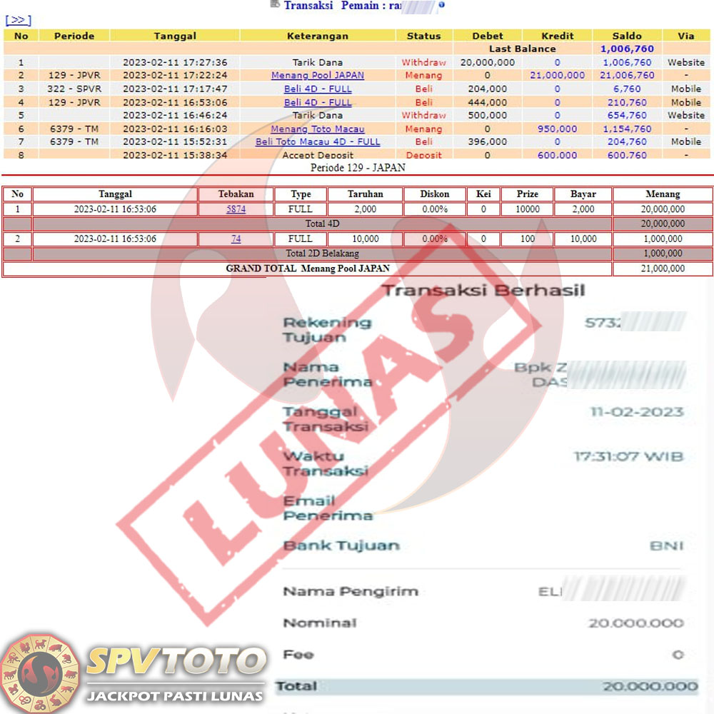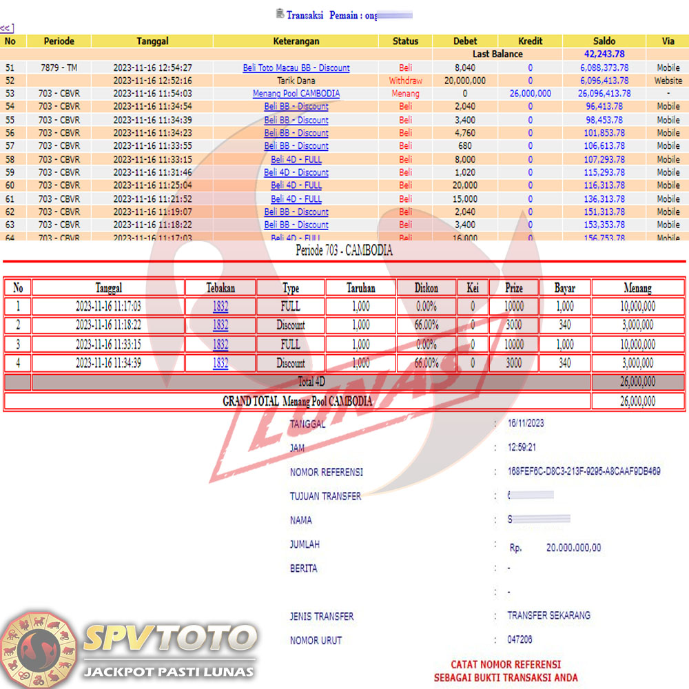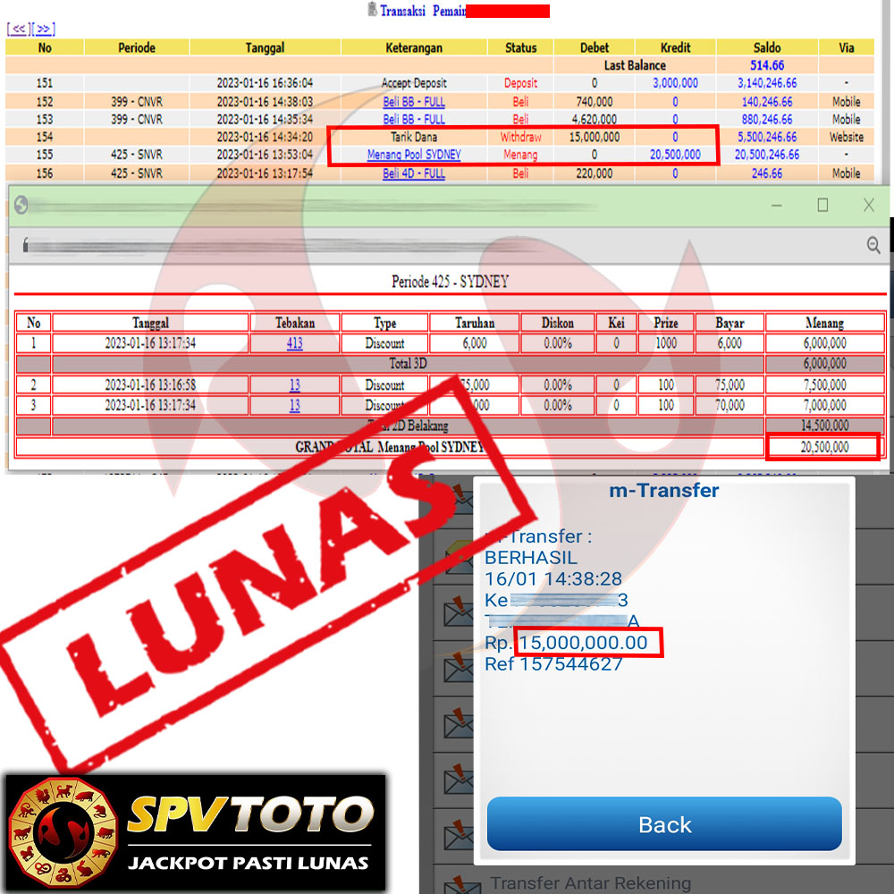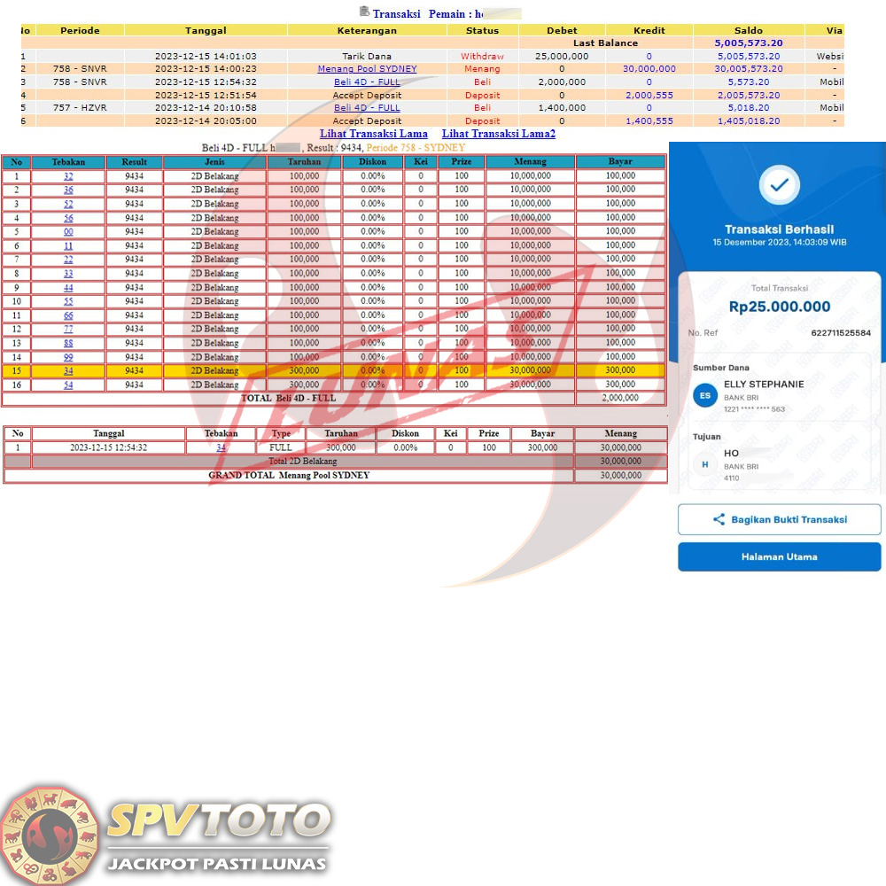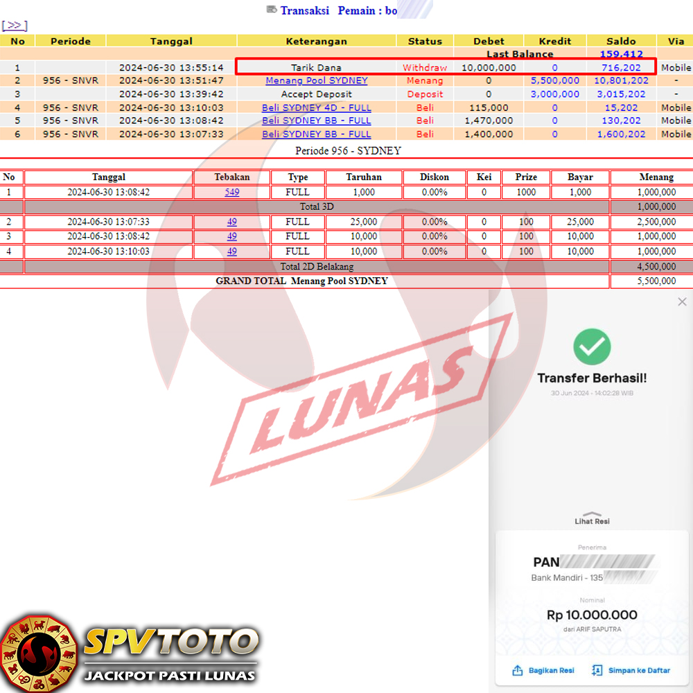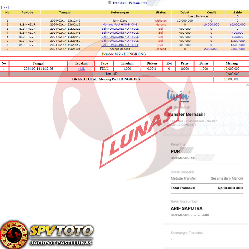 SELAMAT KEPADA MEMBER YANG MENDAPATKAN JACKPOT DI SPVTOTO
