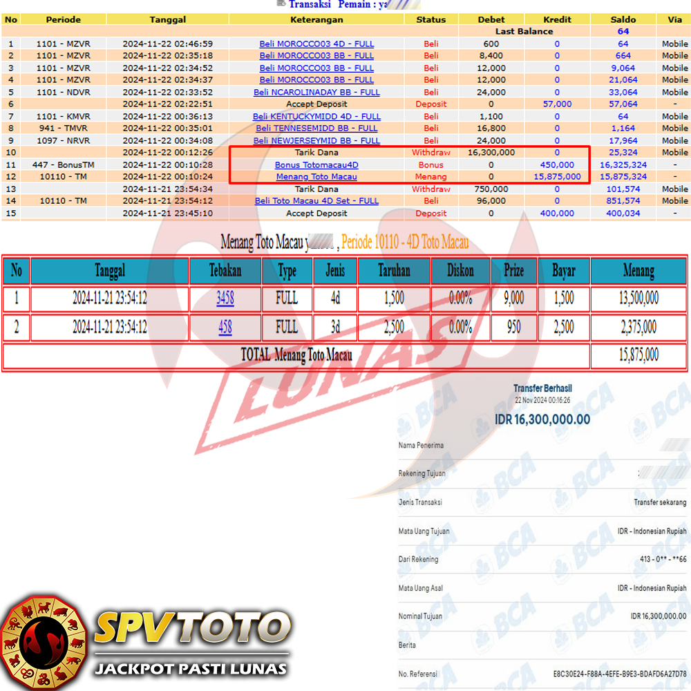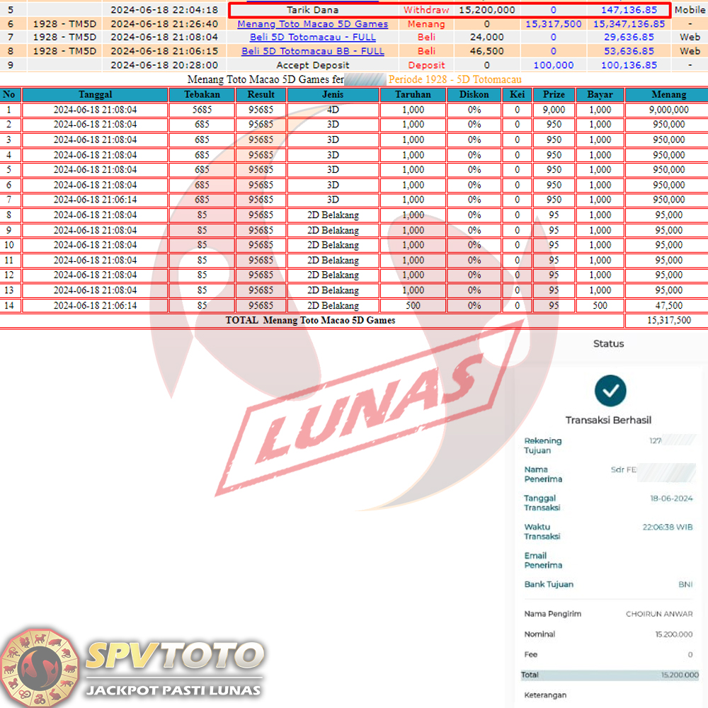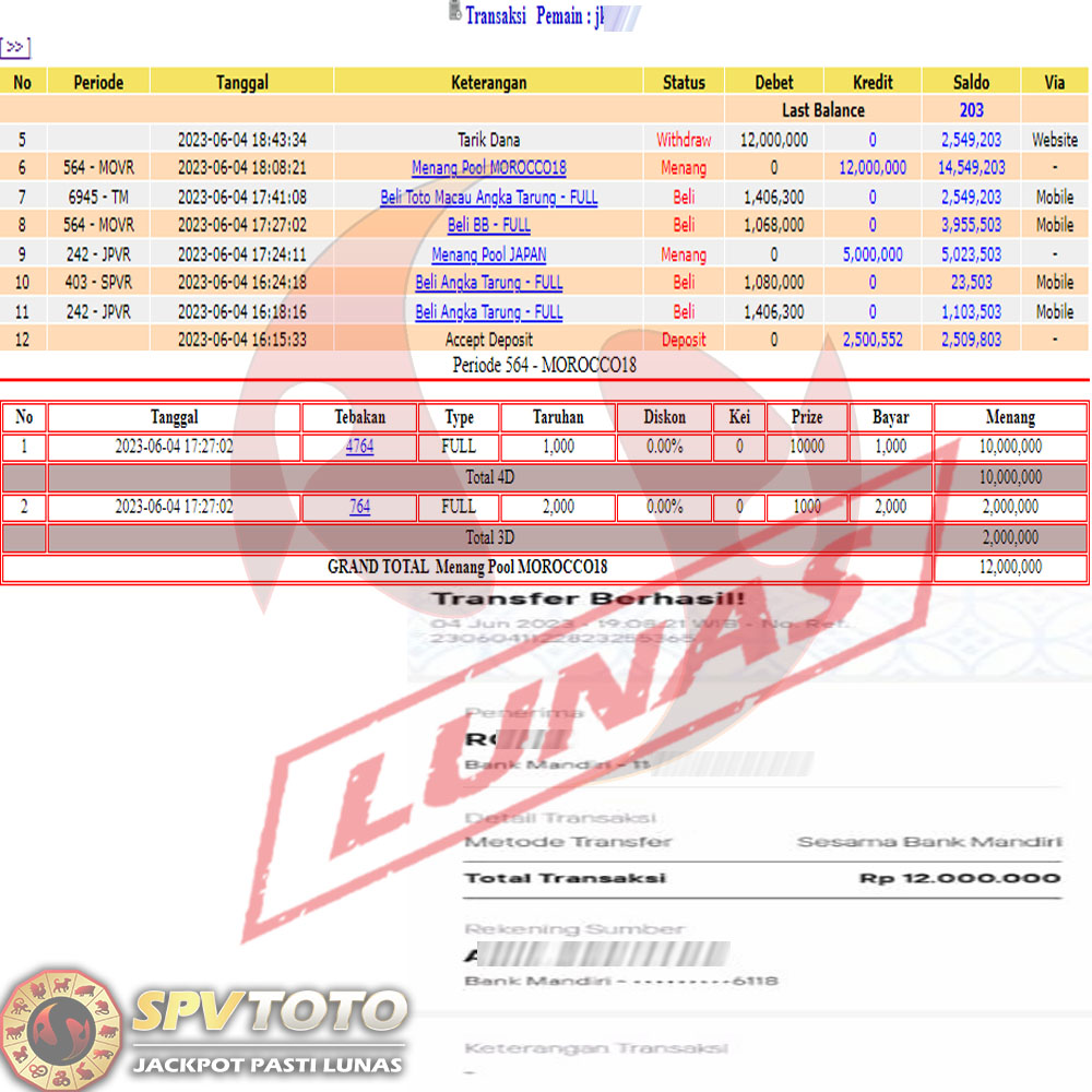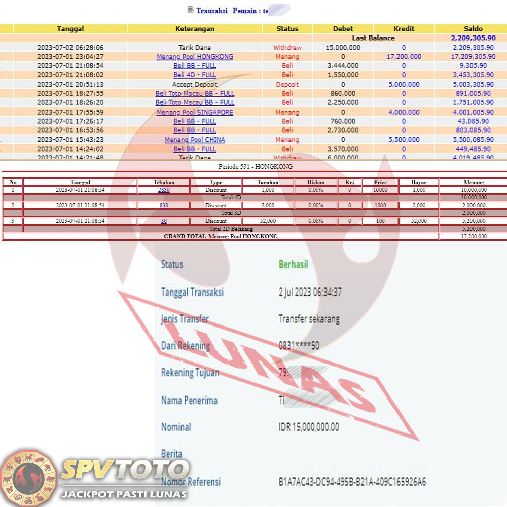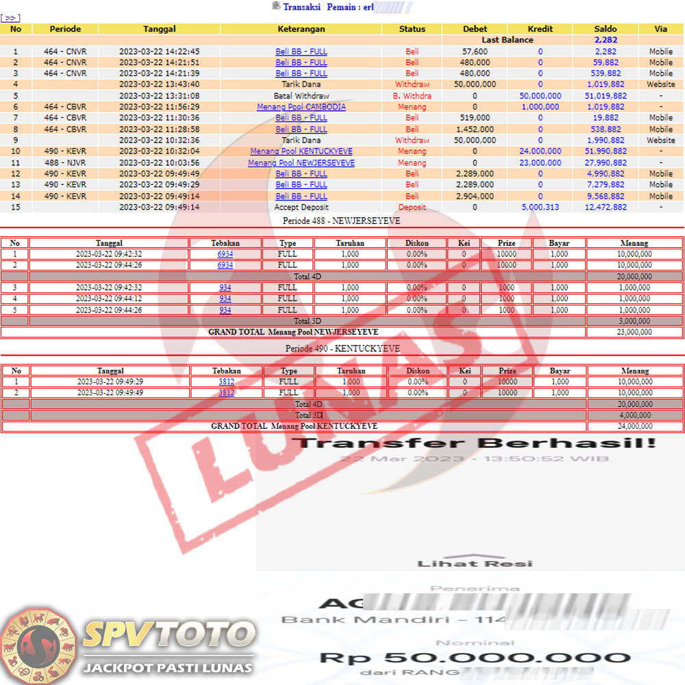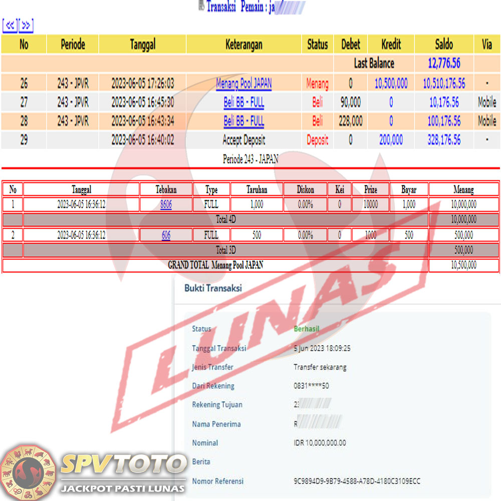 SELAMAT KEPADA MEMBER YANG MENDAPATKAN JACKPOT DI SPVTOTO