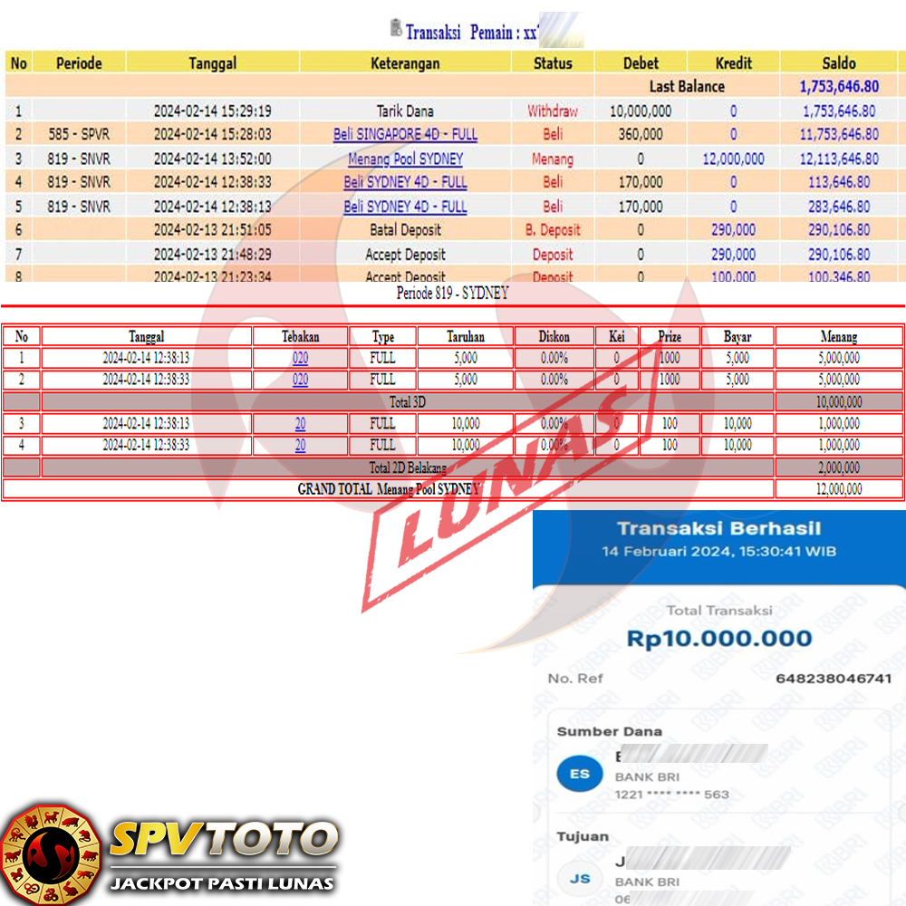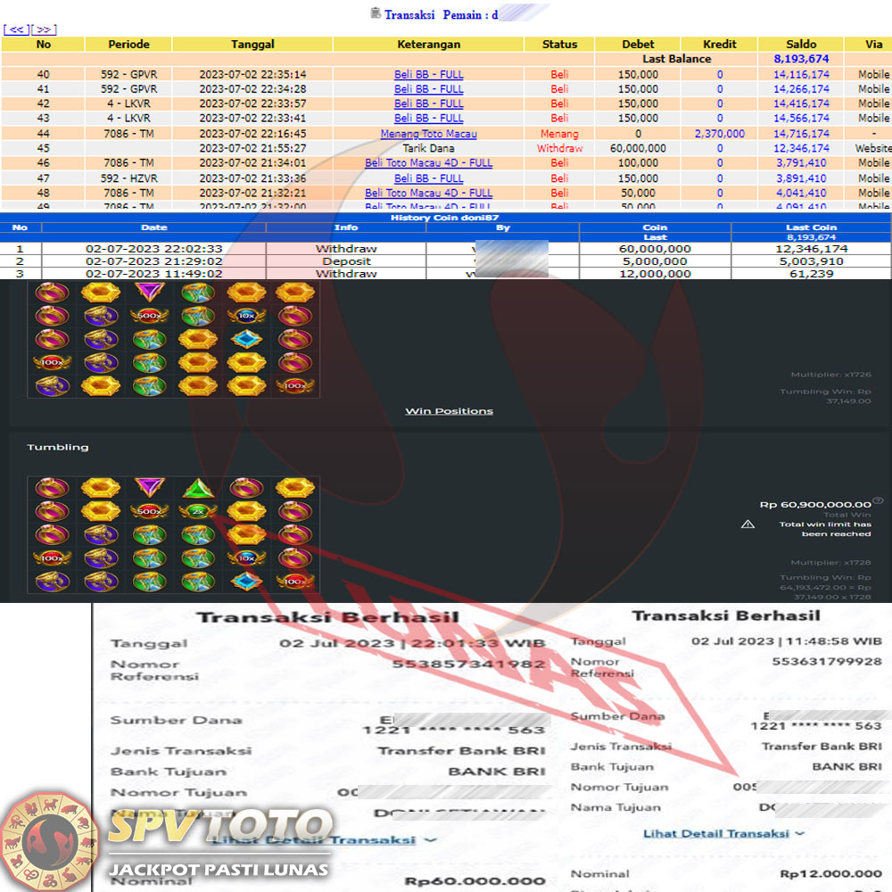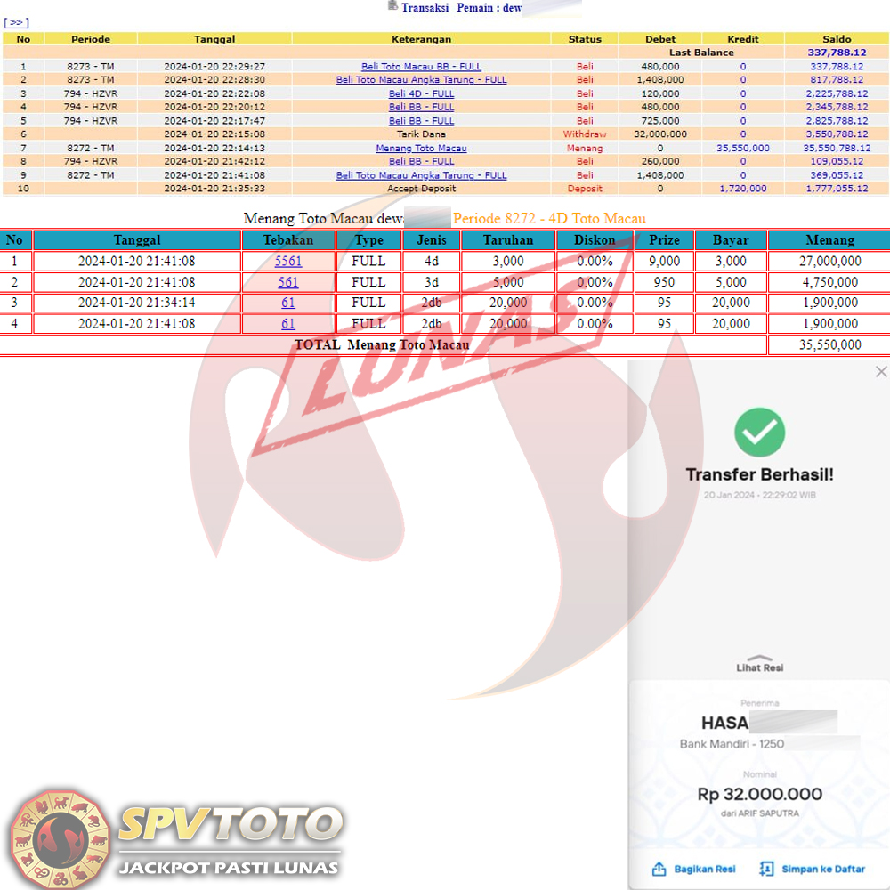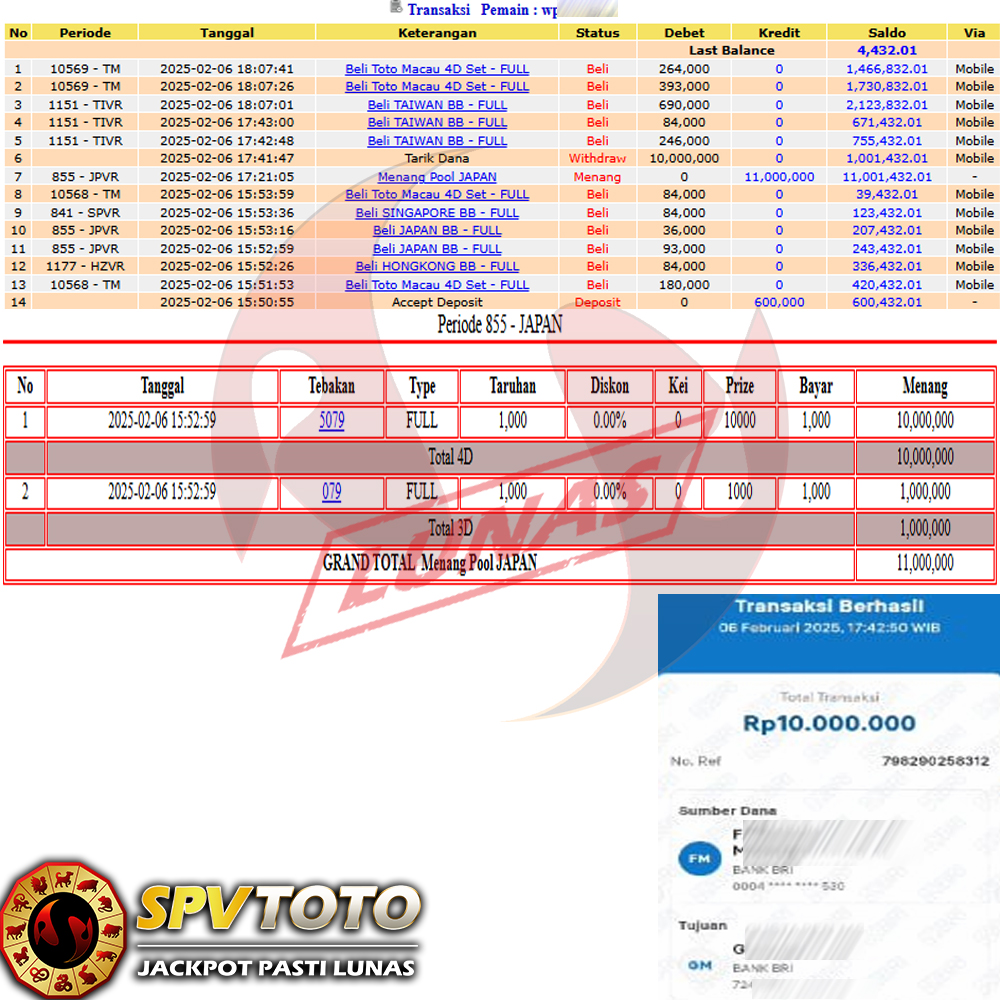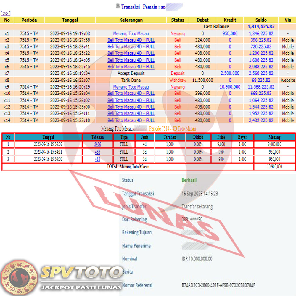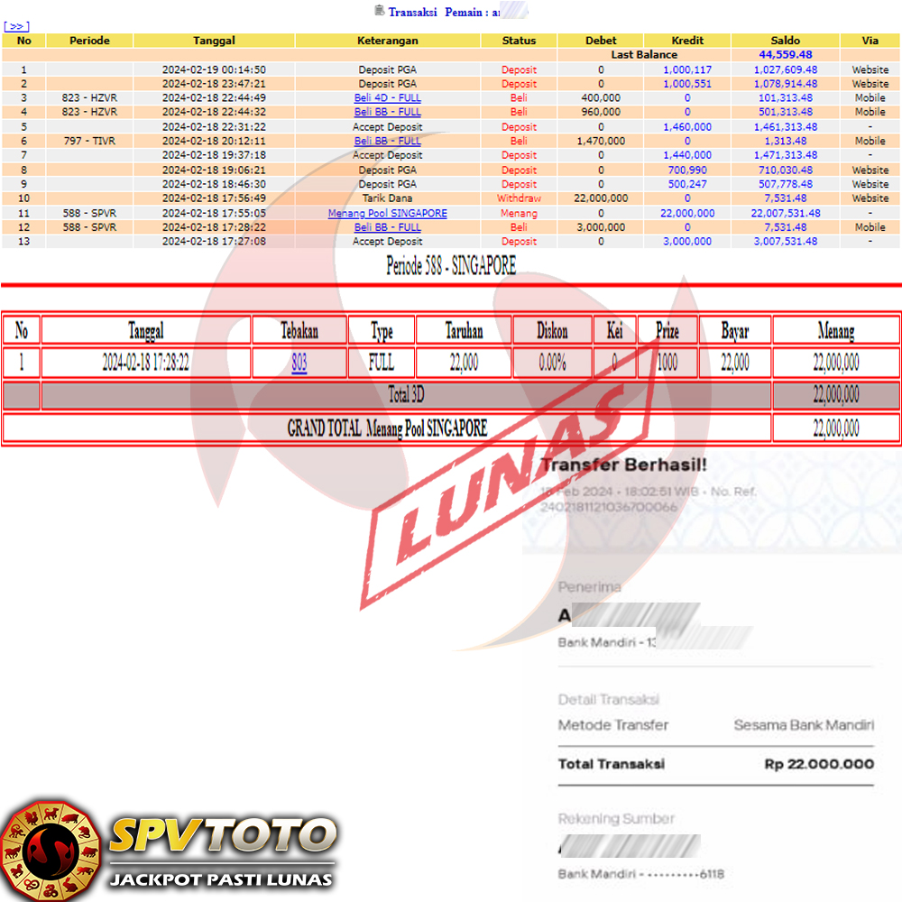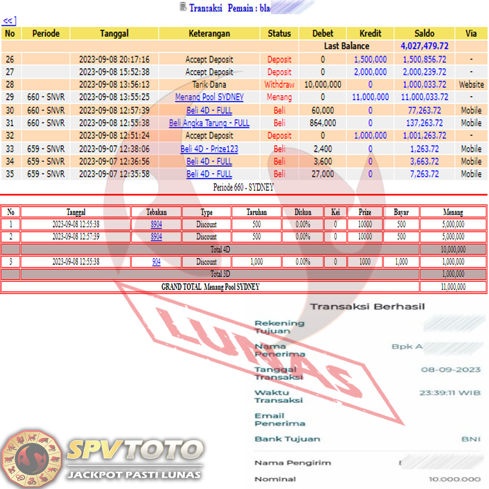 SELAMAT KEPADA MEMBER YANG MENDAPATKAN JACKPOT DI SPVTOTO