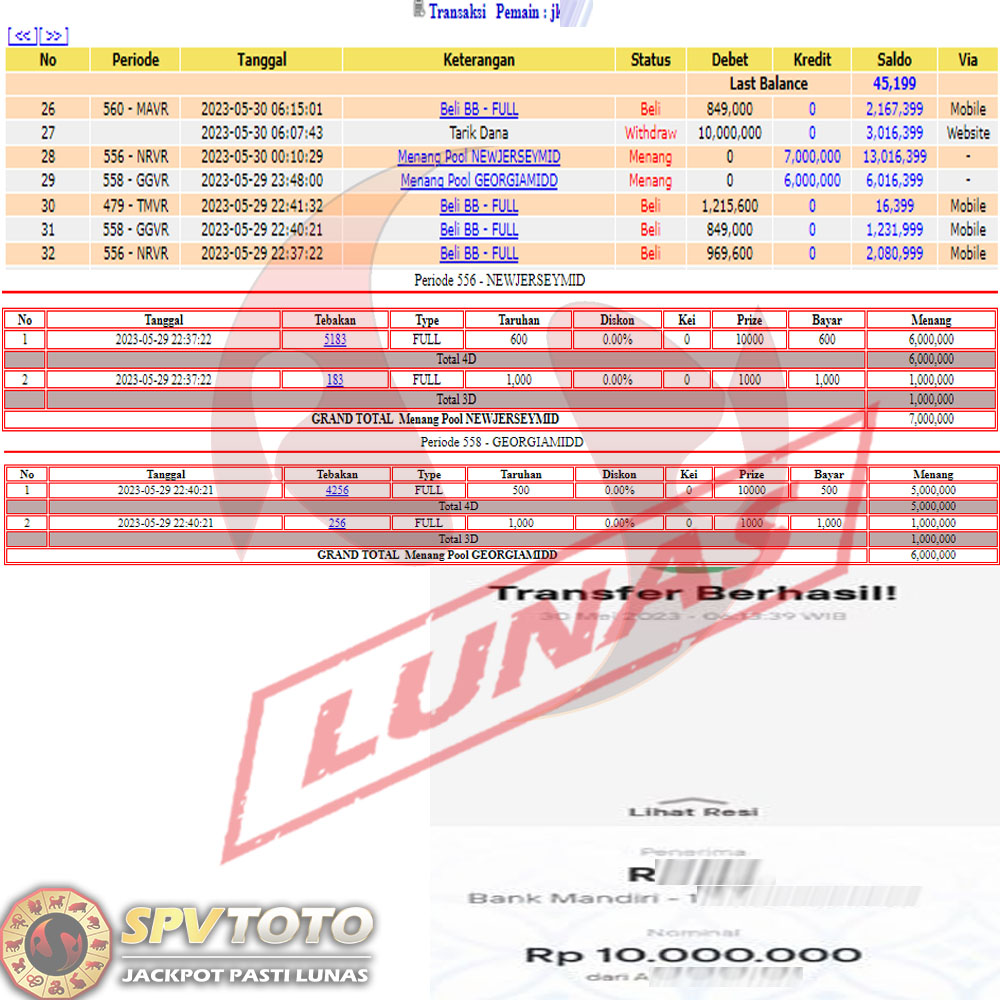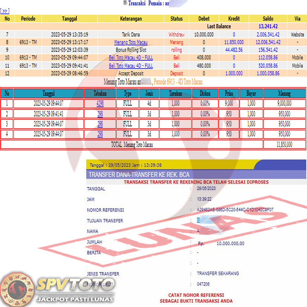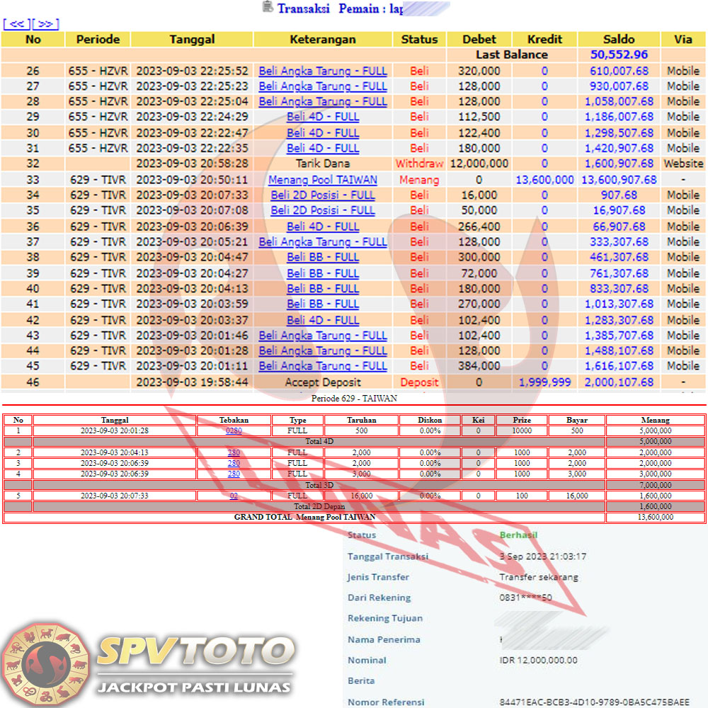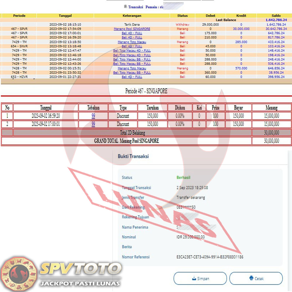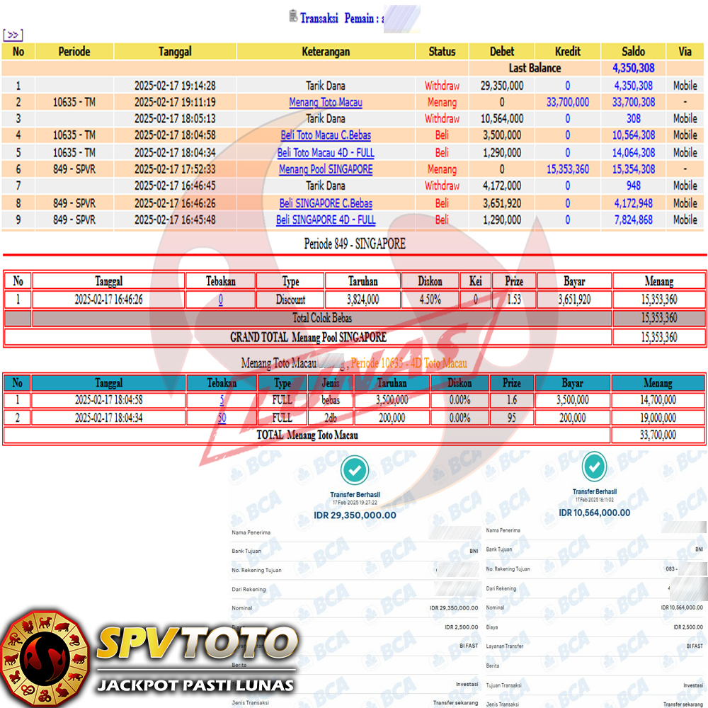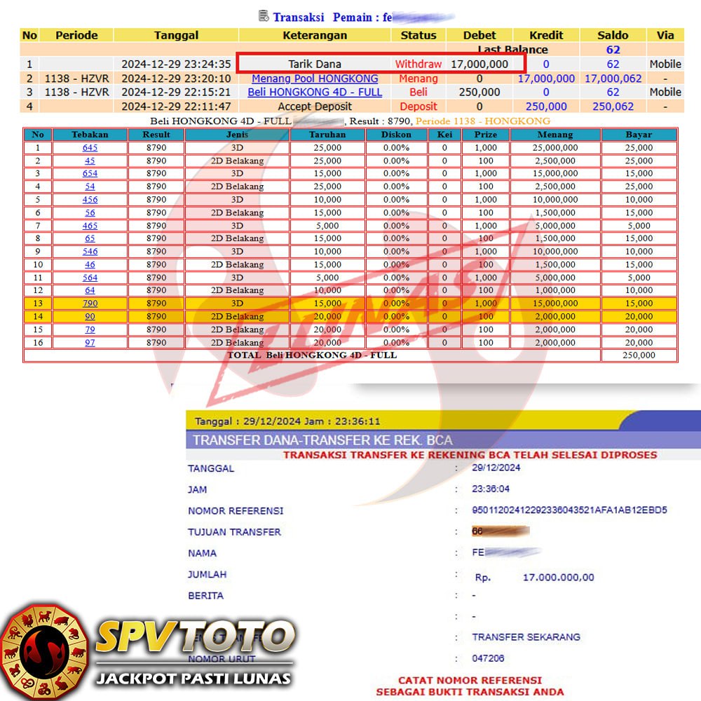 SELAMAT KEPADA MEMBER YANG MENDAPATKAN JACKPOT DI SPVTOTO