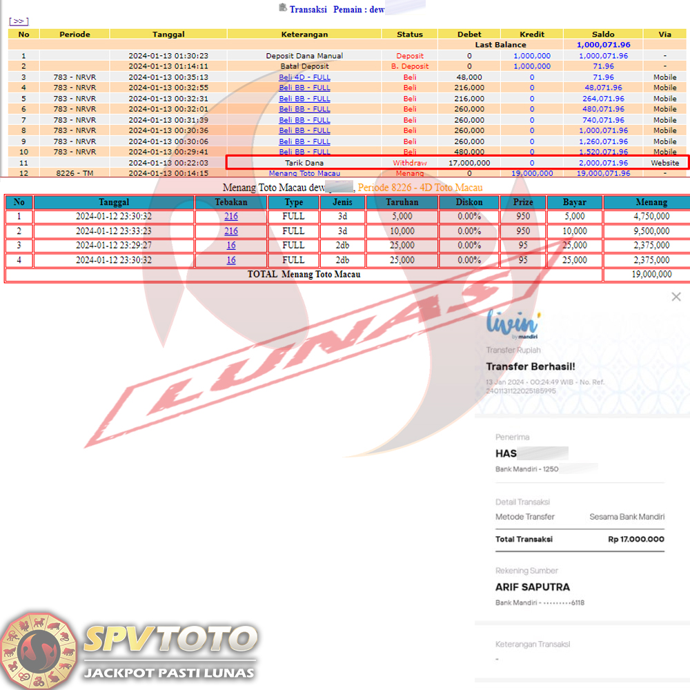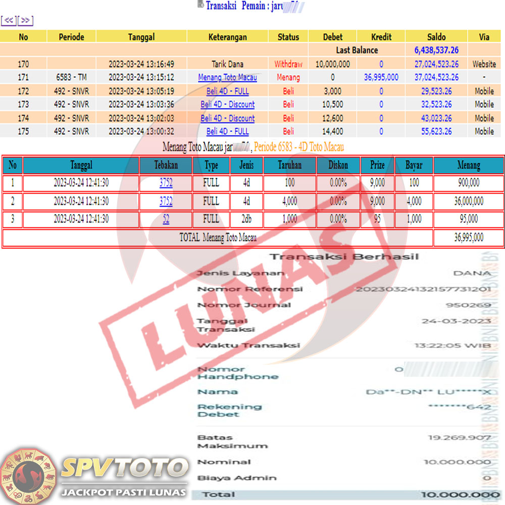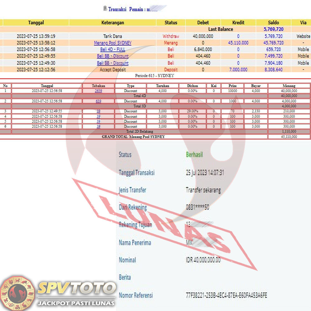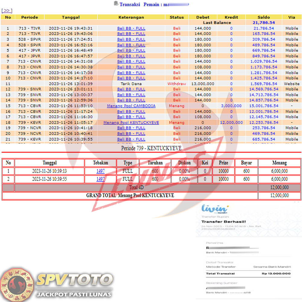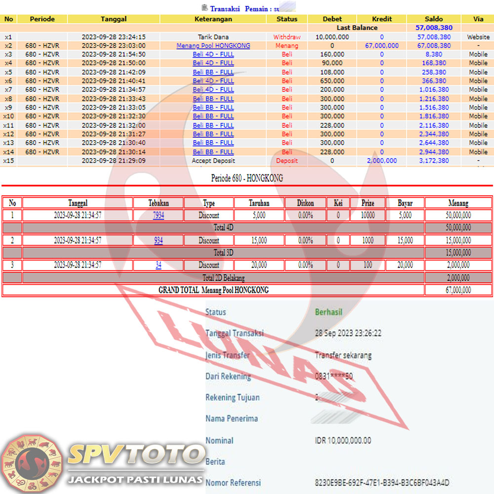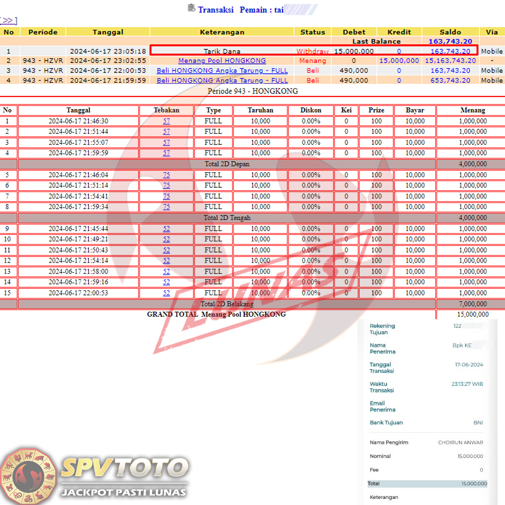 SELAMAT KEPADA MEMBER YANG MENDAPATKAN JACKPOT DI SPVTOTO