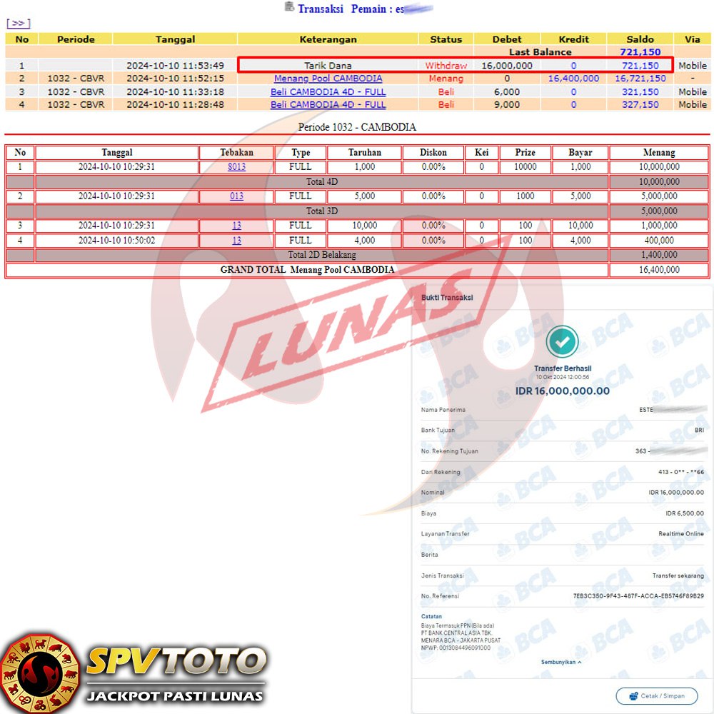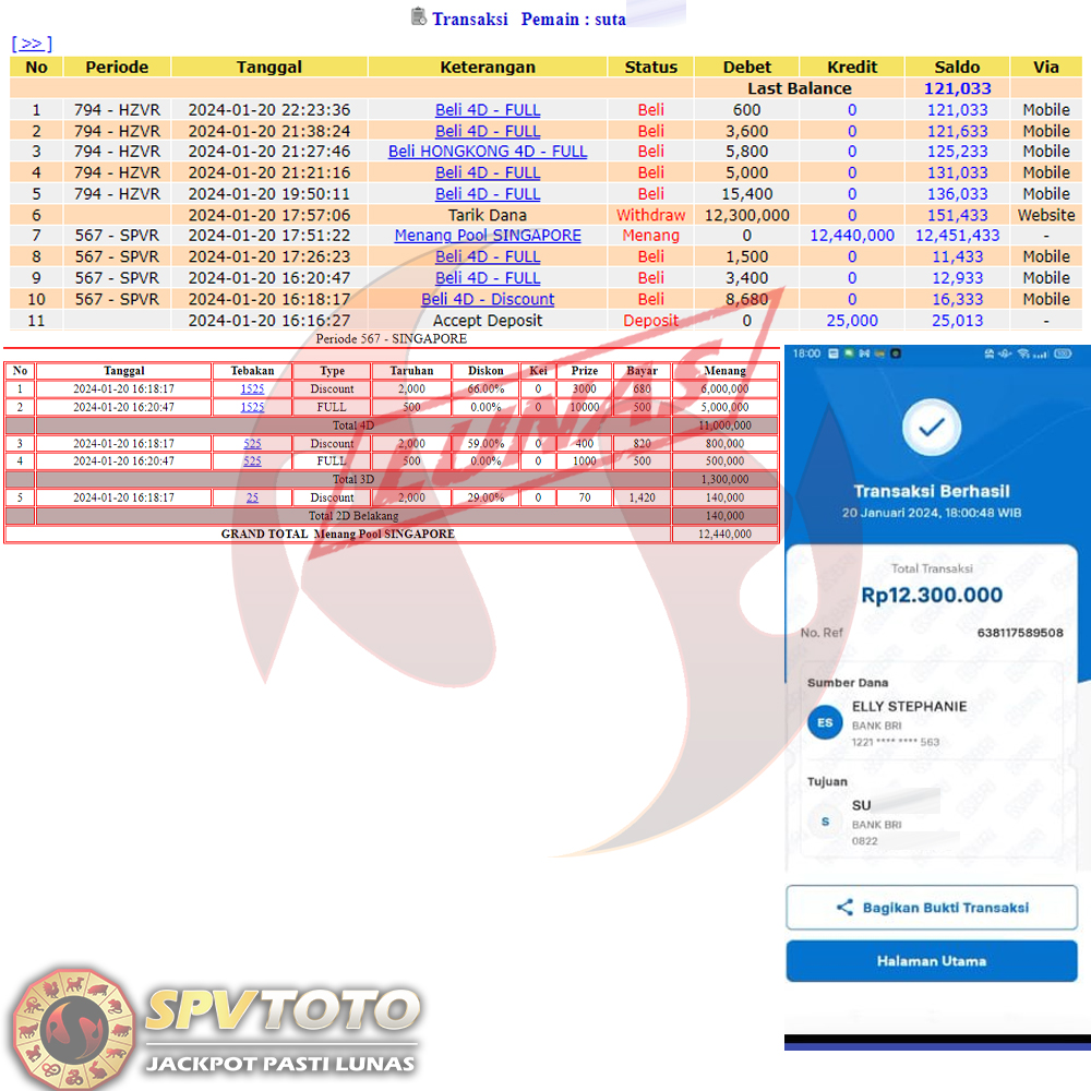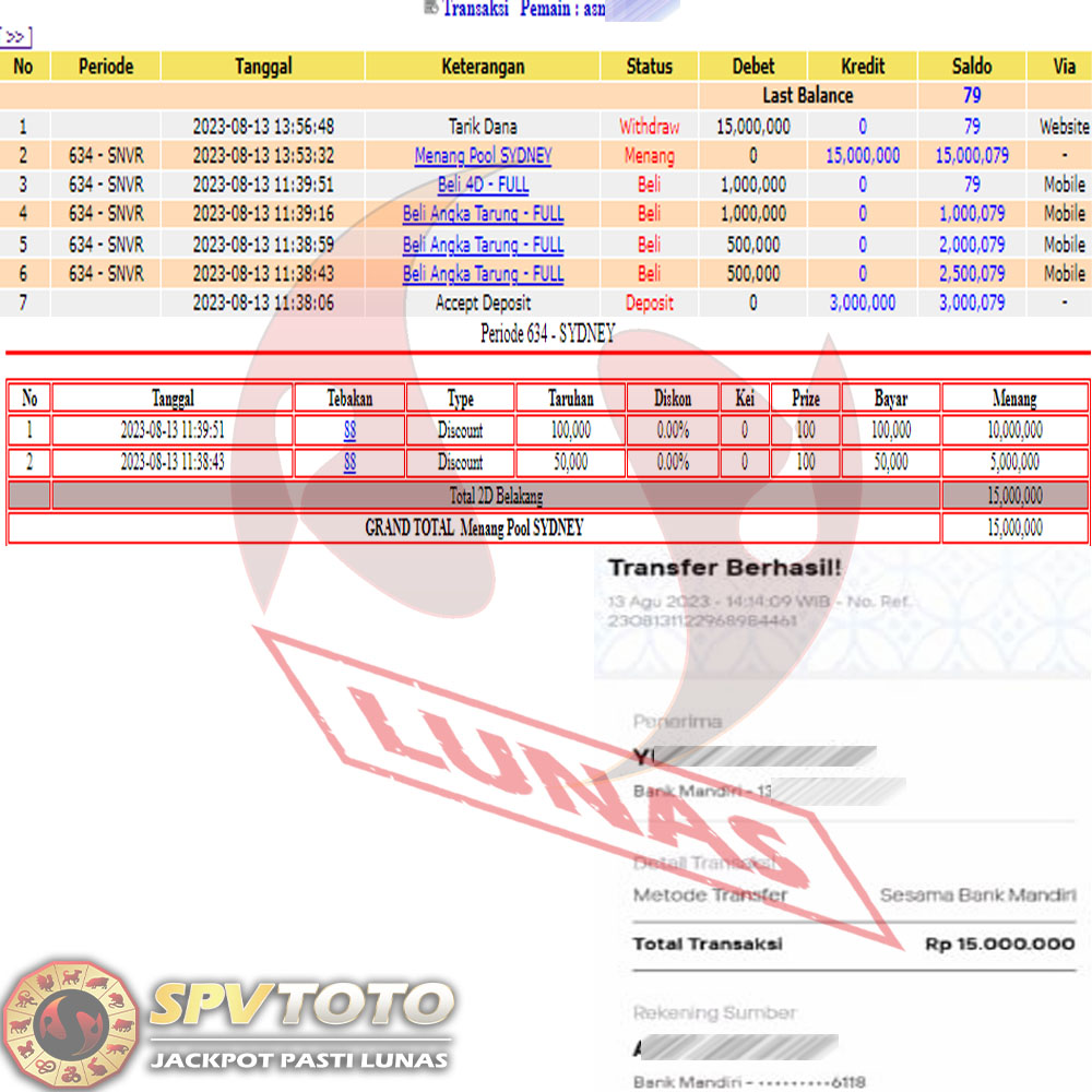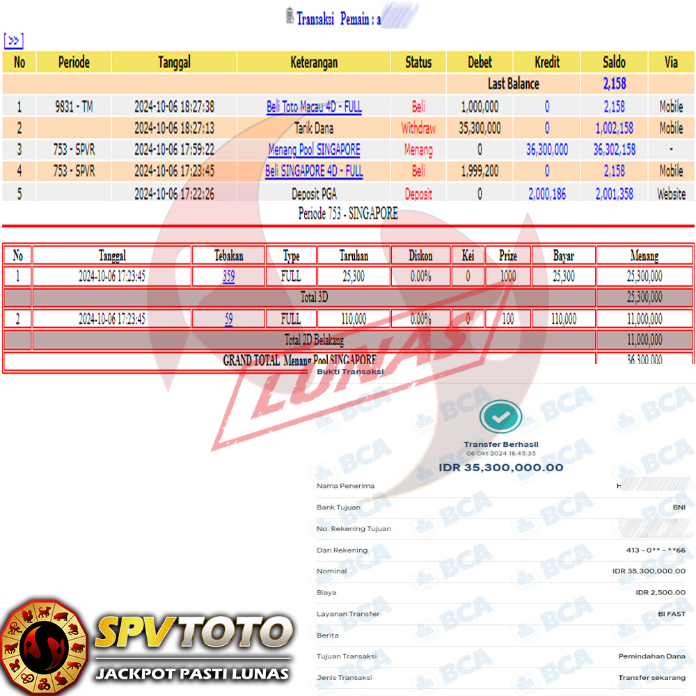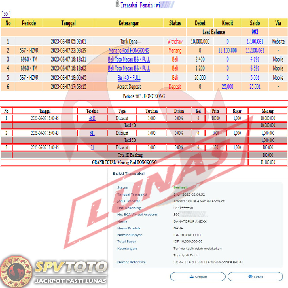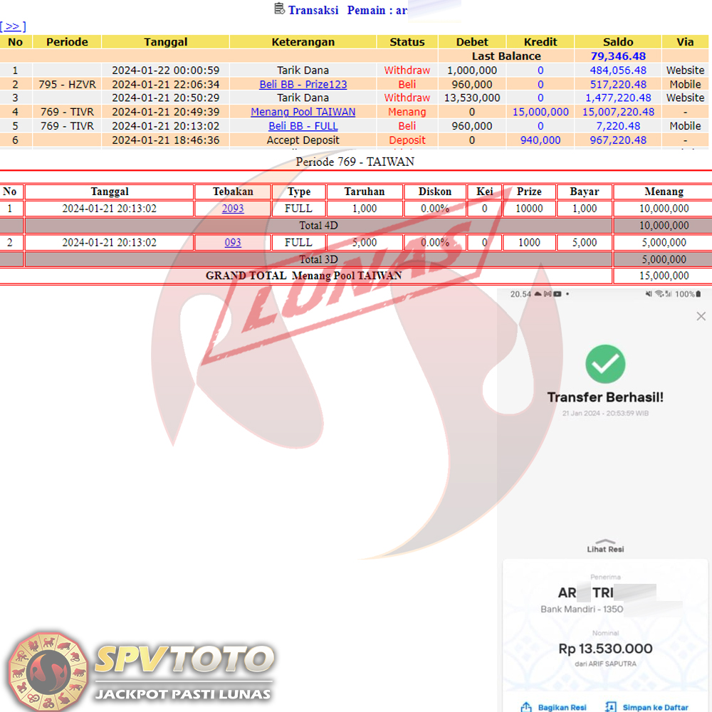 SELAMAT KEPADA MEMBER YANG MENDAPATKAN JACKPOT DI SPVTOTO