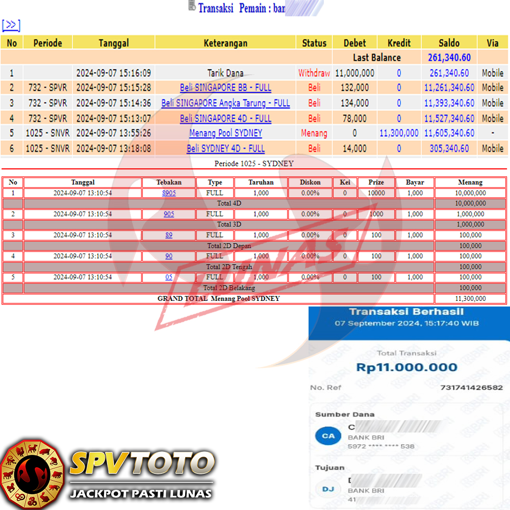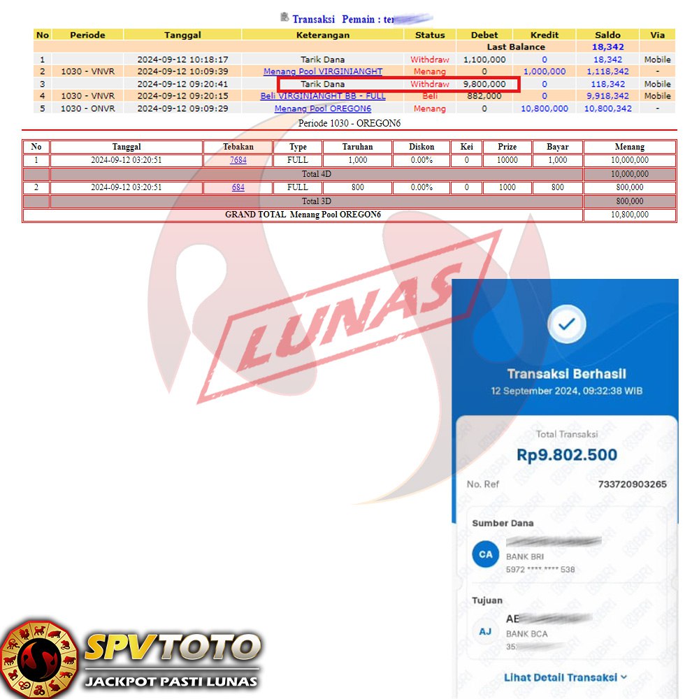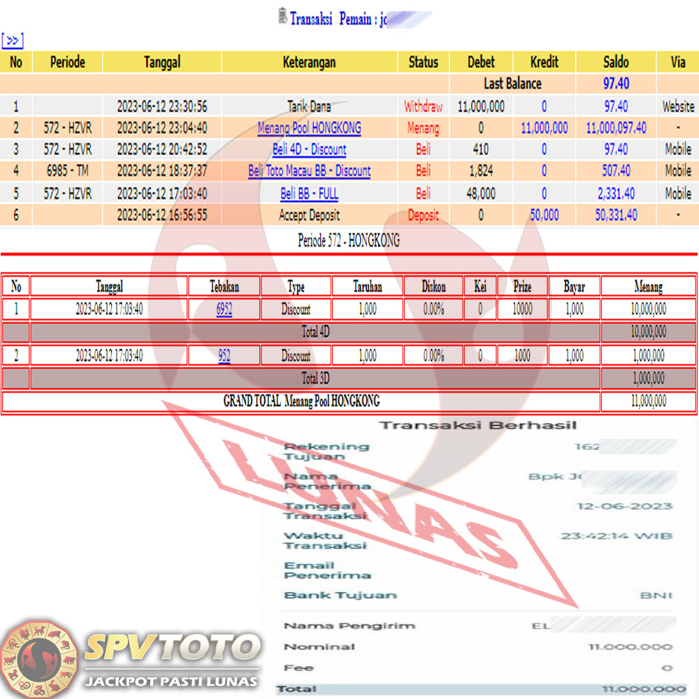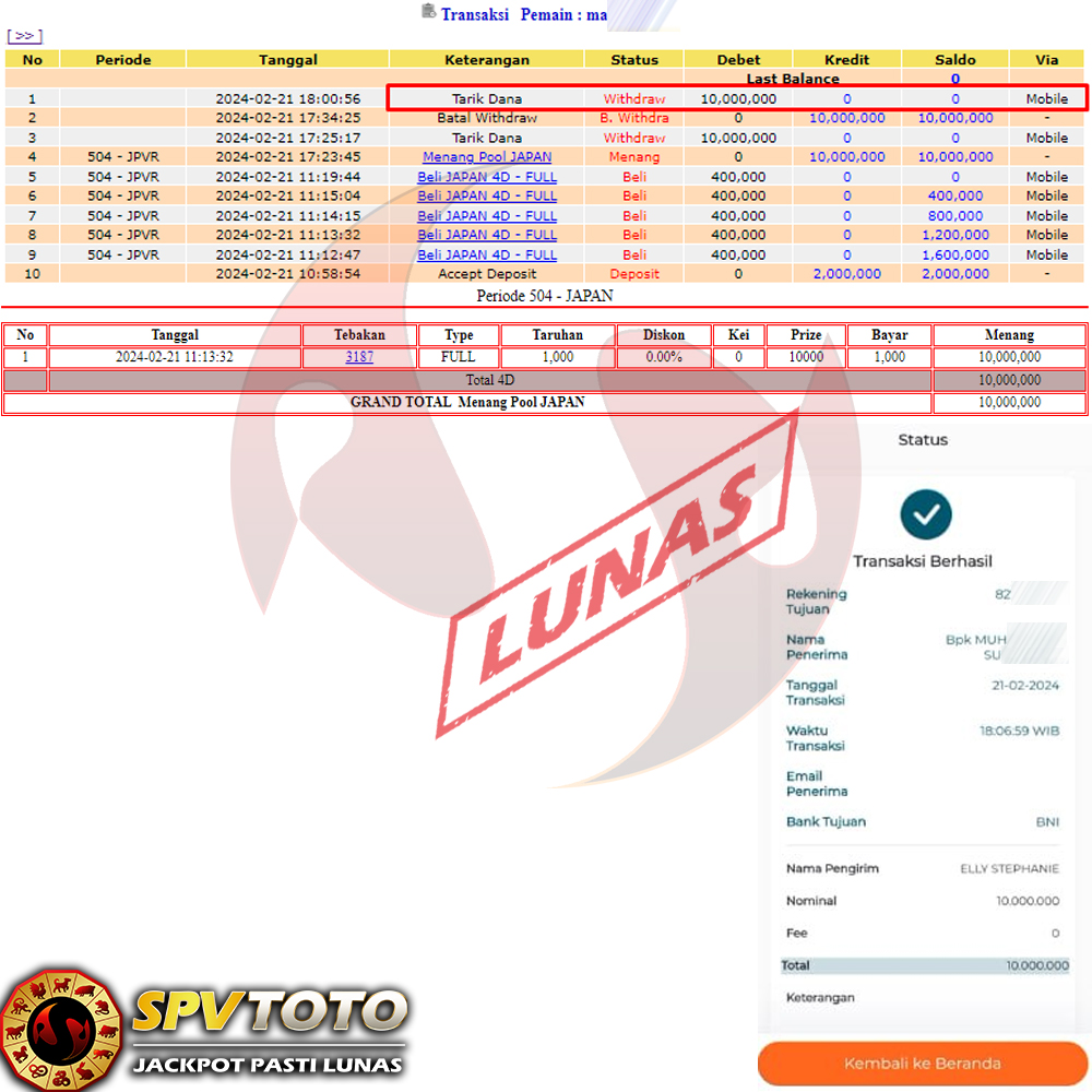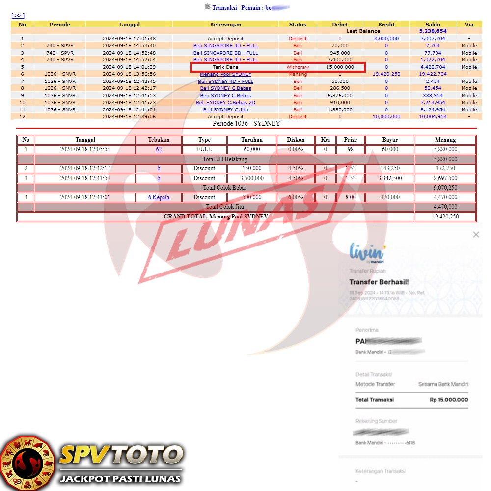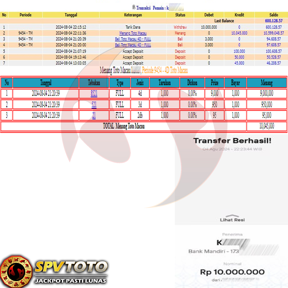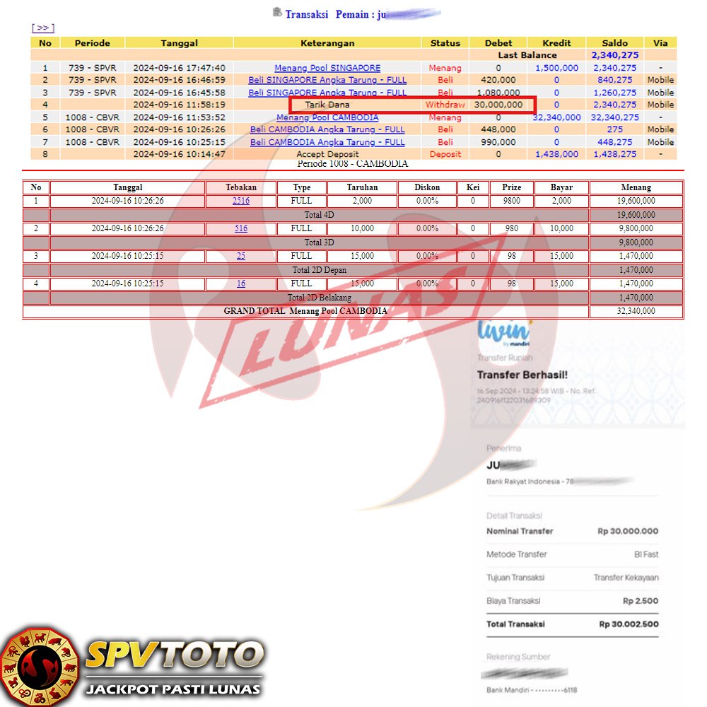 SELAMAT KEPADA MEMBER YANG MENDAPATKAN JACKPOT DI SPVTOTO