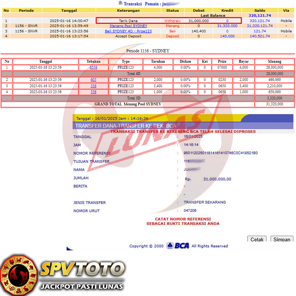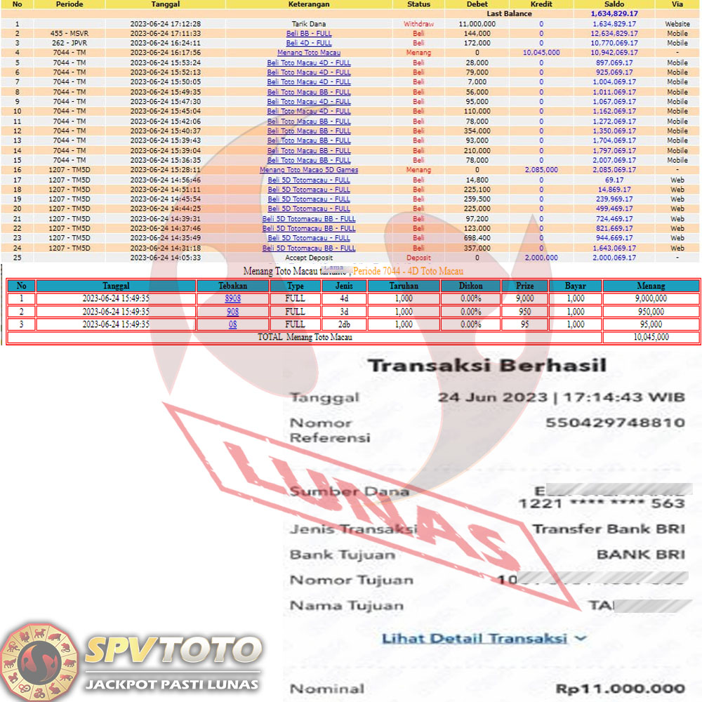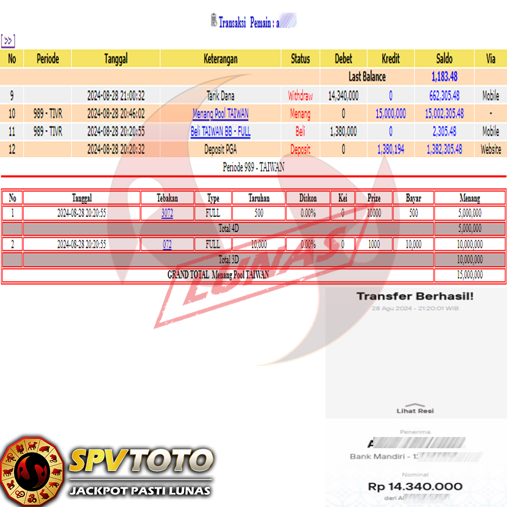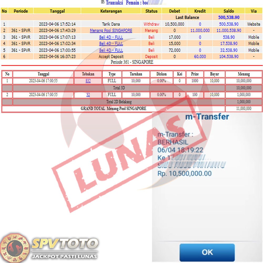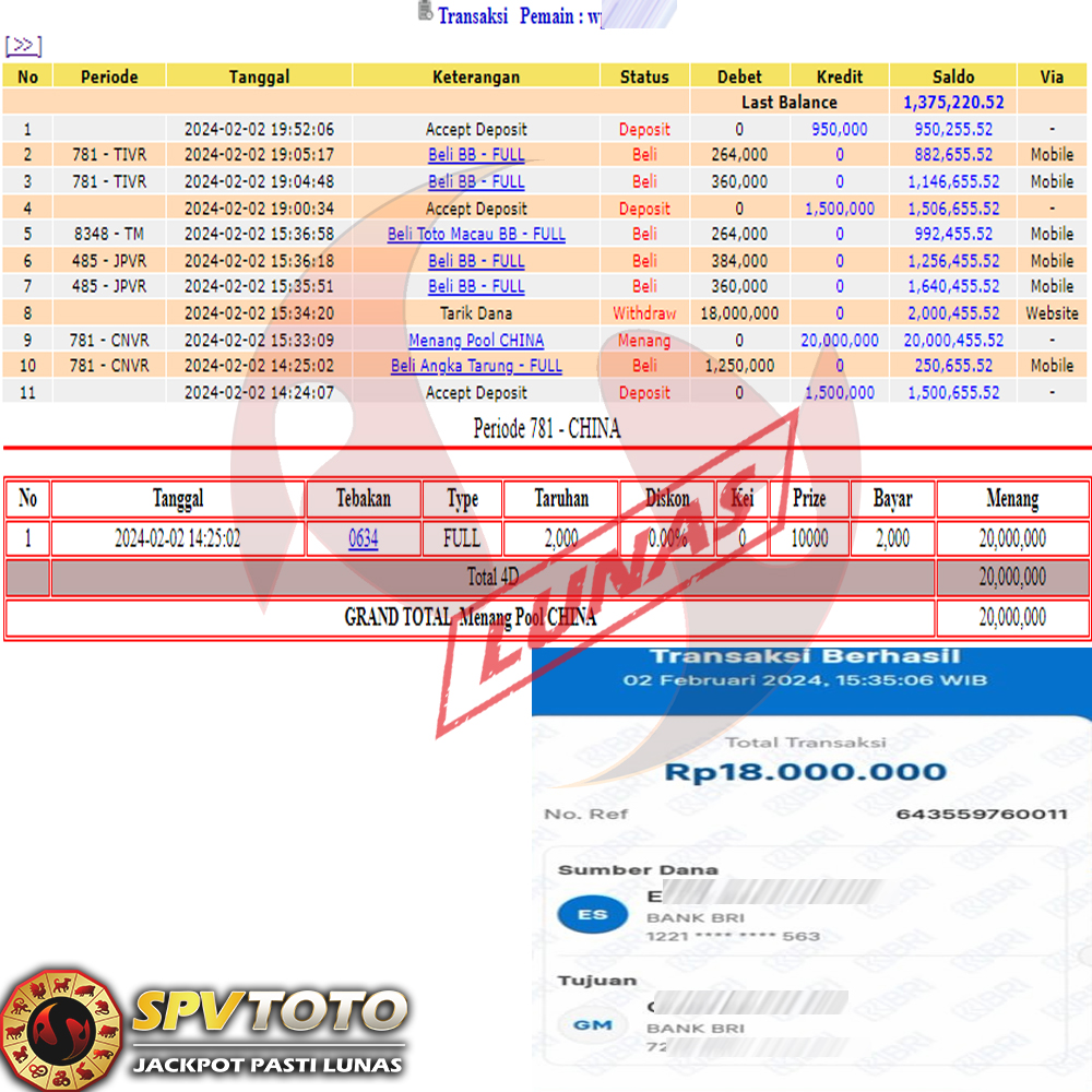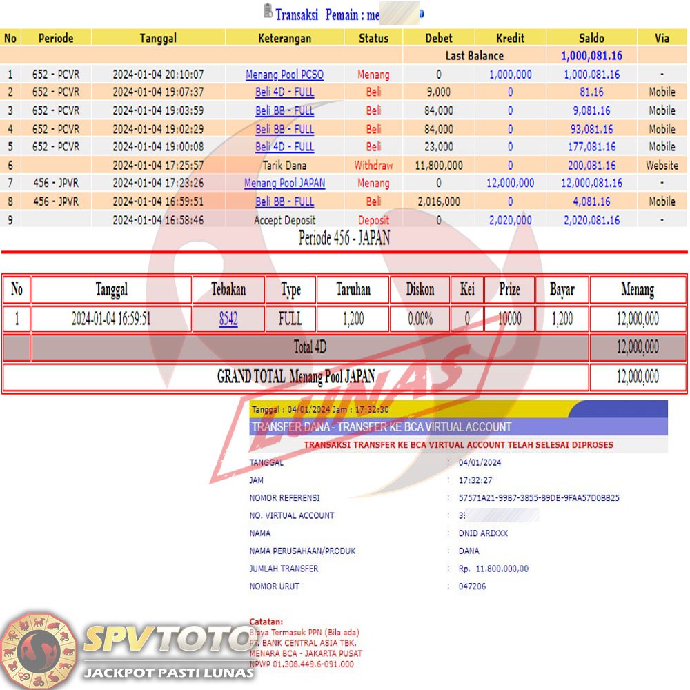 SELAMAT KEPADA MEMBER YANG MENDAPATKAN JACKPOT DI SPVTOTO