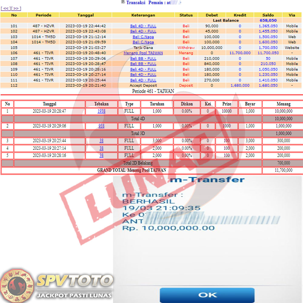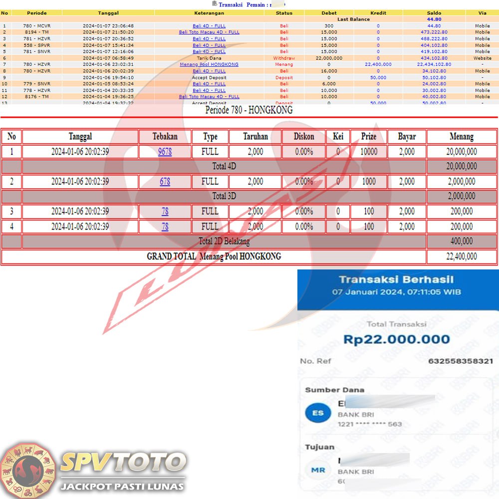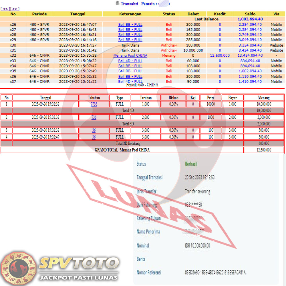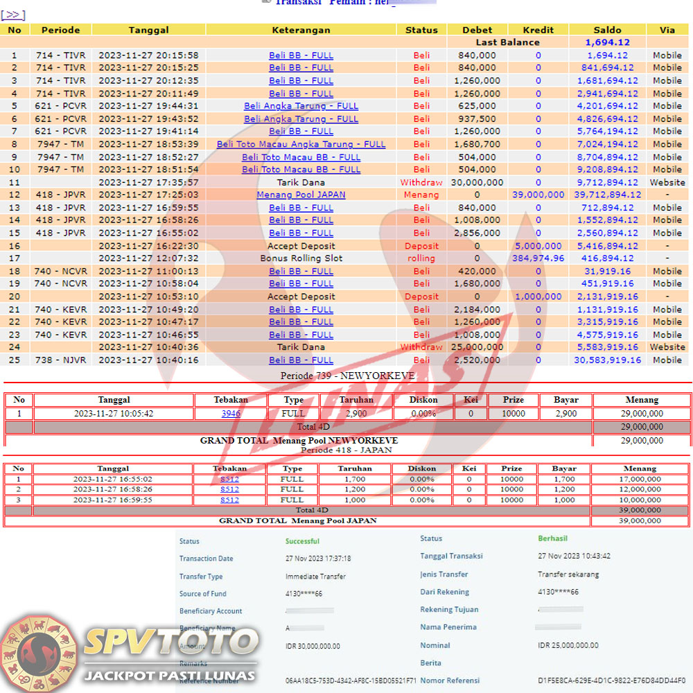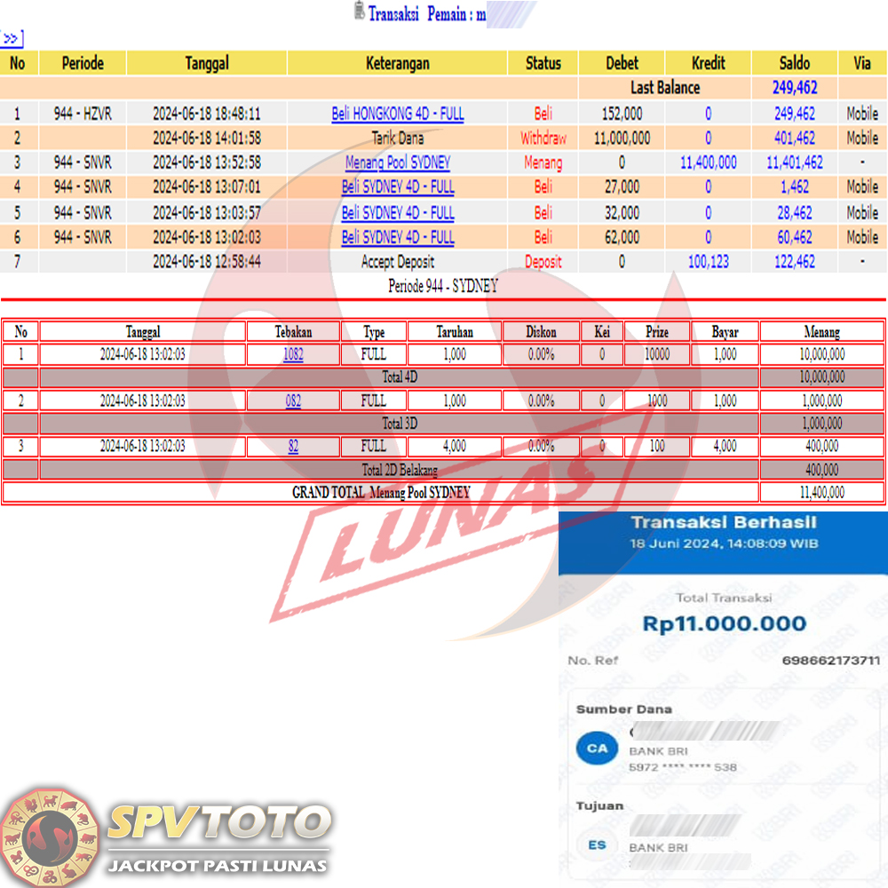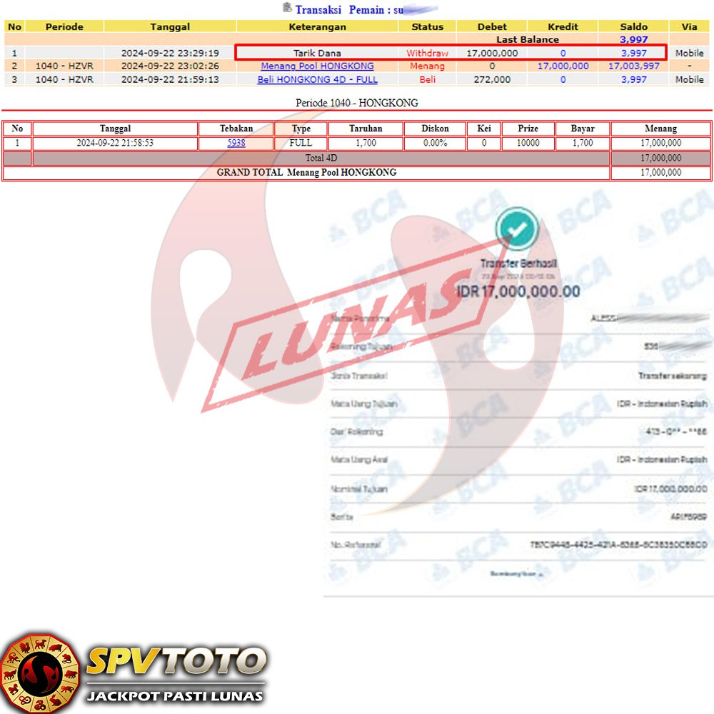 SELAMAT KEPADA MEMBER YANG MENDAPATKAN JACKPOT DI SPVTOTO