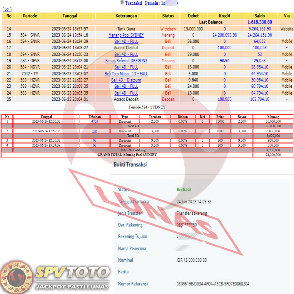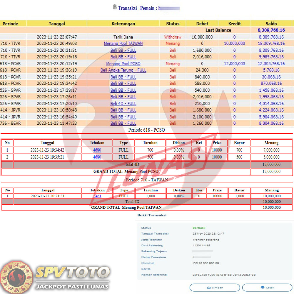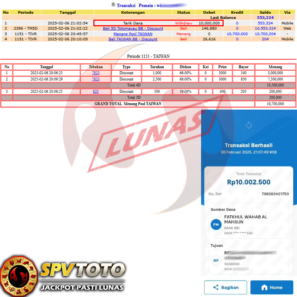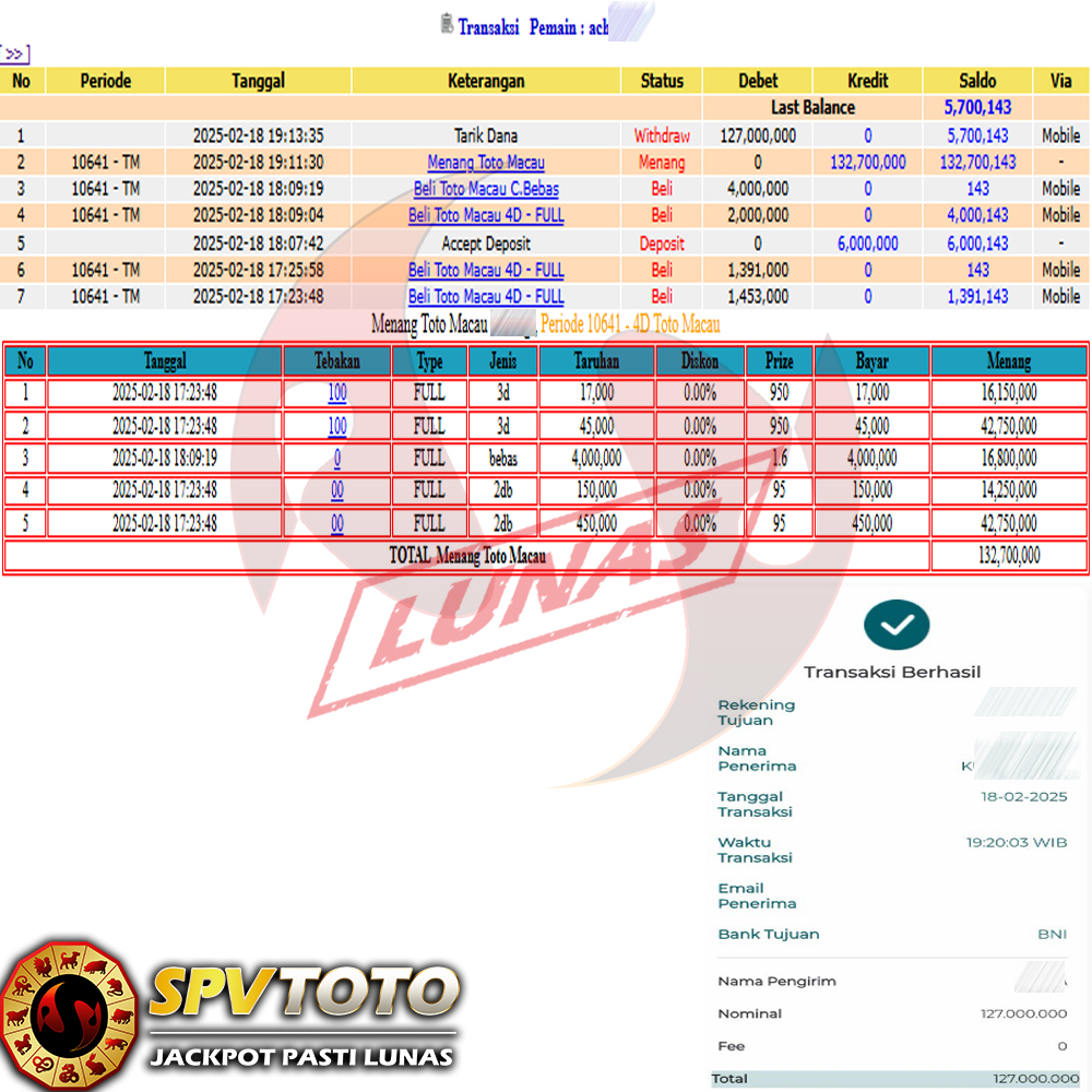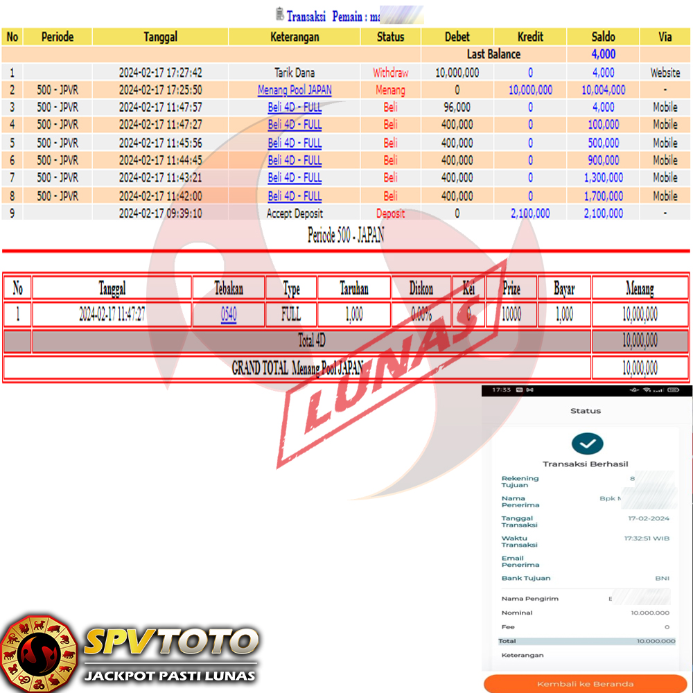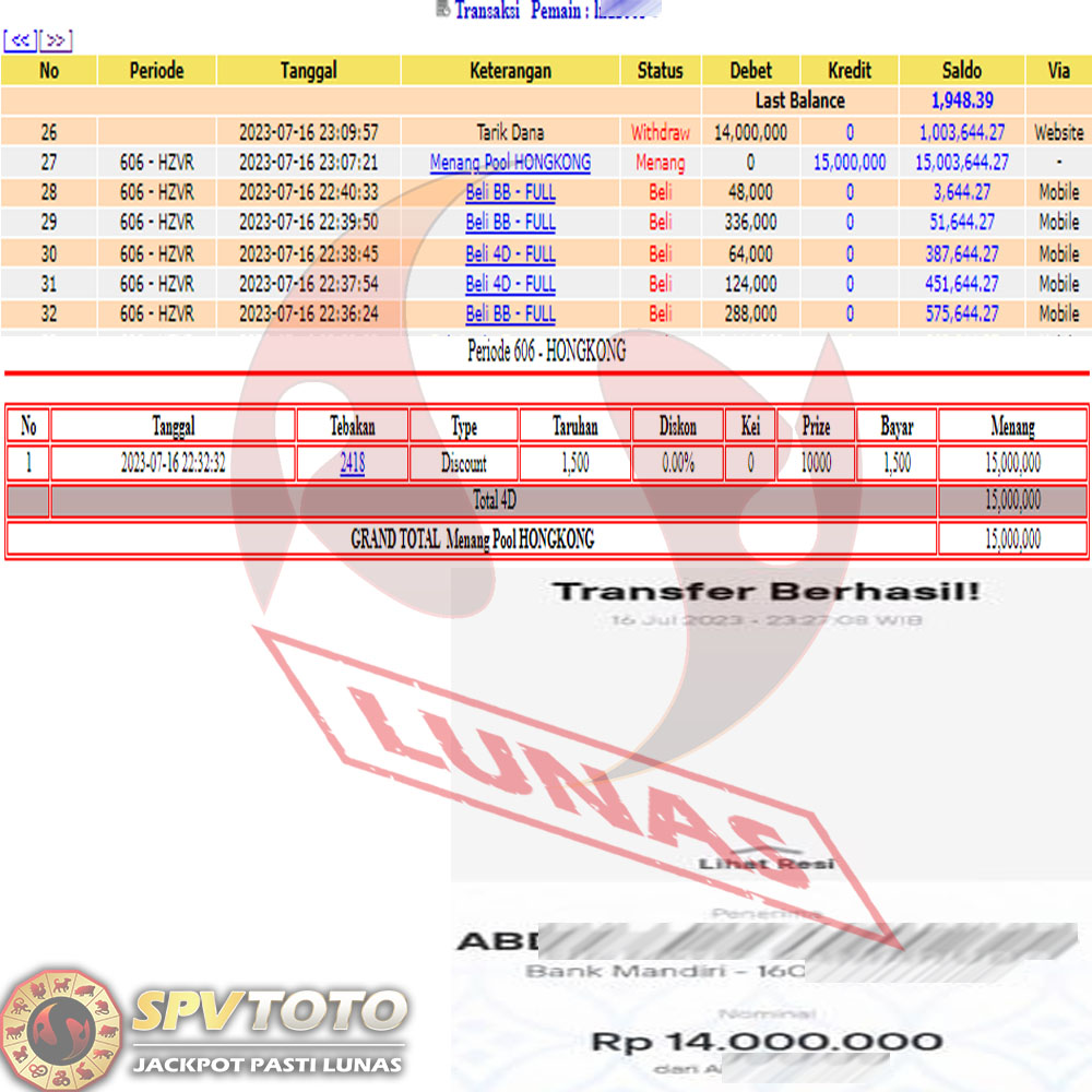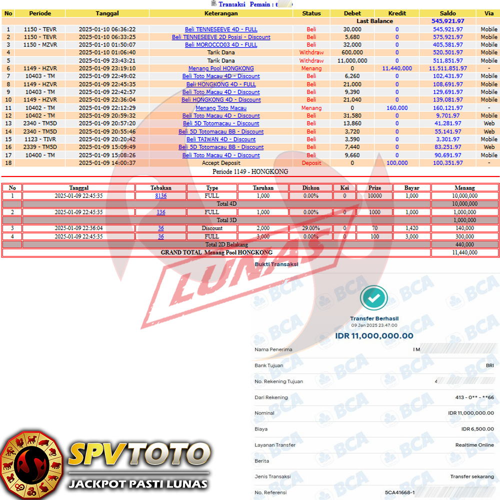 SELAMAT KEPADA MEMBER YANG MENDAPATKAN JACKPOT DI SPVTOTO