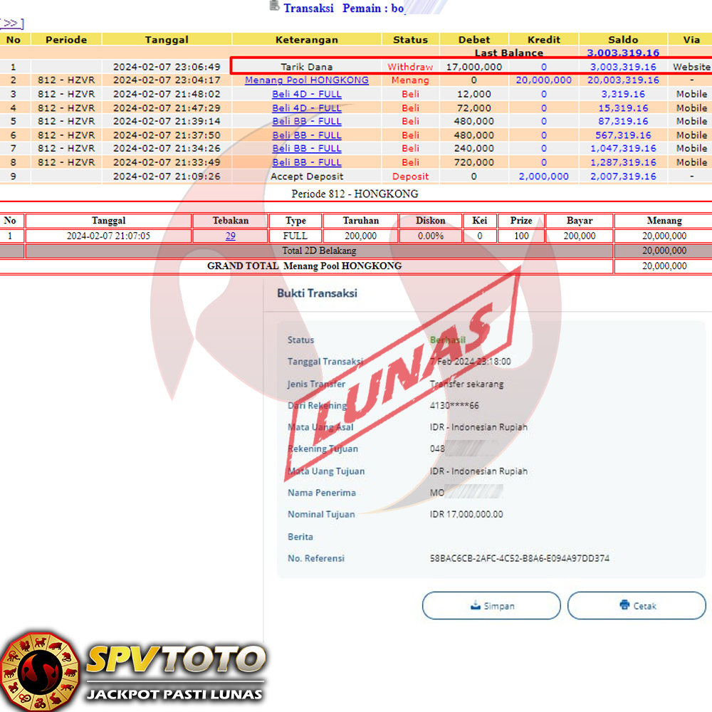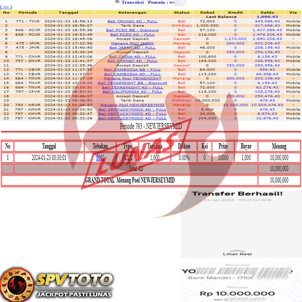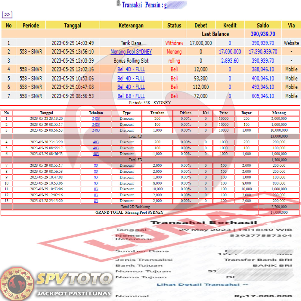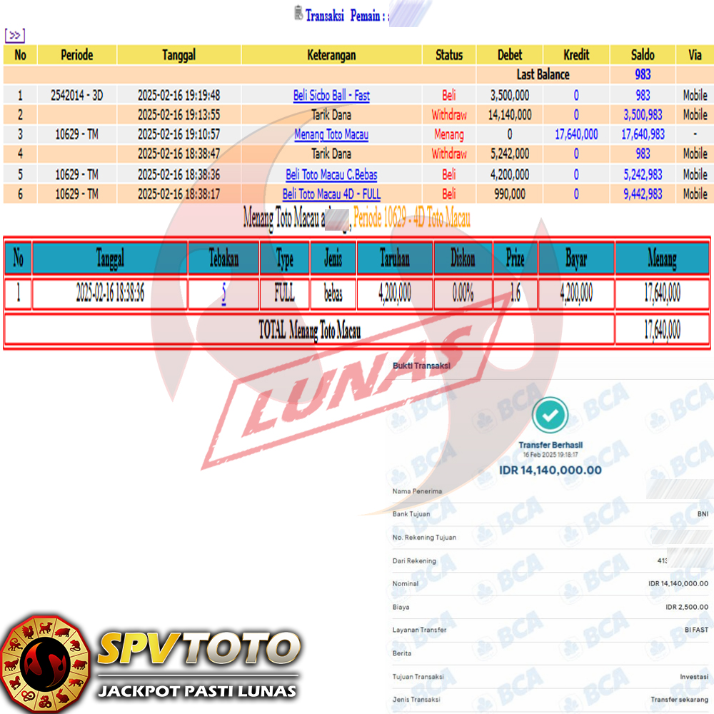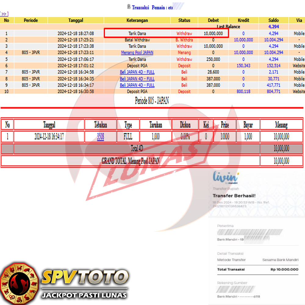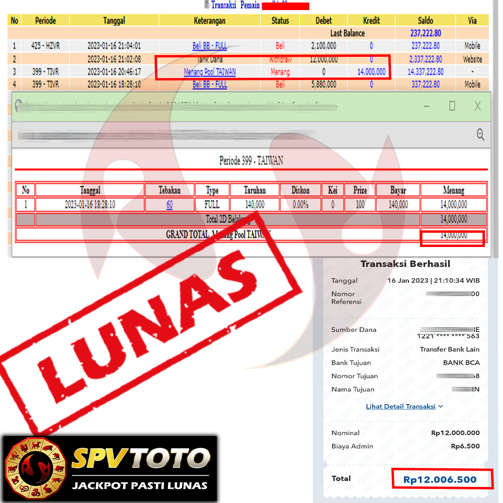 SELAMAT KEPADA MEMBER YANG MENDAPATKAN JACKPOT DI SPVTOTO