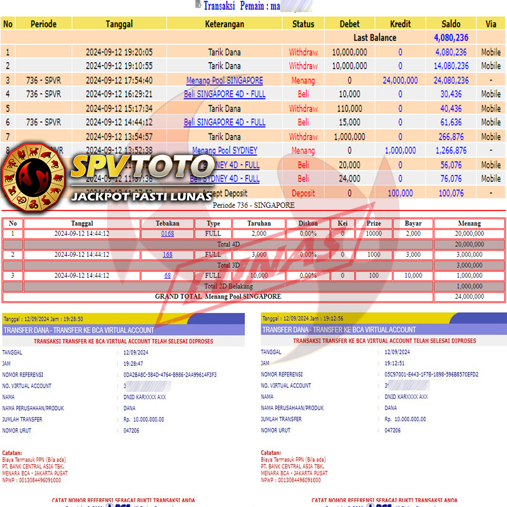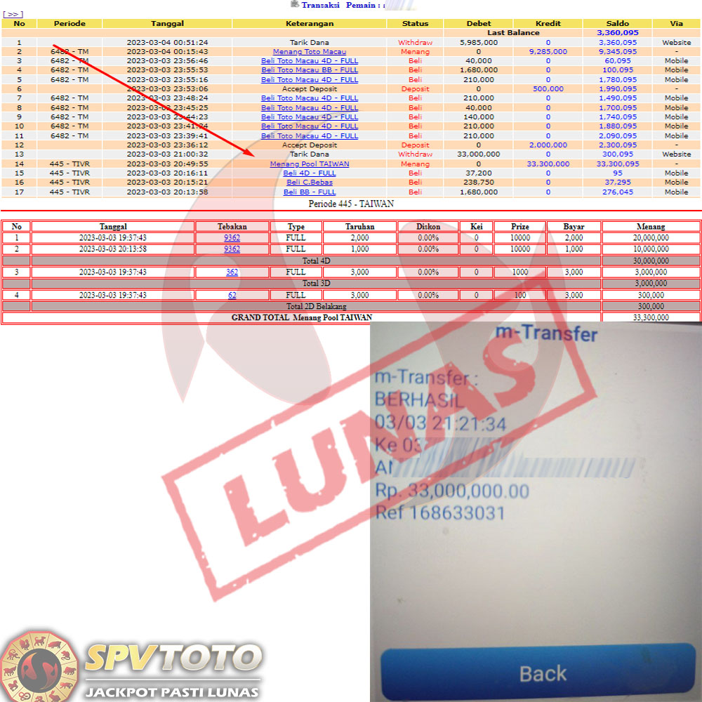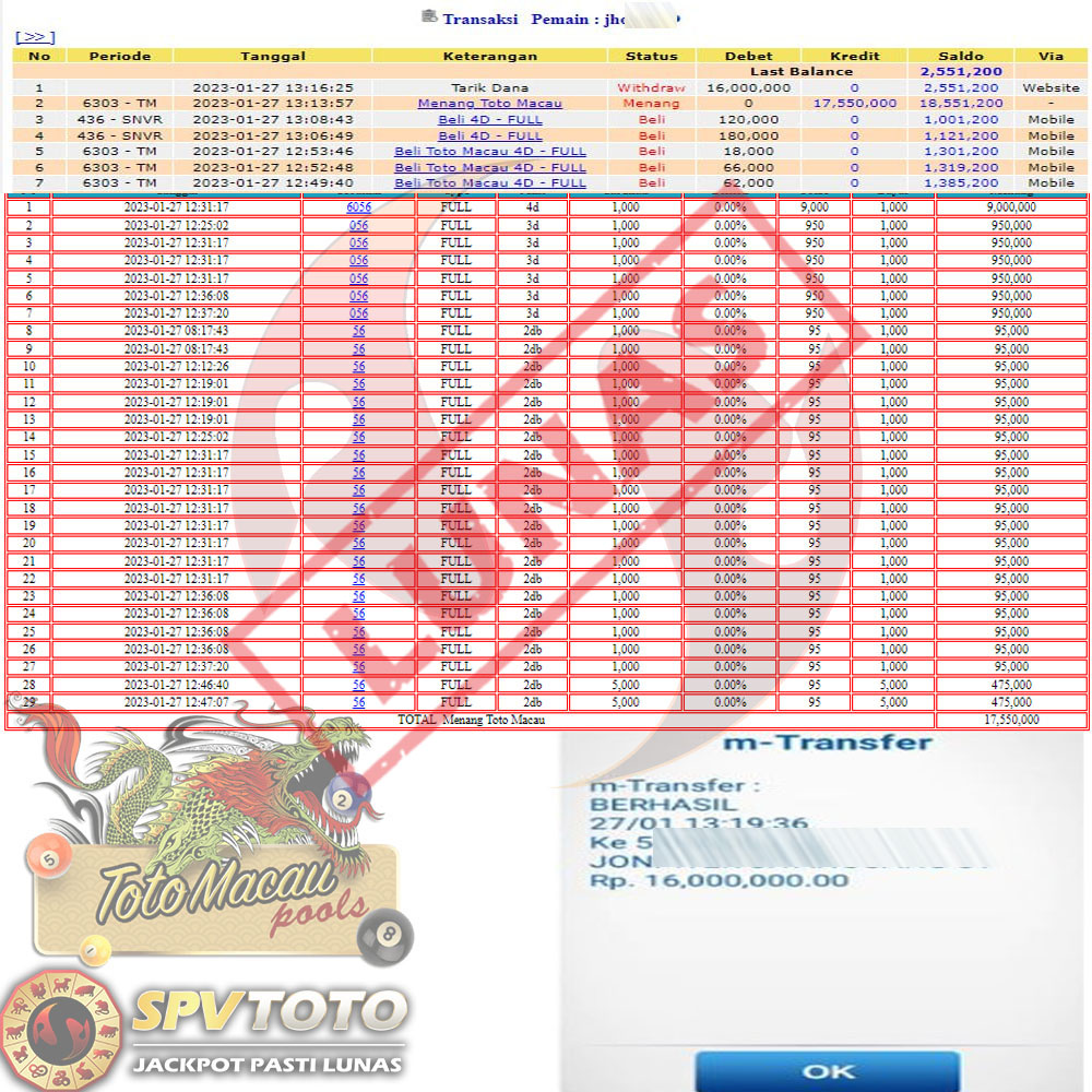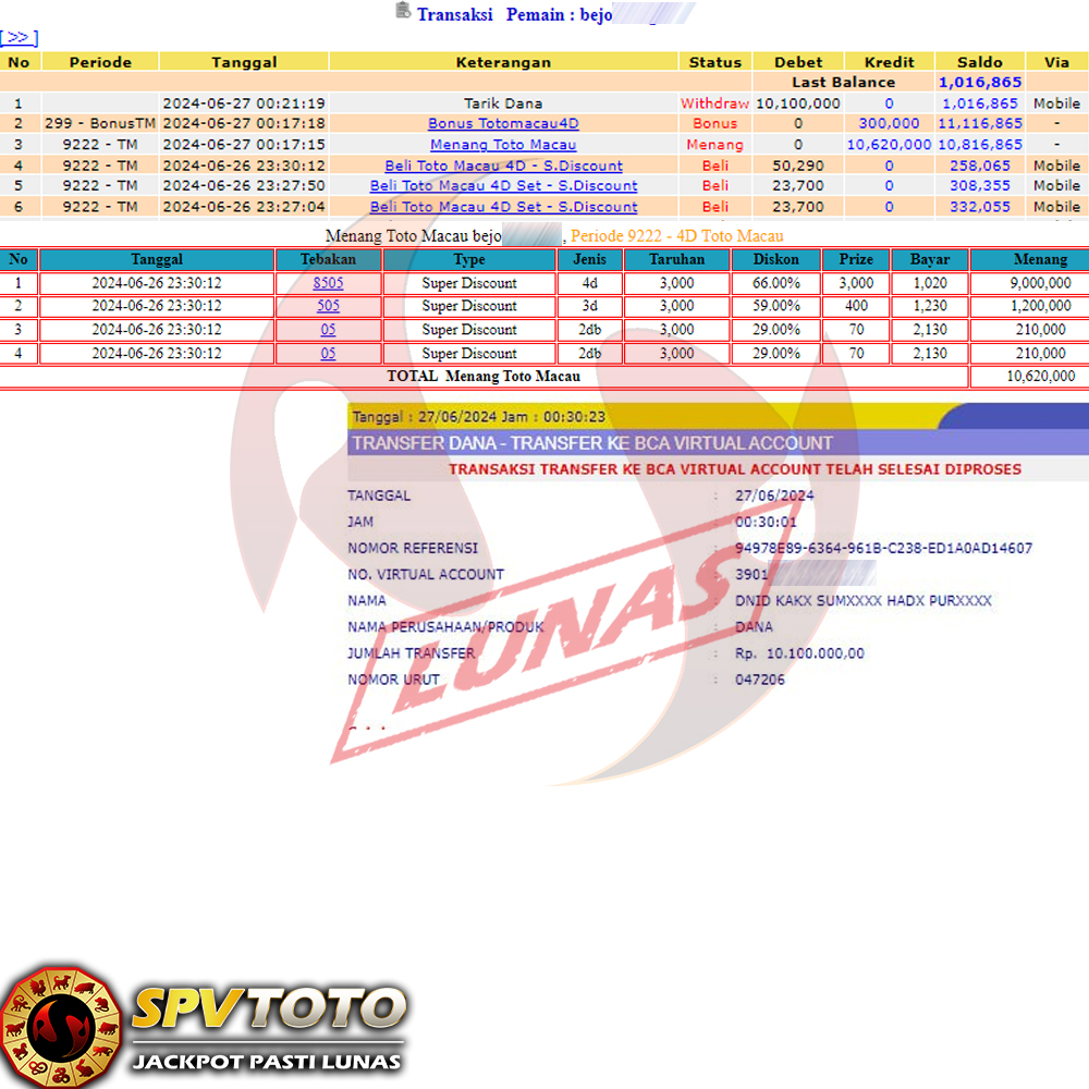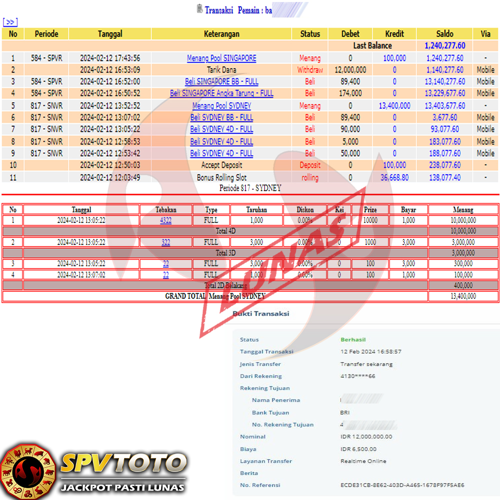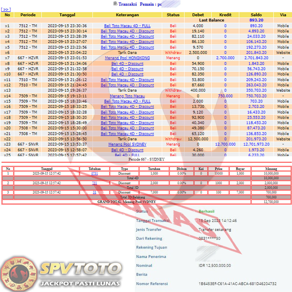 SELAMAT KEPADA MEMBER YANG MENDAPATKAN JACKPOT DI SPVTOTO
