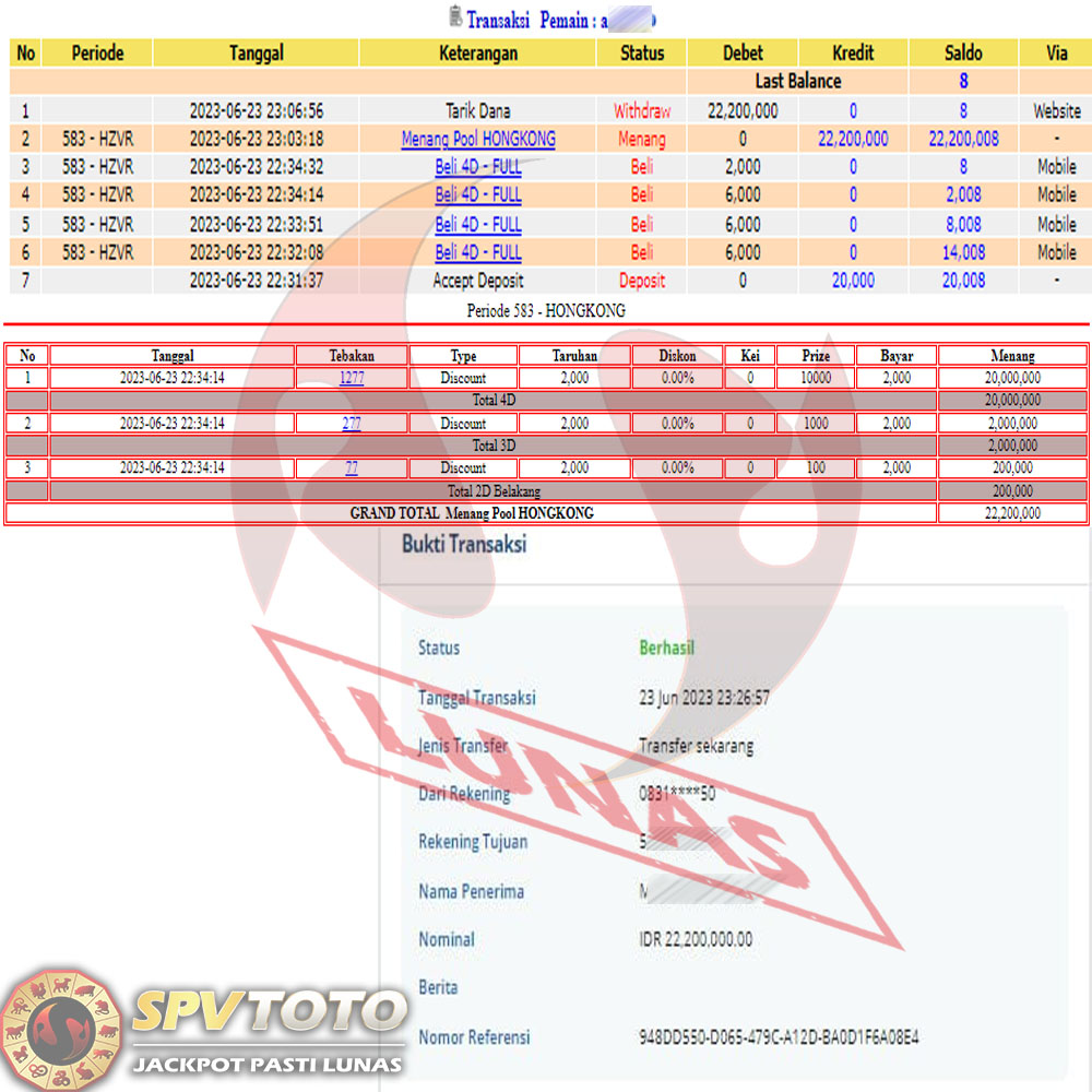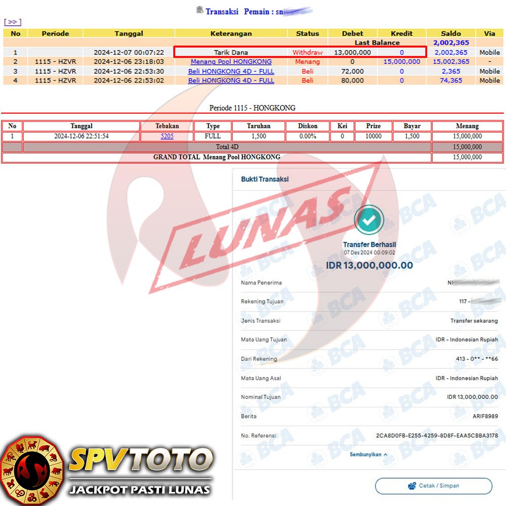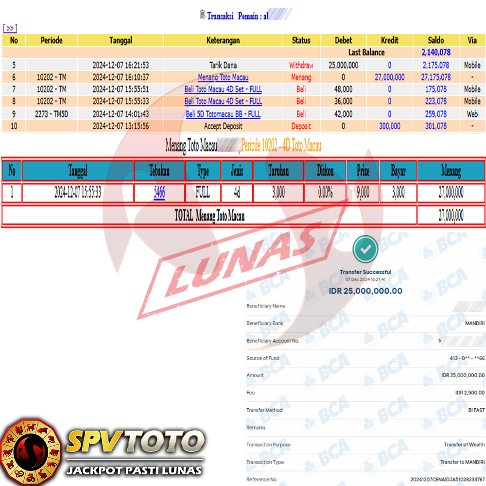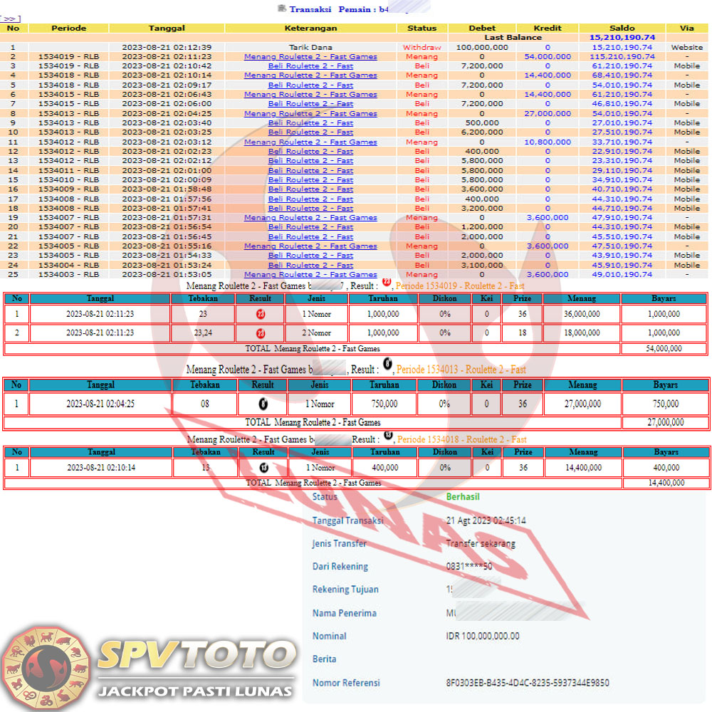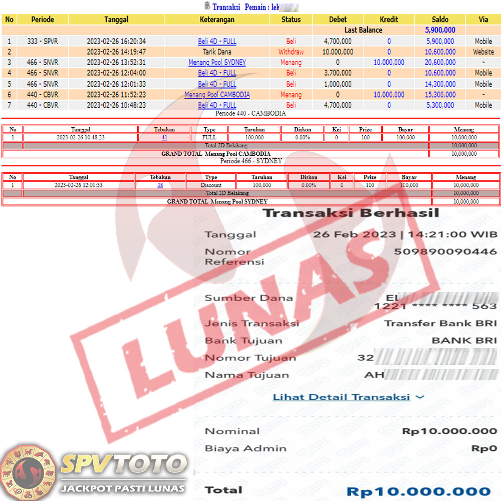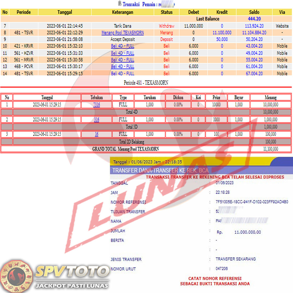SELAMAT KEPADA MEMBER YANG MENDAPATKAN JACKPOT DI SPVTOTO