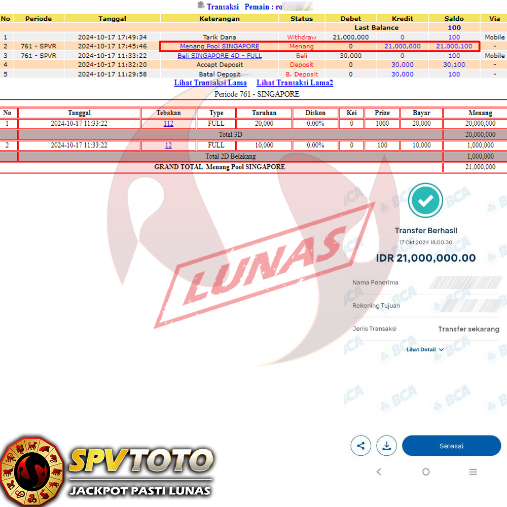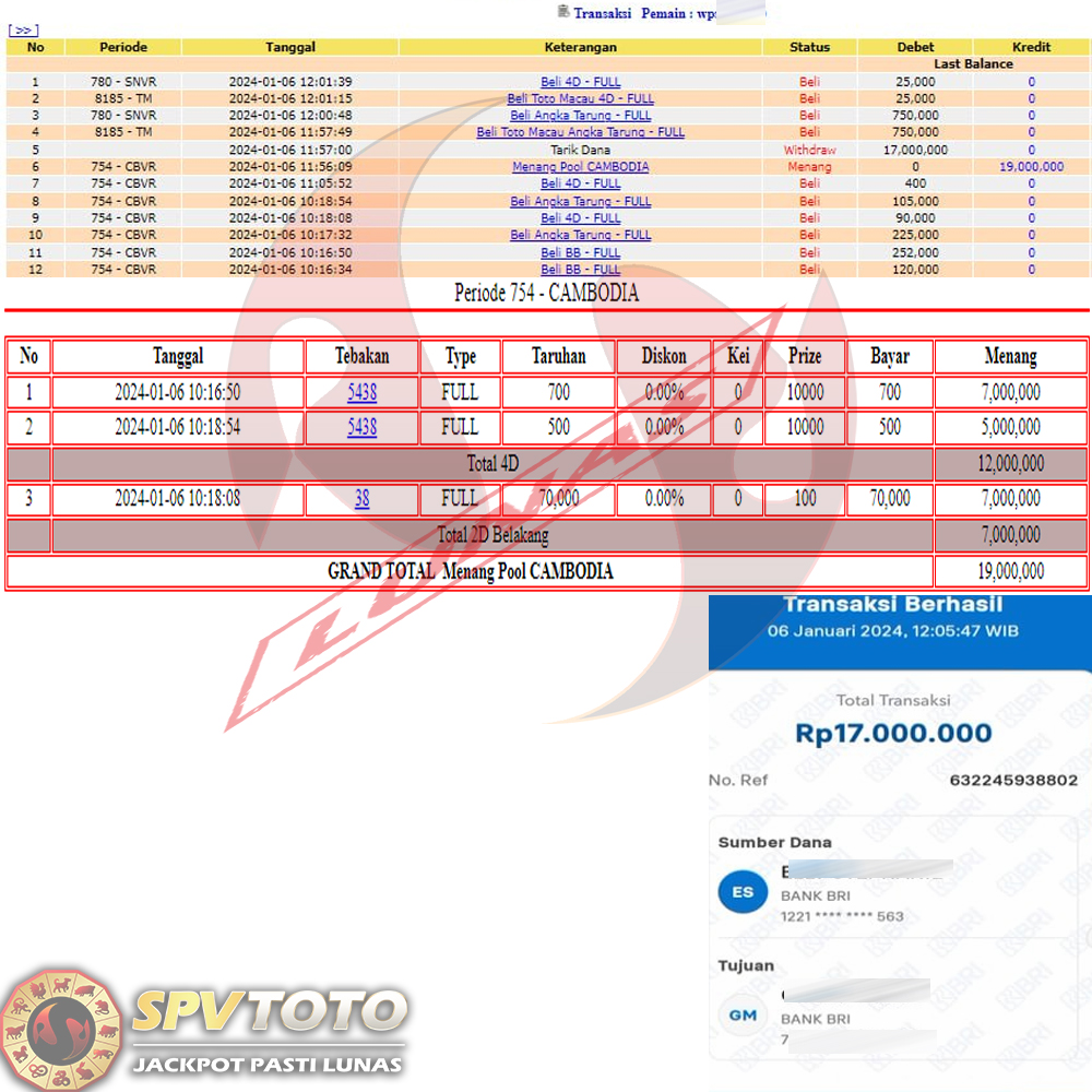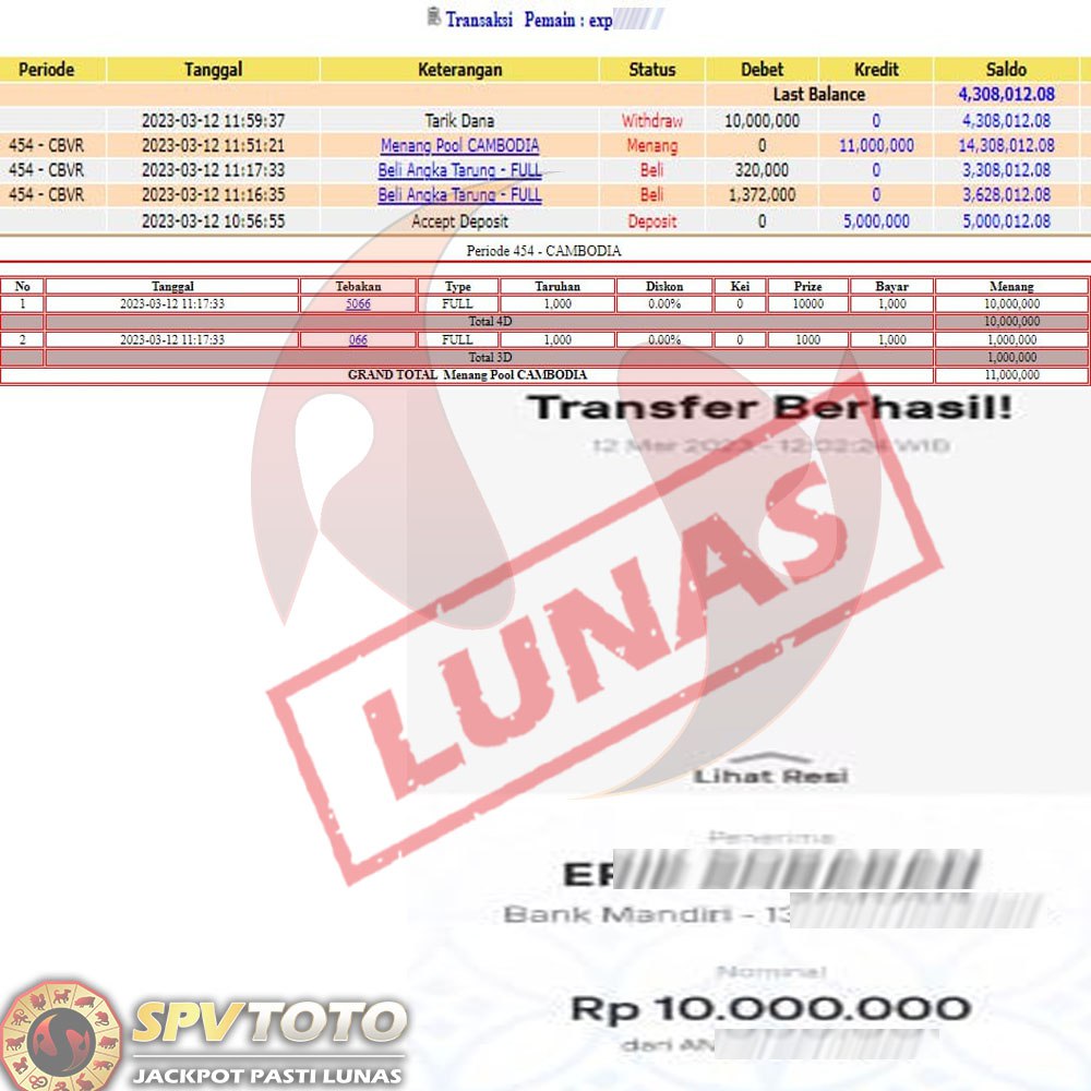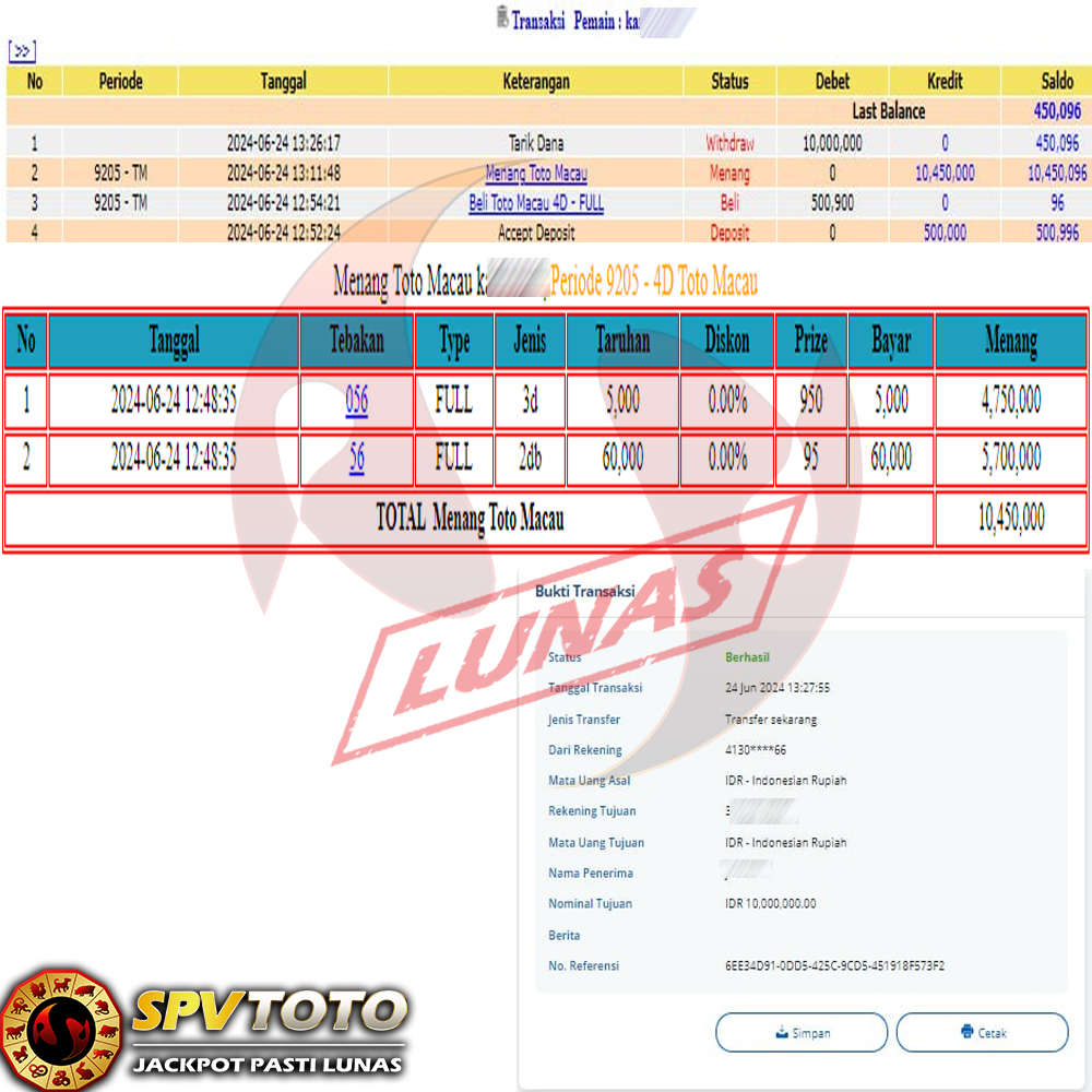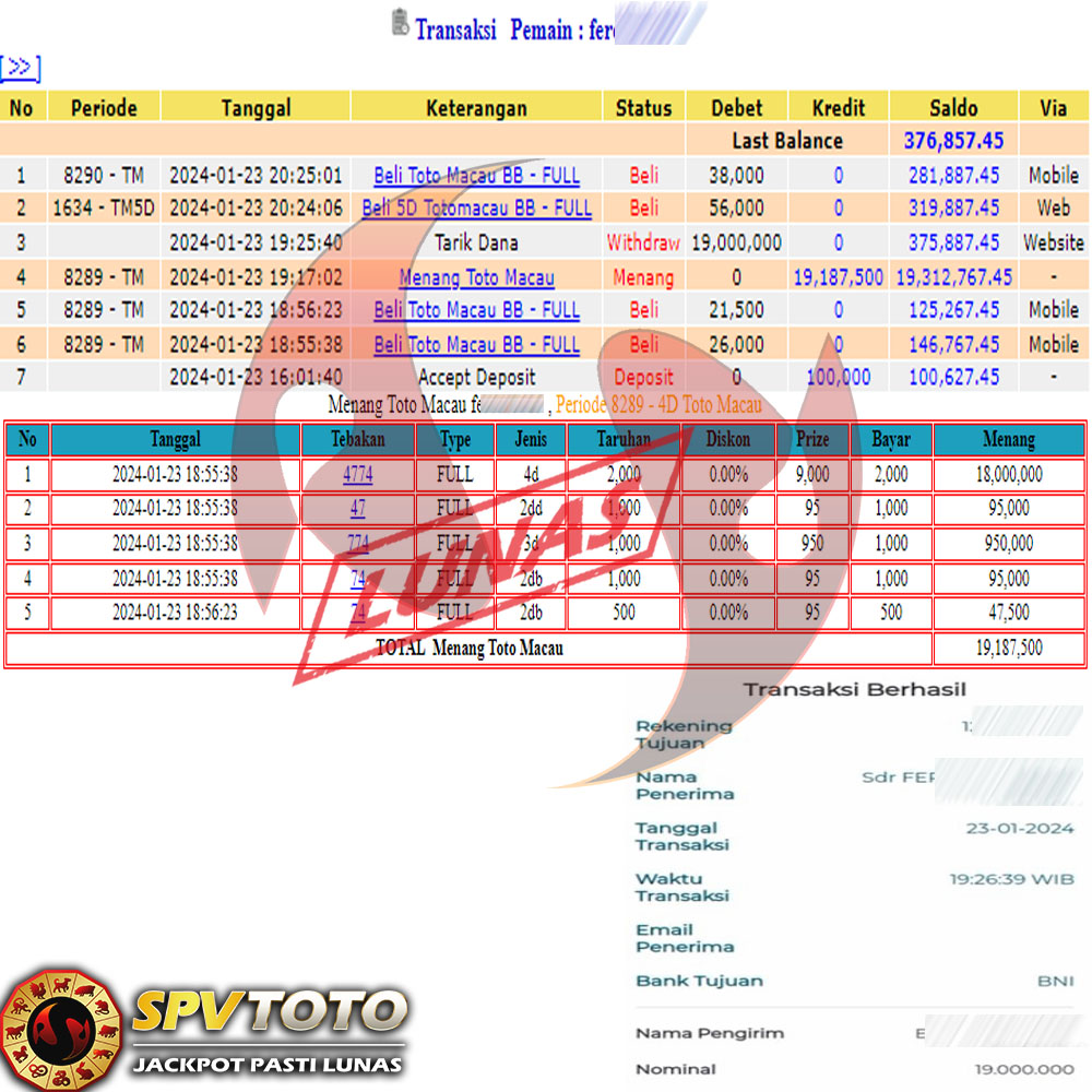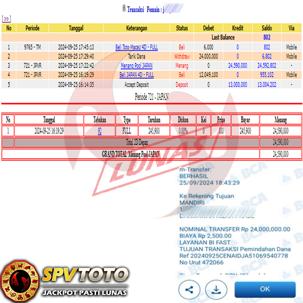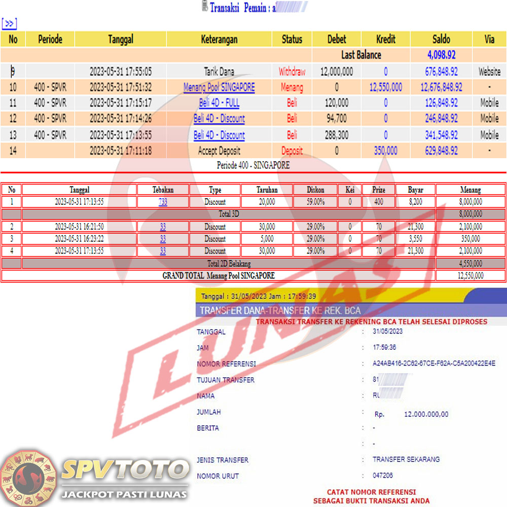 SELAMAT KEPADA MEMBER YANG MENDAPATKAN JACKPOT DI SPVTOTO