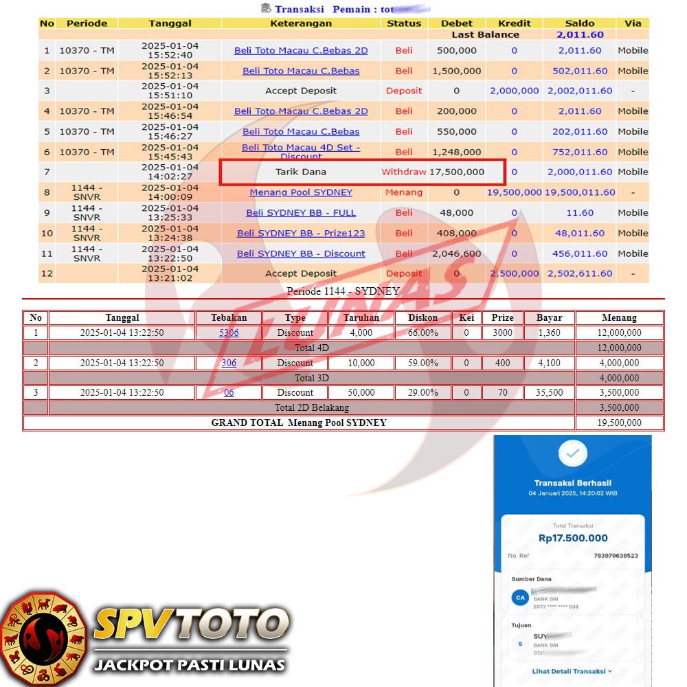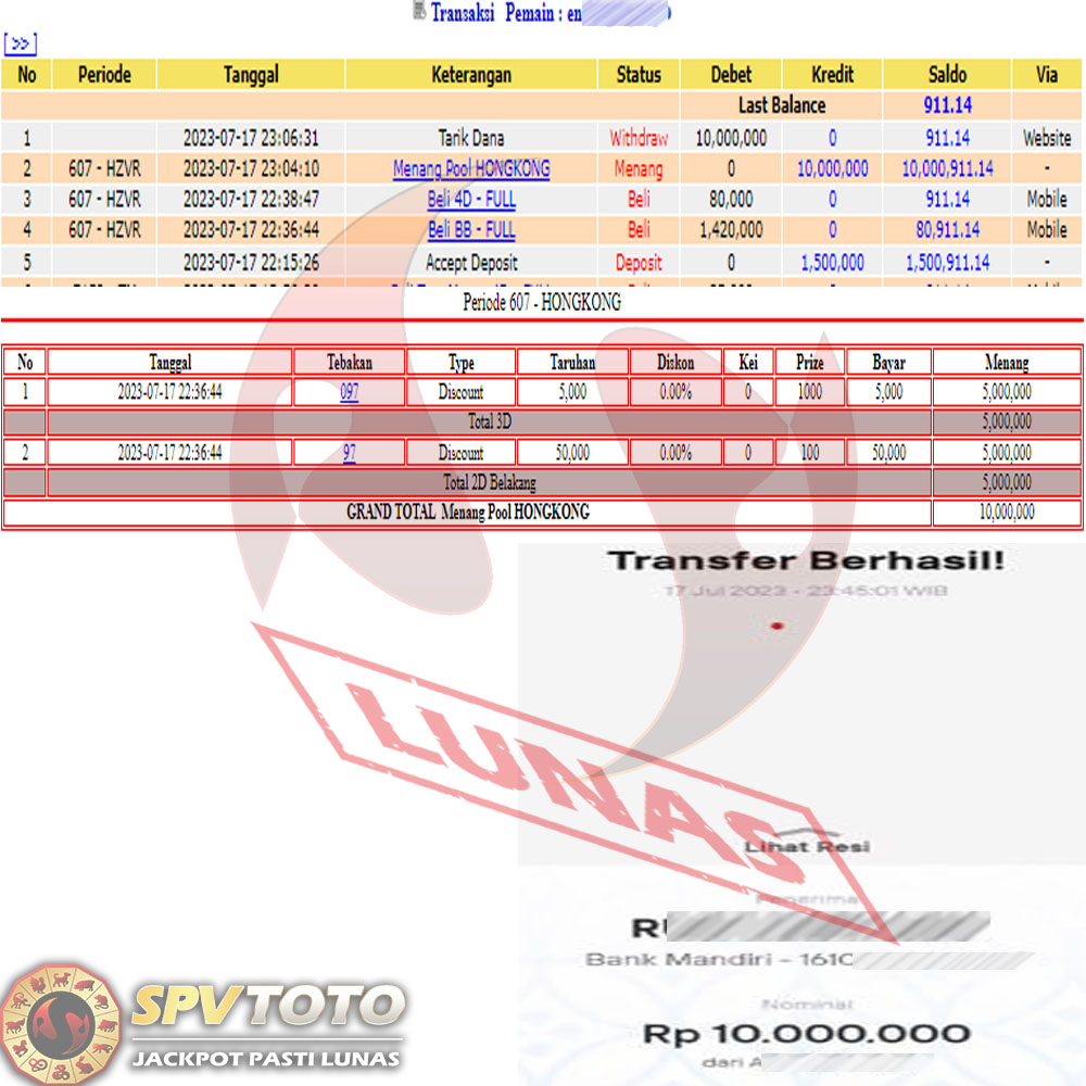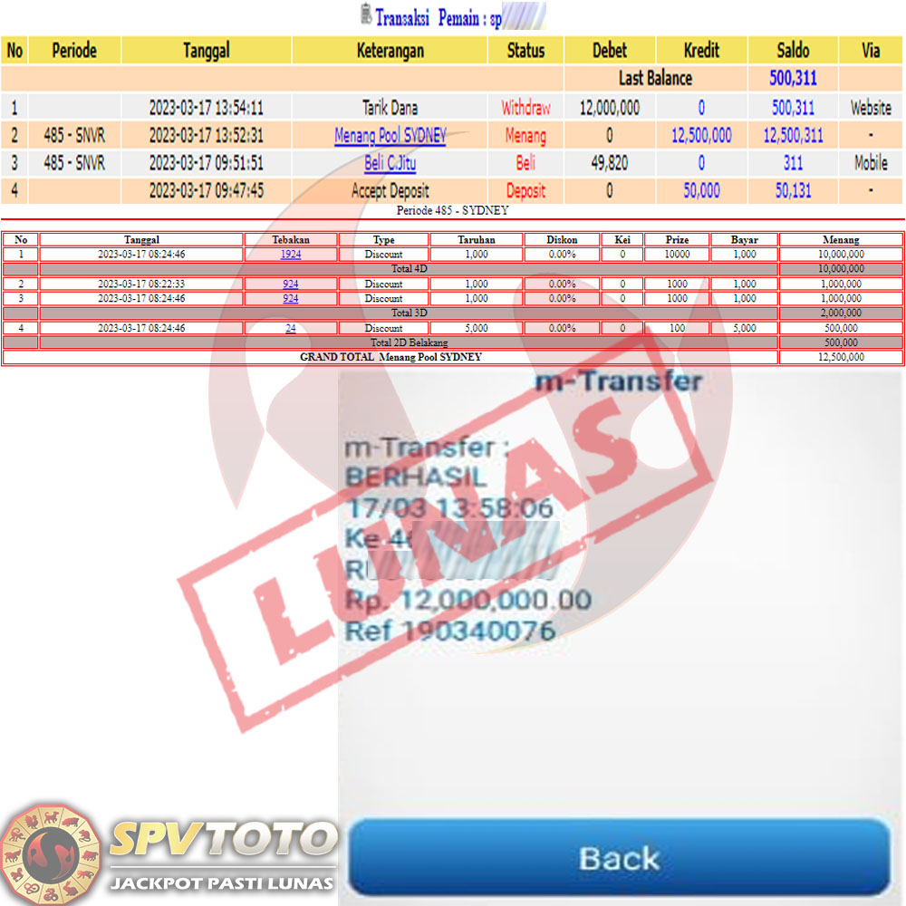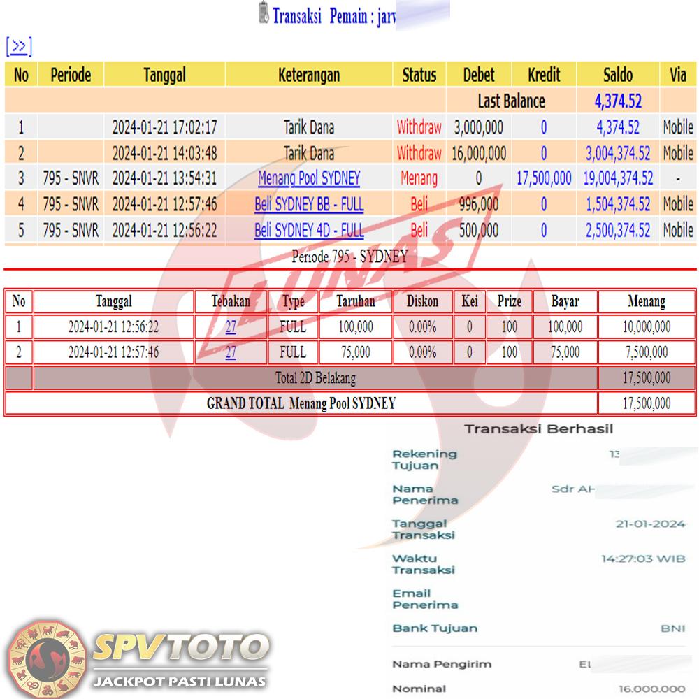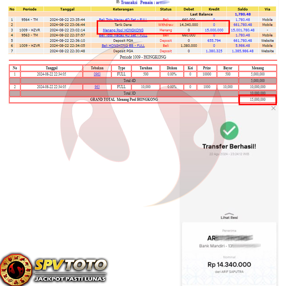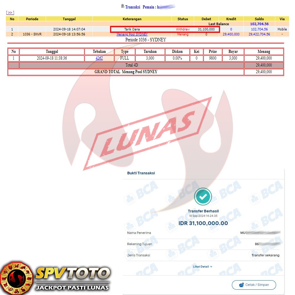 SELAMAT KEPADA MEMBER YANG MENDAPATKAN JACKPOT DI SPVTOTO