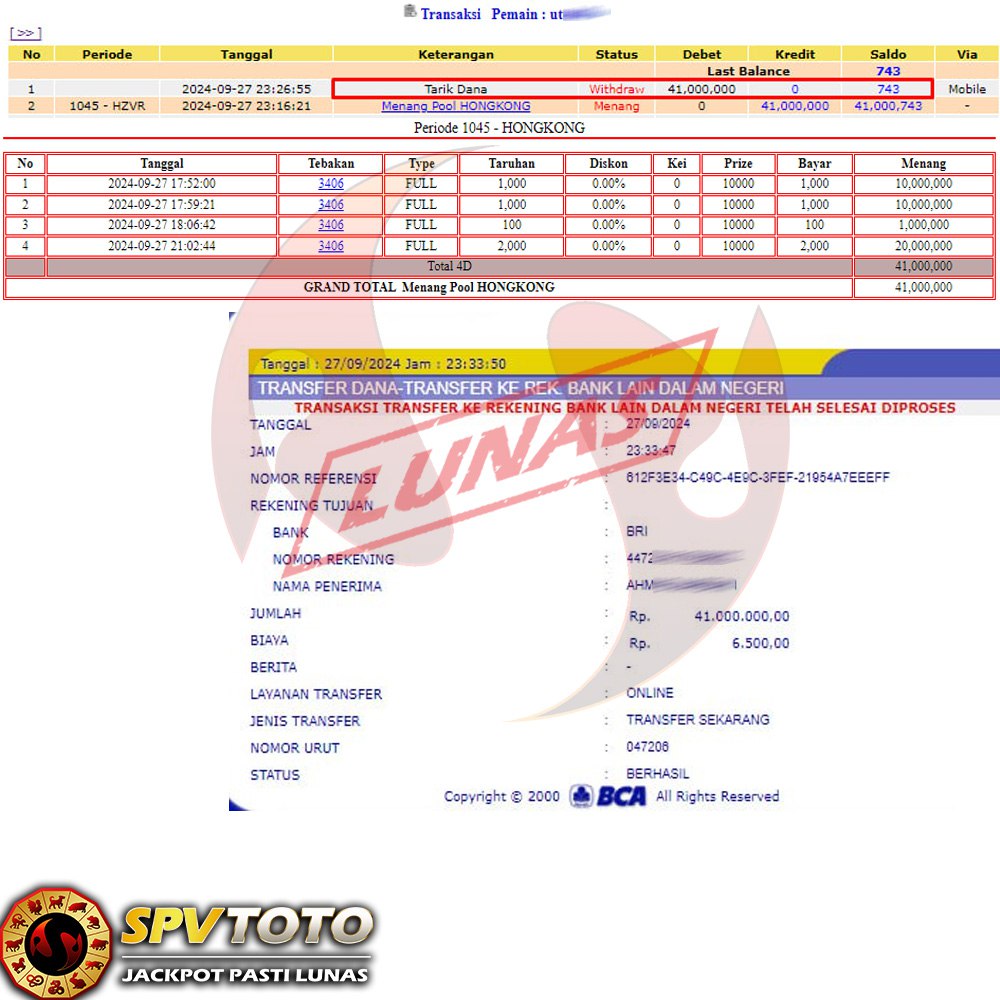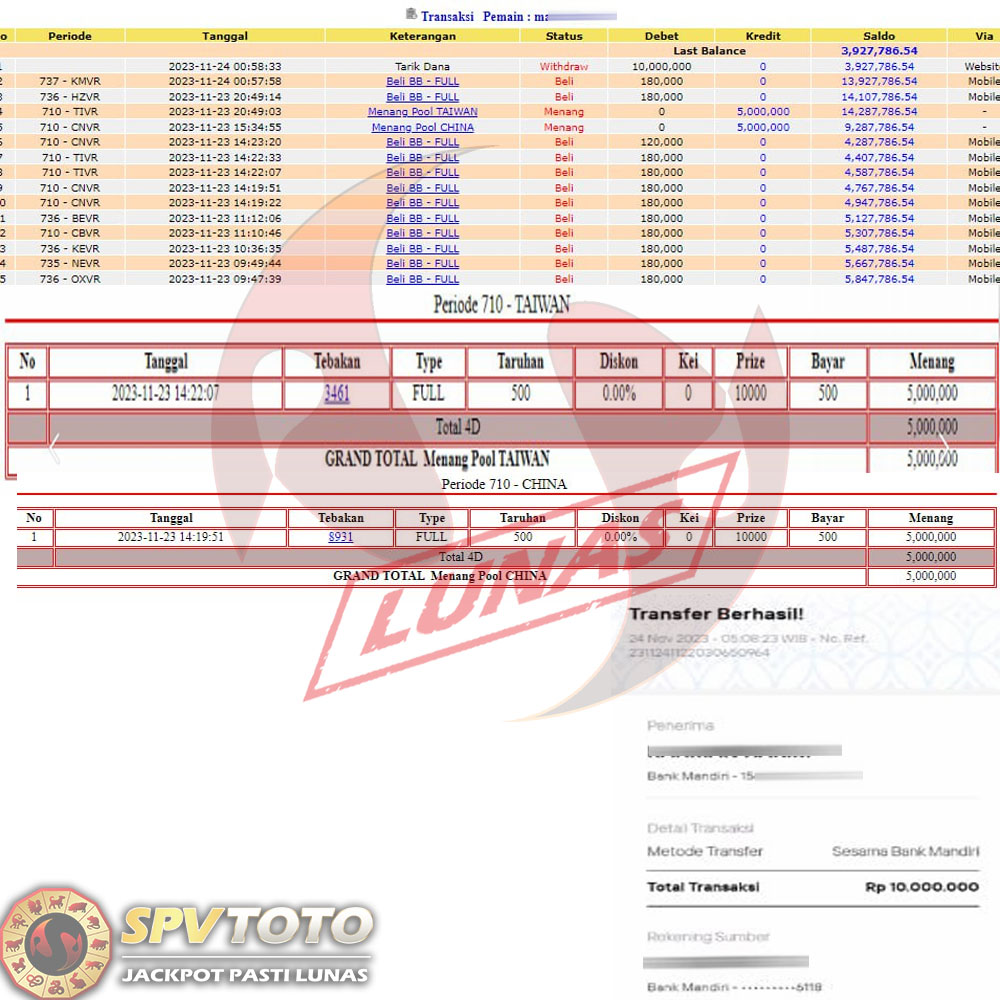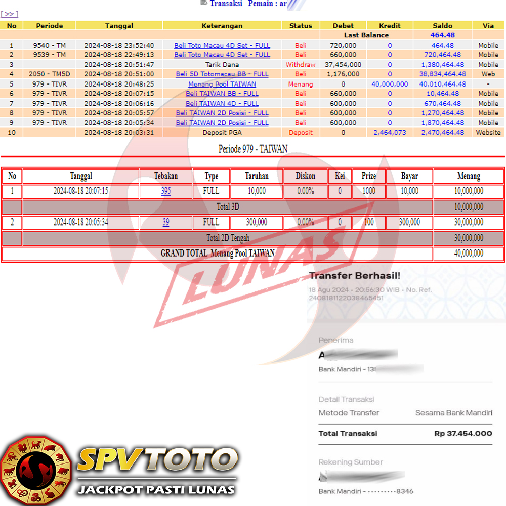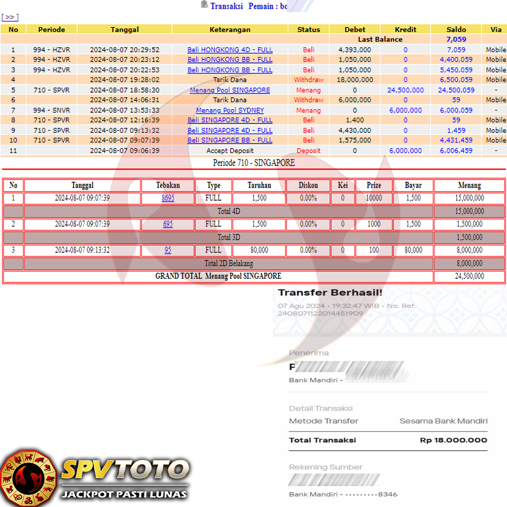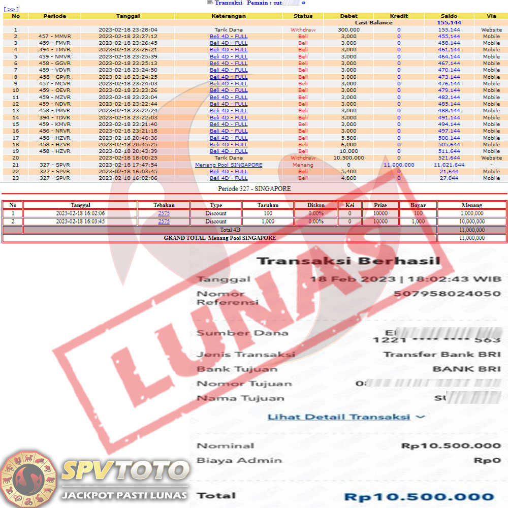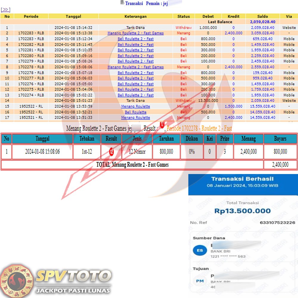 SELAMAT KEPADA MEMBER YANG MENDAPATKAN JACKPOT DI SPVTOTO