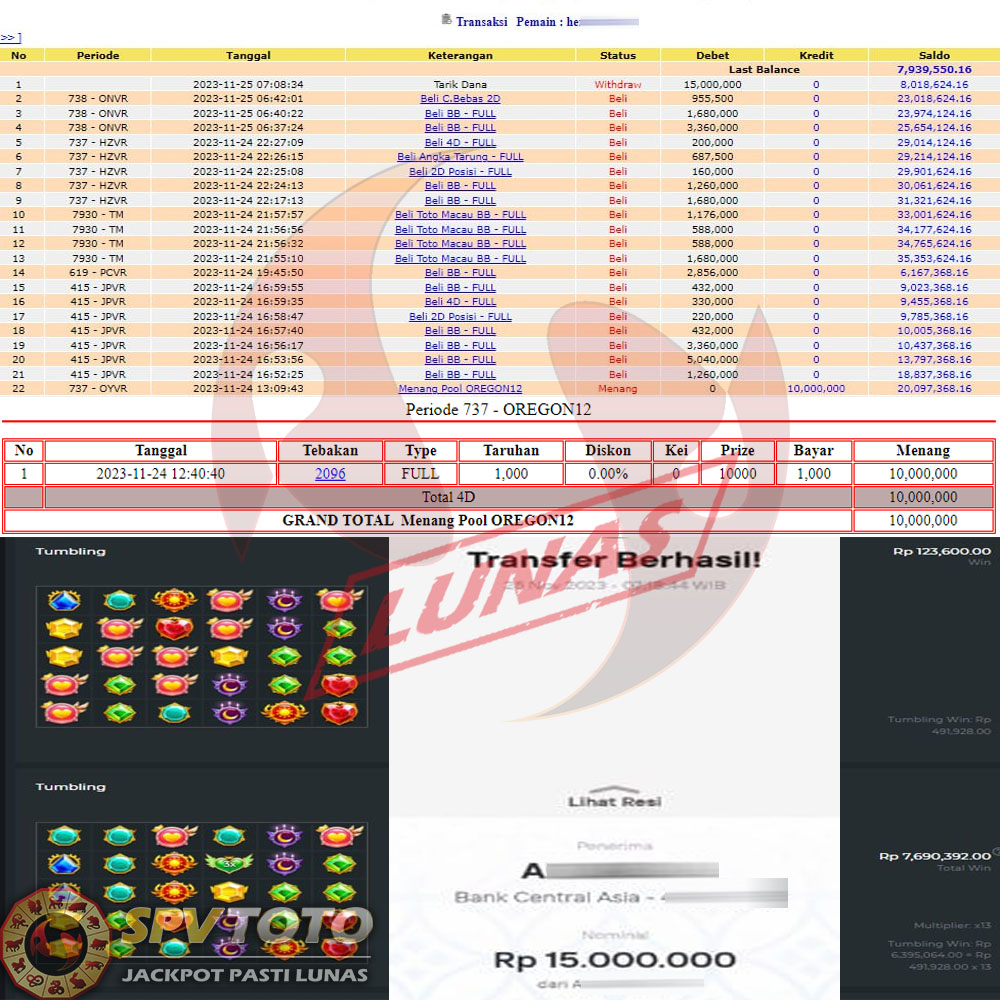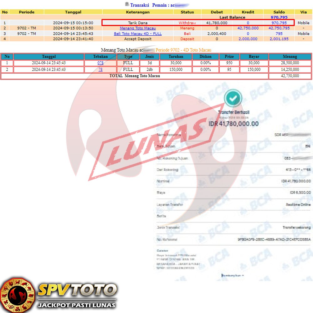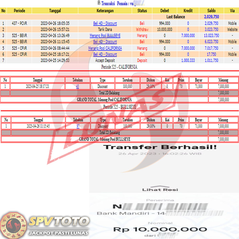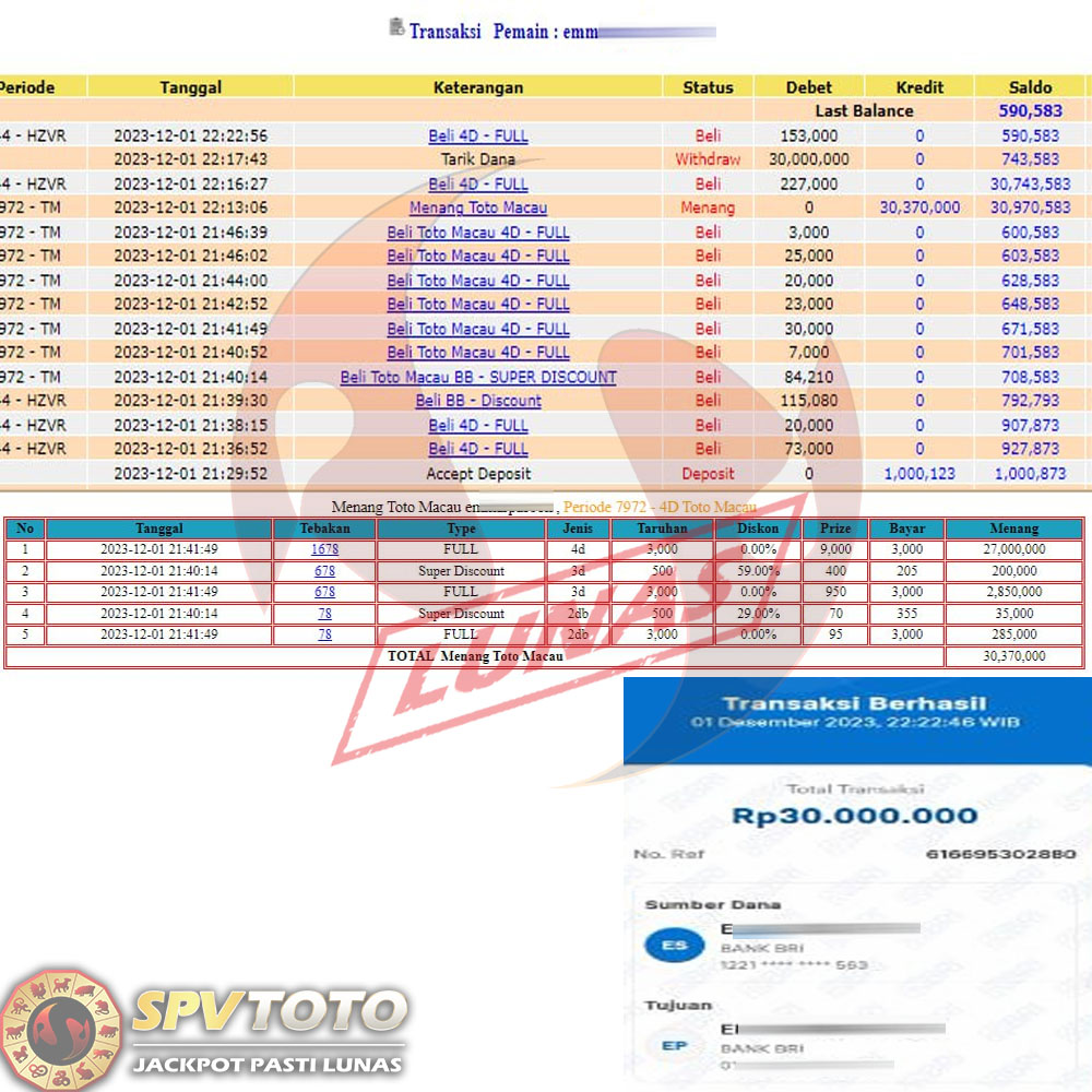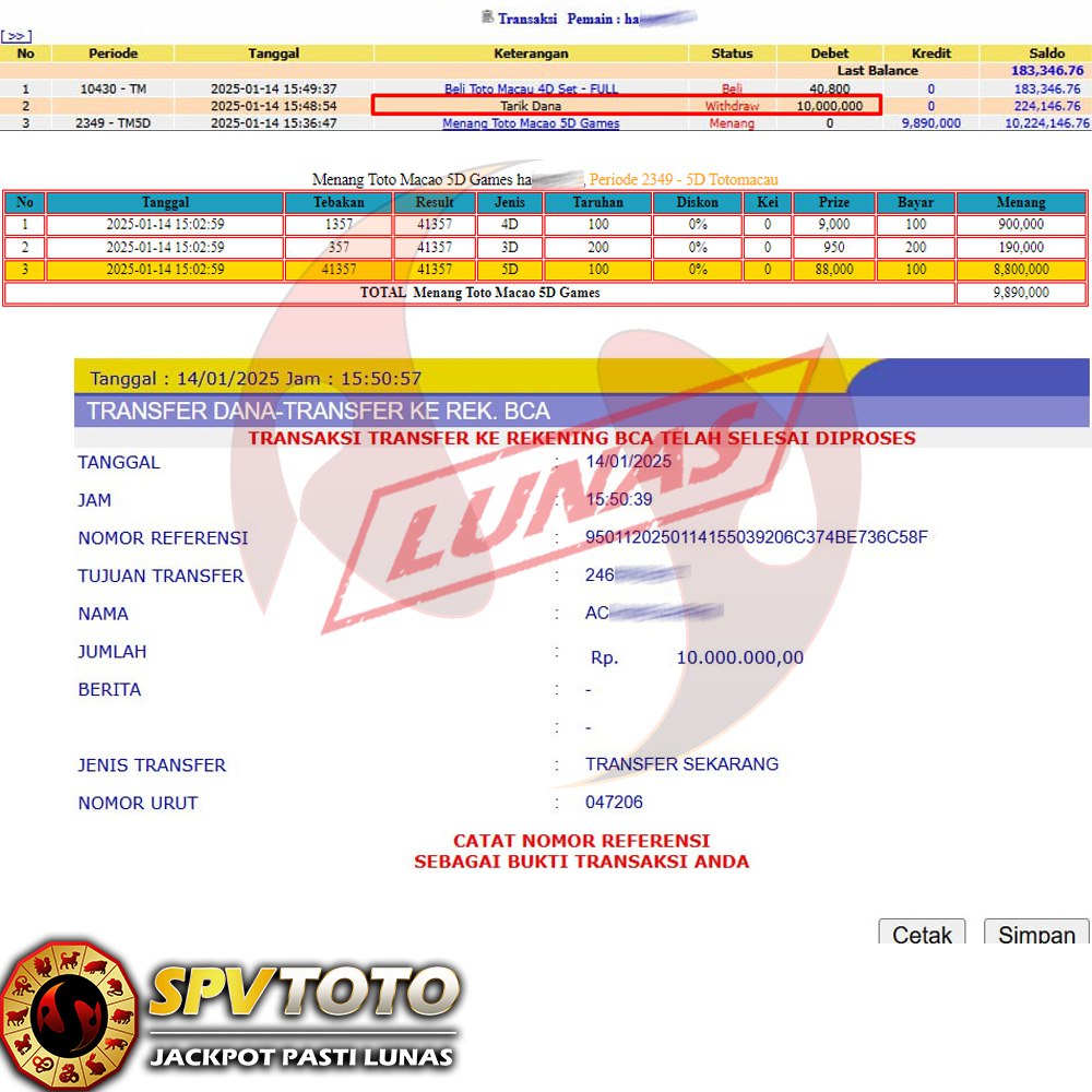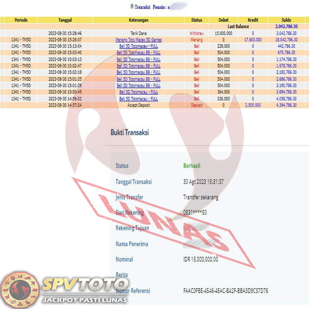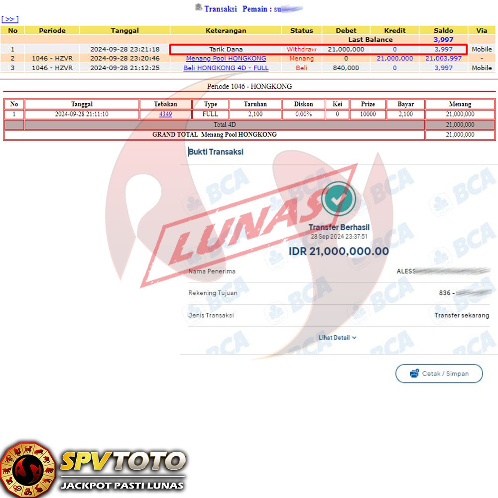 SELAMAT KEPADA MEMBER YANG MENDAPATKAN JACKPOT DI SPVTOTO