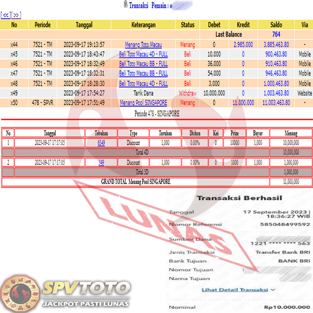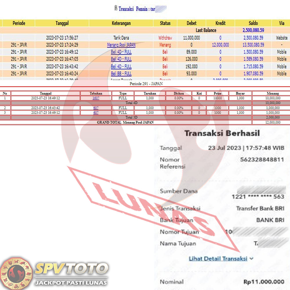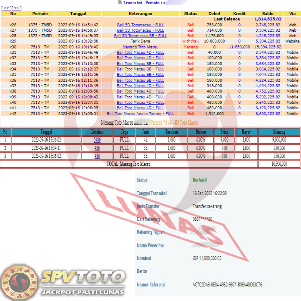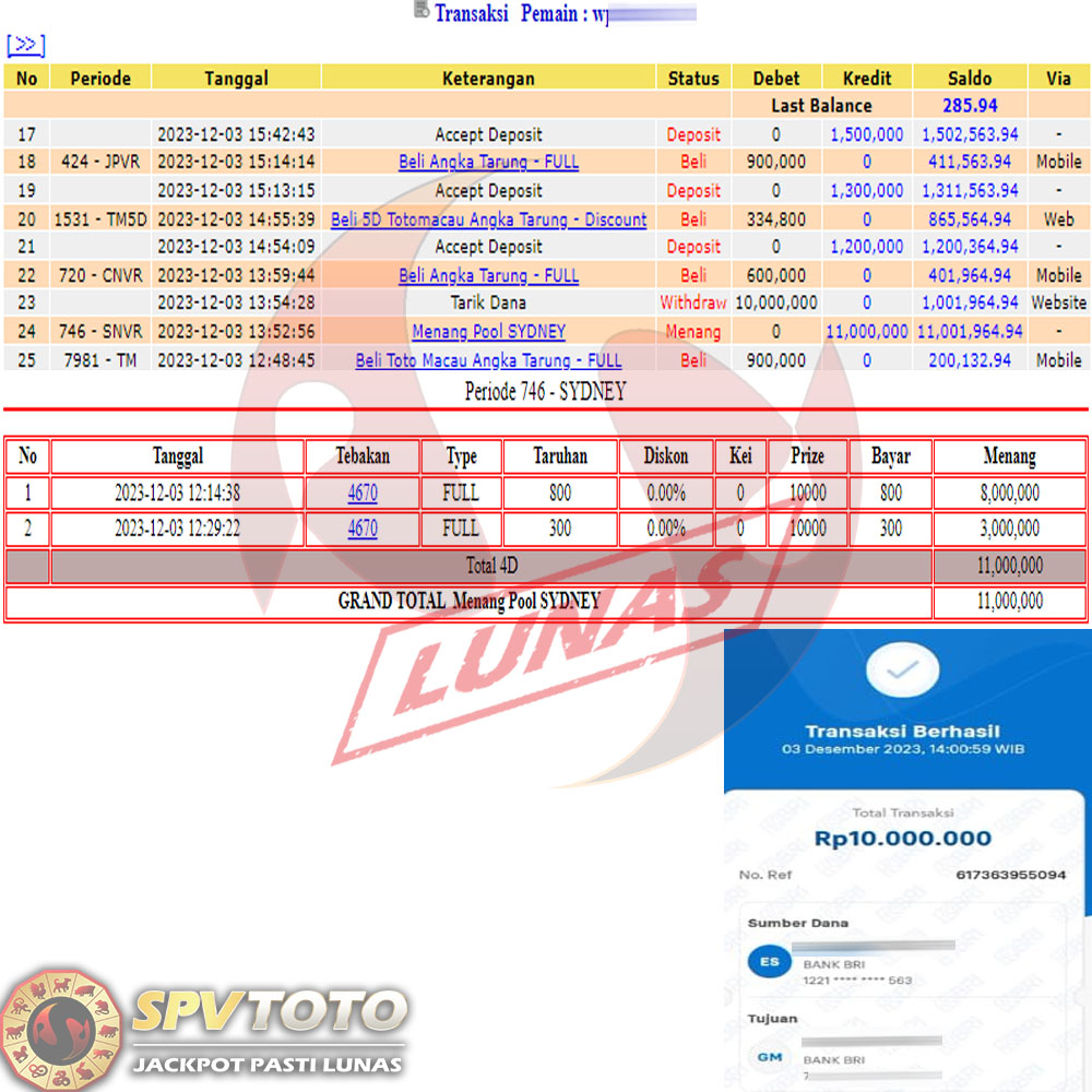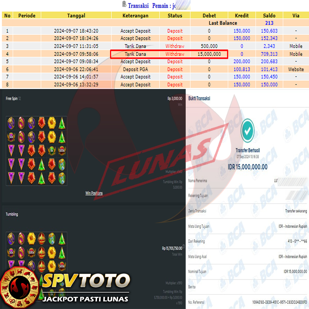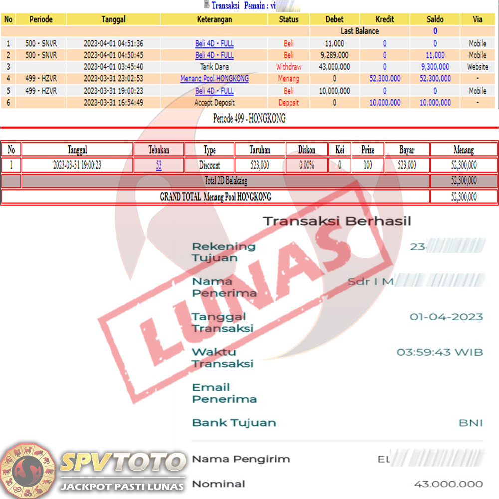 SELAMAT KEPADA MEMBER YANG MENDAPATKAN JACKPOT DI SPVTOTO