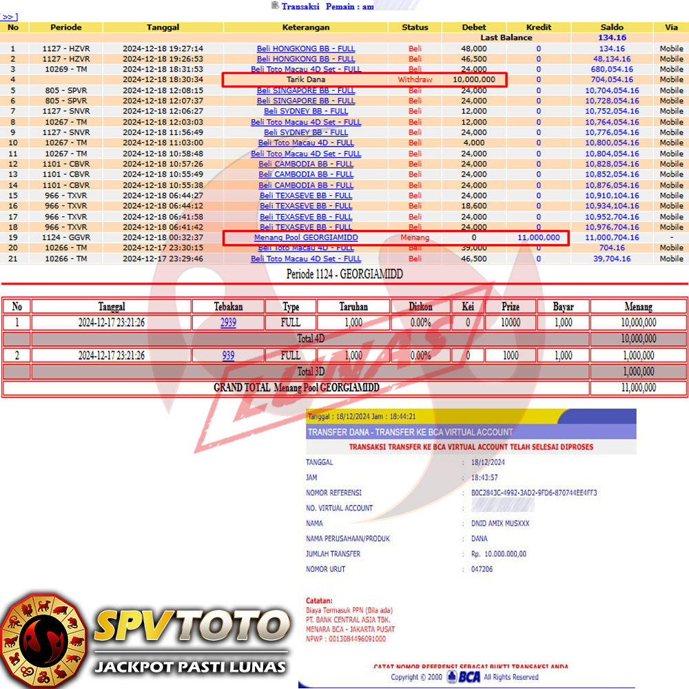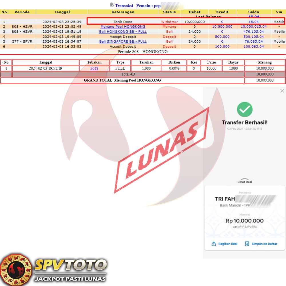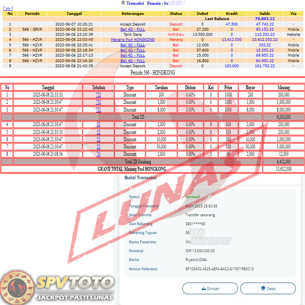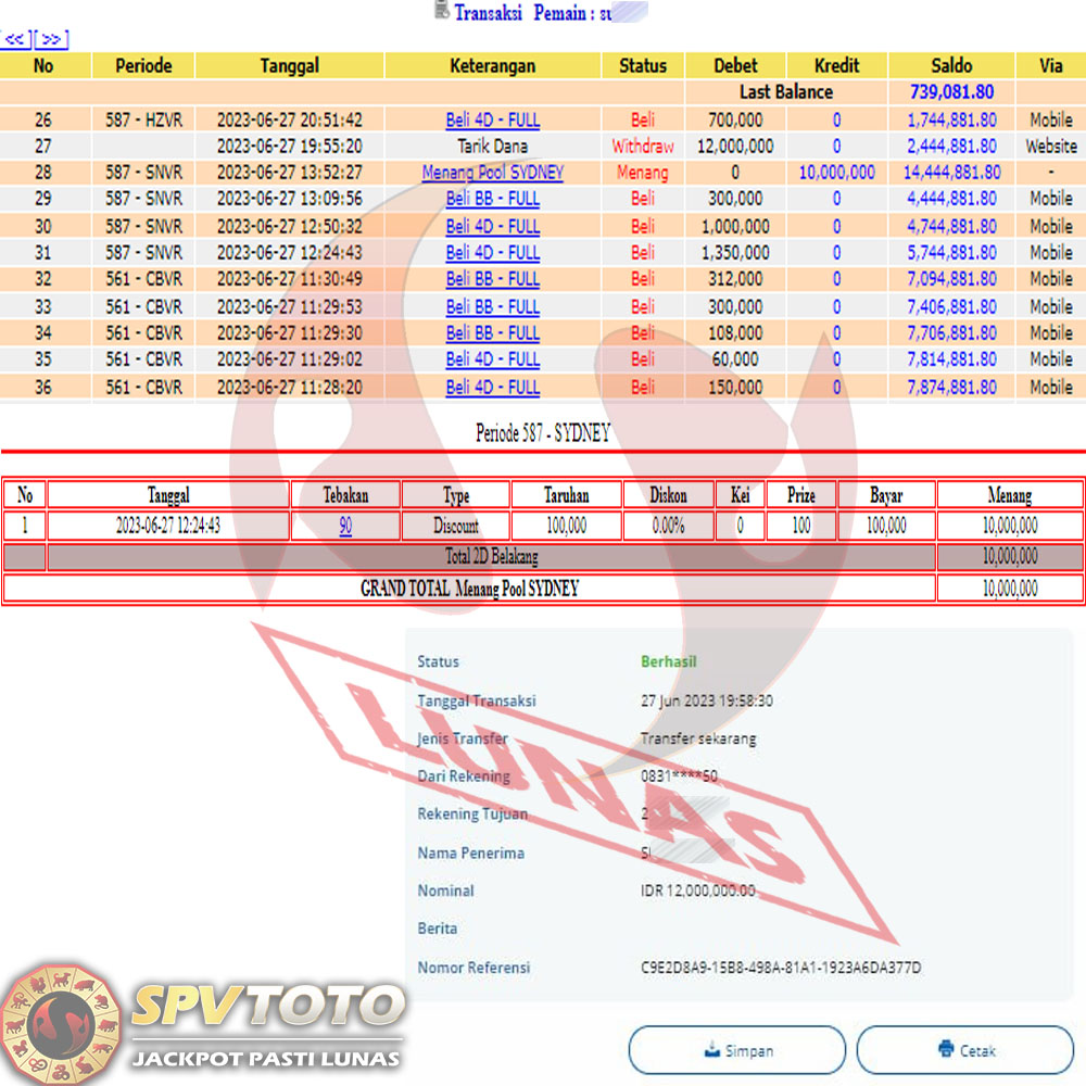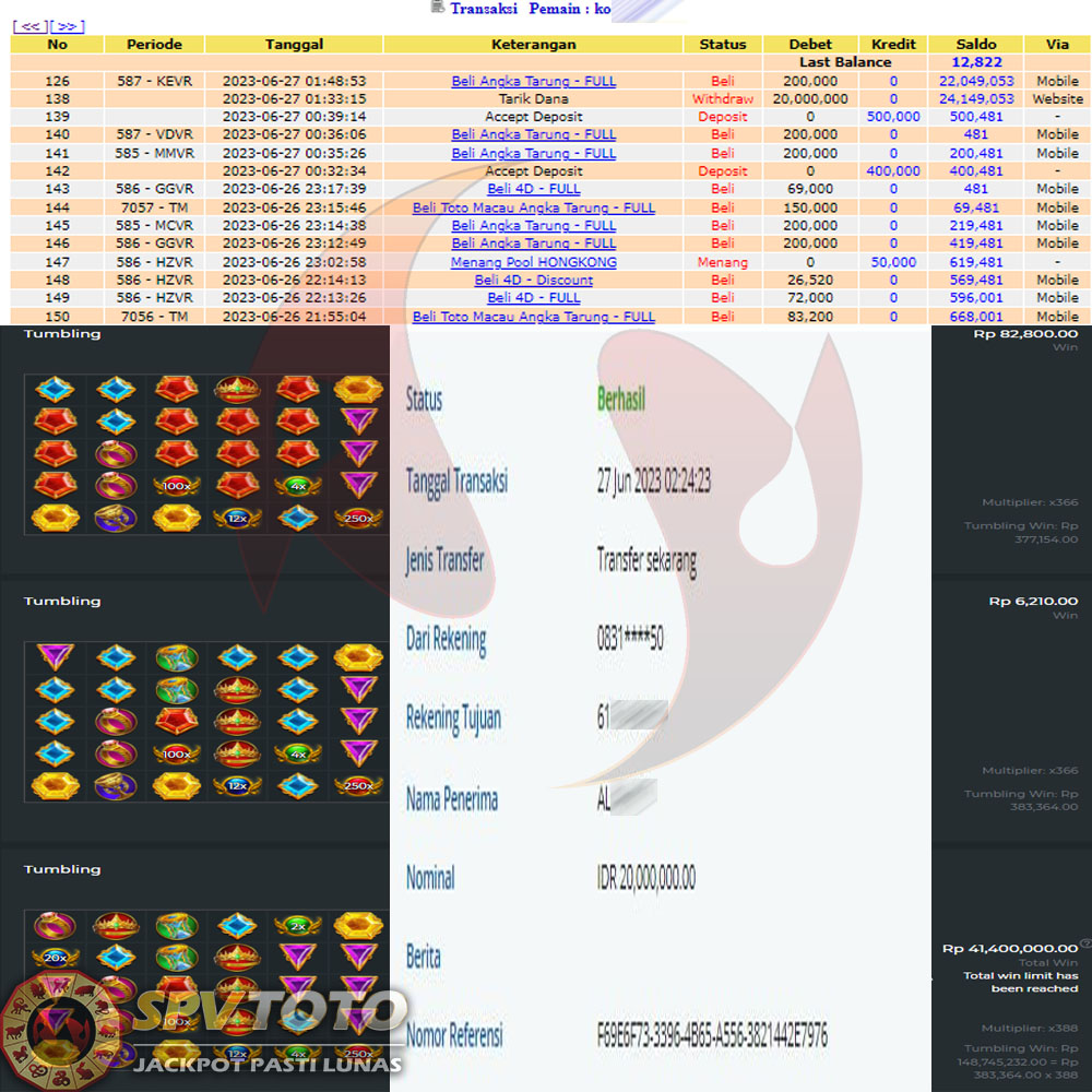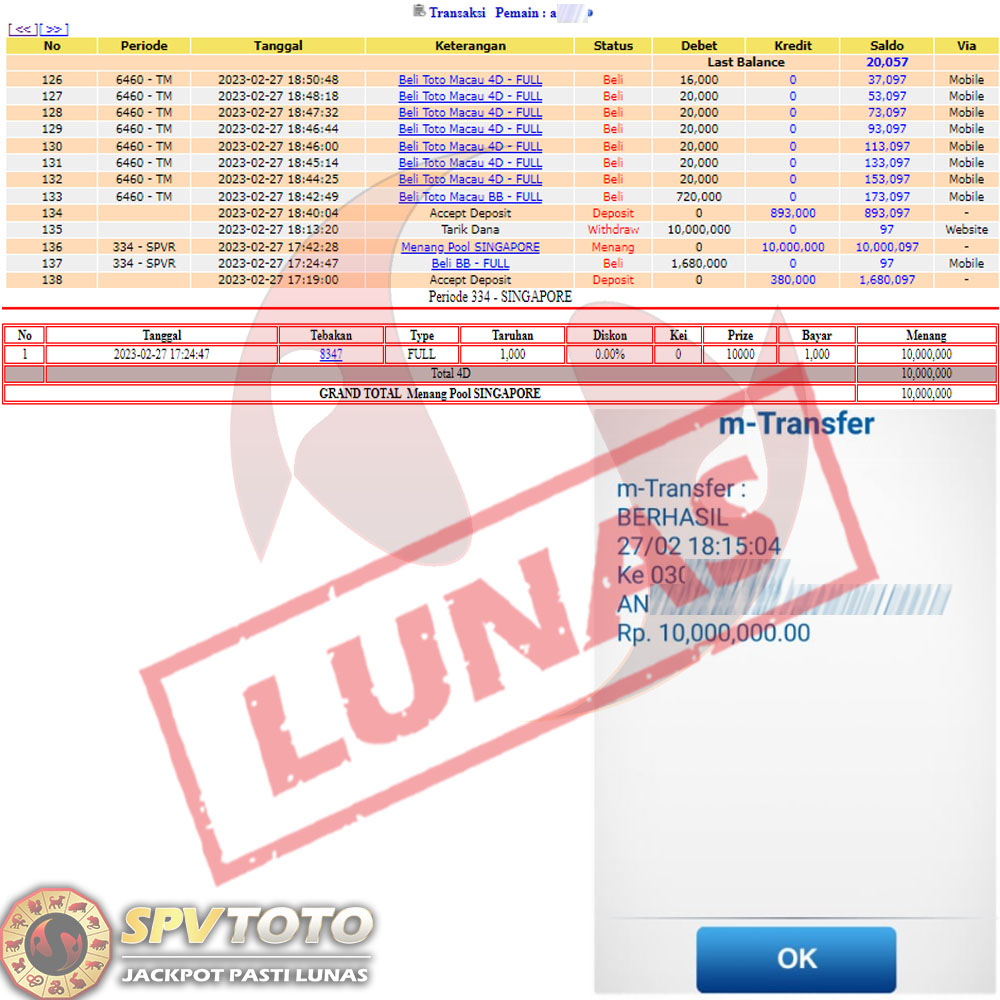 SELAMAT KEPADA MEMBER YANG MENDAPATKAN JACKPOT DI SPVTOTO