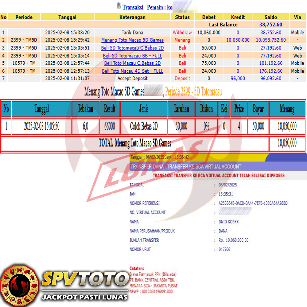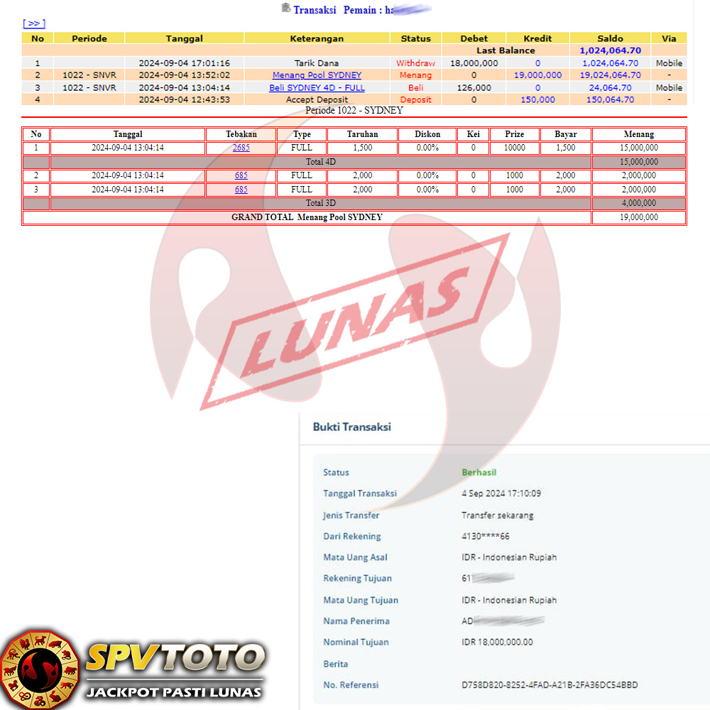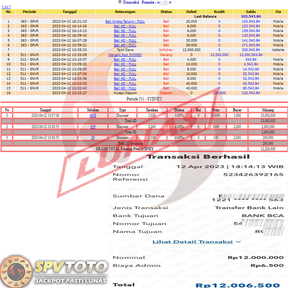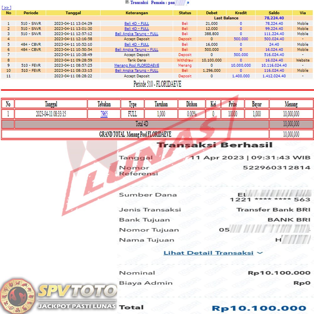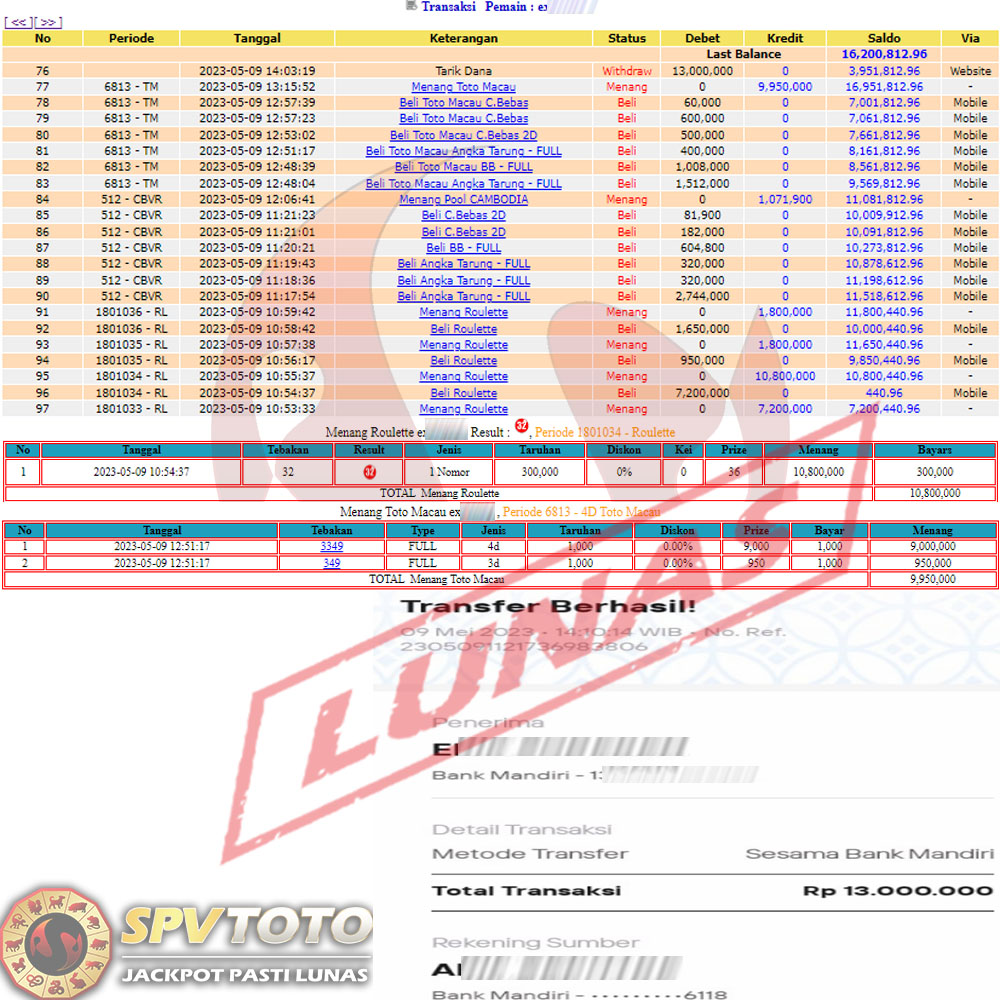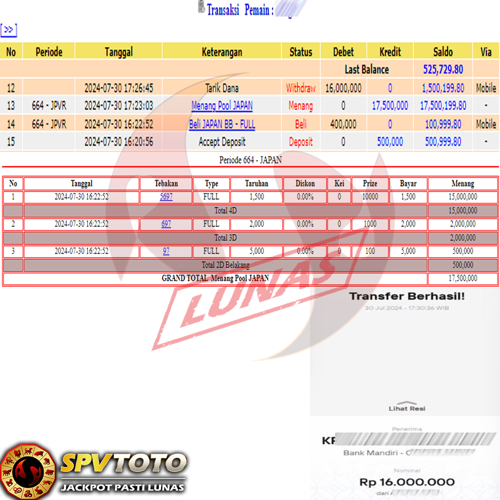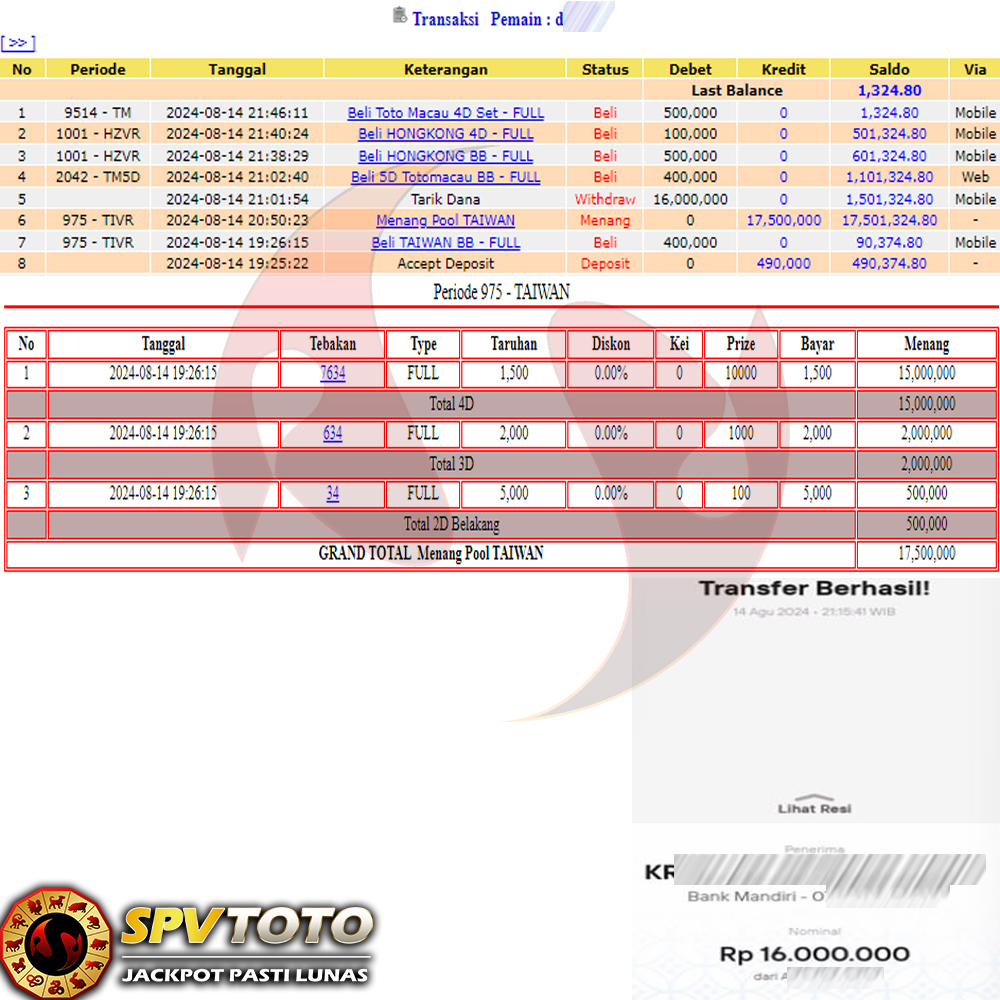SELAMAT KEPADA MEMBER YANG MENDAPATKAN JACKPOT DI SPVTOTO