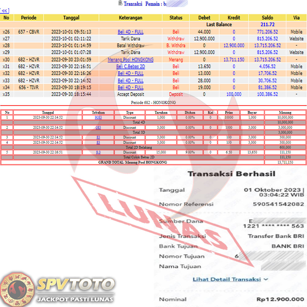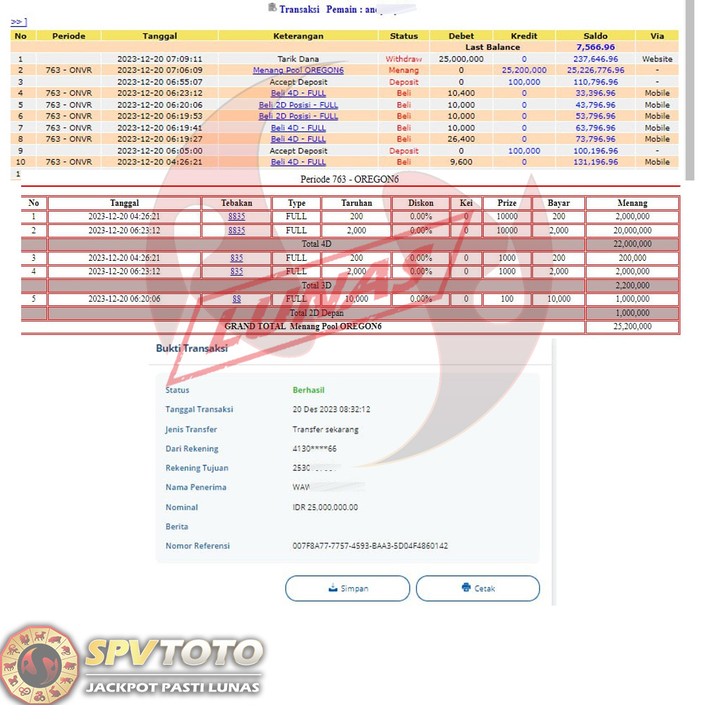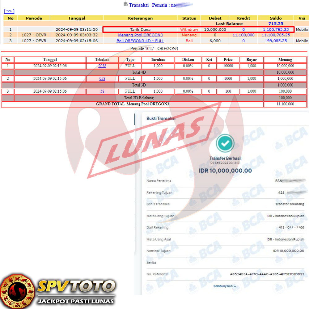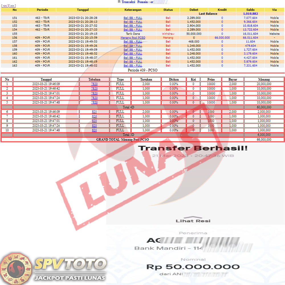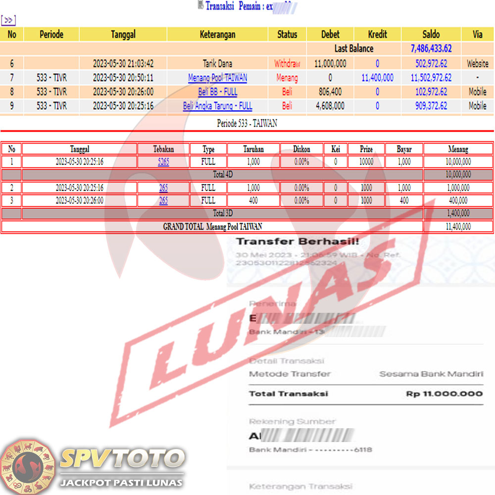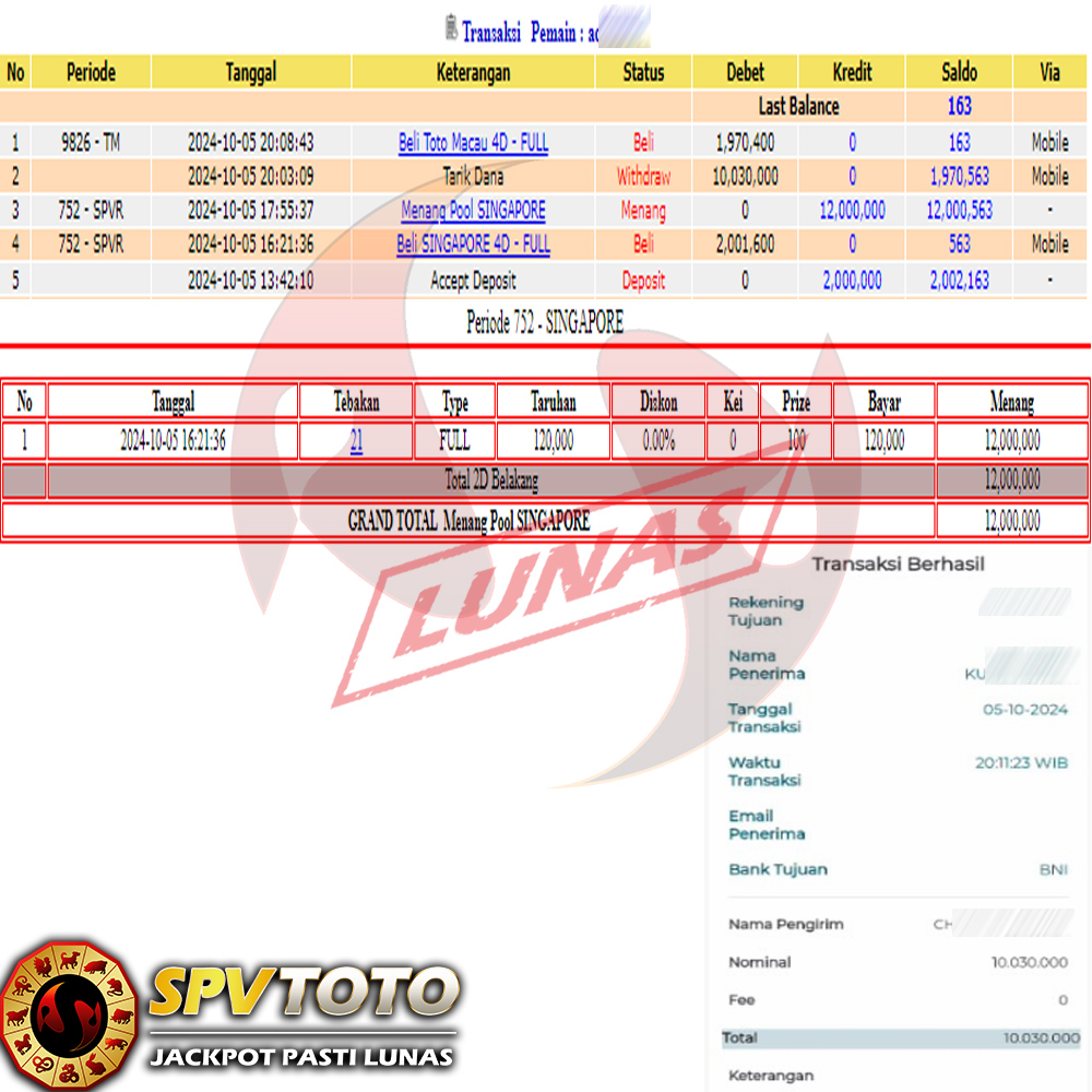 SELAMAT KEPADA MEMBER YANG MENDAPATKAN JACKPOT DI SPVTOTO