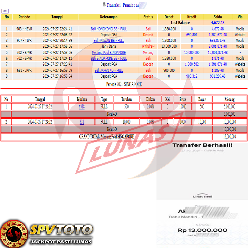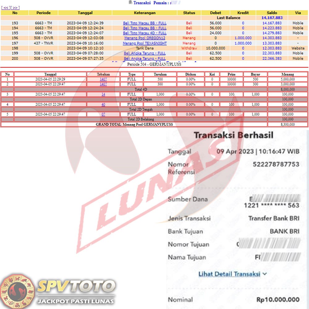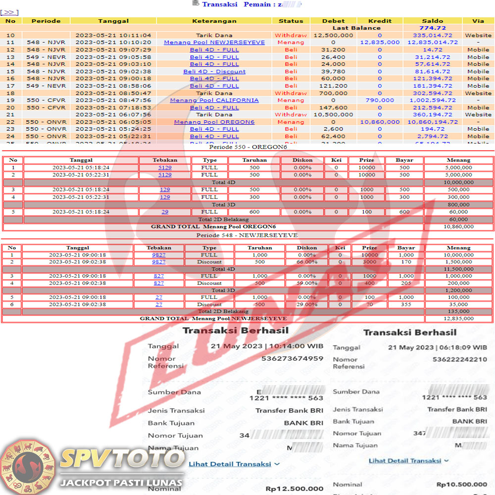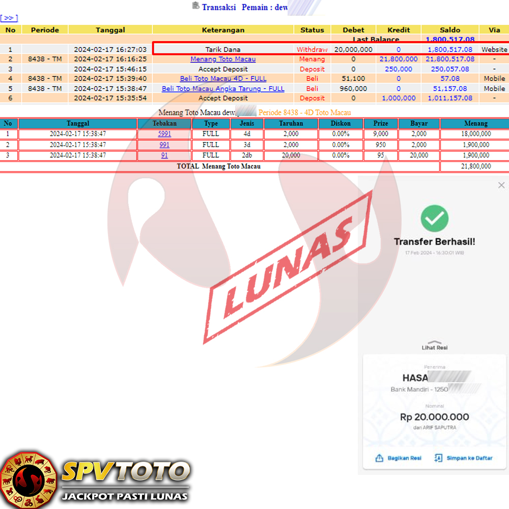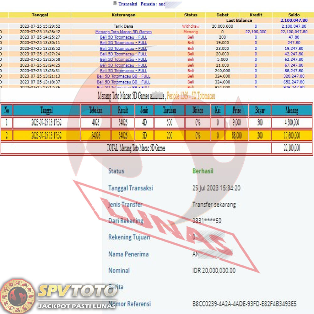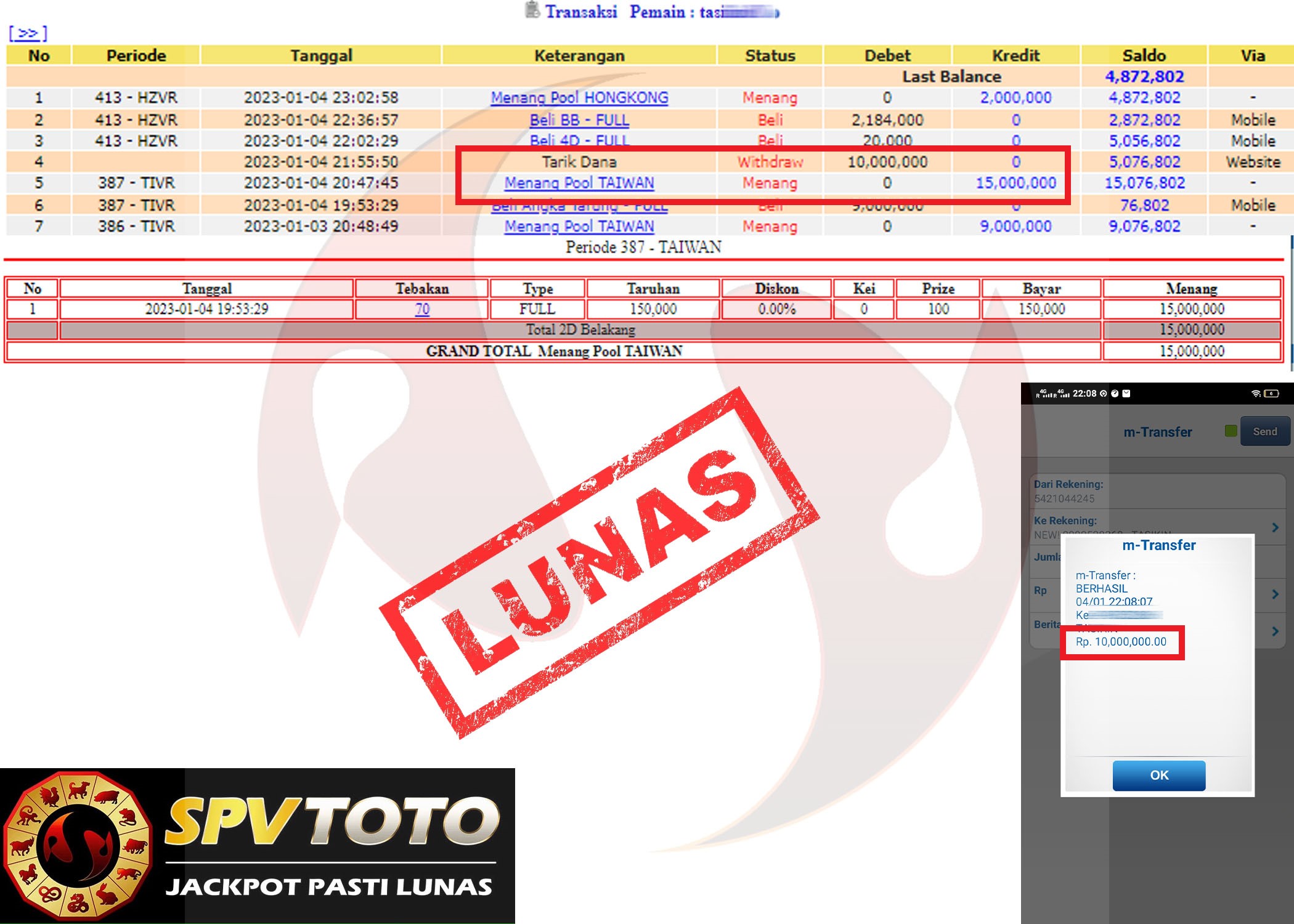 SELAMAT KEPADA MEMBER YANG MENDAPATKAN JACKPOT DI SPVTOTO