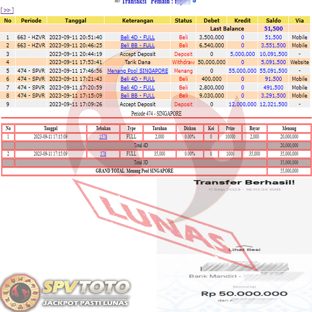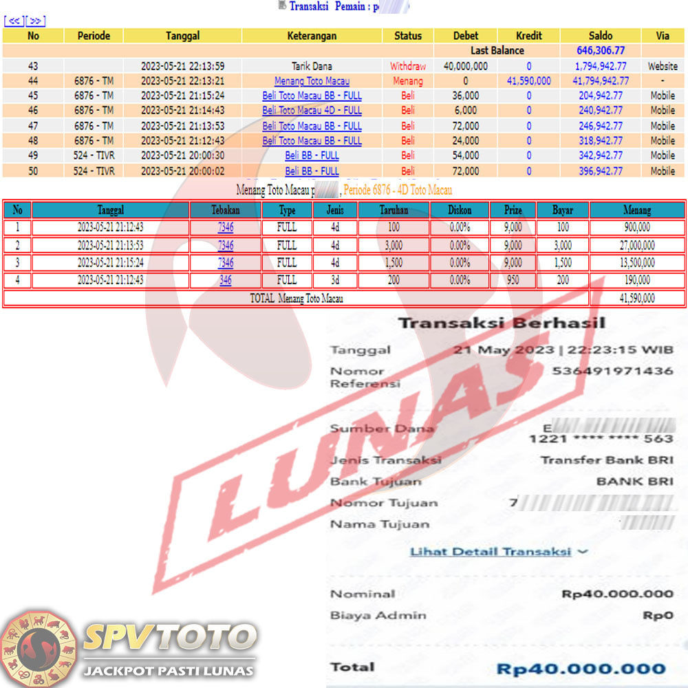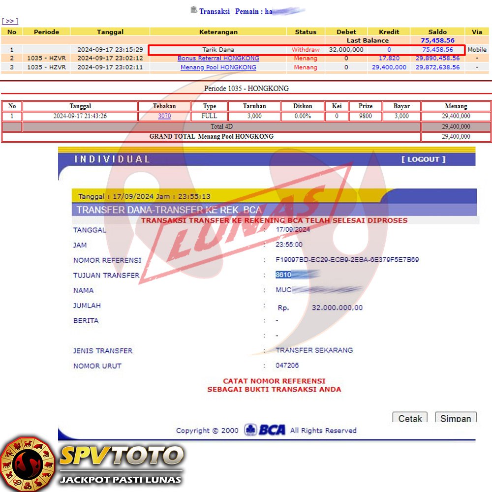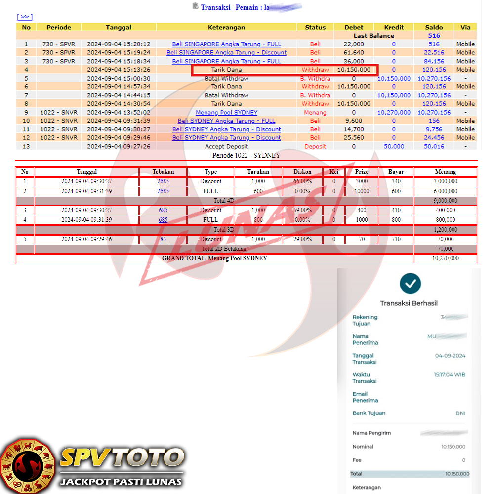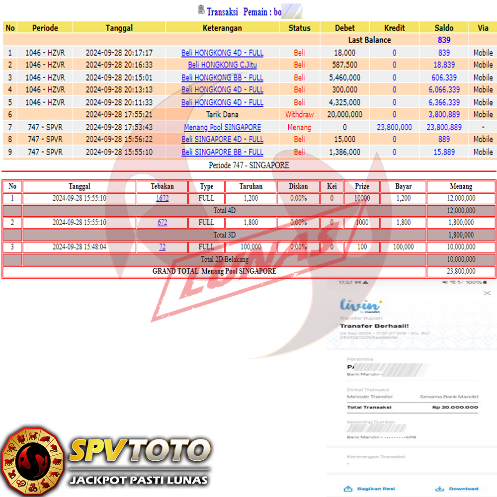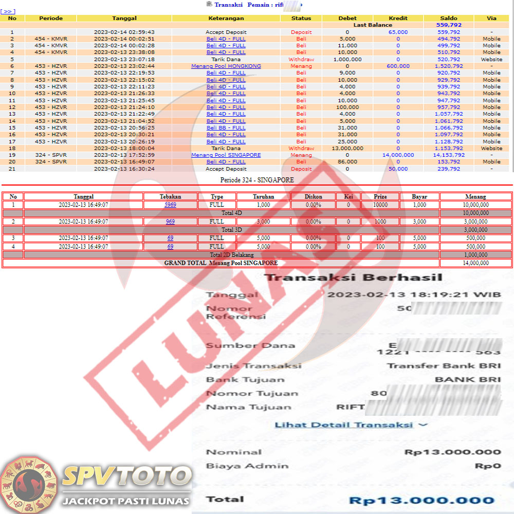 SELAMAT KEPADA MEMBER YANG MENDAPATKAN JACKPOT DI SPVTOTO