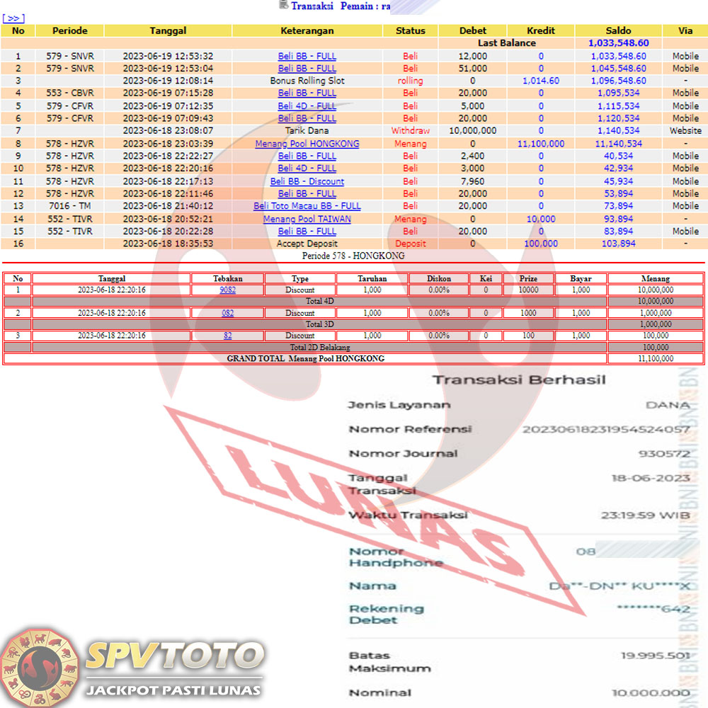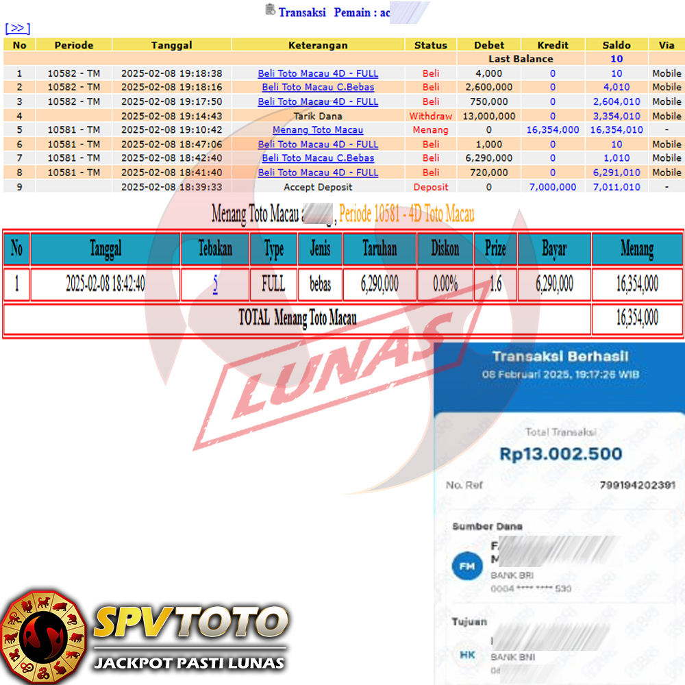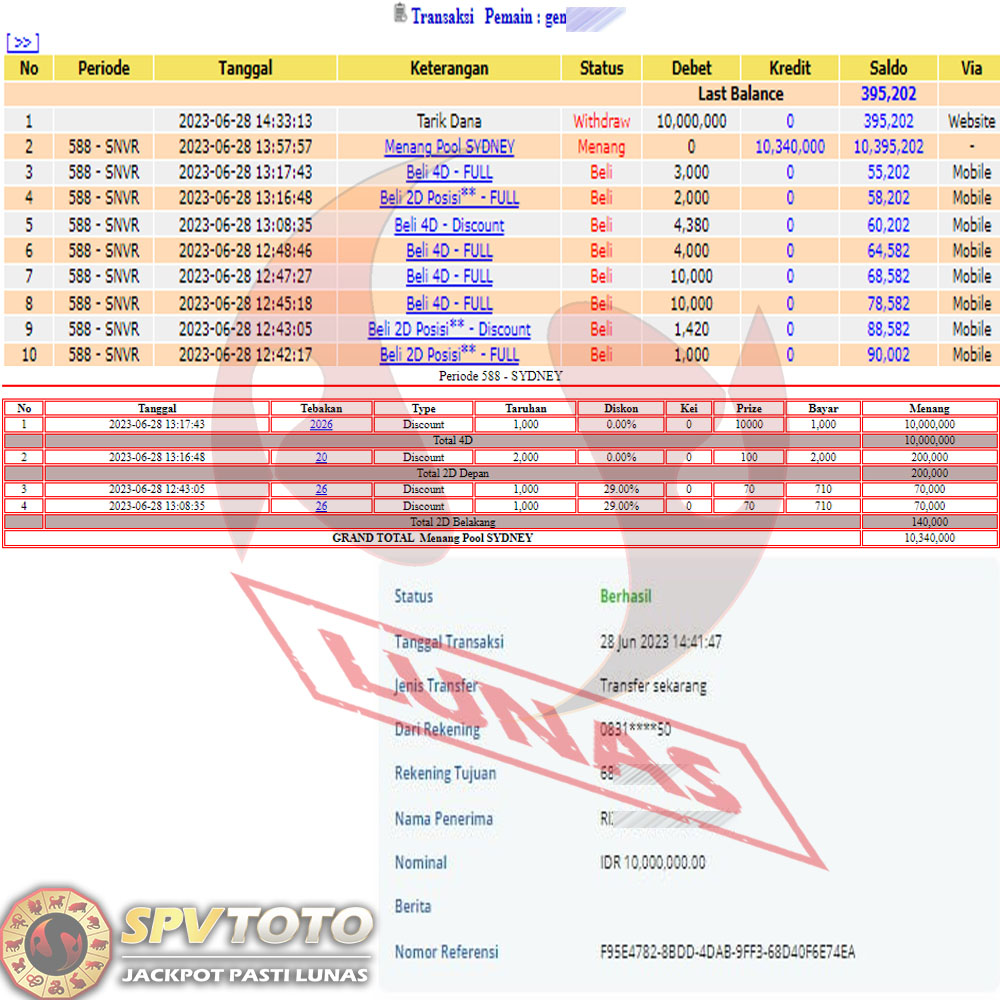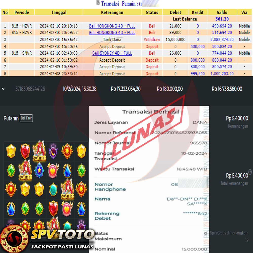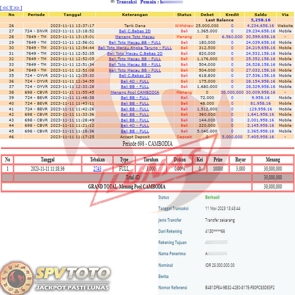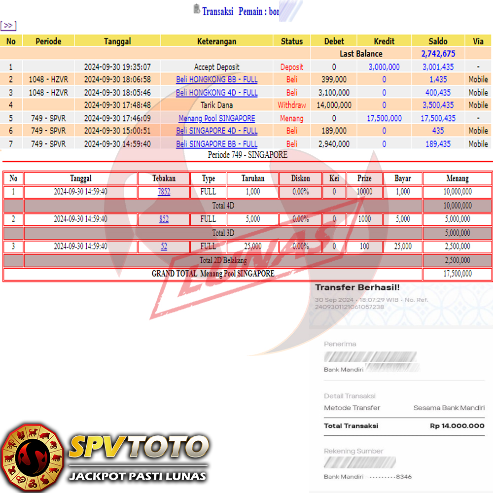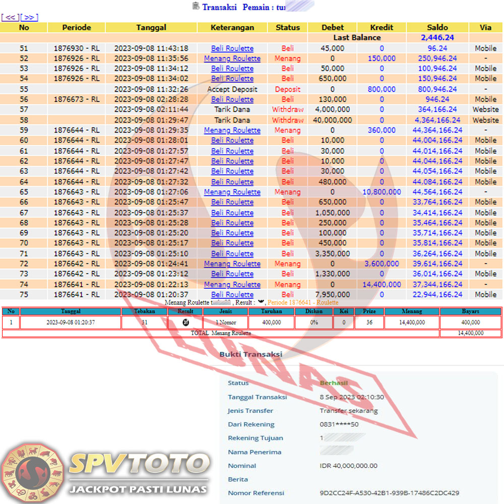 SELAMAT KEPADA MEMBER YANG MENDAPATKAN JACKPOT DI SPVTOTO