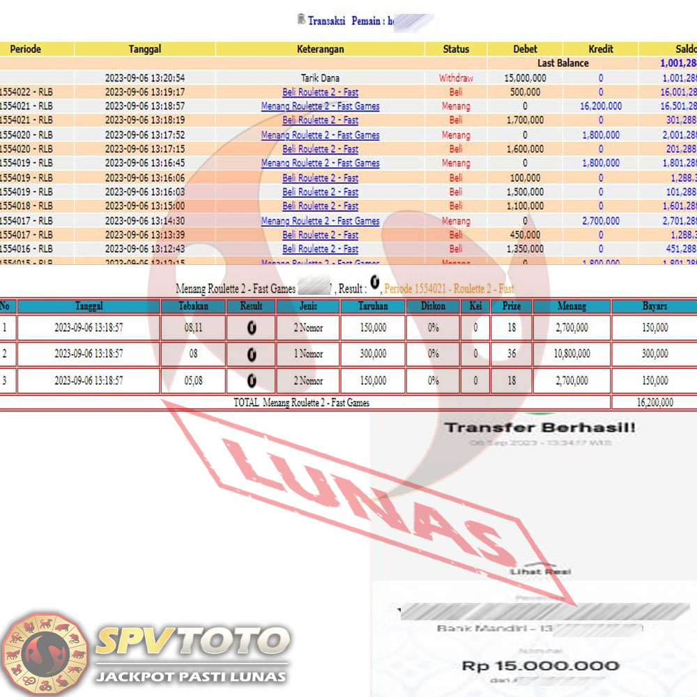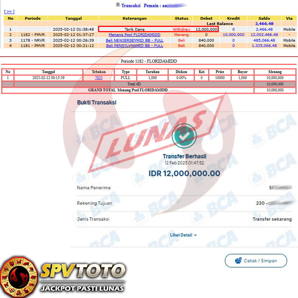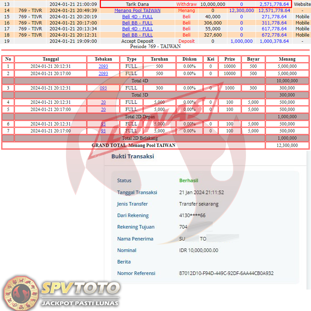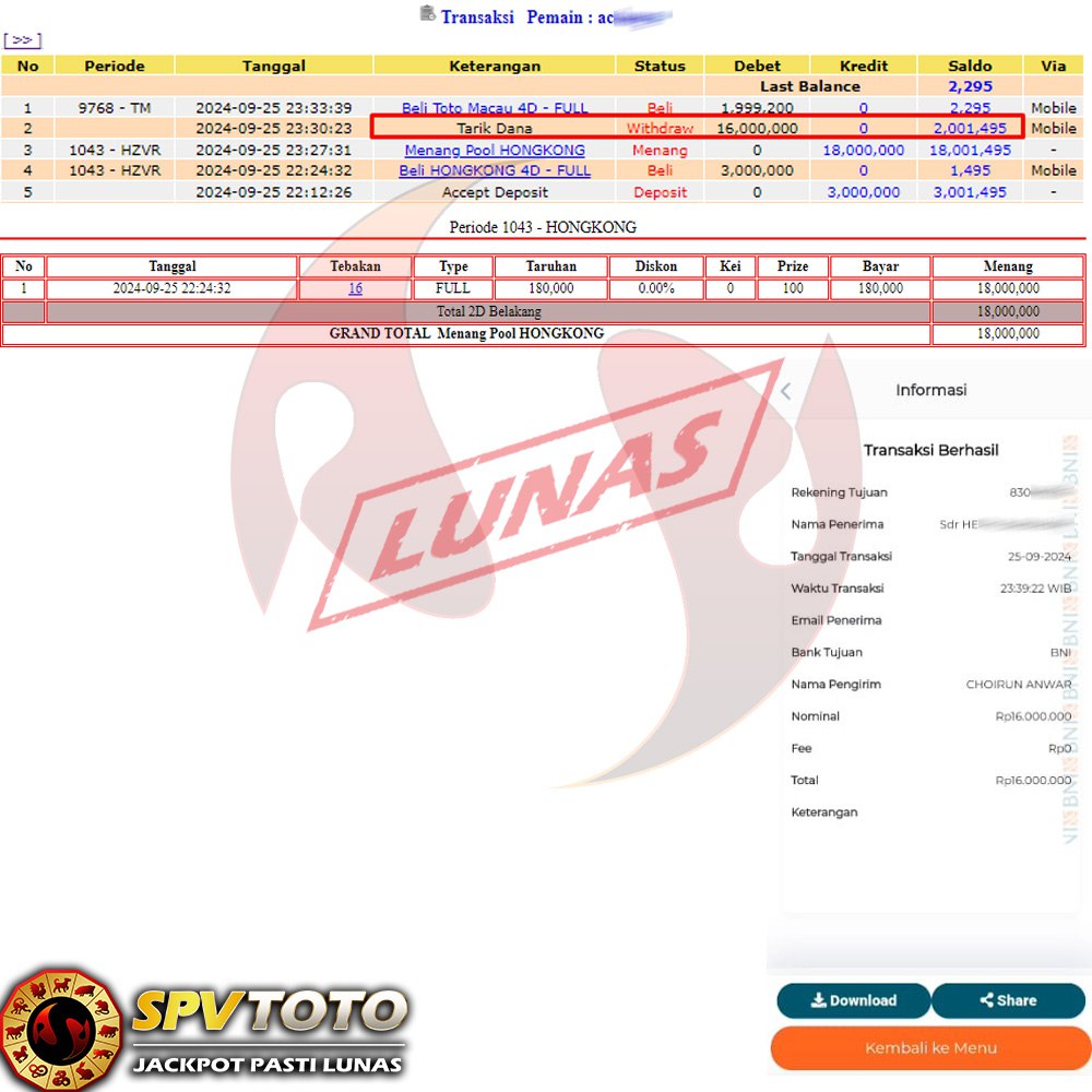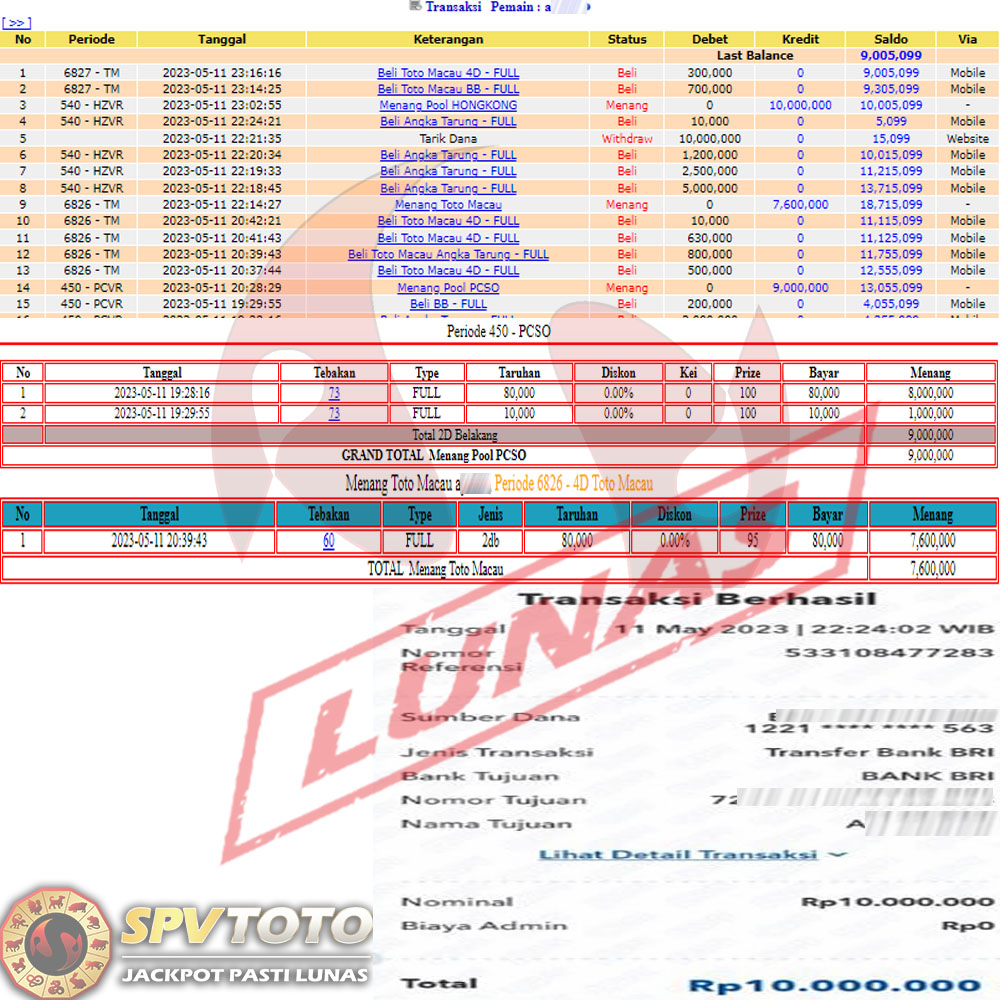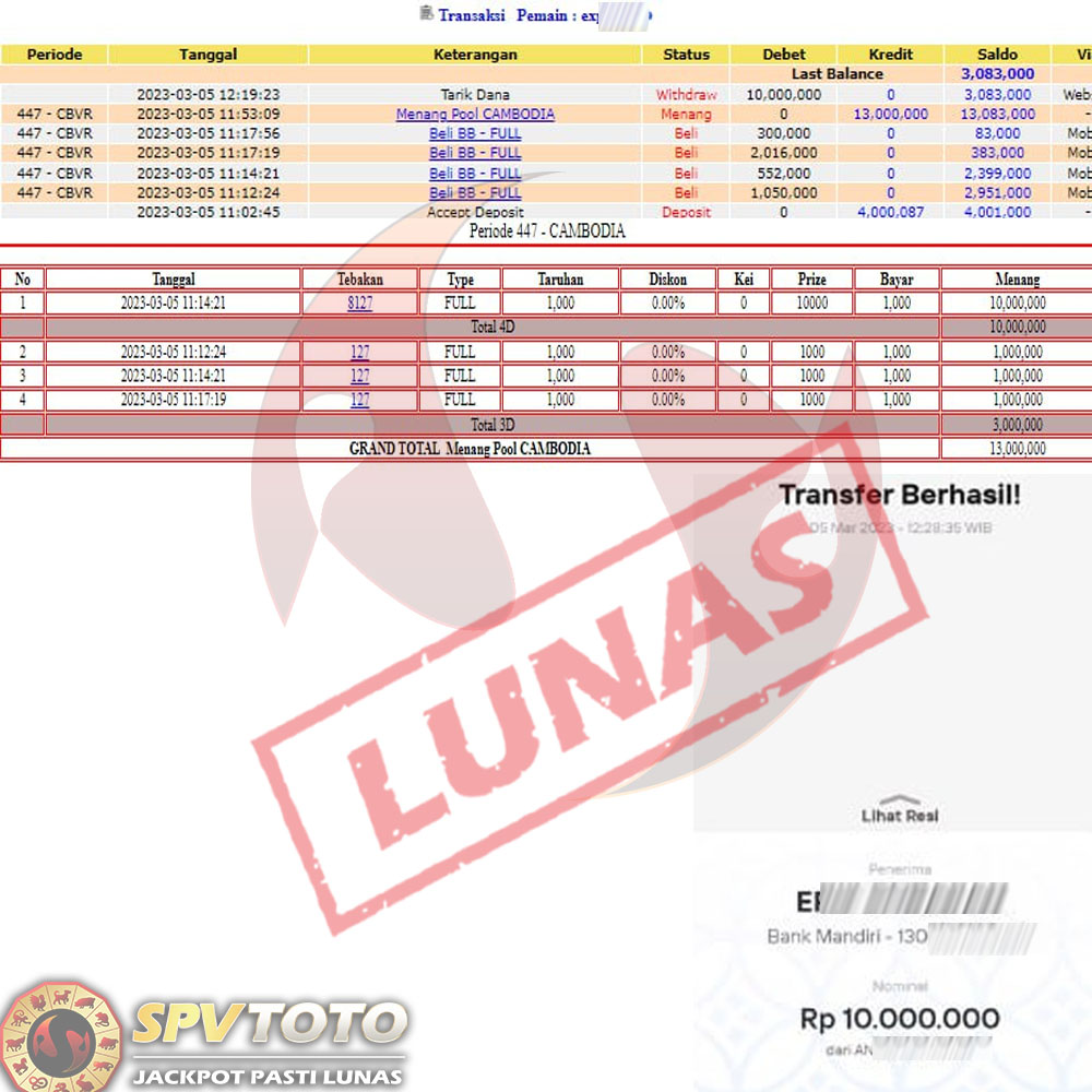 SELAMAT KEPADA MEMBER YANG MENDAPATKAN JACKPOT DI SPVTOTO