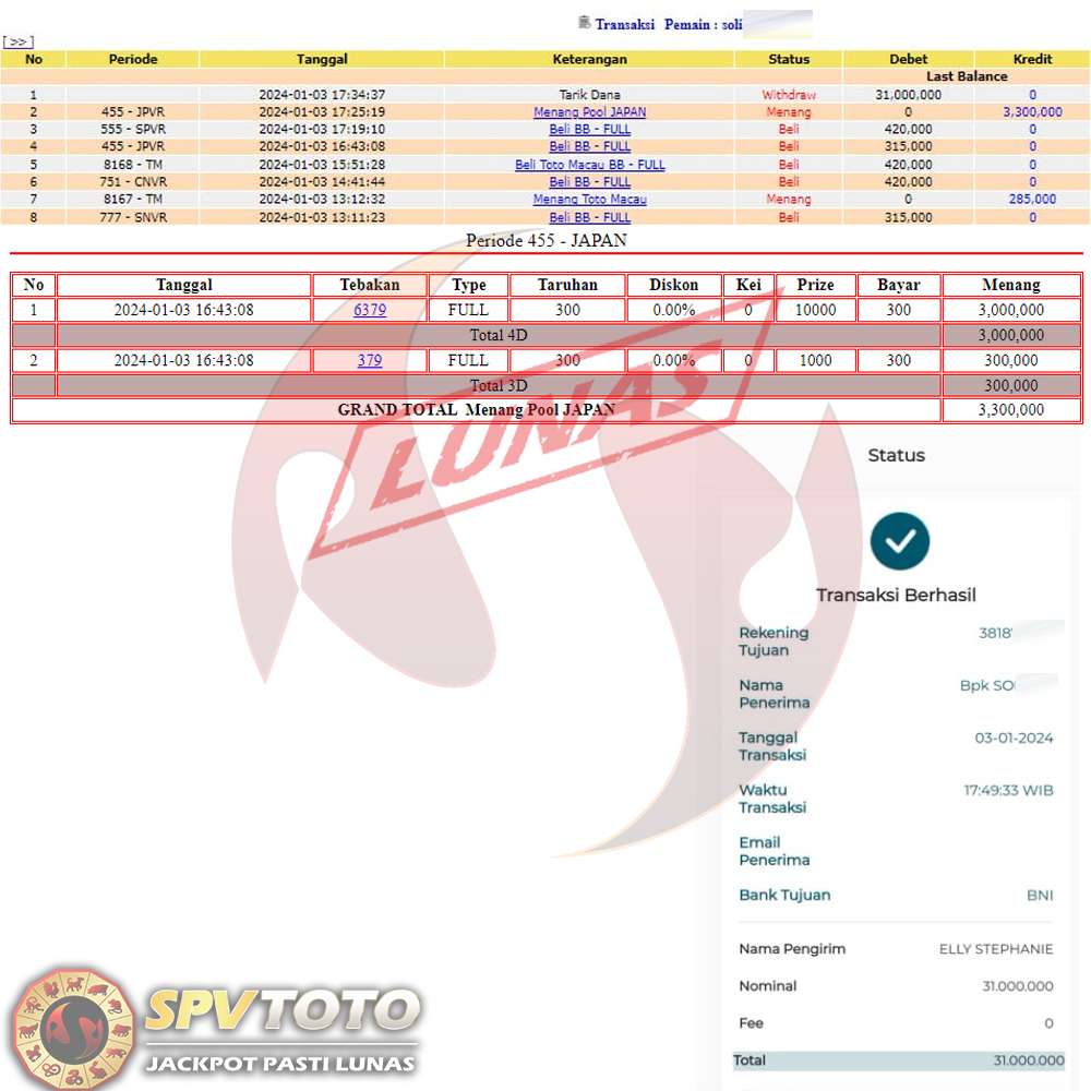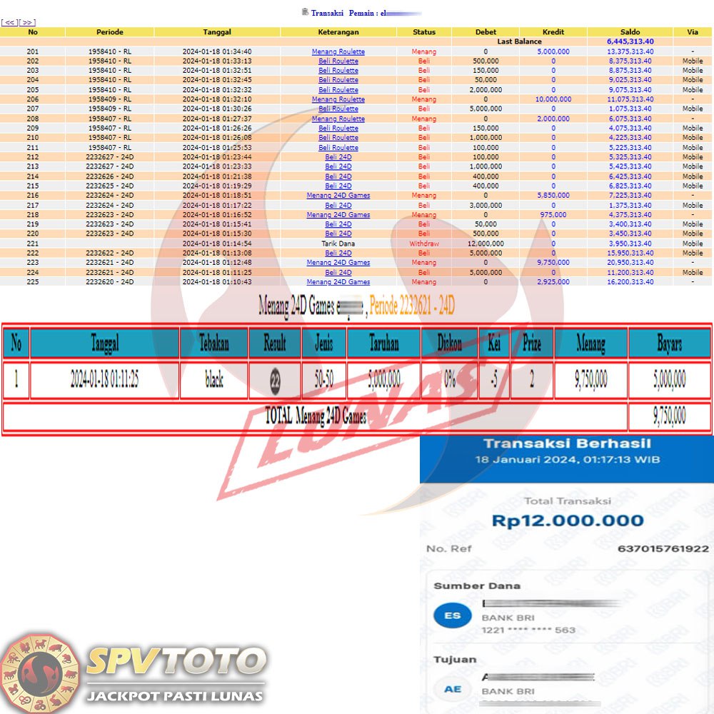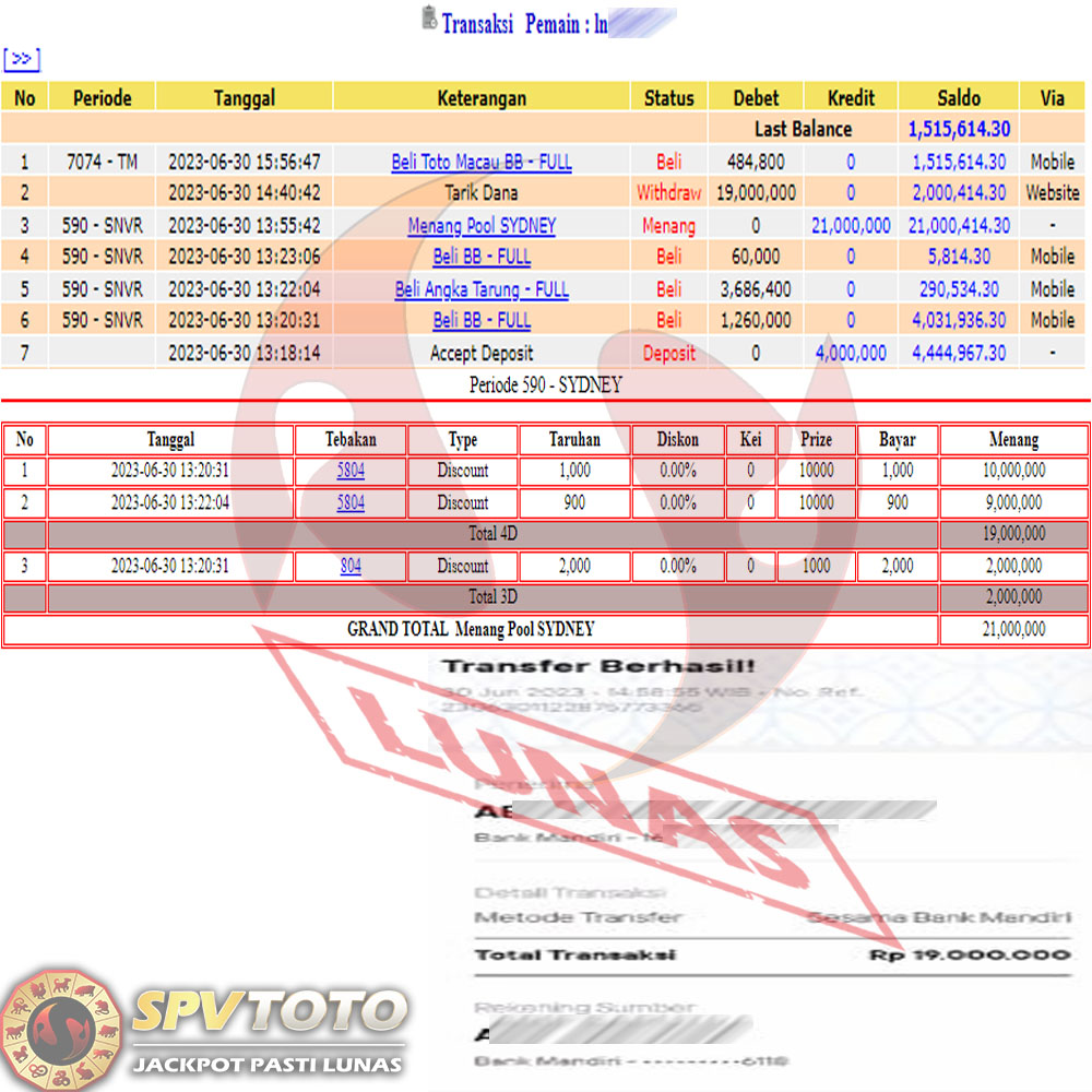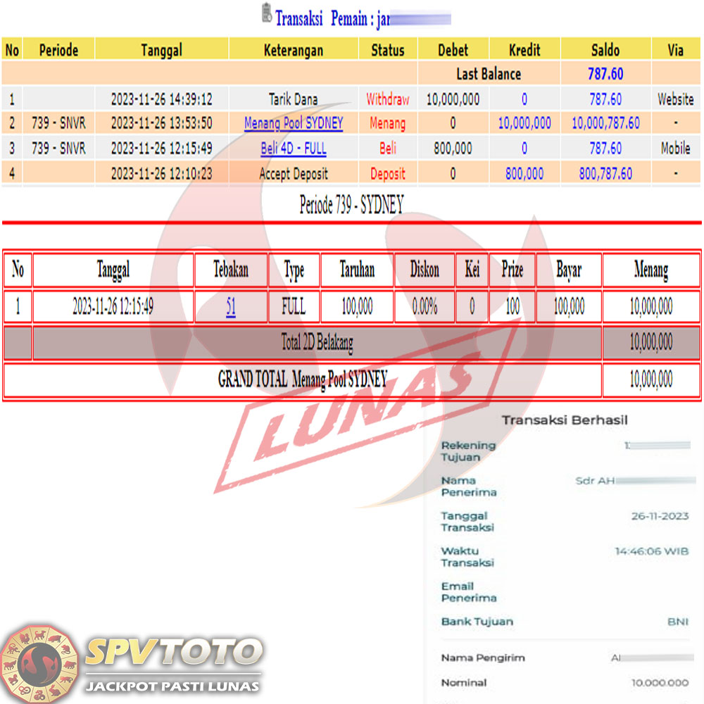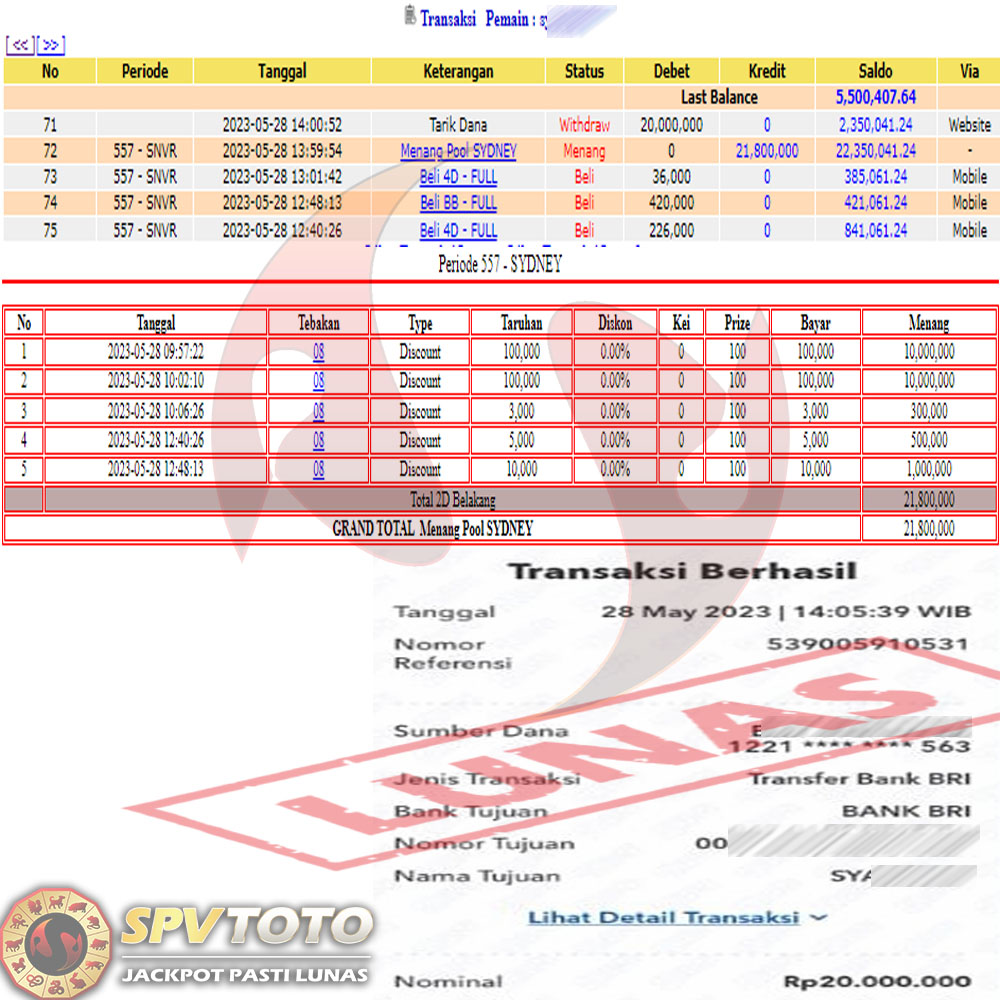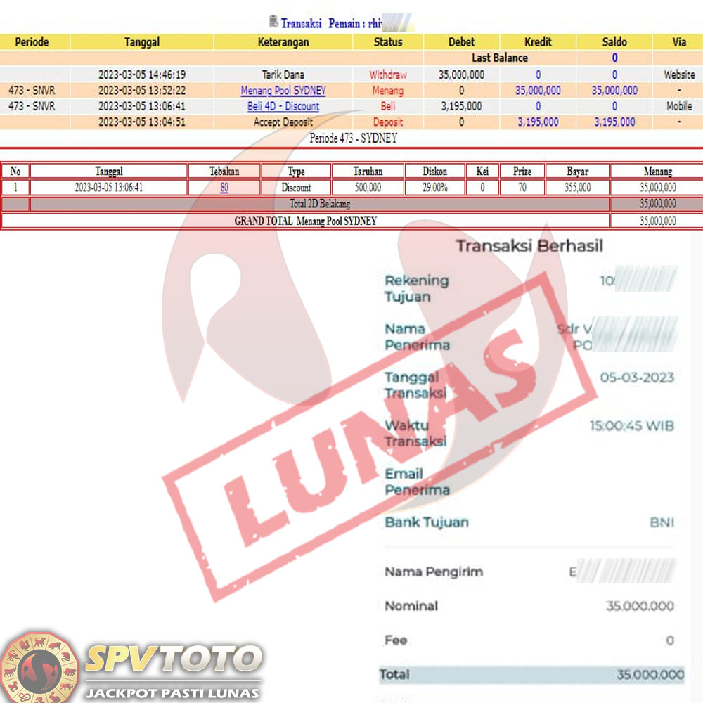 SELAMAT KEPADA MEMBER YANG MENDAPATKAN JACKPOT DI SPVTOTO
