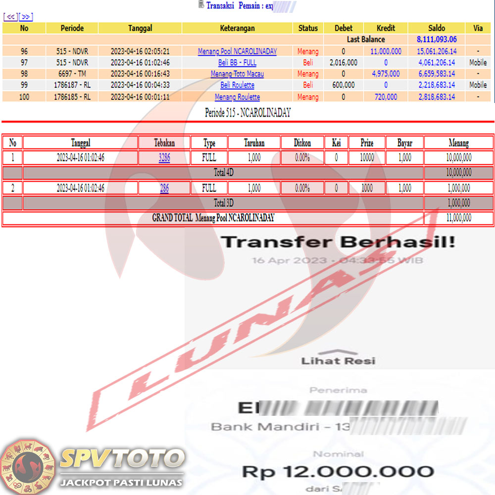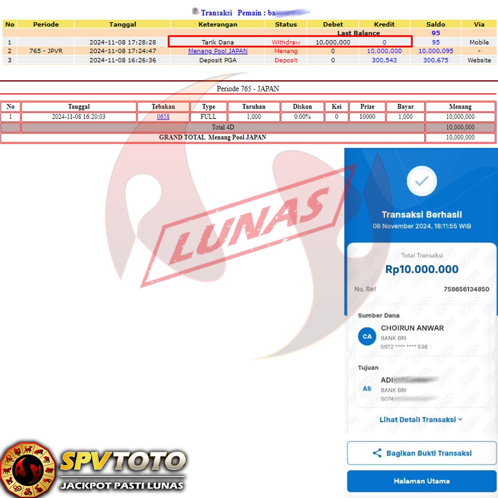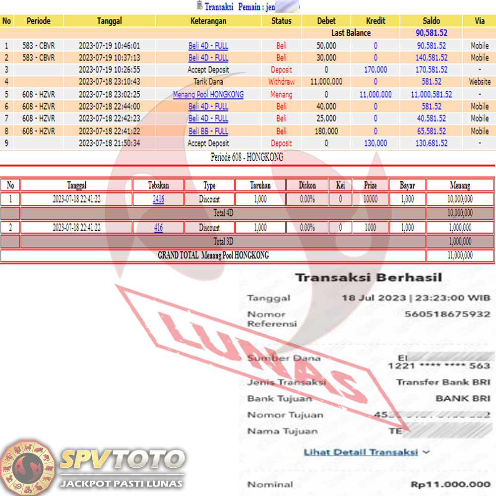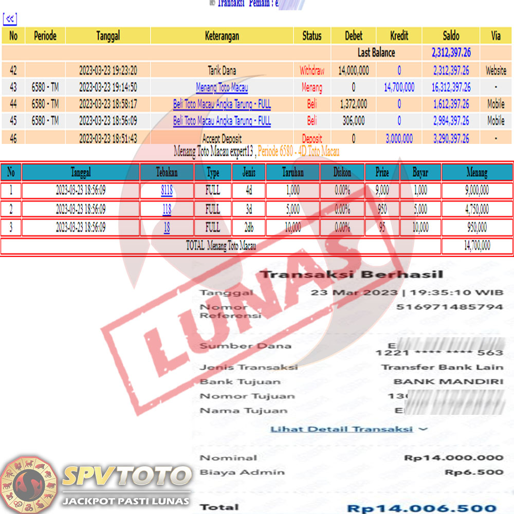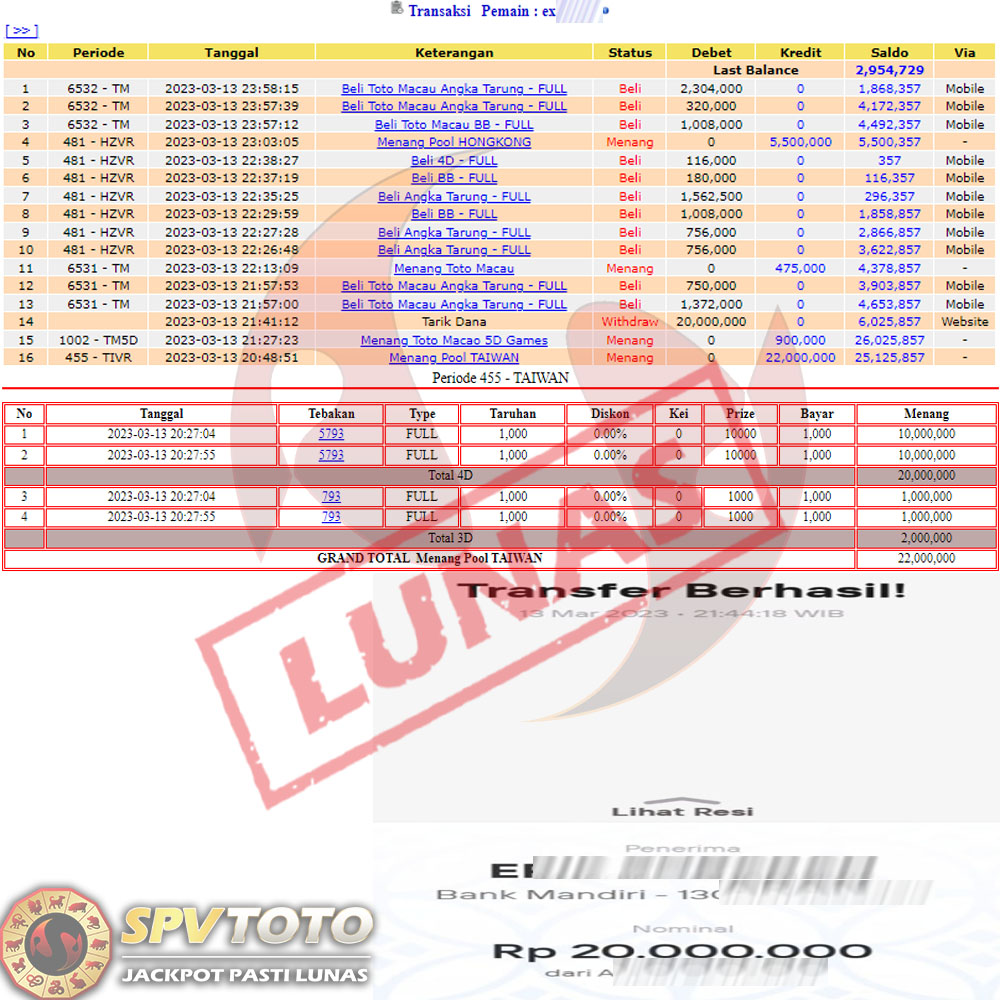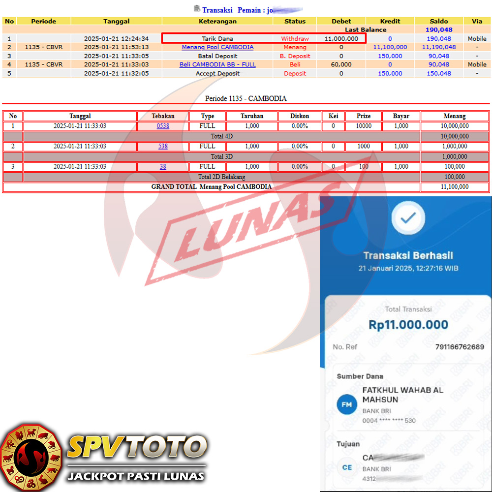 SELAMAT KEPADA MEMBER YANG MENDAPATKAN JACKPOT DI SPVTOTO