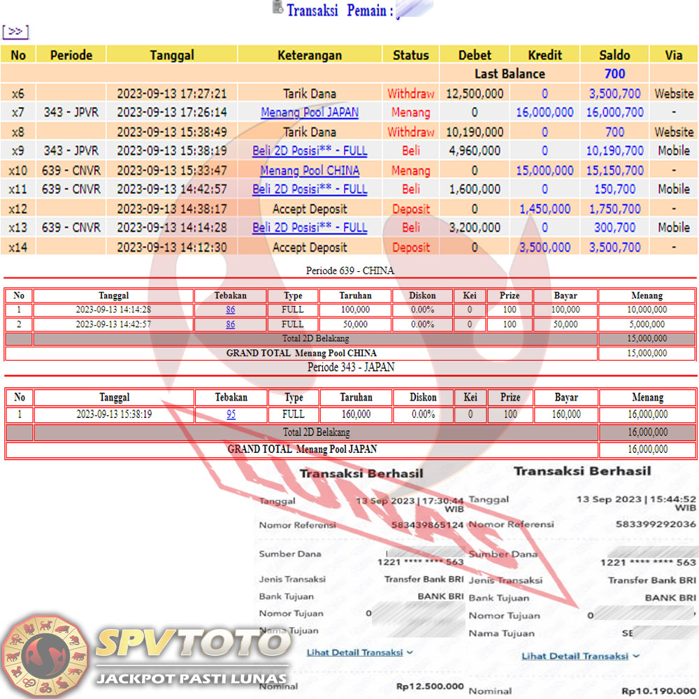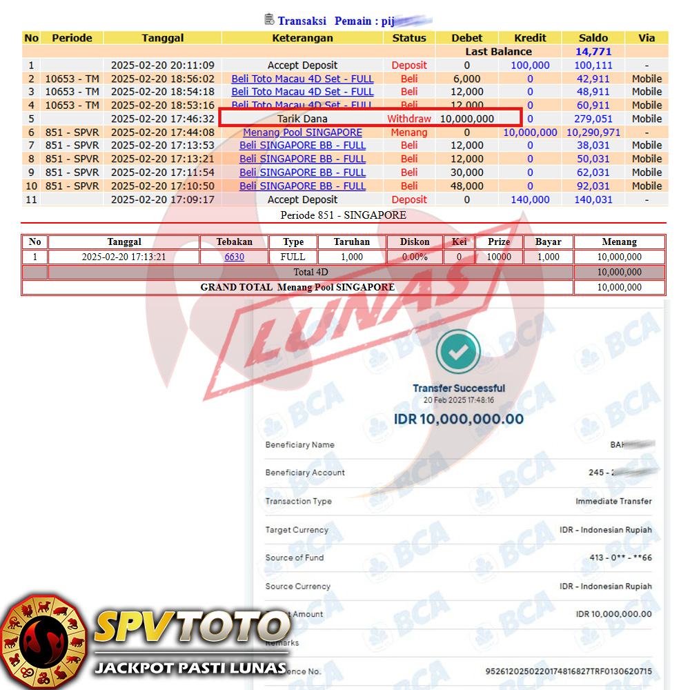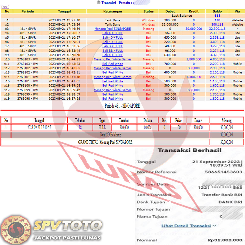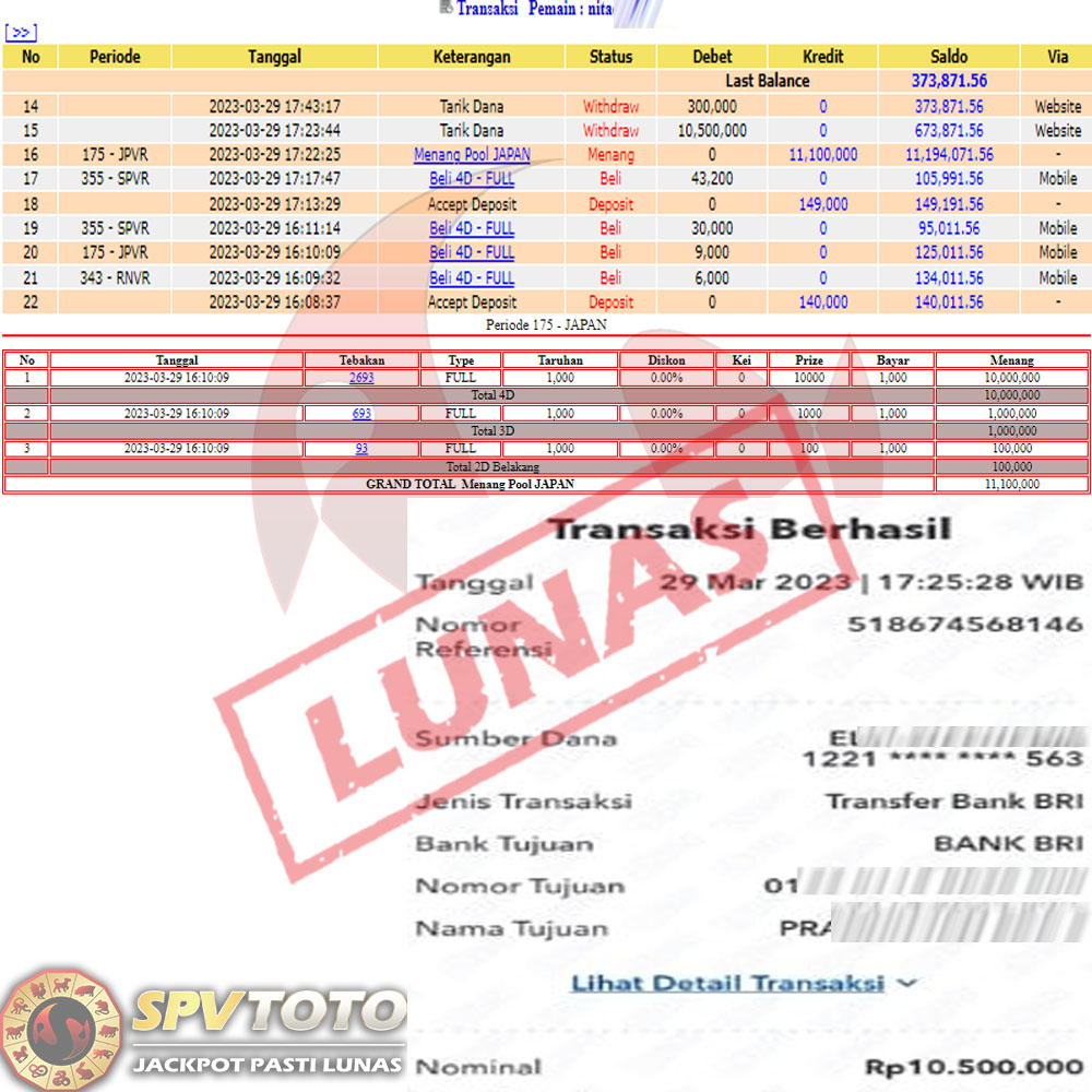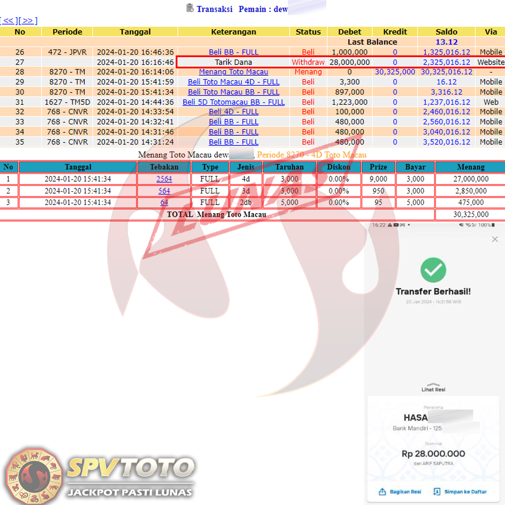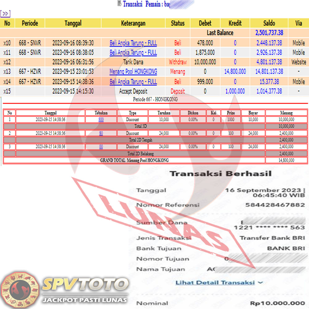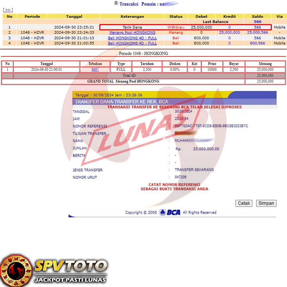 SELAMAT KEPADA MEMBER YANG MENDAPATKAN JACKPOT DI SPVTOTO