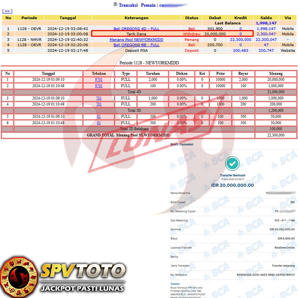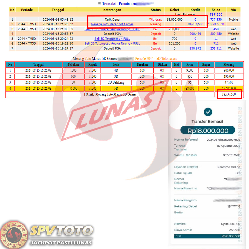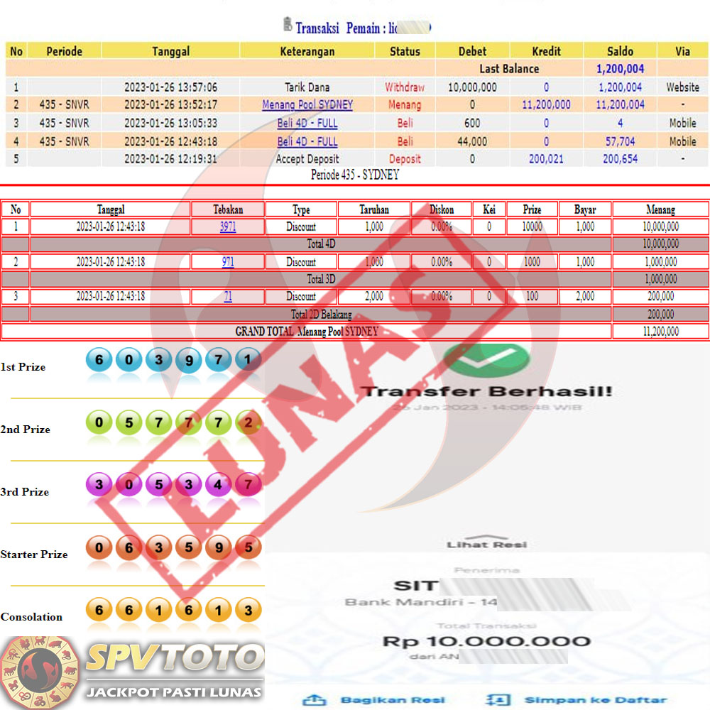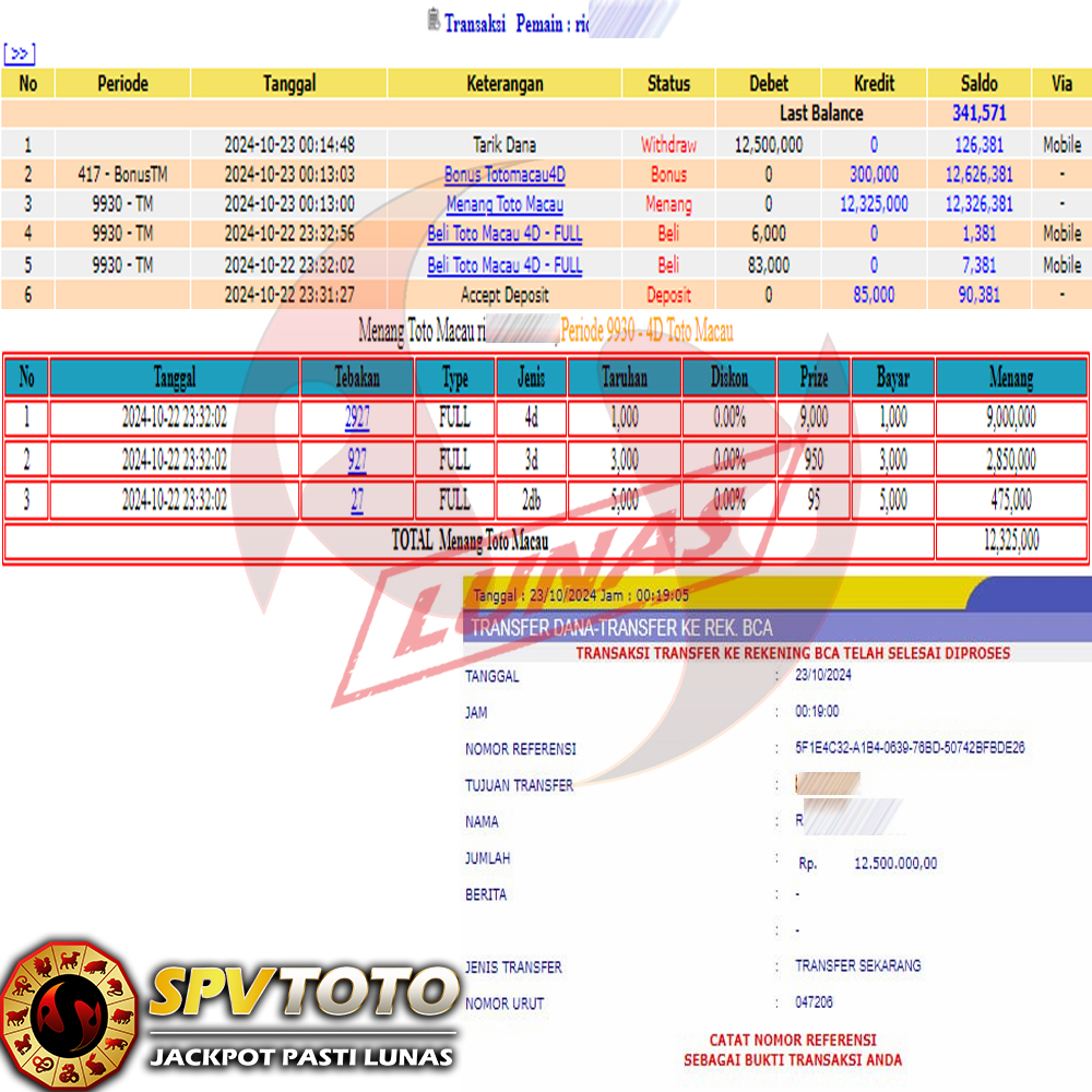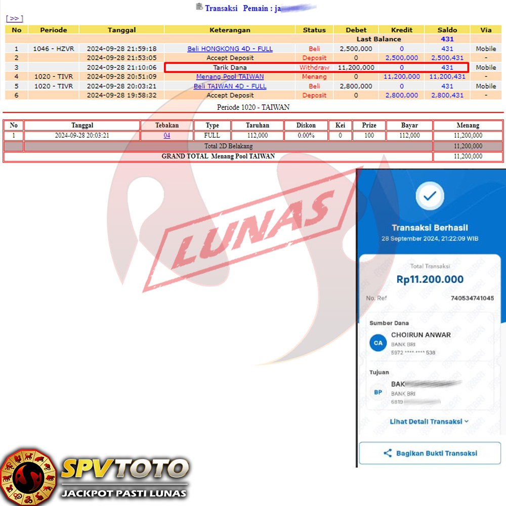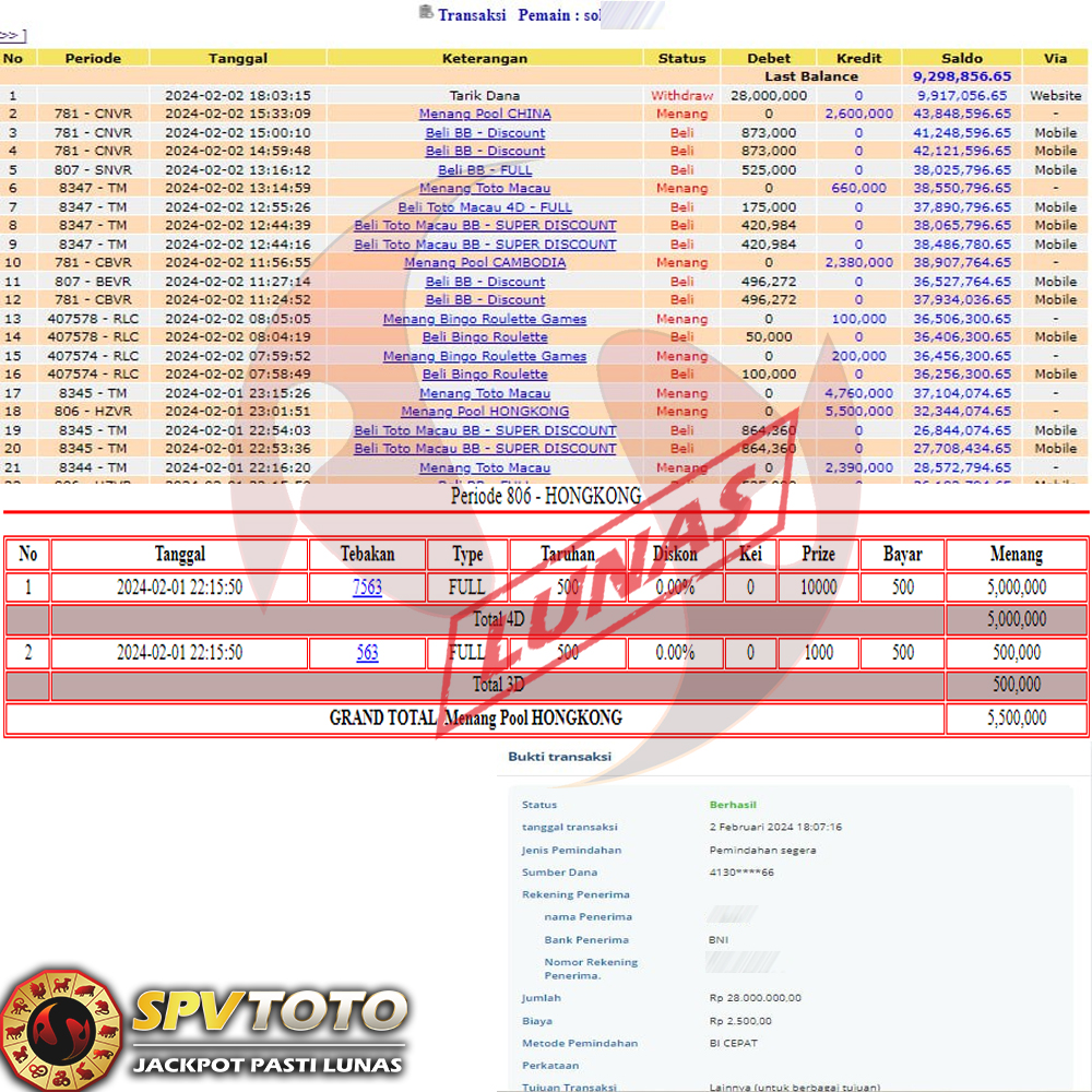 SELAMAT KEPADA MEMBER YANG MENDAPATKAN JACKPOT DI SPVTOTO