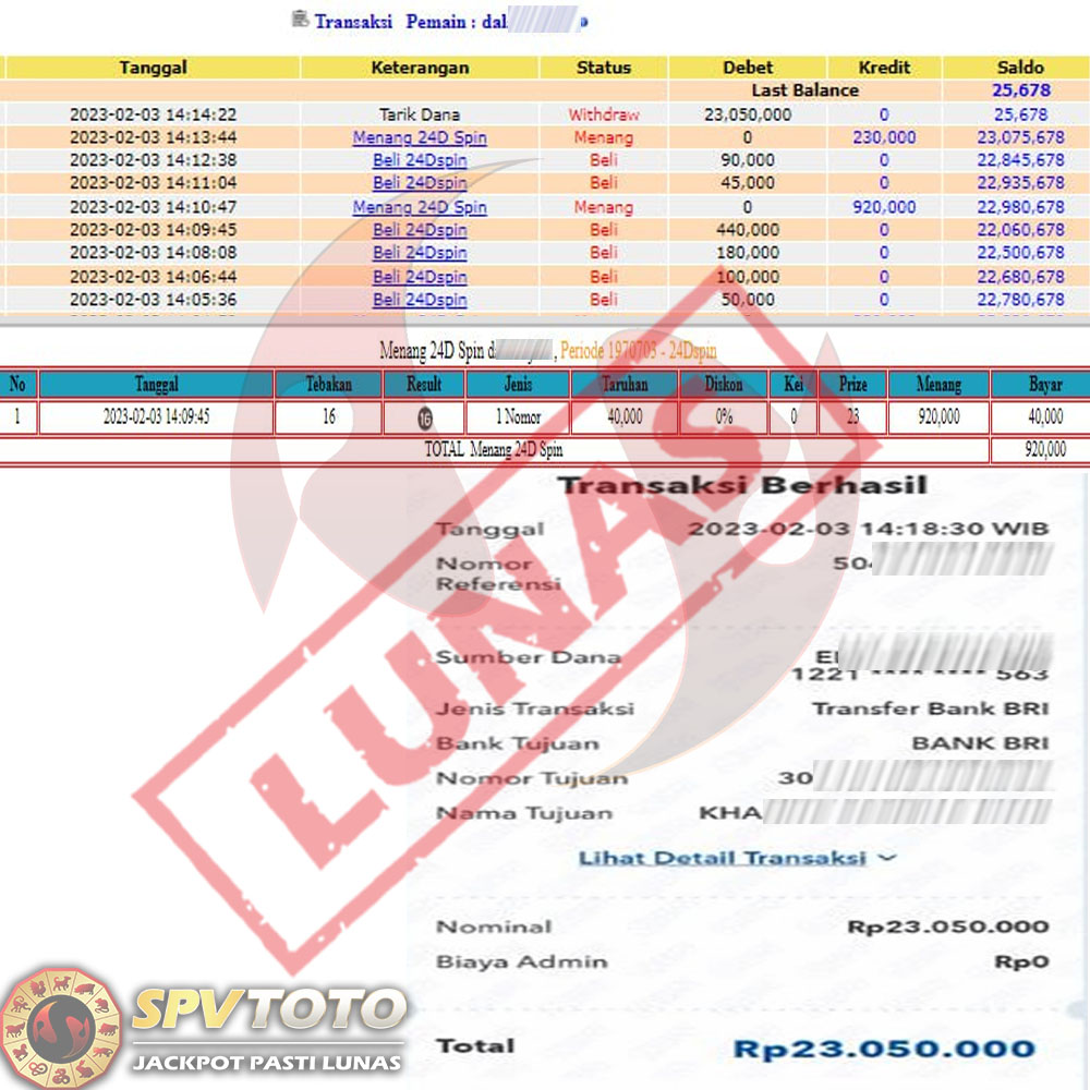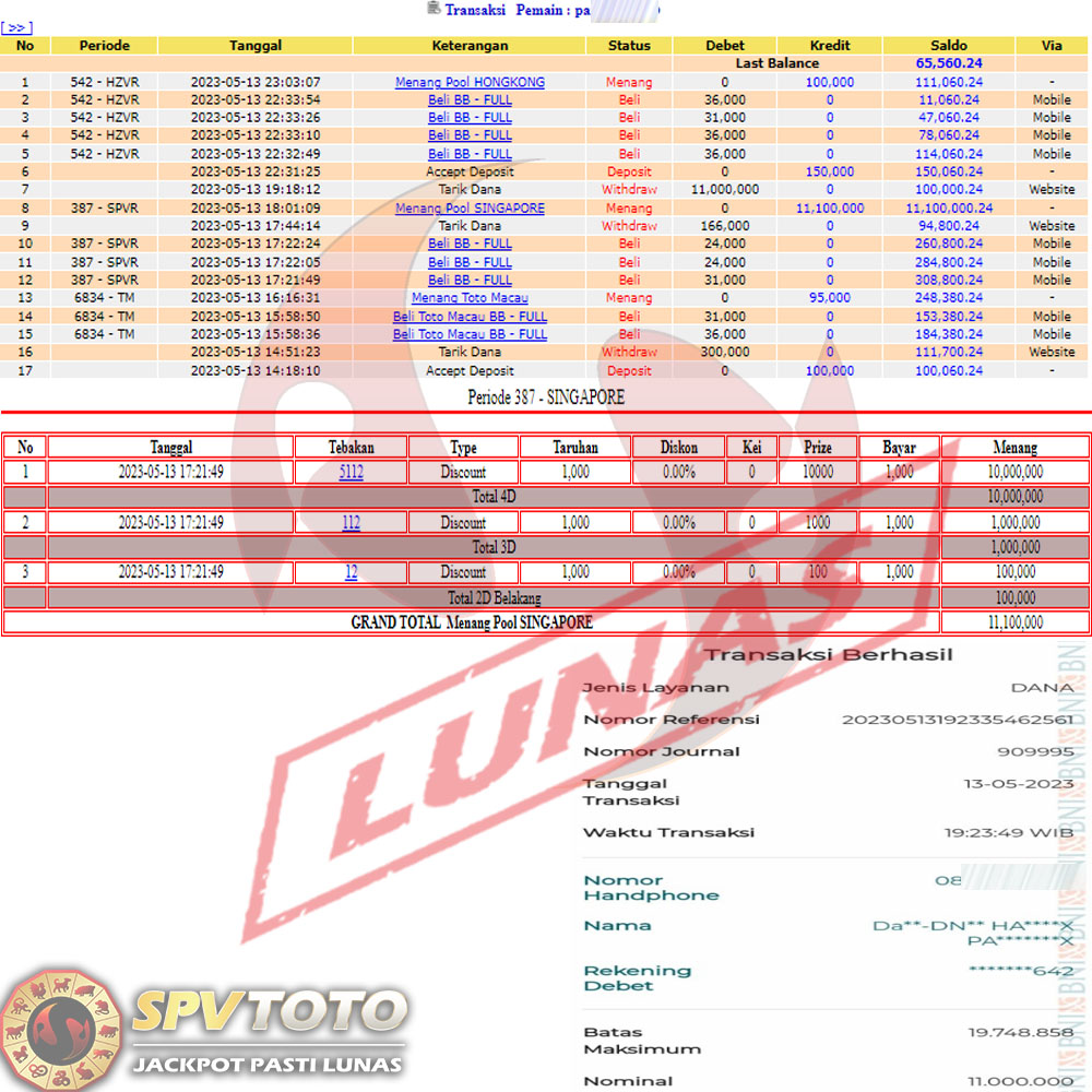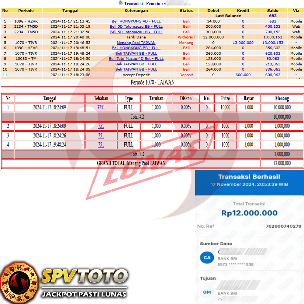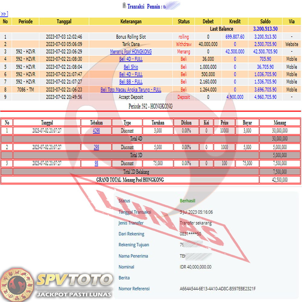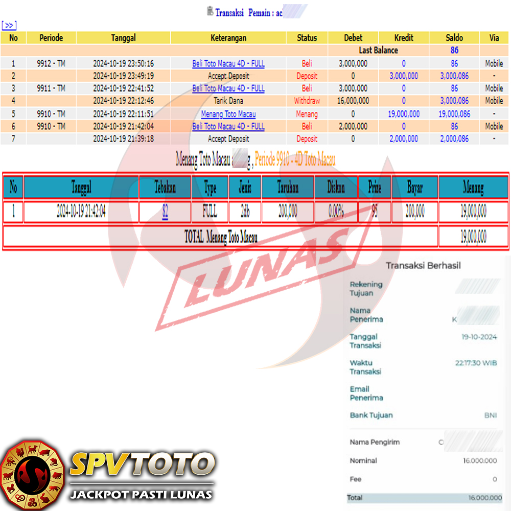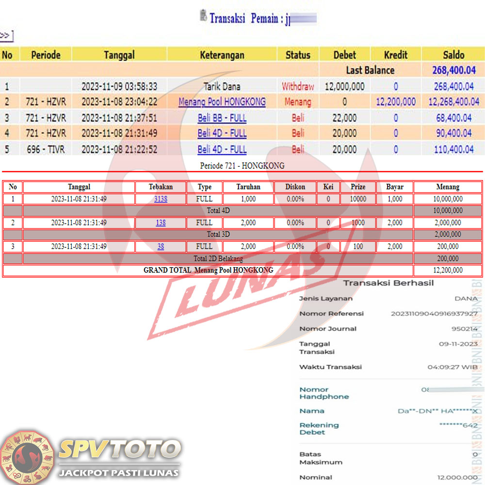 SELAMAT KEPADA MEMBER YANG MENDAPATKAN JACKPOT DI SPVTOTO