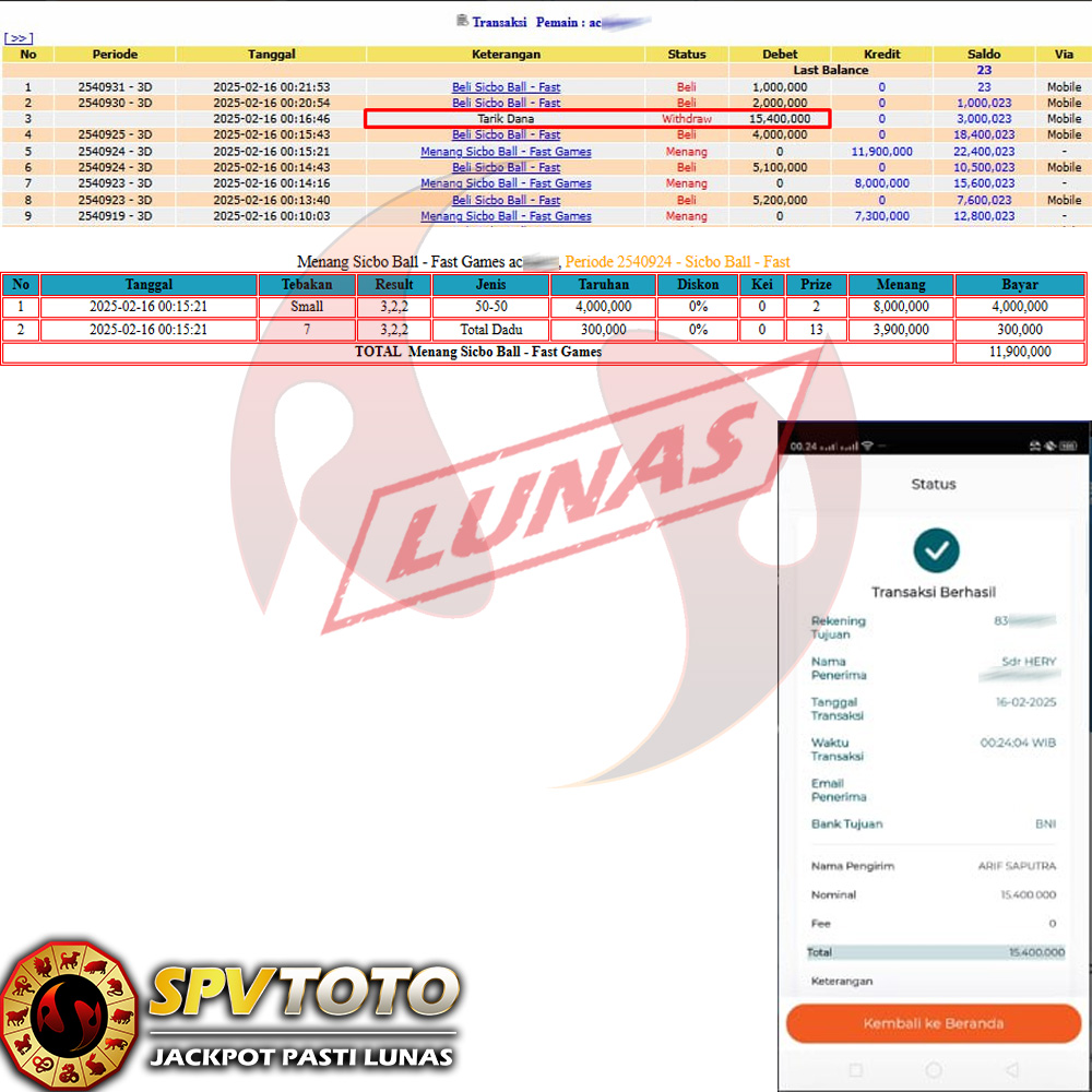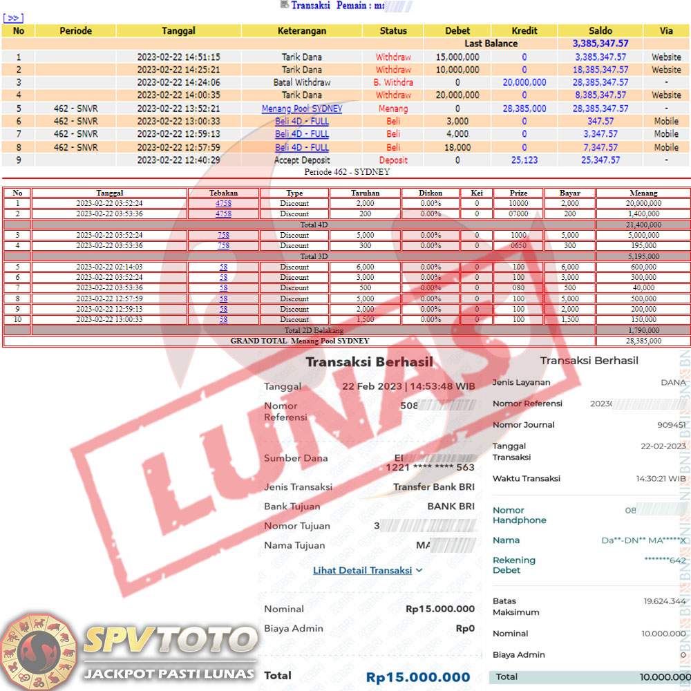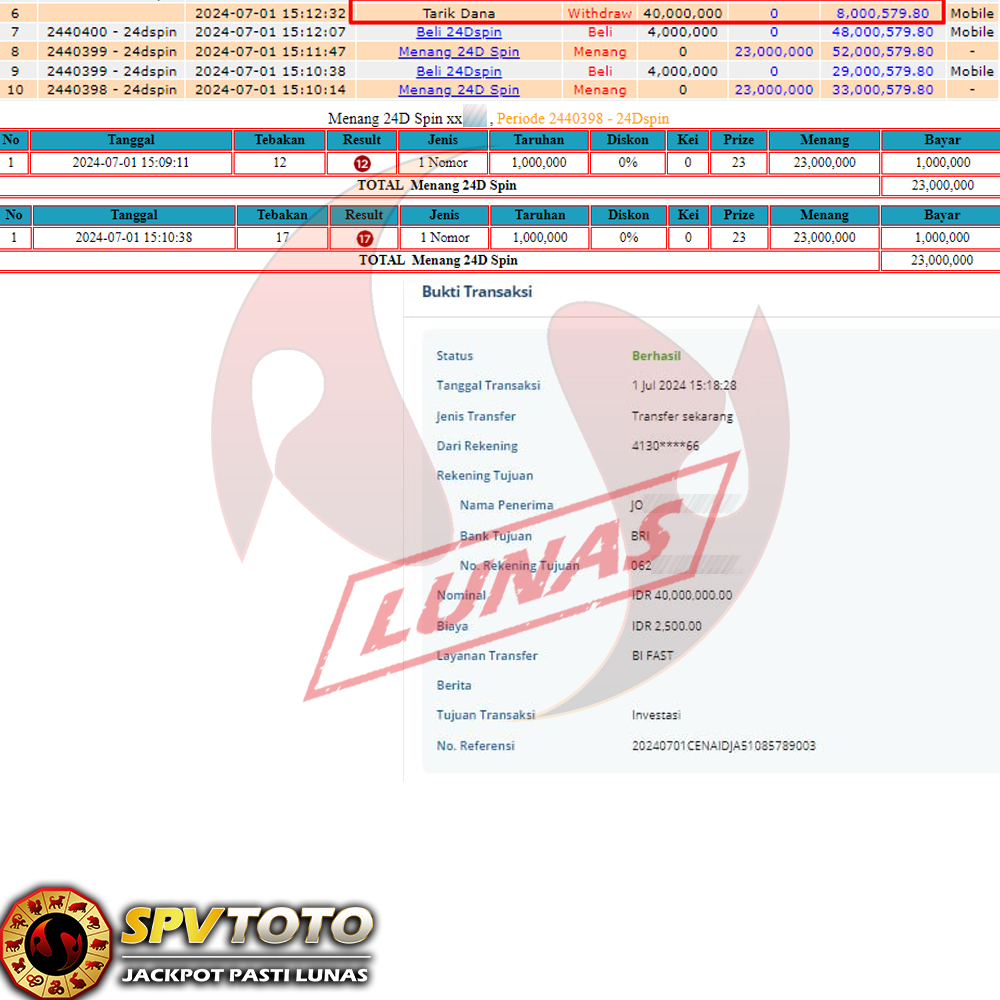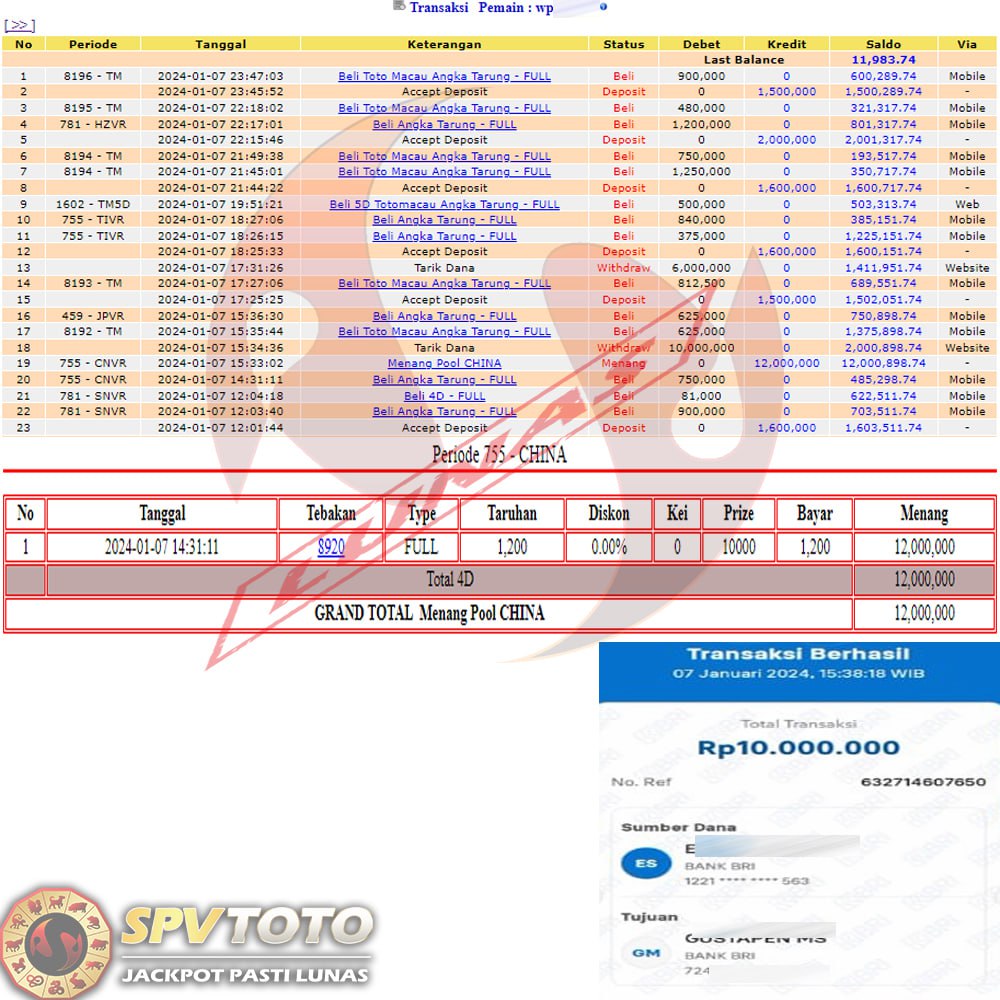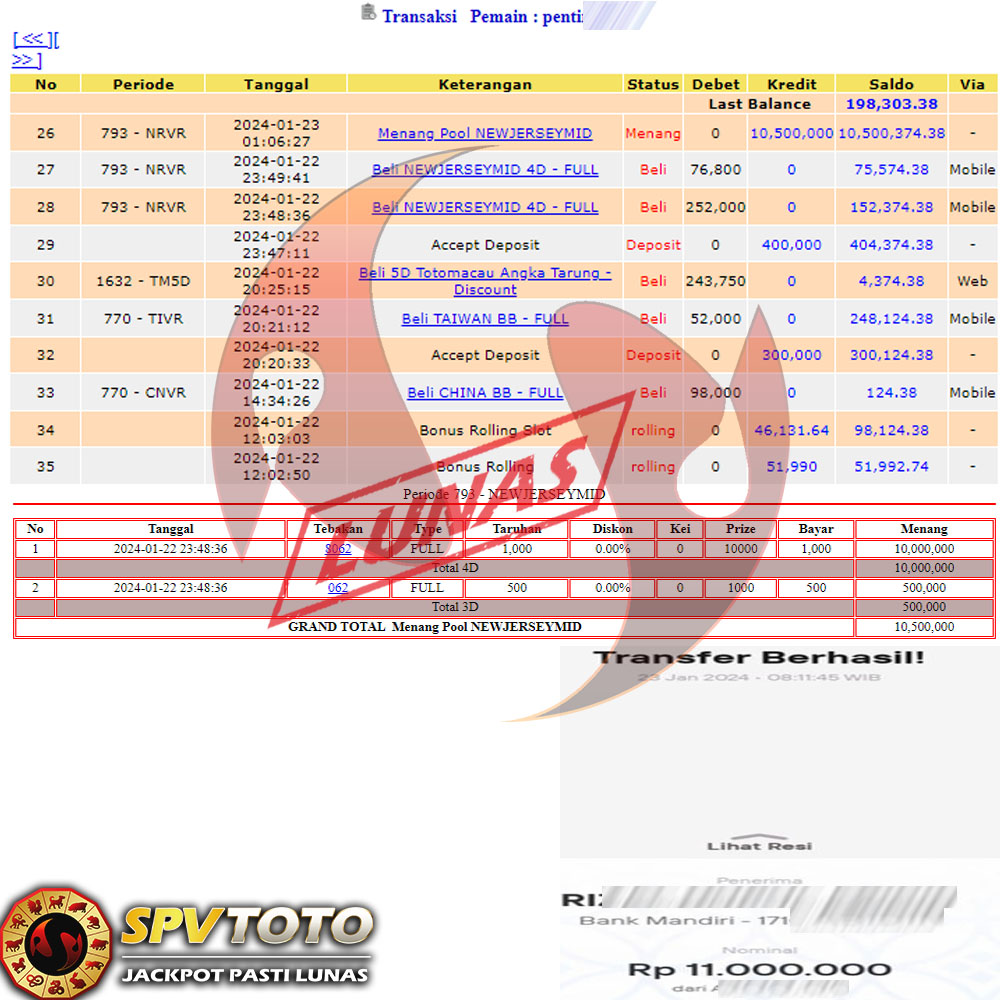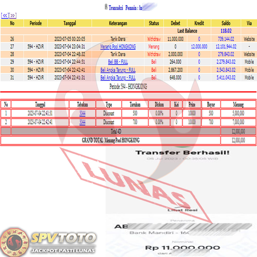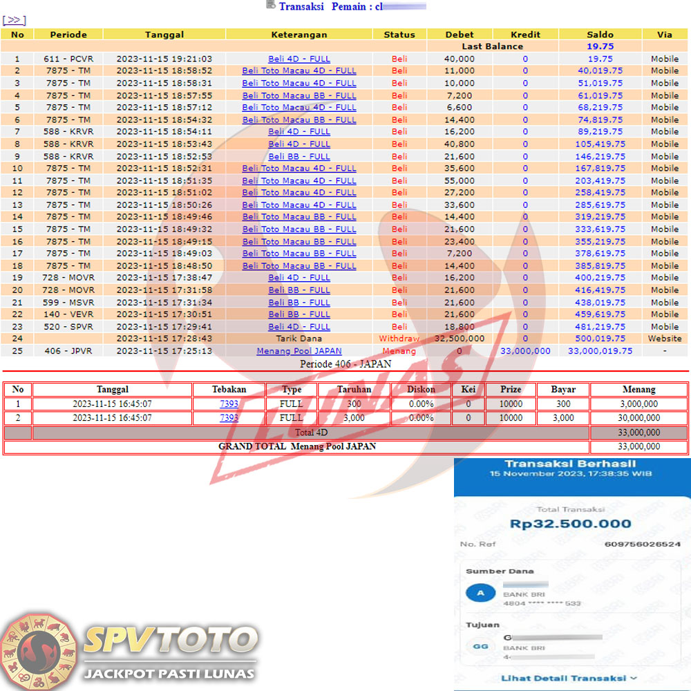 SELAMAT KEPADA MEMBER YANG MENDAPATKAN JACKPOT DI SPVTOTO