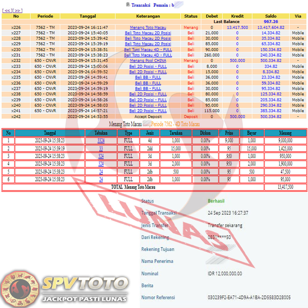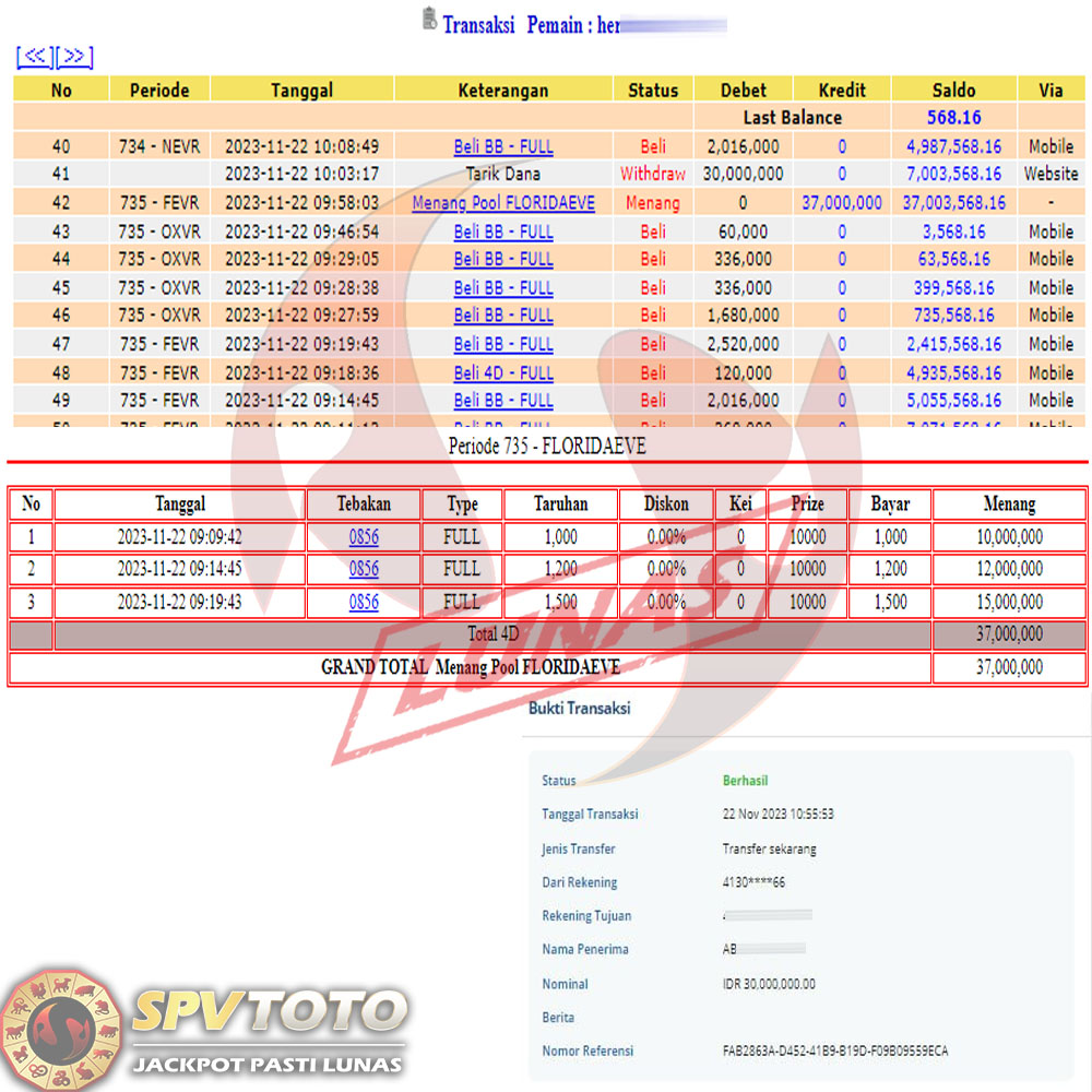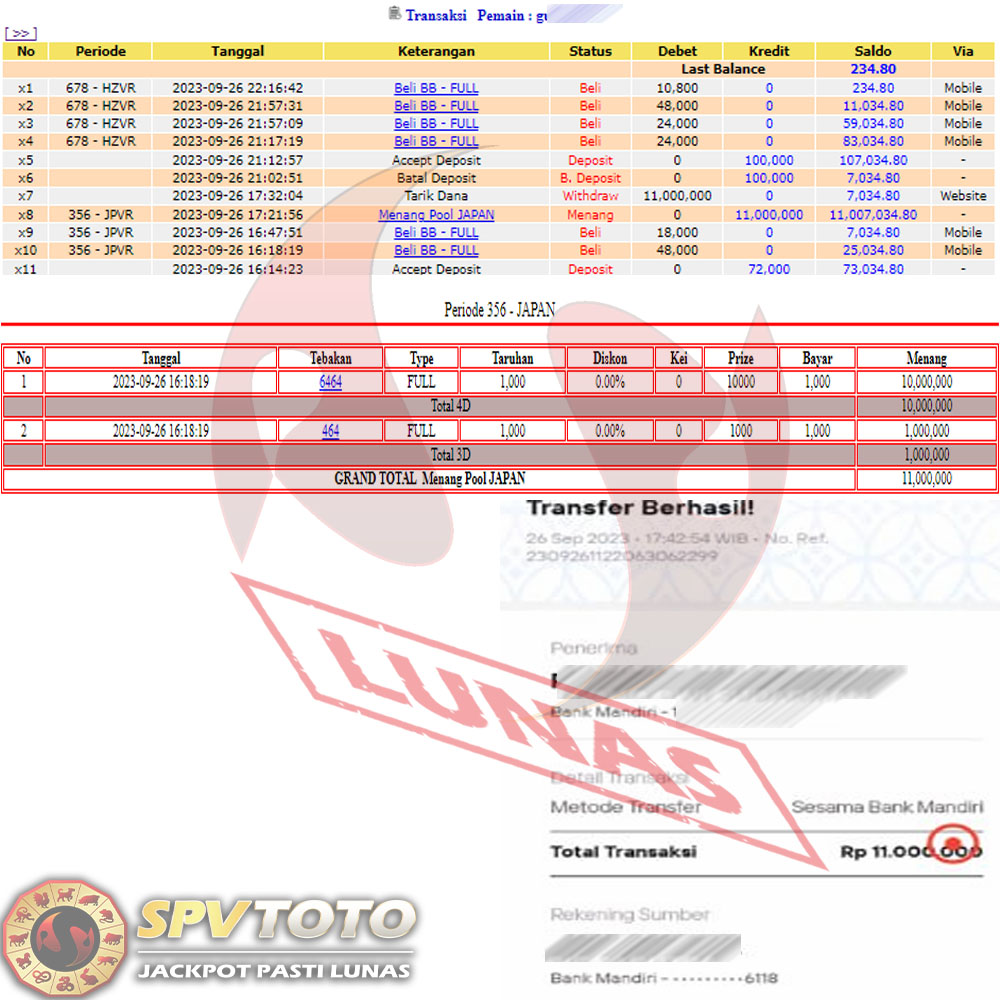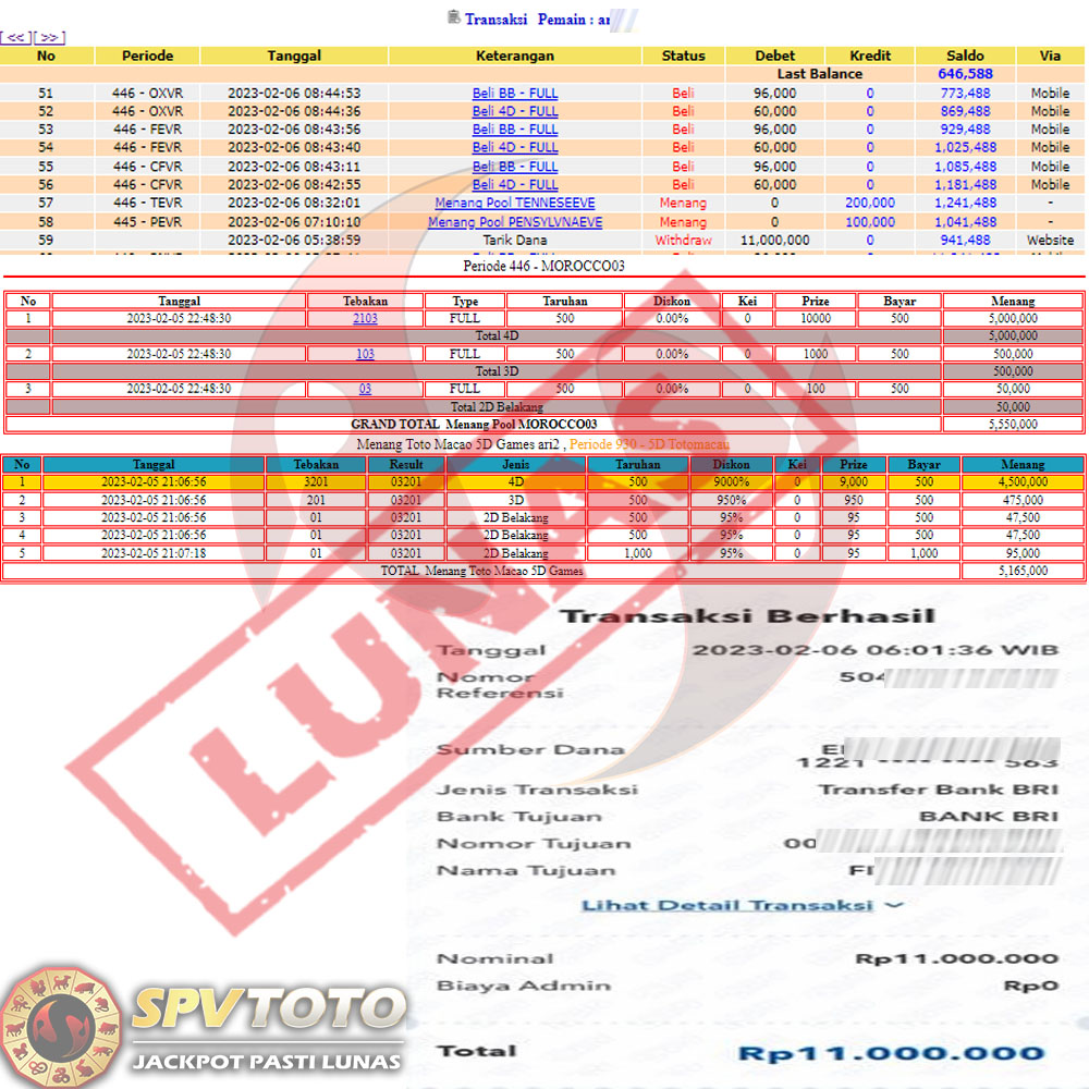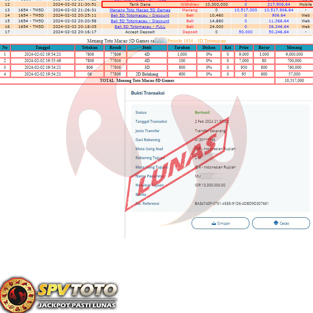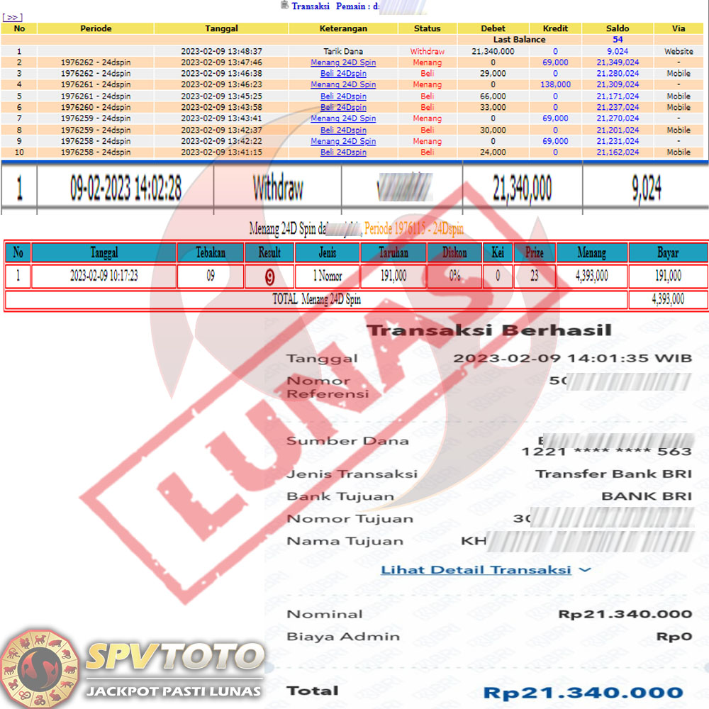 SELAMAT KEPADA MEMBER YANG MENDAPATKAN JACKPOT DI SPVTOTO