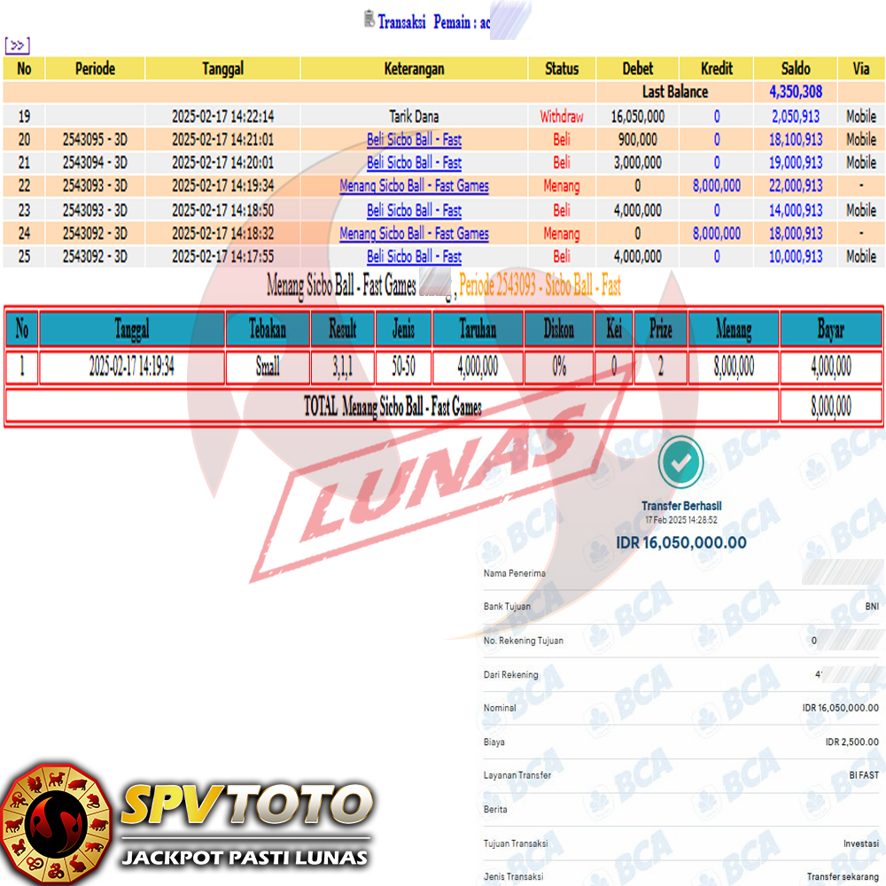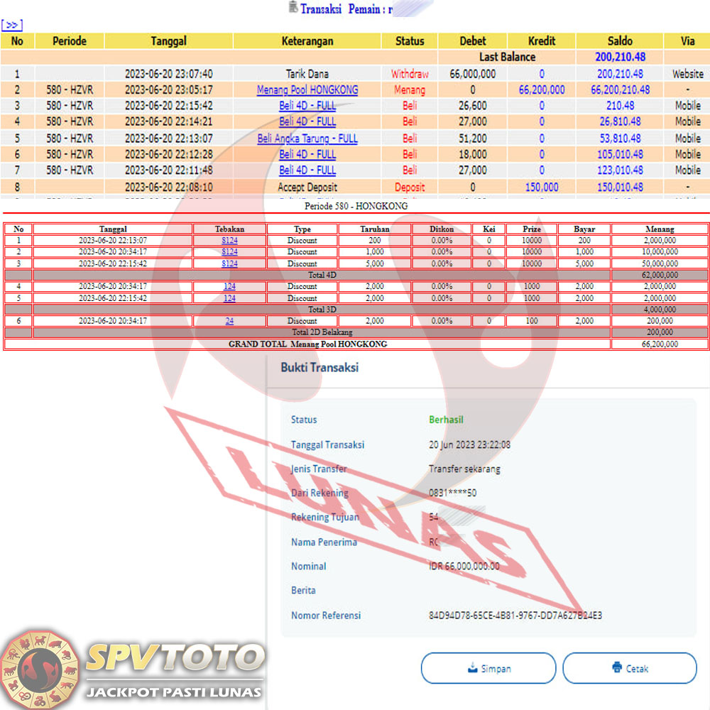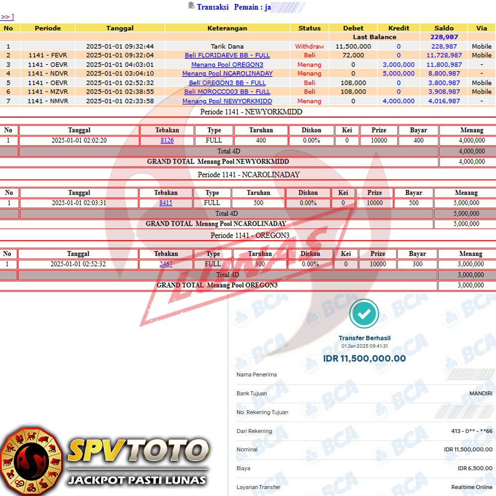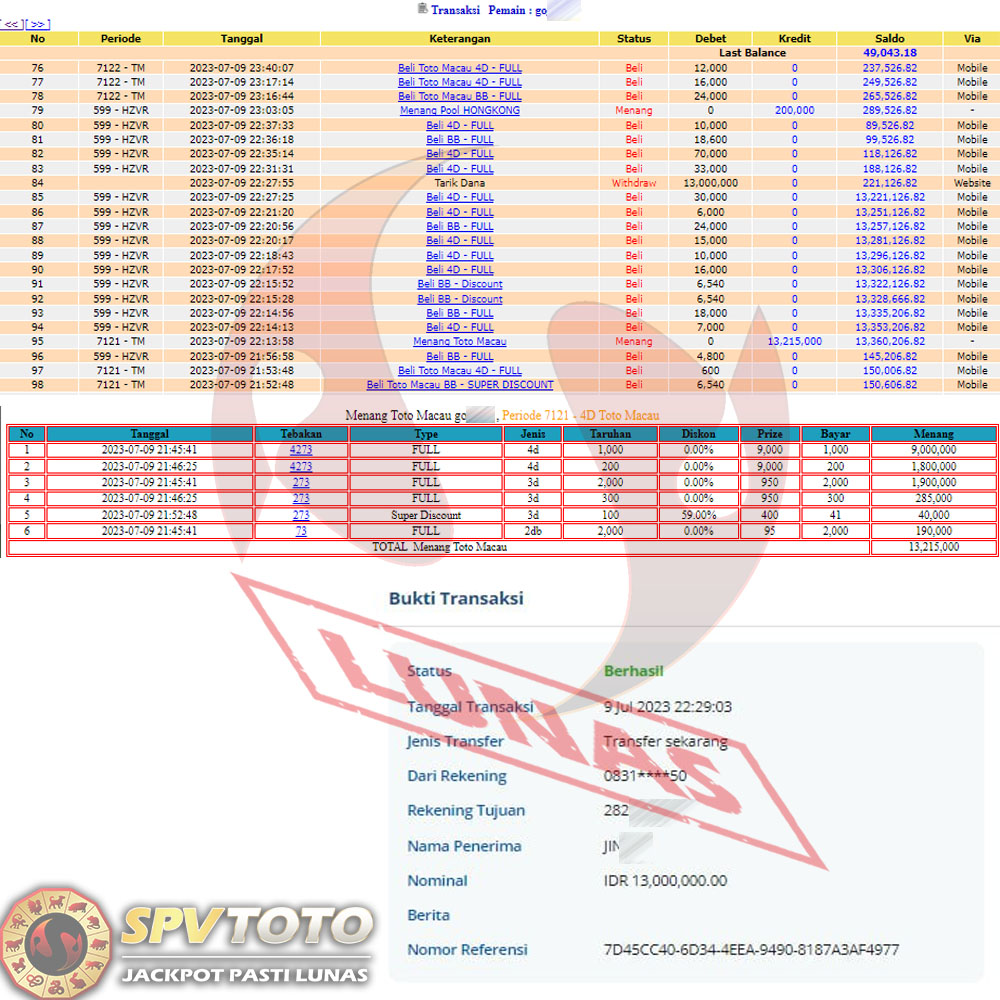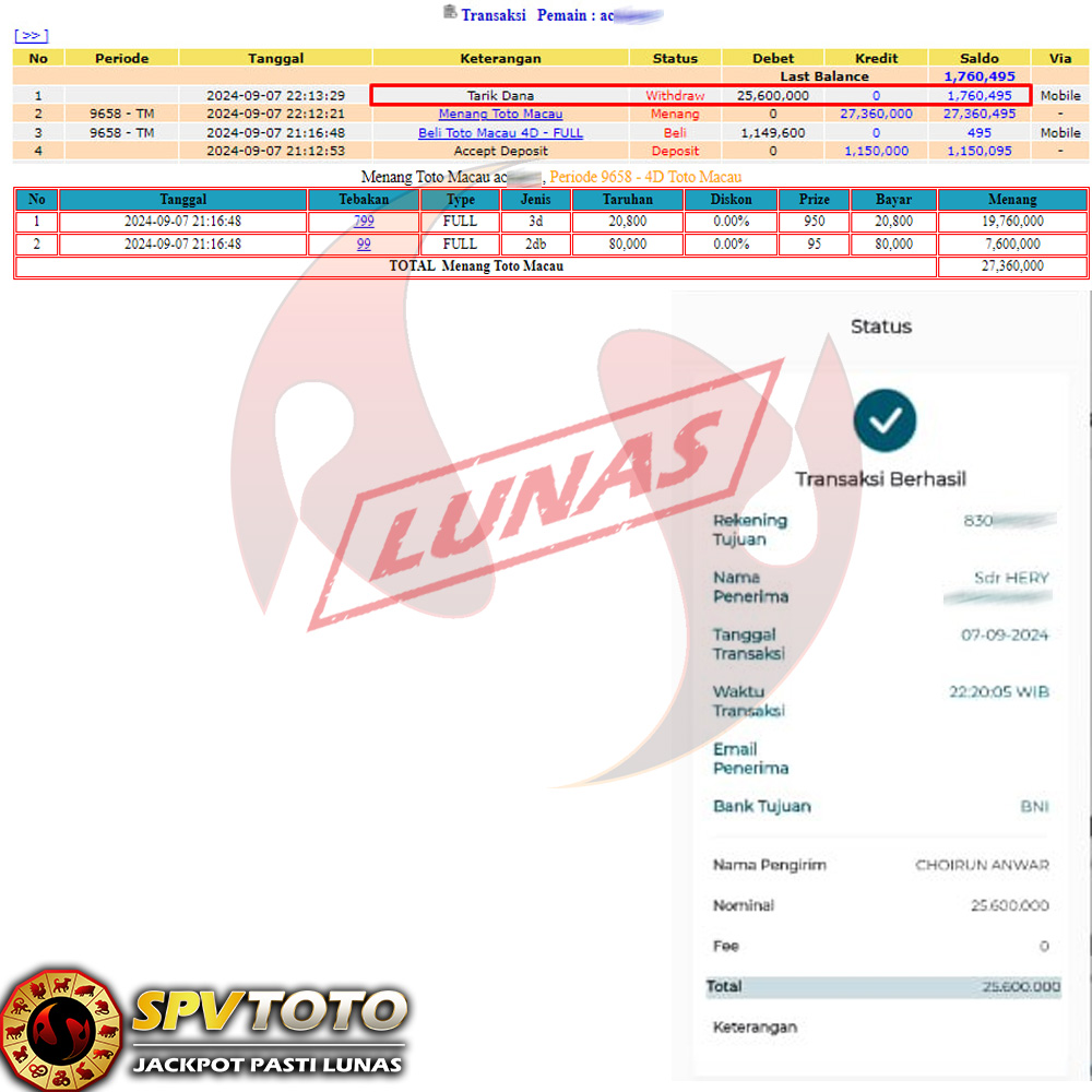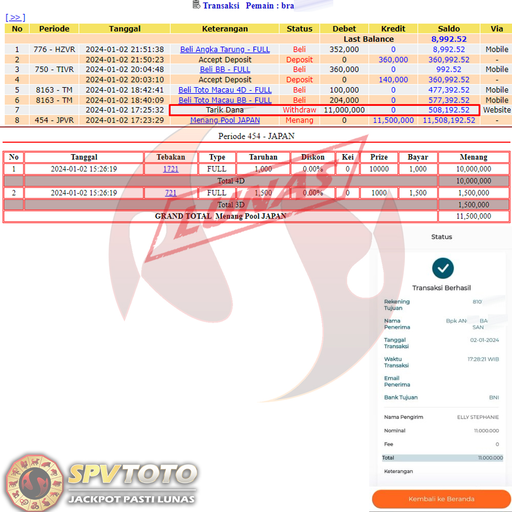 SELAMAT KEPADA MEMBER YANG MENDAPATKAN JACKPOT DI SPVTOTO