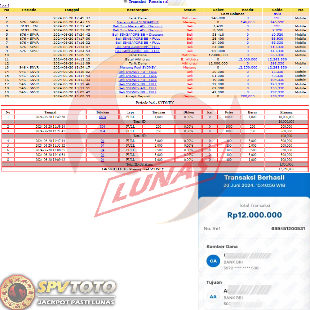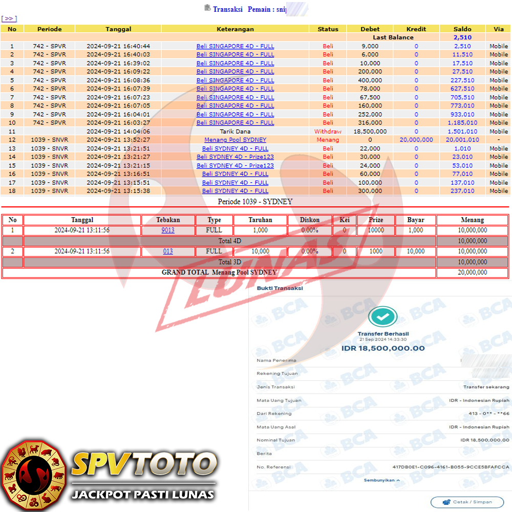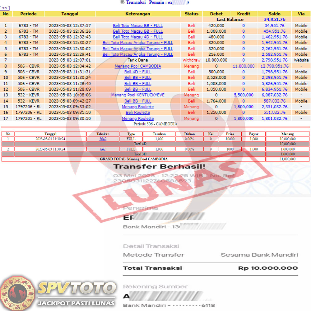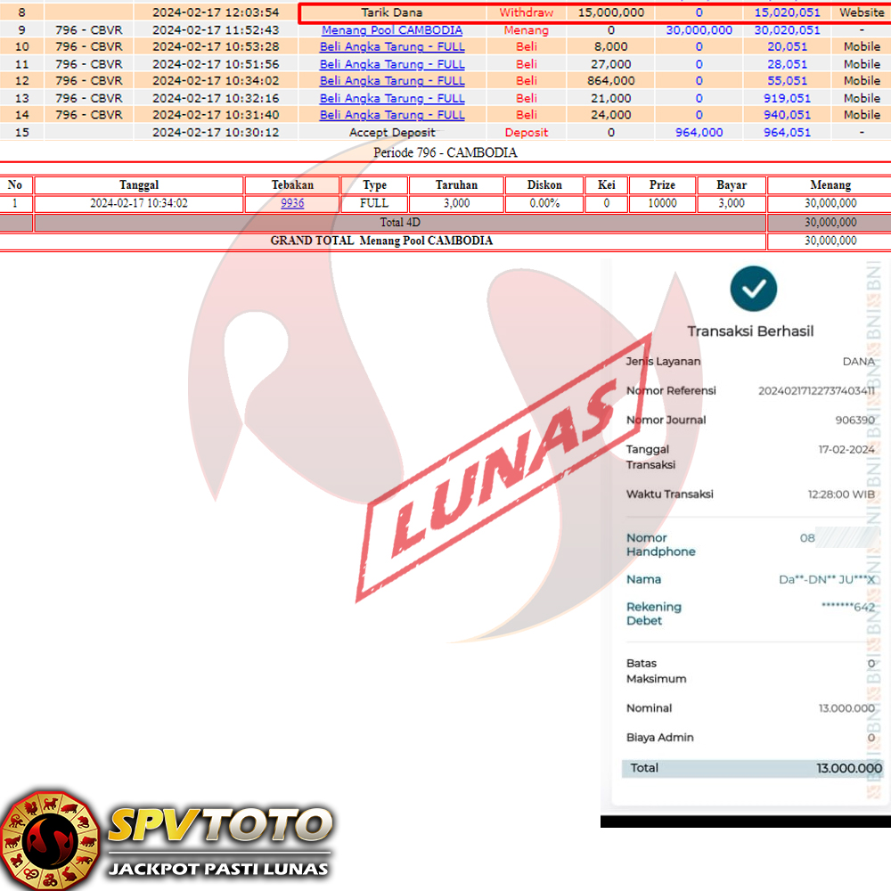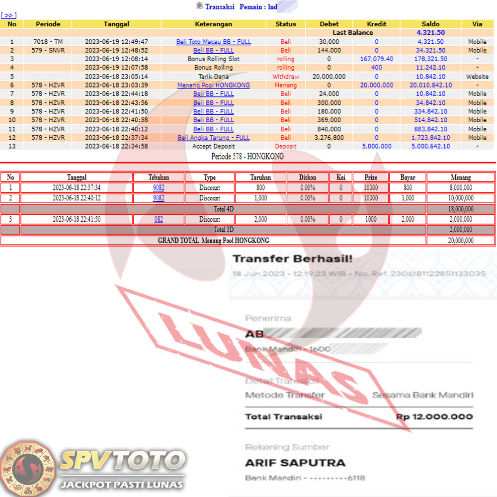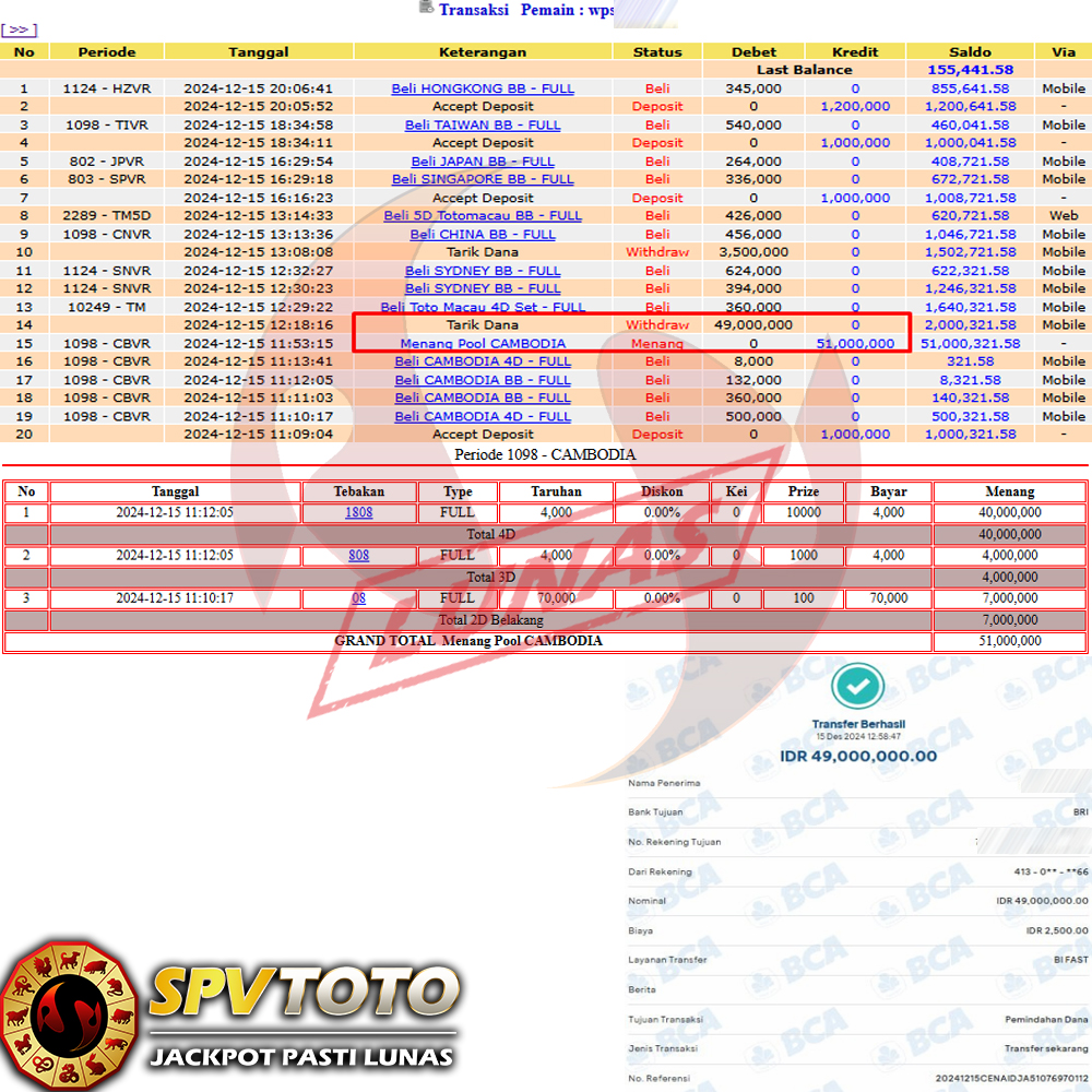 SELAMAT KEPADA MEMBER YANG MENDAPATKAN JACKPOT DI SPVTOTO