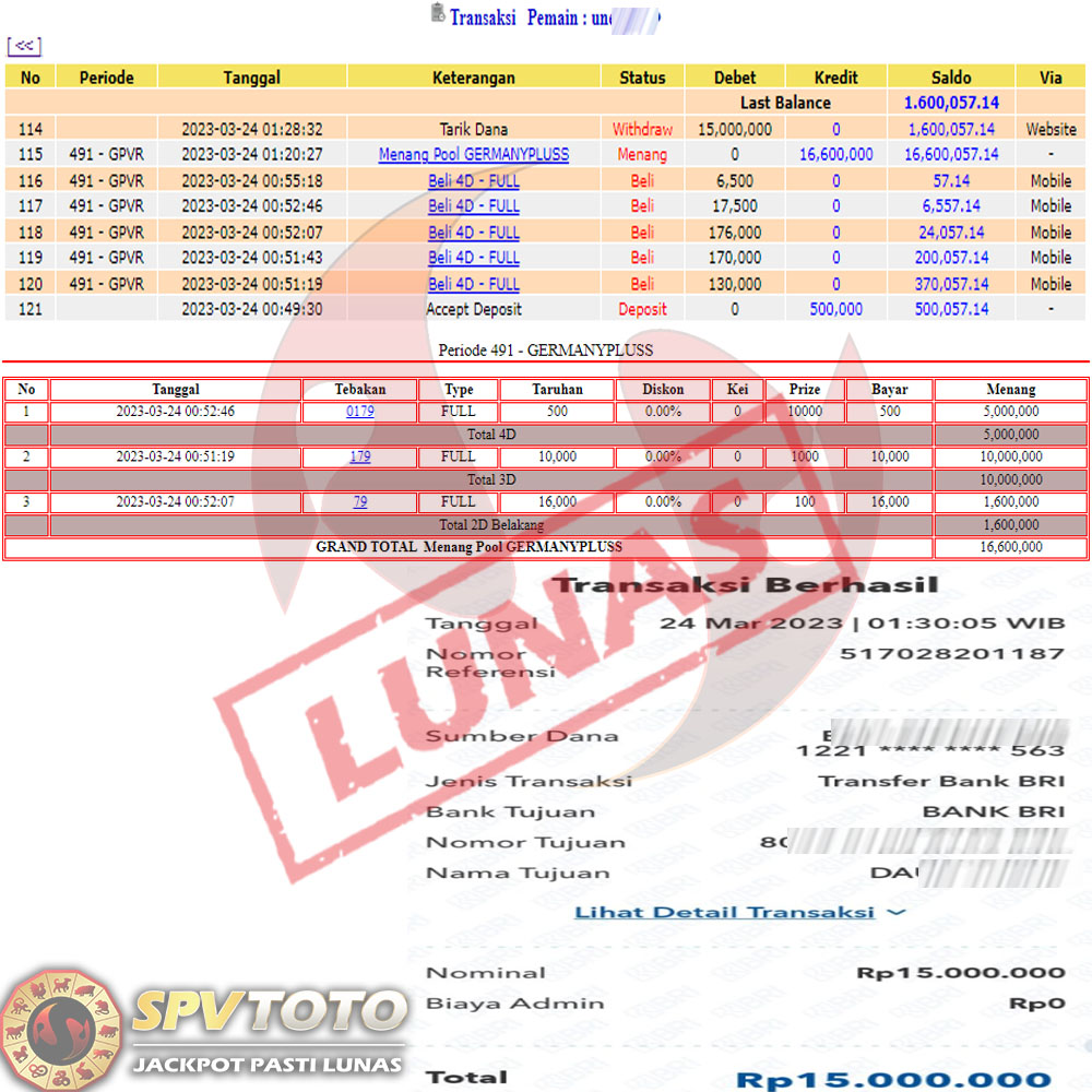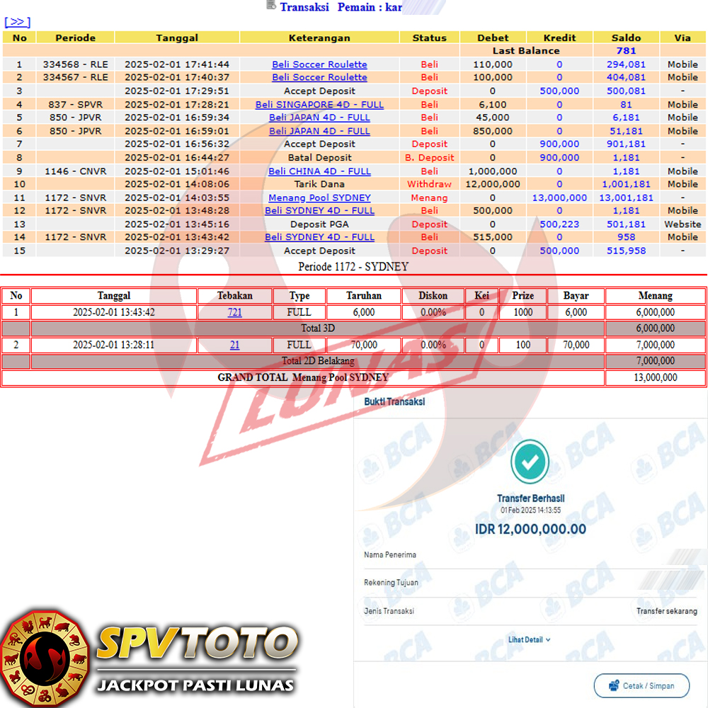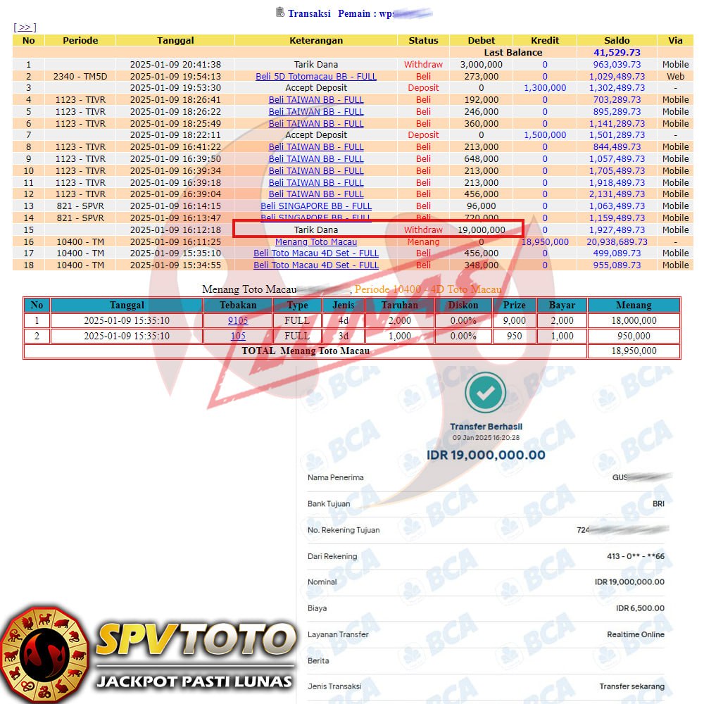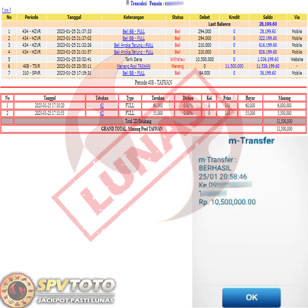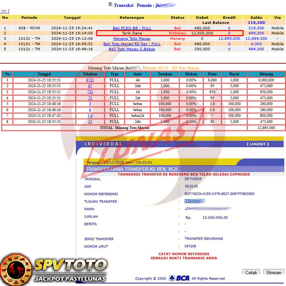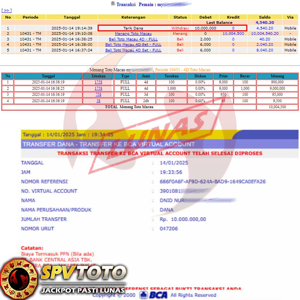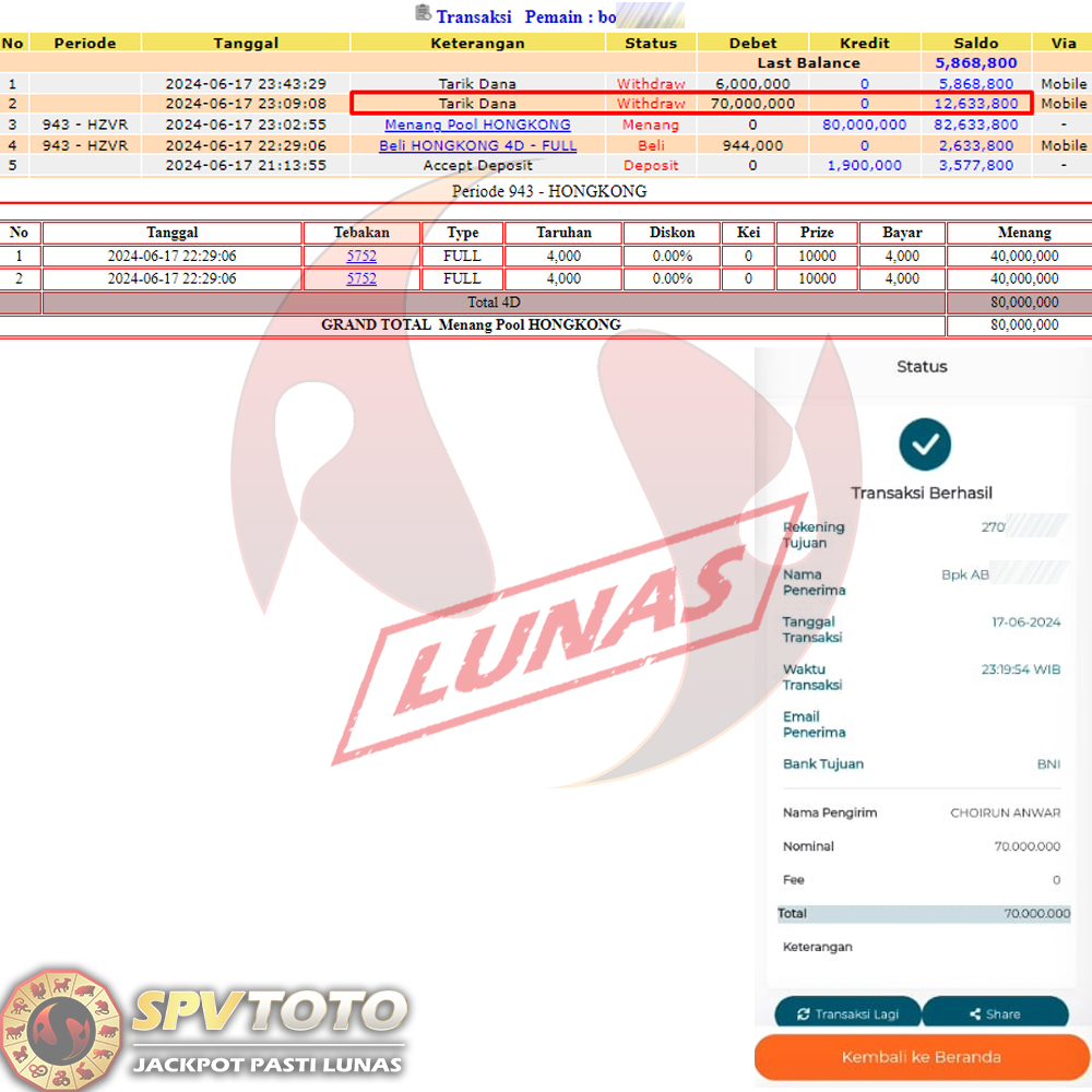 SELAMAT KEPADA MEMBER YANG MENDAPATKAN JACKPOT DI SPVTOTO
