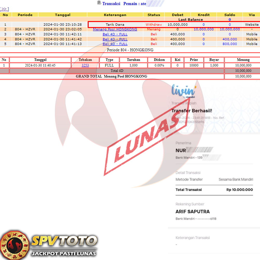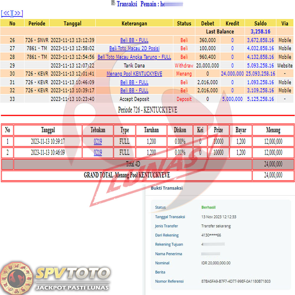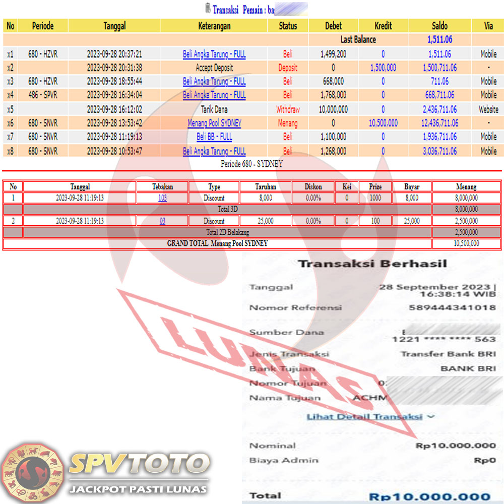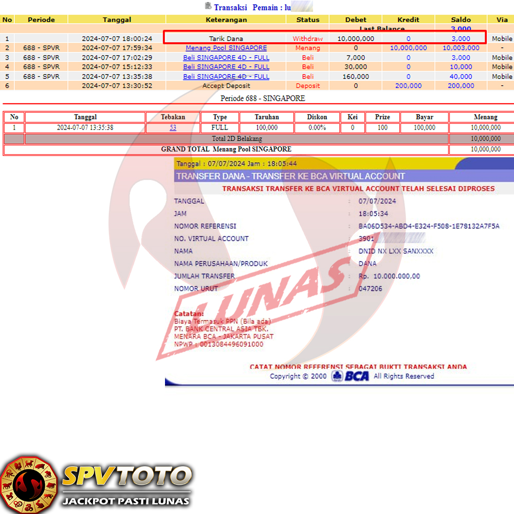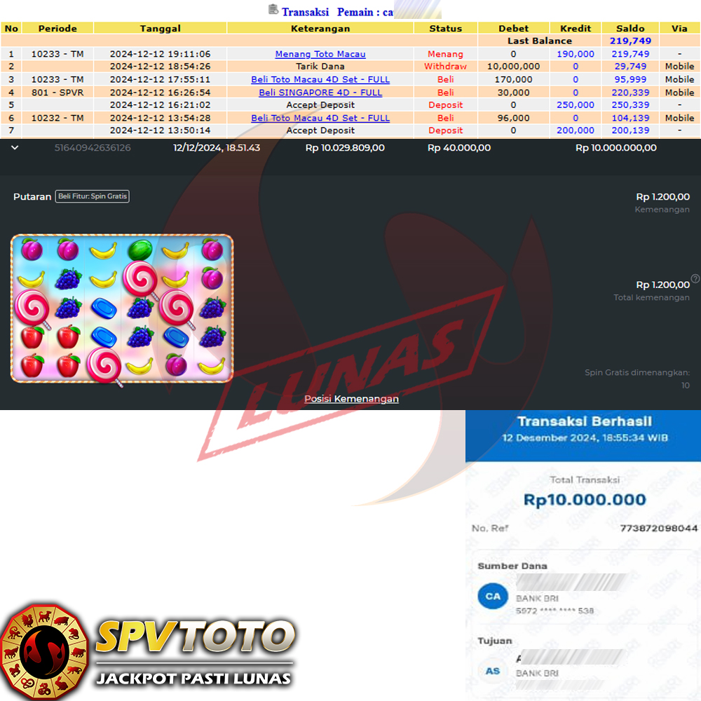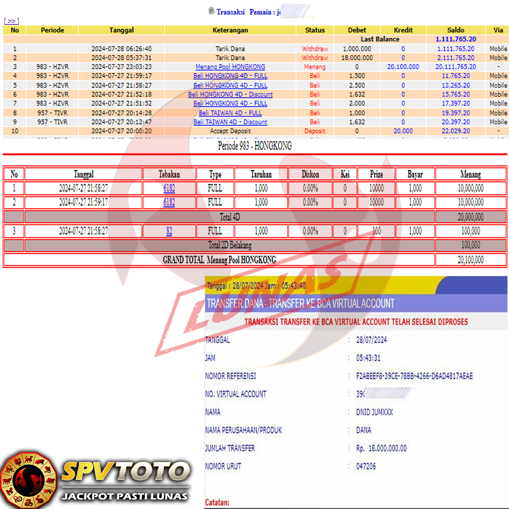 SELAMAT KEPADA MEMBER YANG MENDAPATKAN JACKPOT DI SPVTOTO