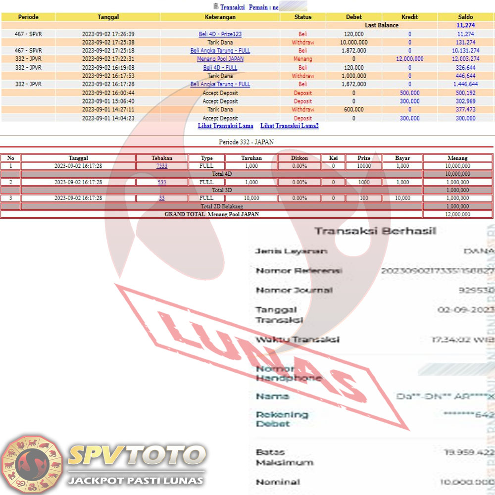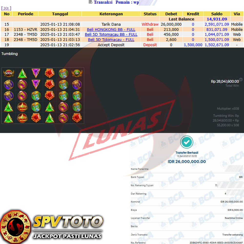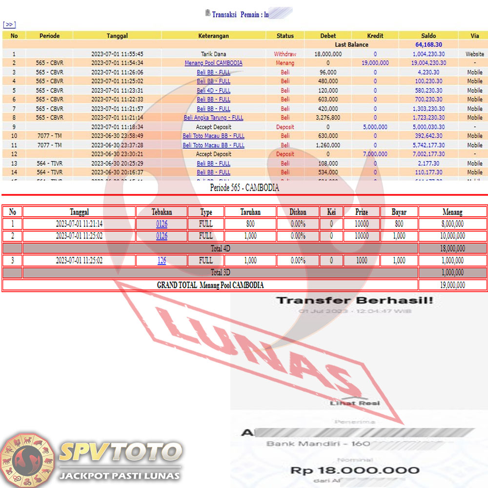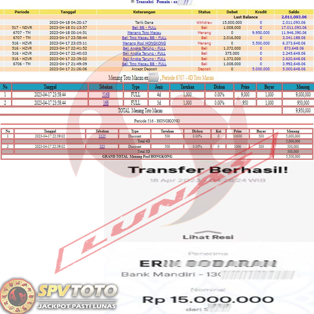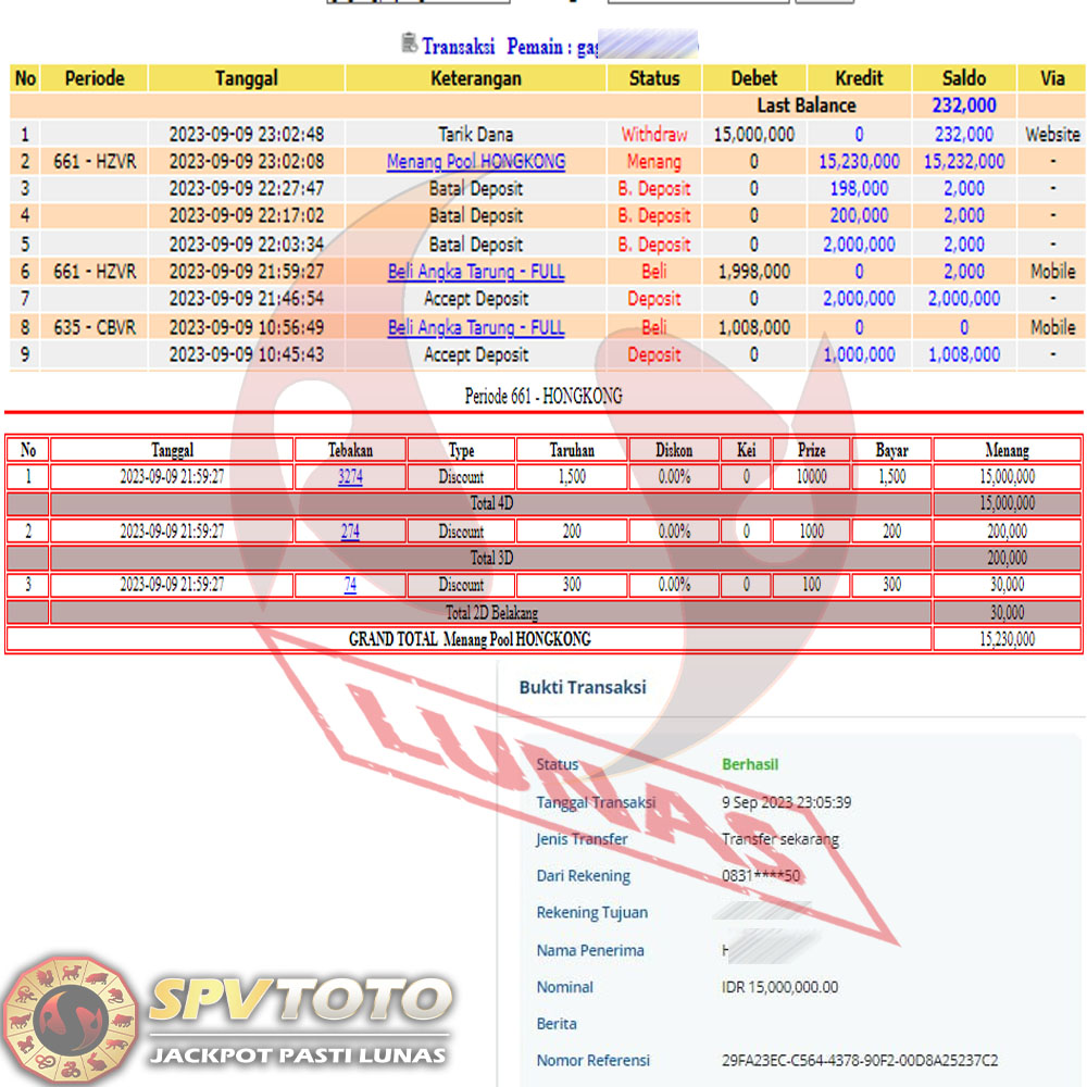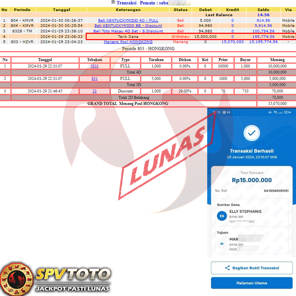 SELAMAT KEPADA MEMBER YANG MENDAPATKAN JACKPOT DI SPVTOTO