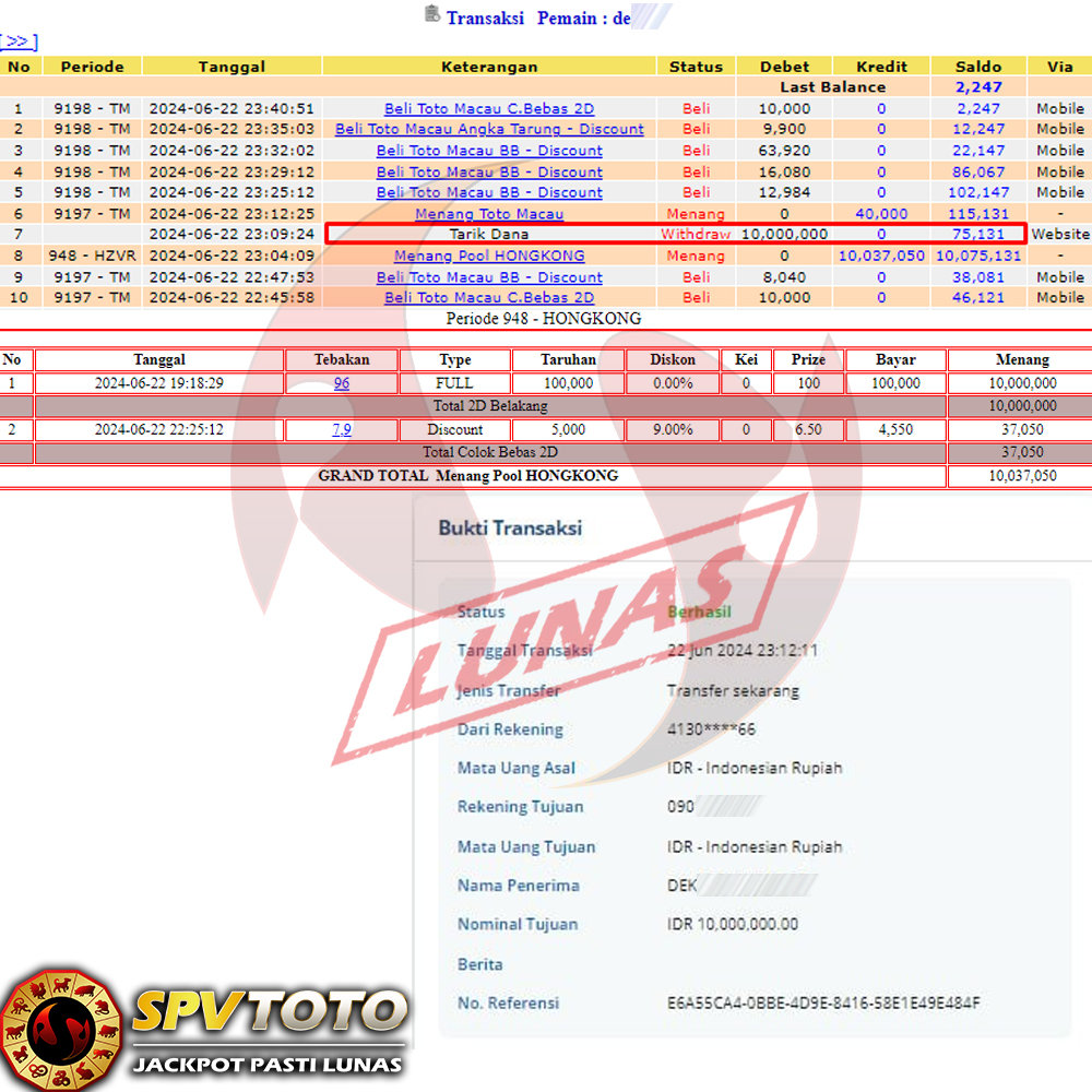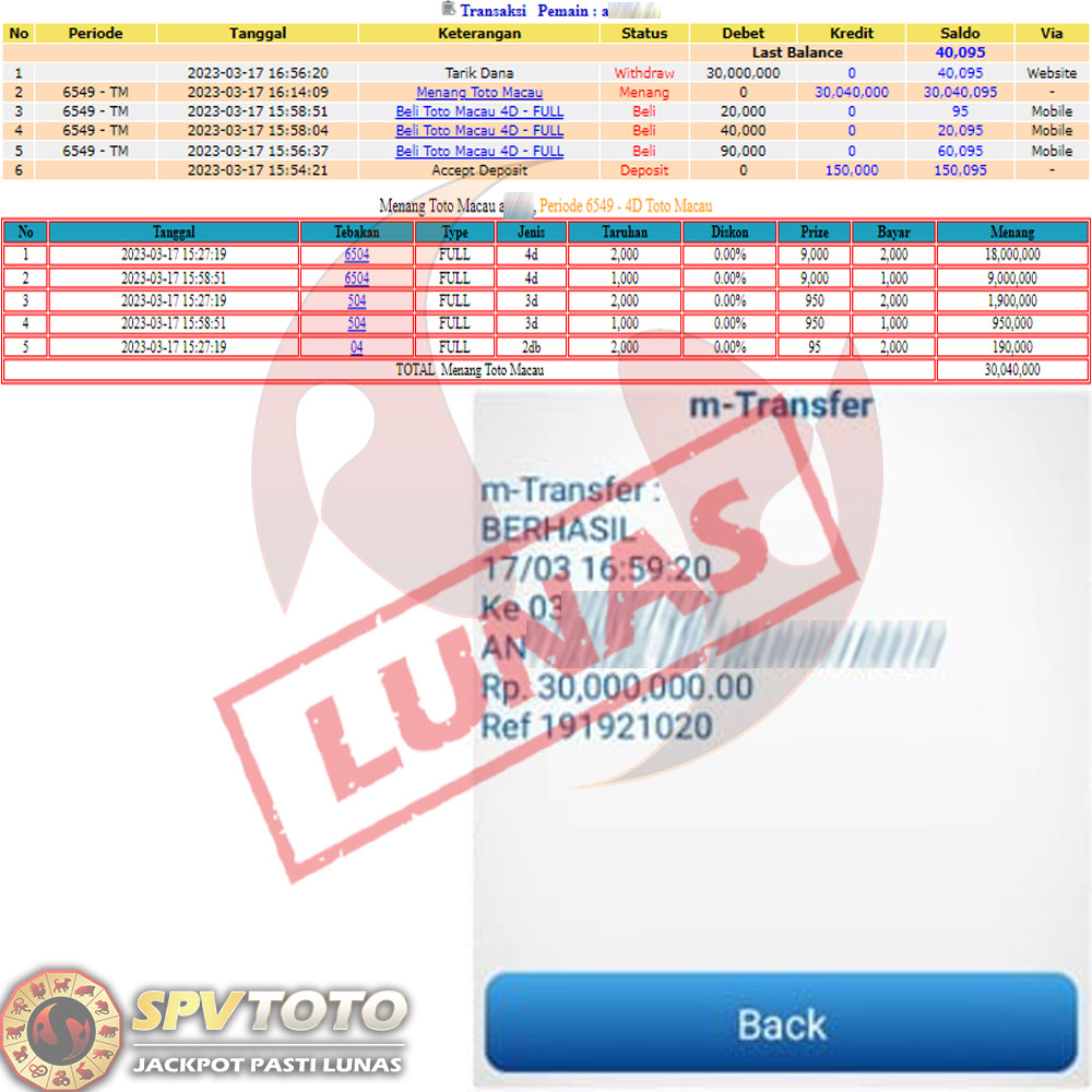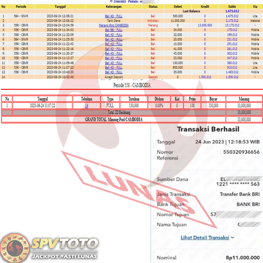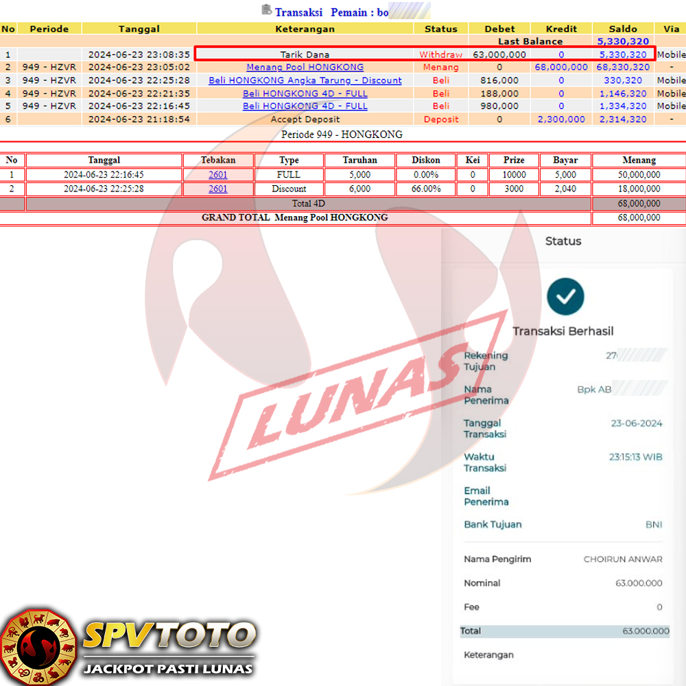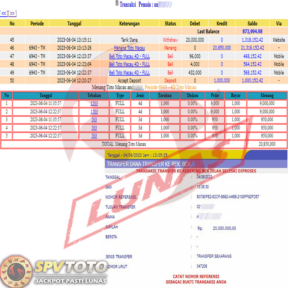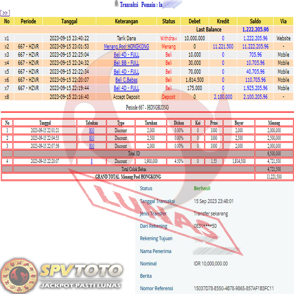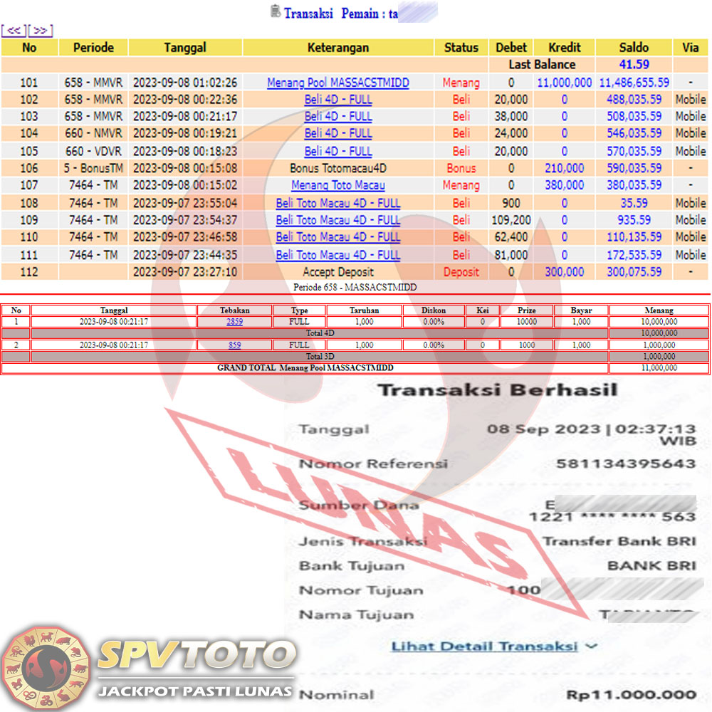 SELAMAT KEPADA MEMBER YANG MENDAPATKAN JACKPOT DI SPVTOTO