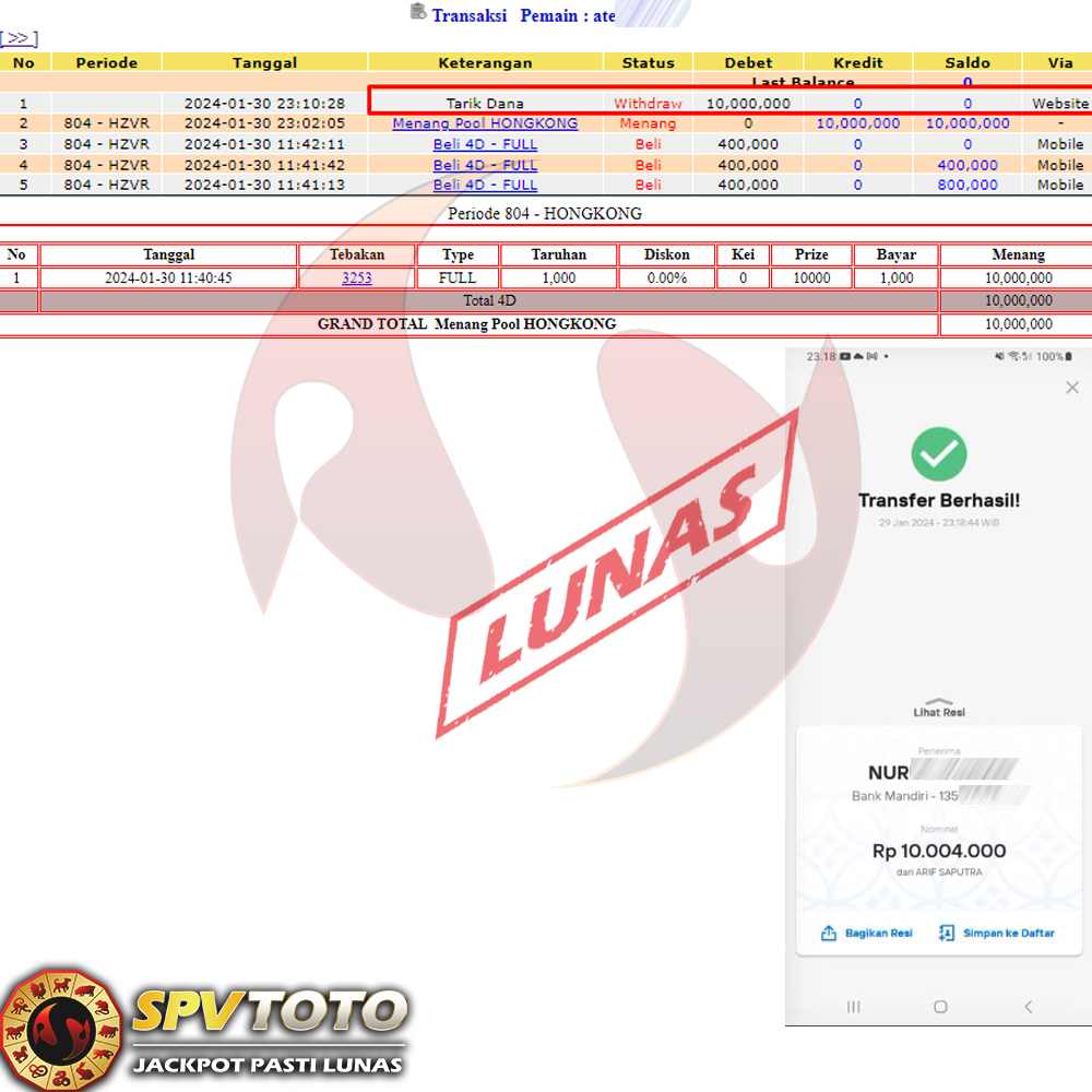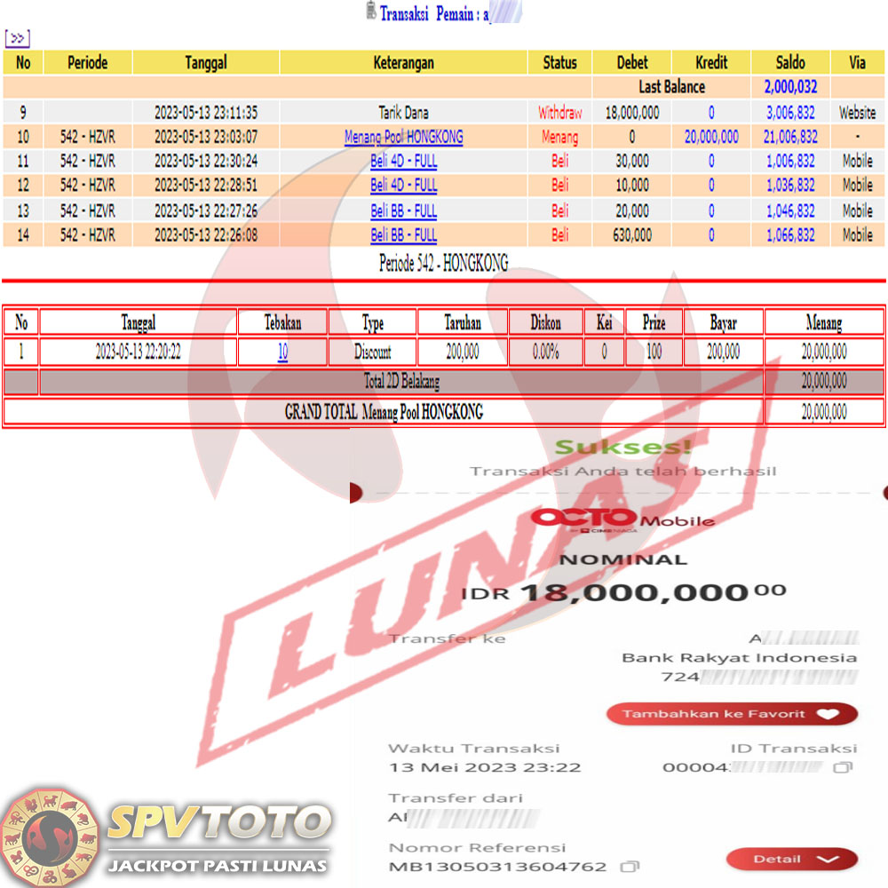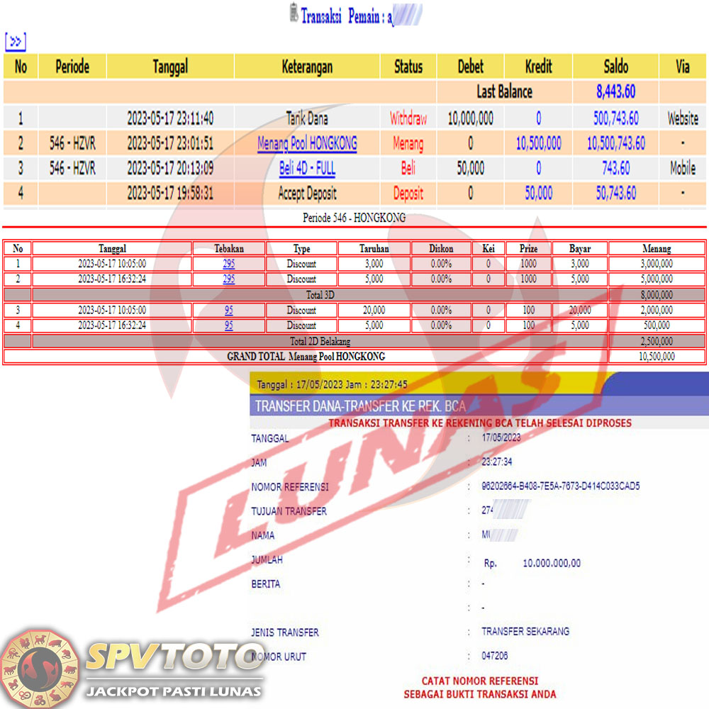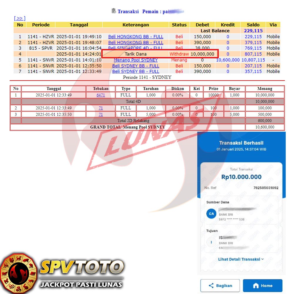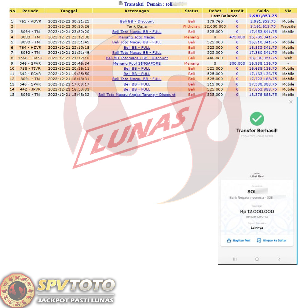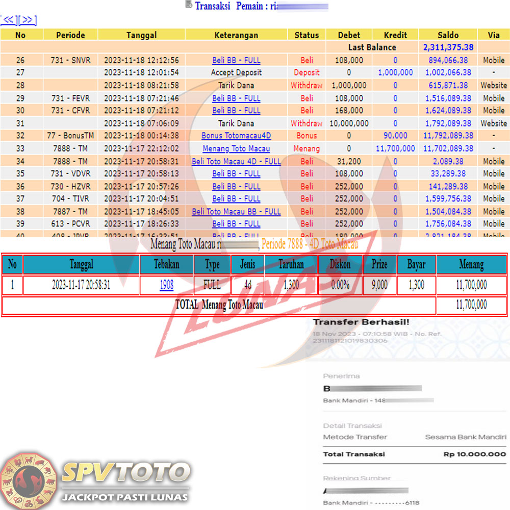 SELAMAT KEPADA MEMBER YANG MENDAPATKAN JACKPOT DI SPVTOTO