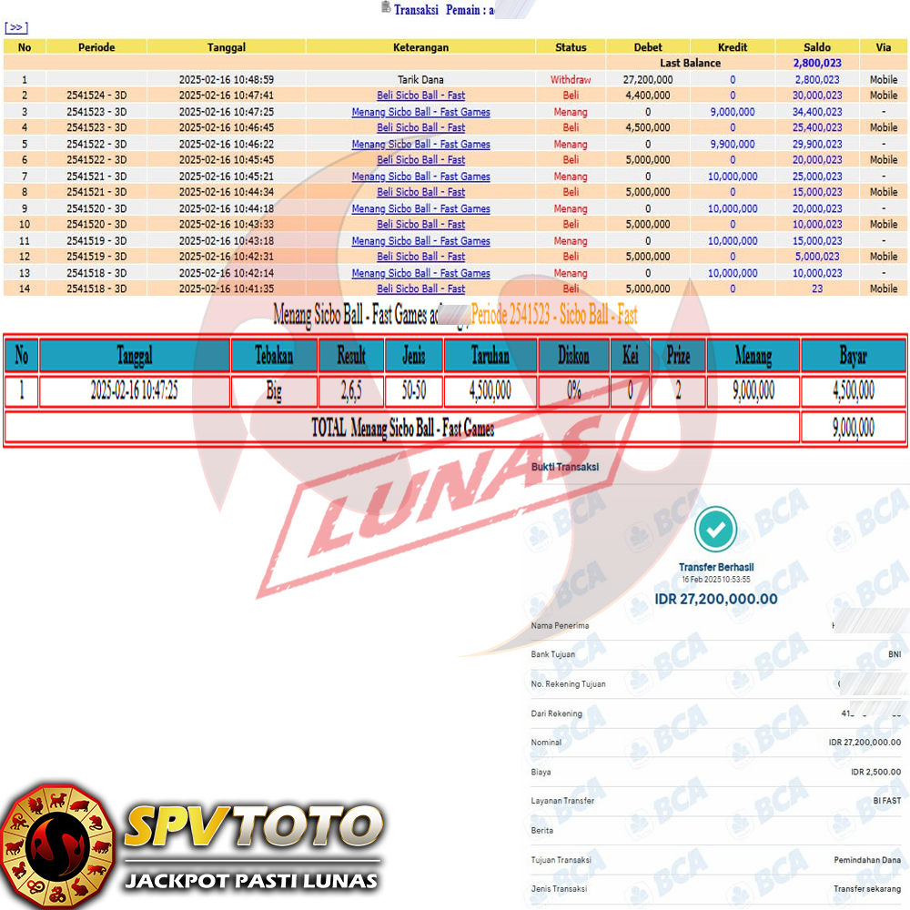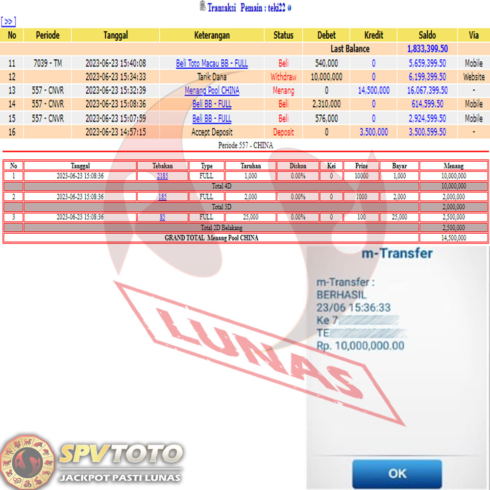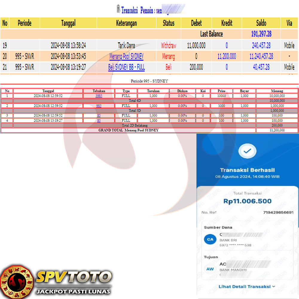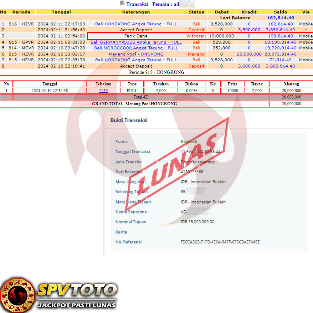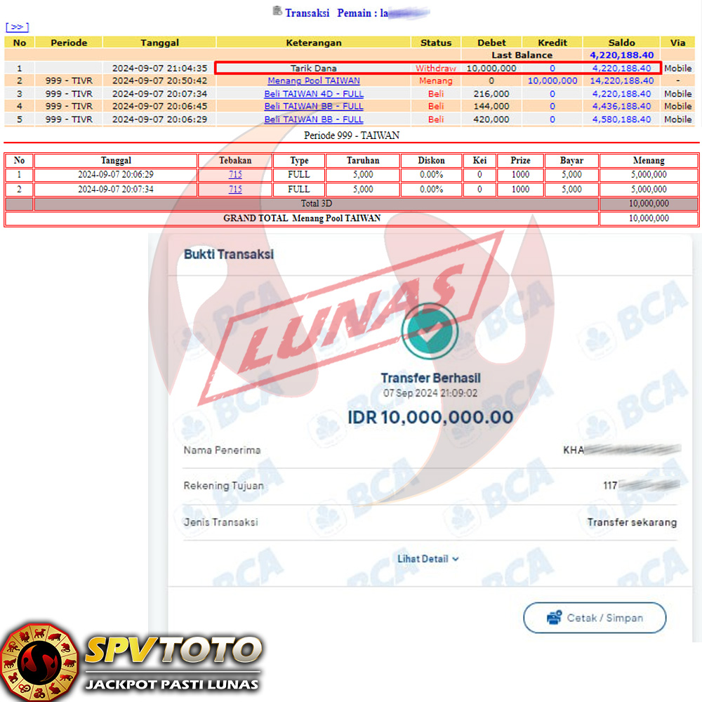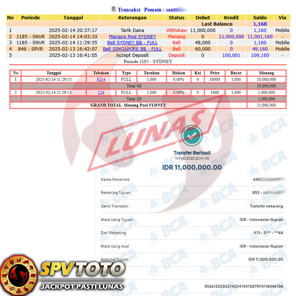 SELAMAT KEPADA MEMBER YANG MENDAPATKAN JACKPOT DI SPVTOTO