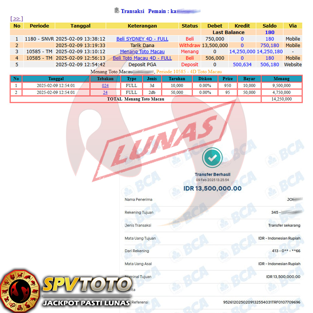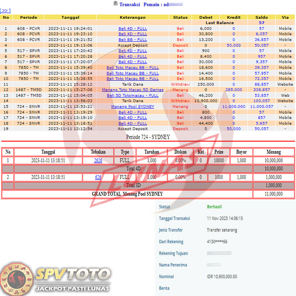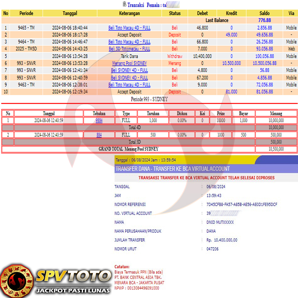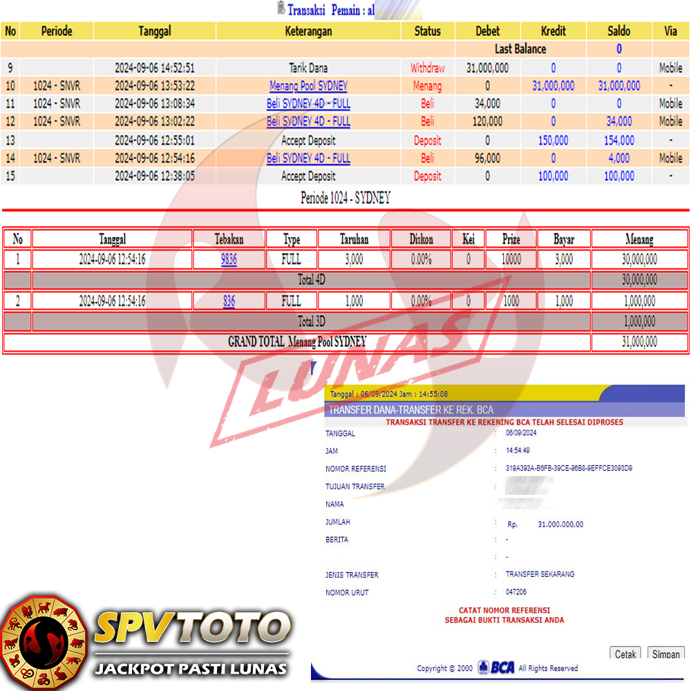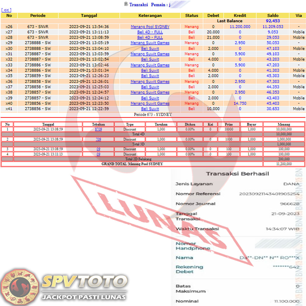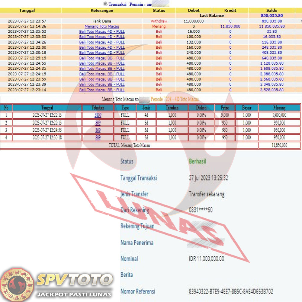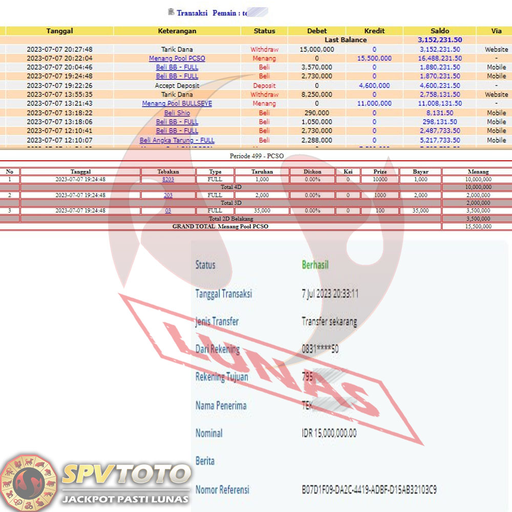 SELAMAT KEPADA MEMBER YANG MENDAPATKAN JACKPOT DI SPVTOTO