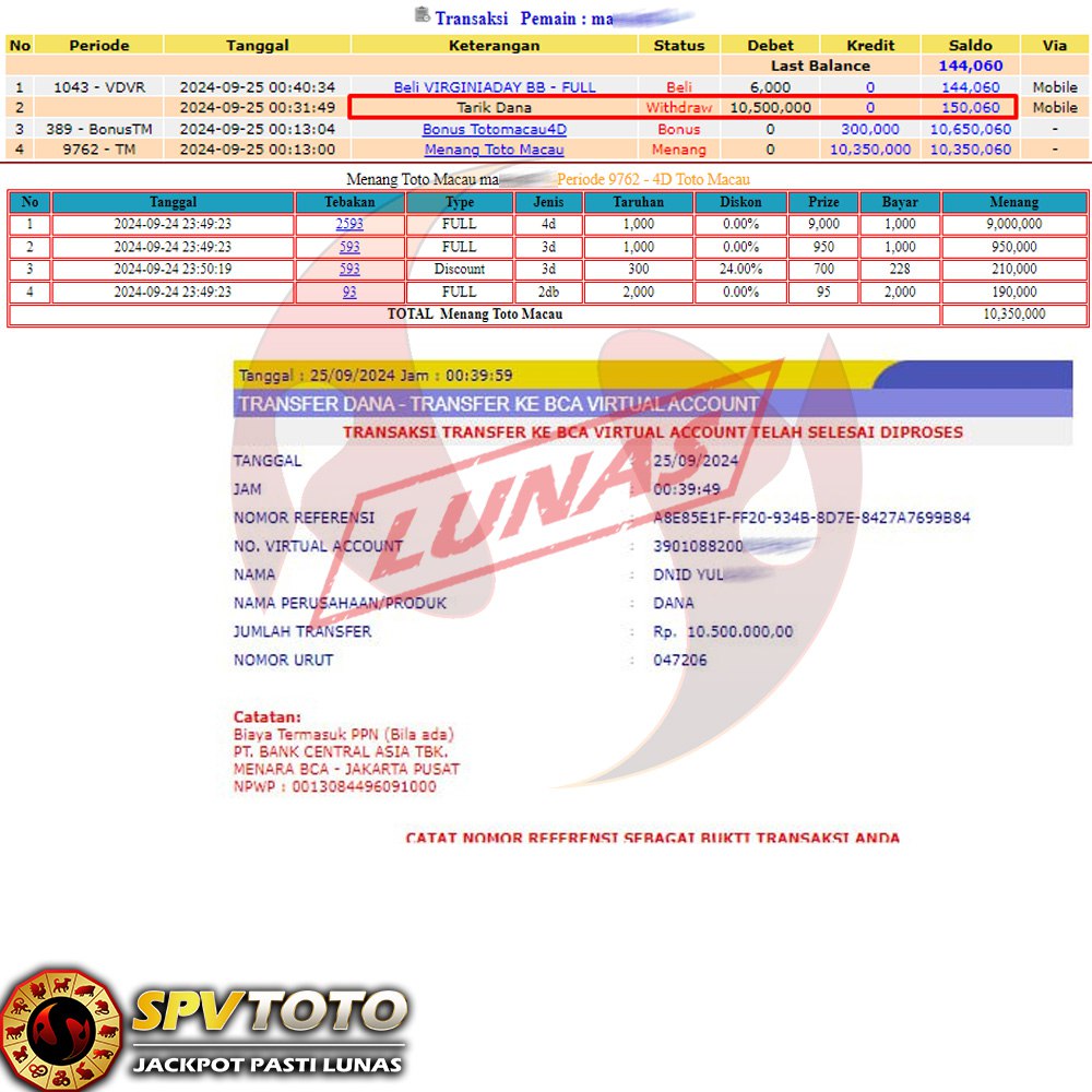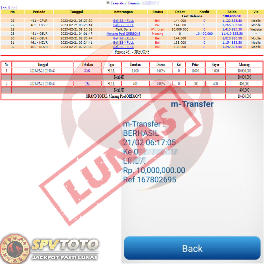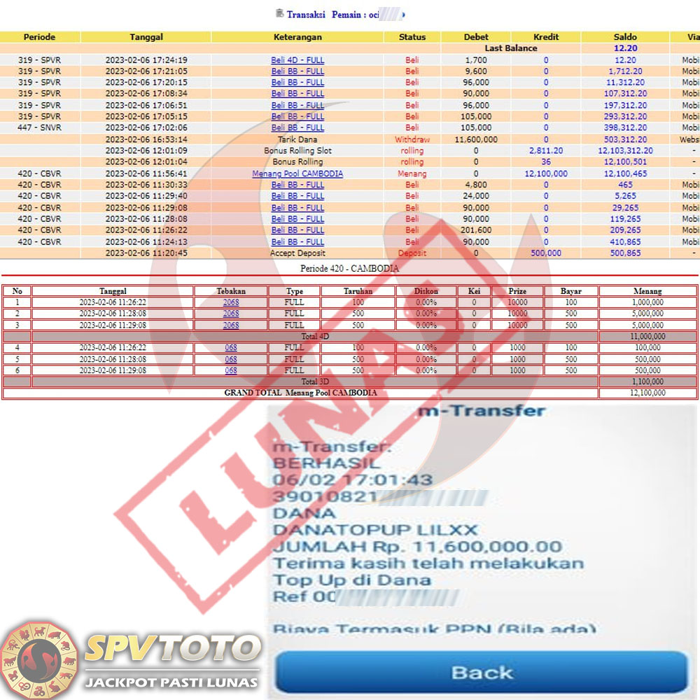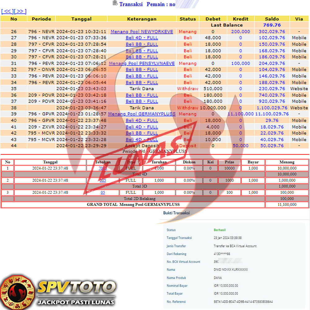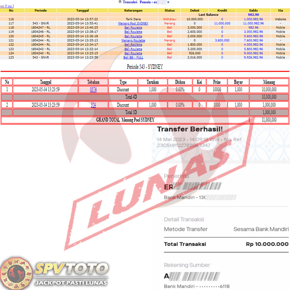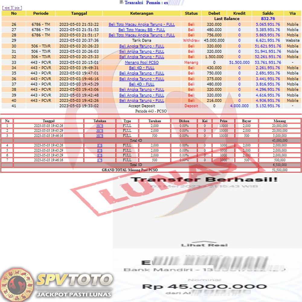 SELAMAT KEPADA MEMBER YANG MENDAPATKAN JACKPOT DI SPVTOTO